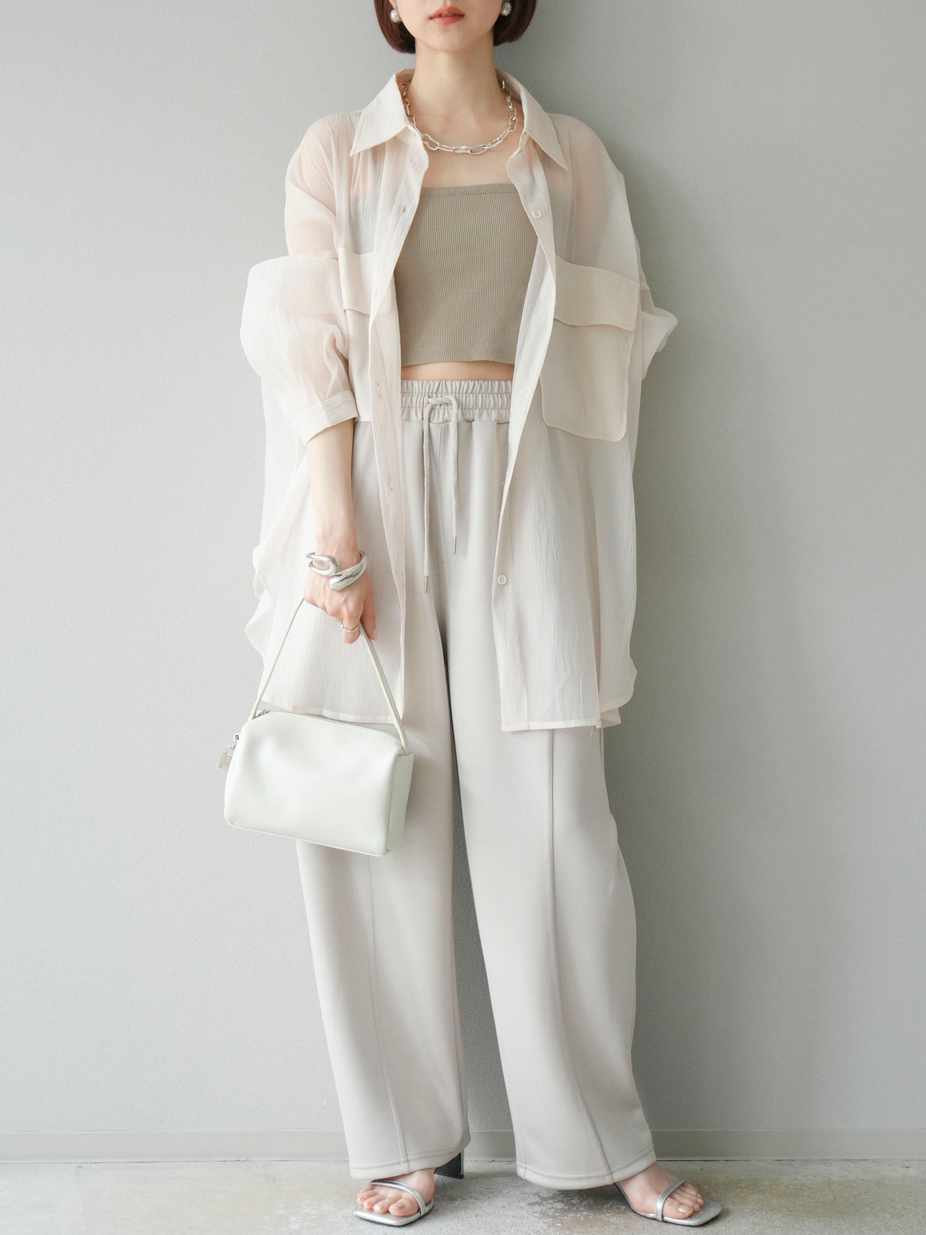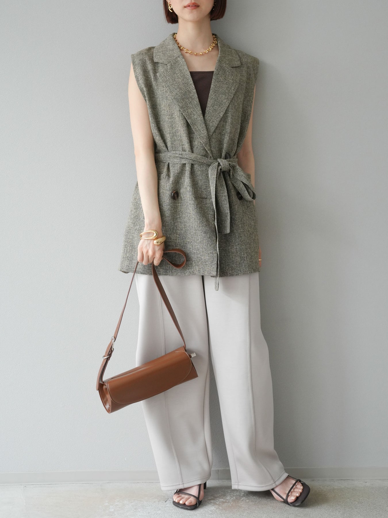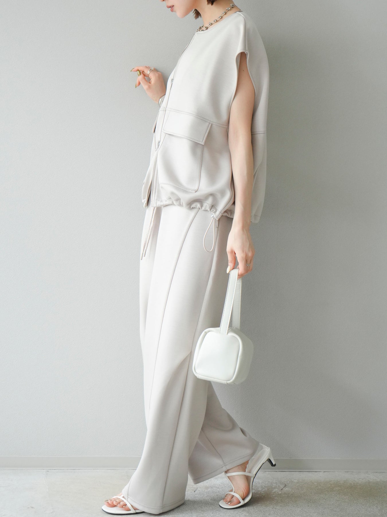 程よい肉感とストレッチ性のあるライトポンチ素材を使用したカーブパンツ。サイドラインに立体感のあるカーブシルエットを取り入れ、シンプルながら動きのある印象に。ウエストはオールゴム仕様で快適な履き心地を実現。カジュアルなトップス合わせはもちろん、シャツやジレなどと合わせたきれいめスタイルにもマッチする一本です。