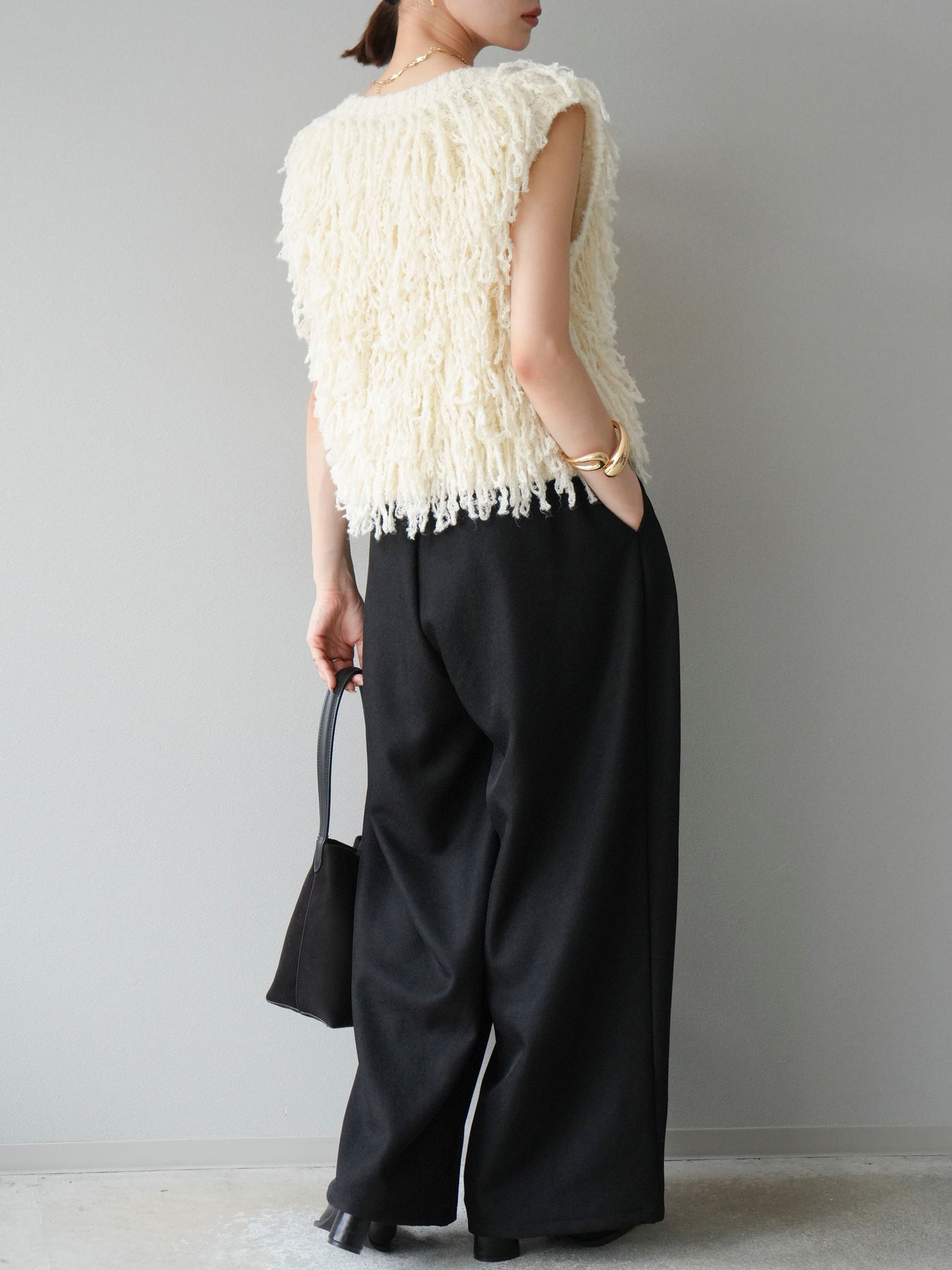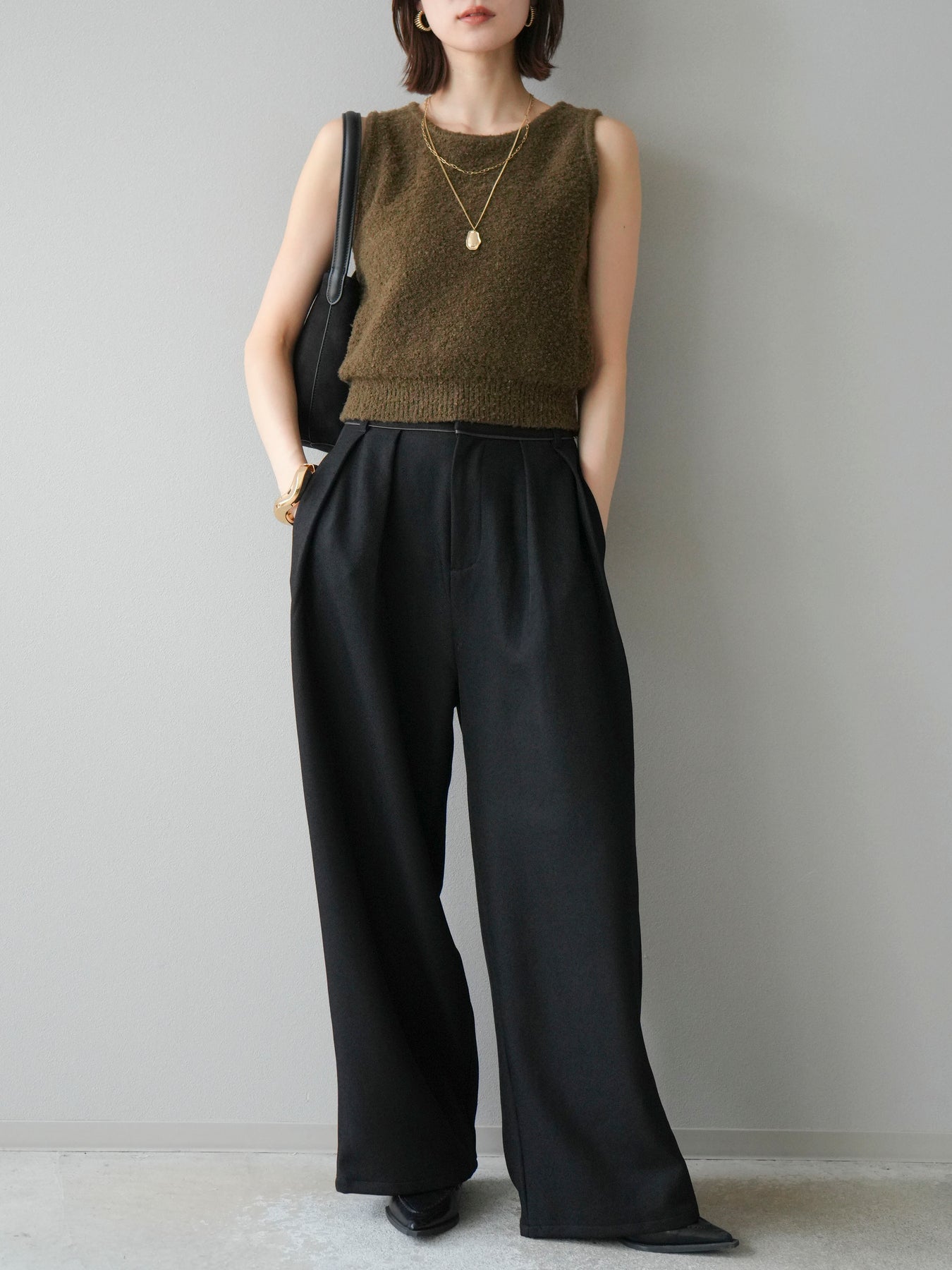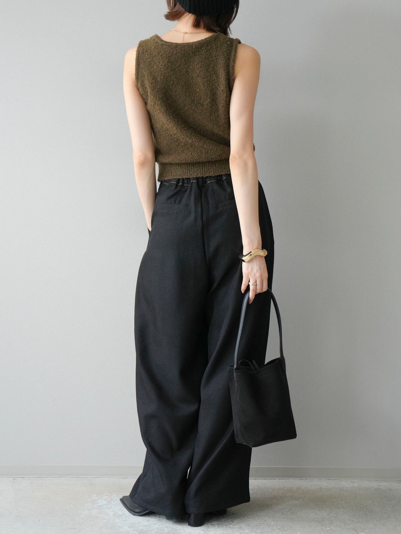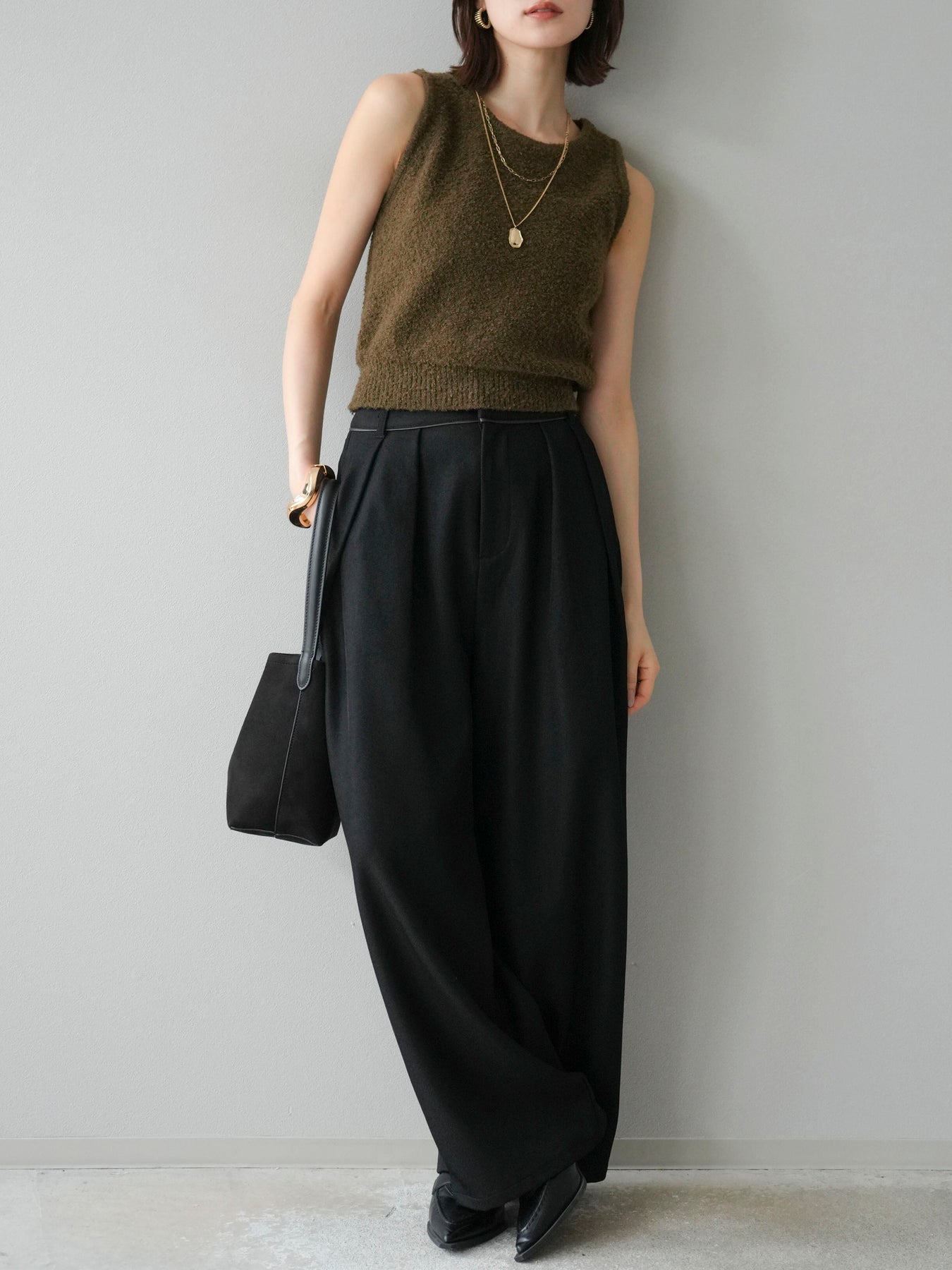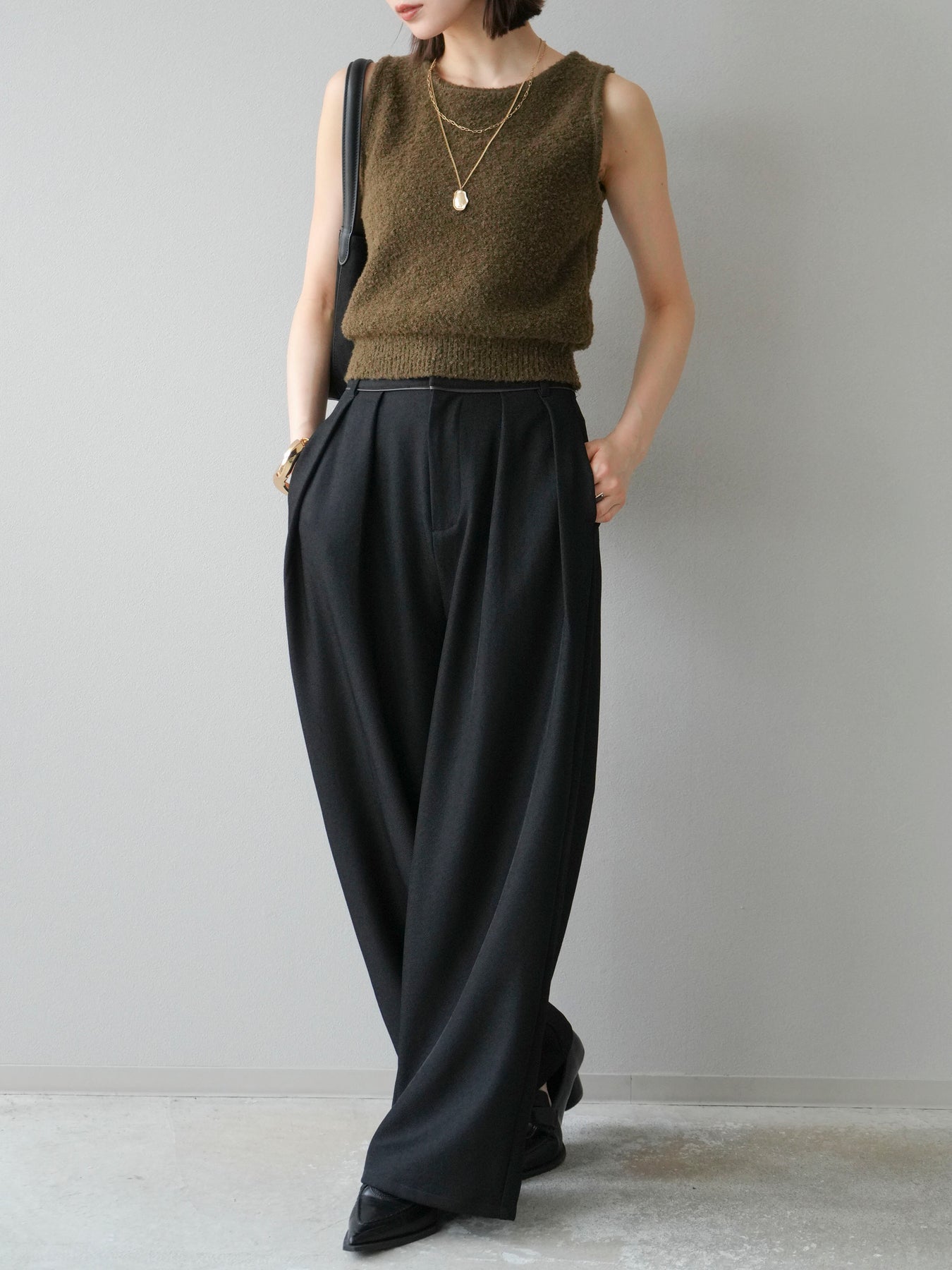 [予約]レザーパイピングタックワイドパンツに関連する商品を探す↓
