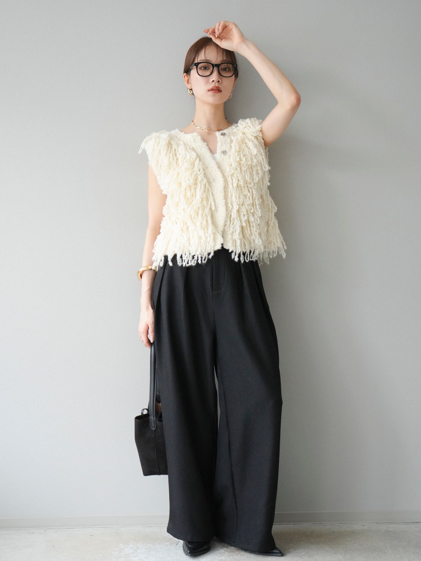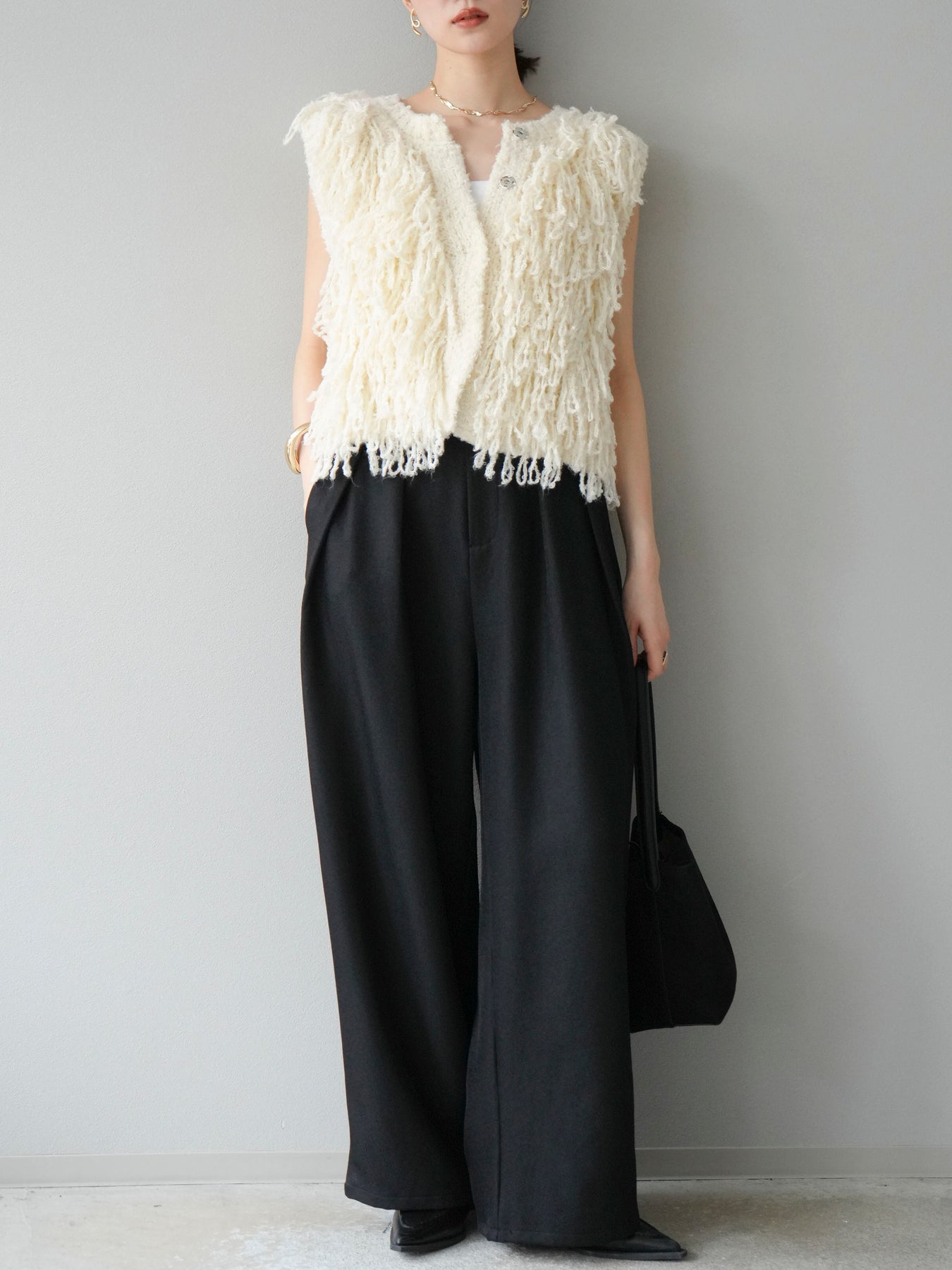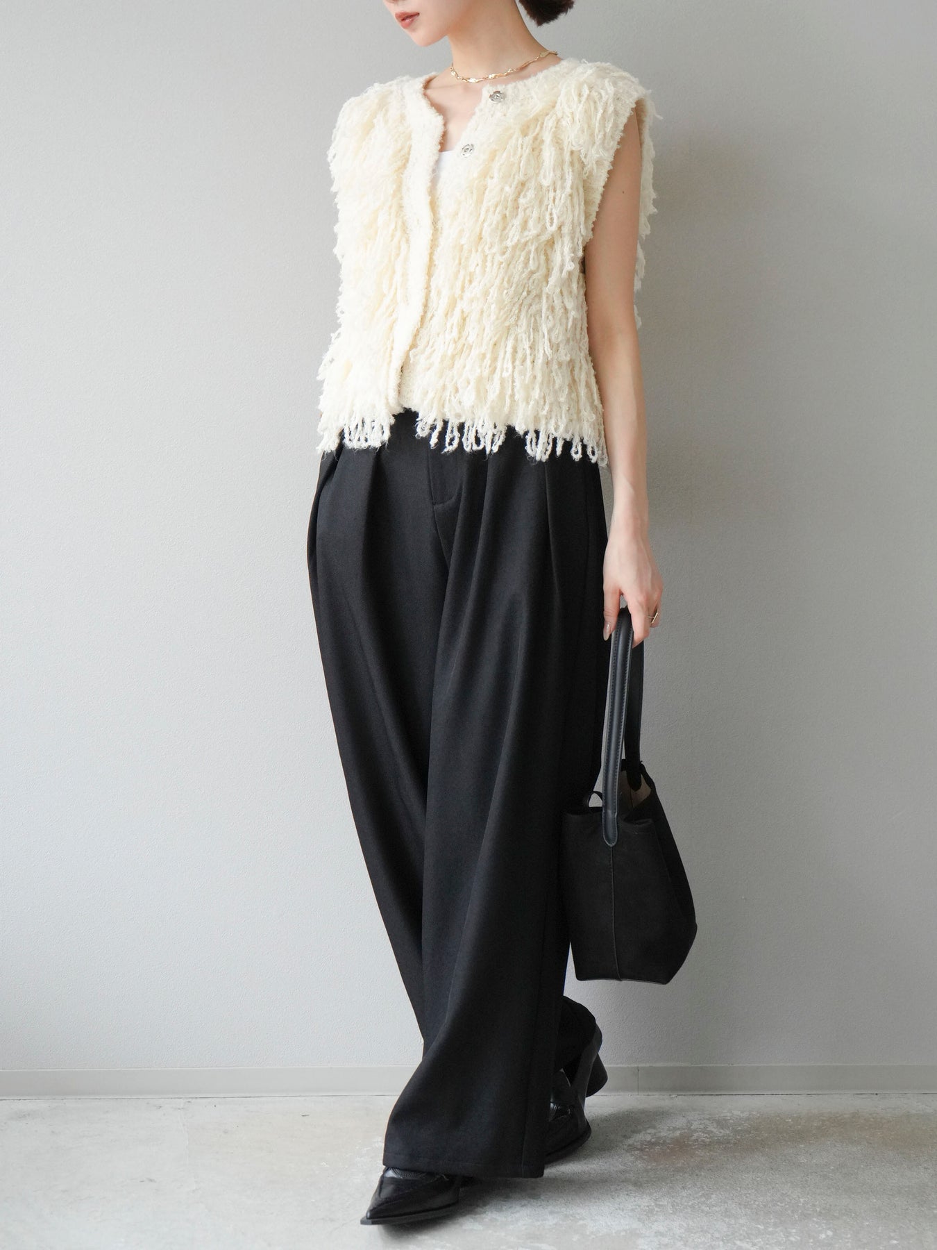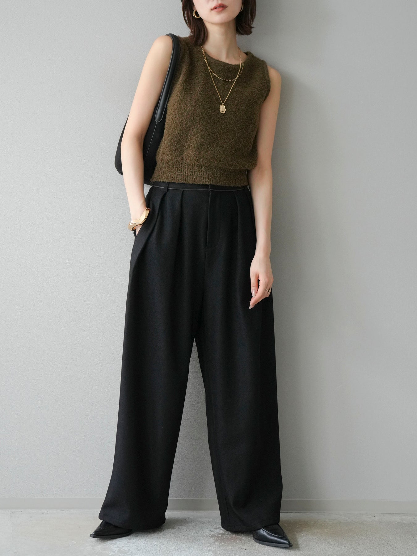 [予約]レザーパイピングタックワイドパンツに関連する商品を探す↓