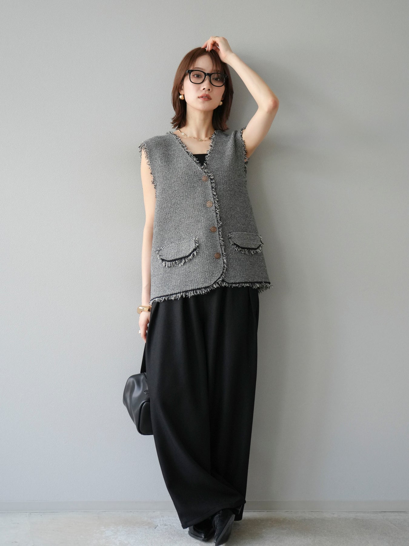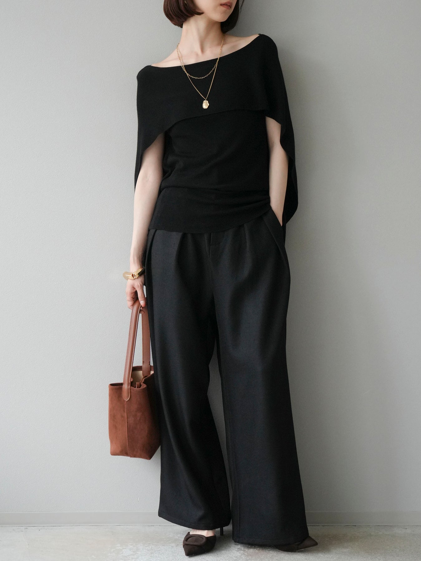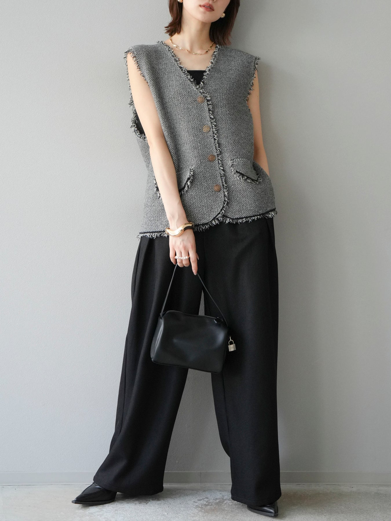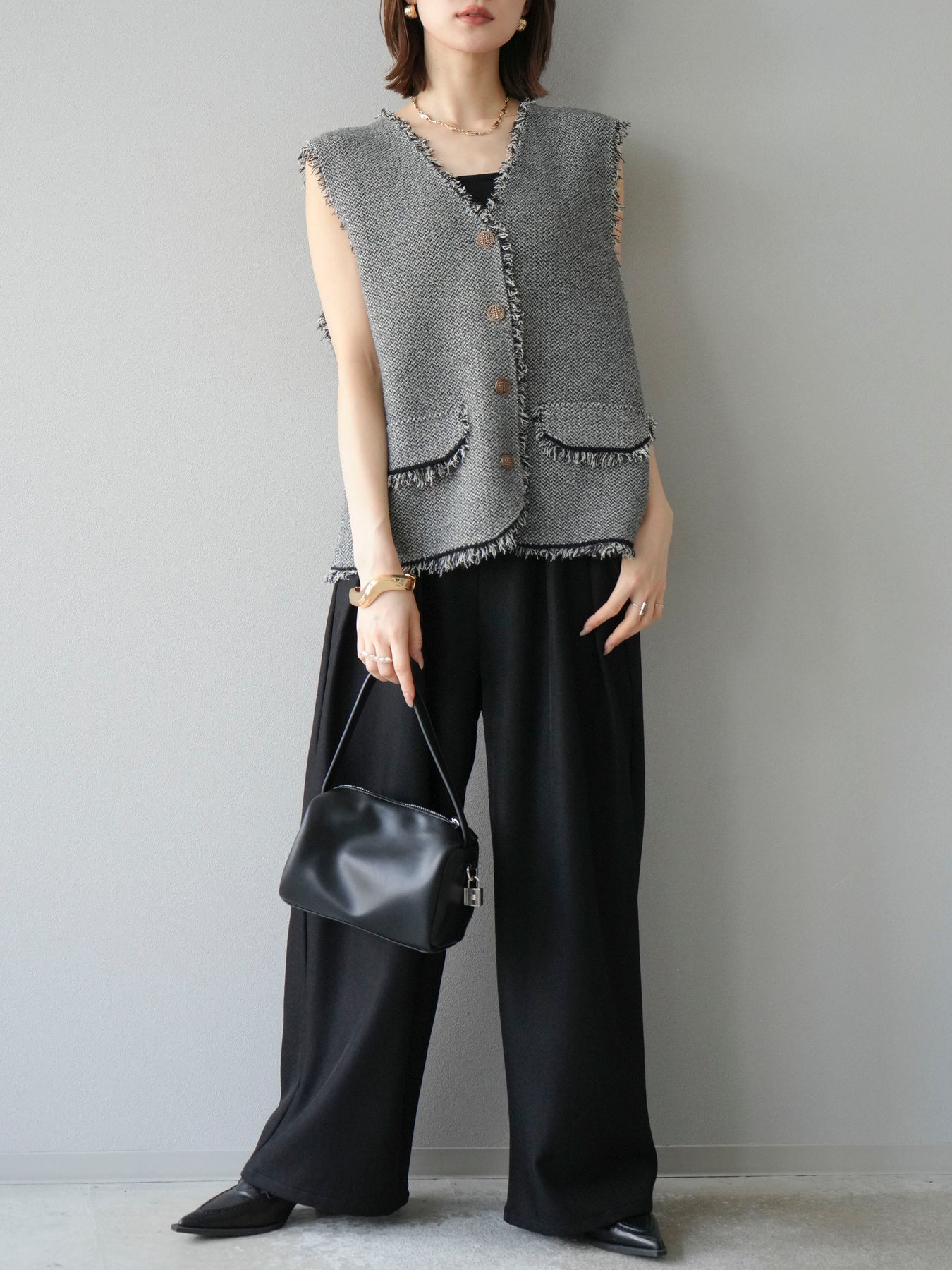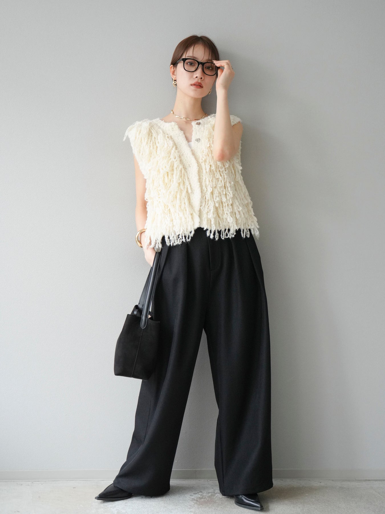 [予約]レザーパイピングタックワイドパンツに関連する商品を探す↓
