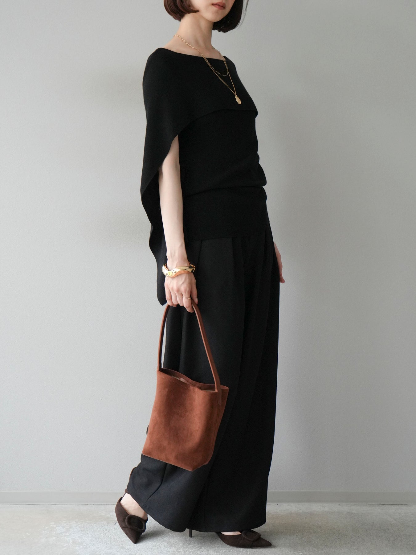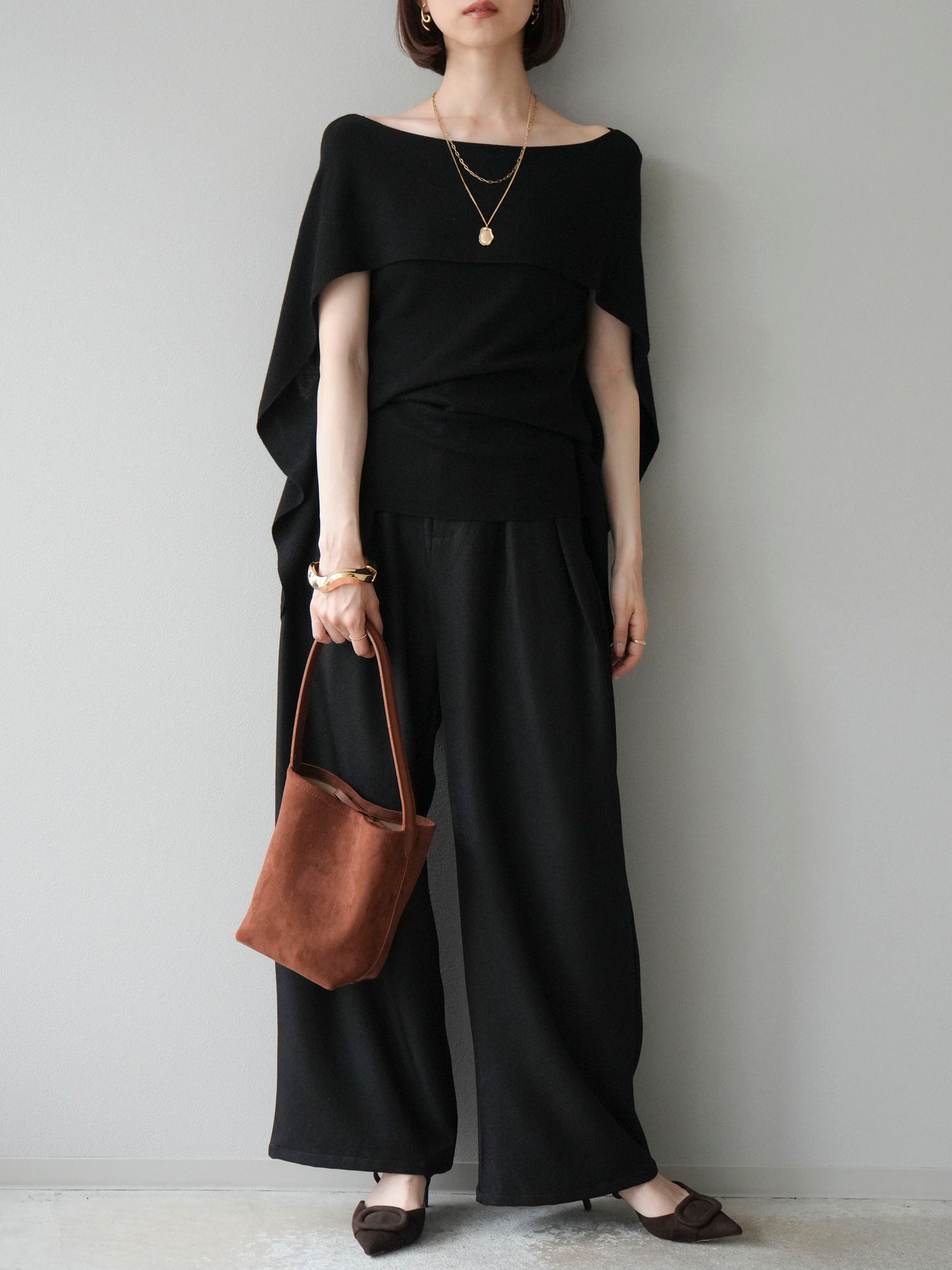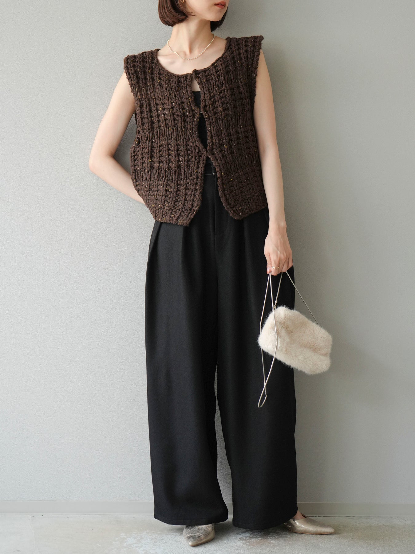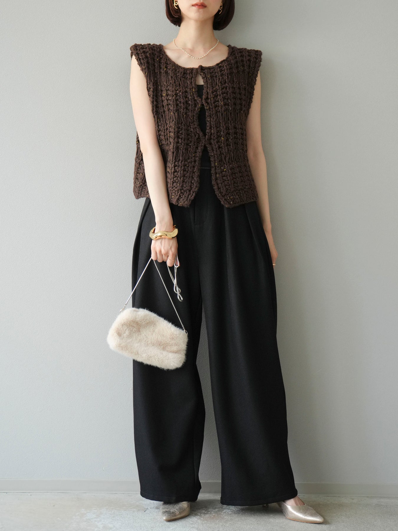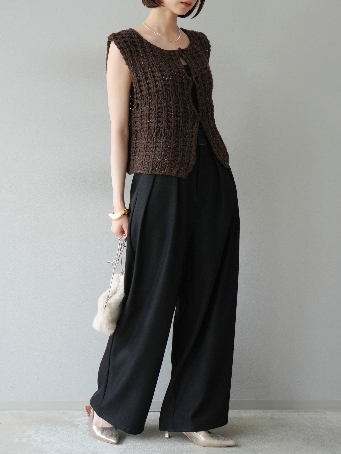[予約]レザーパイピングタックワイドパンツに関連する商品を探す↓