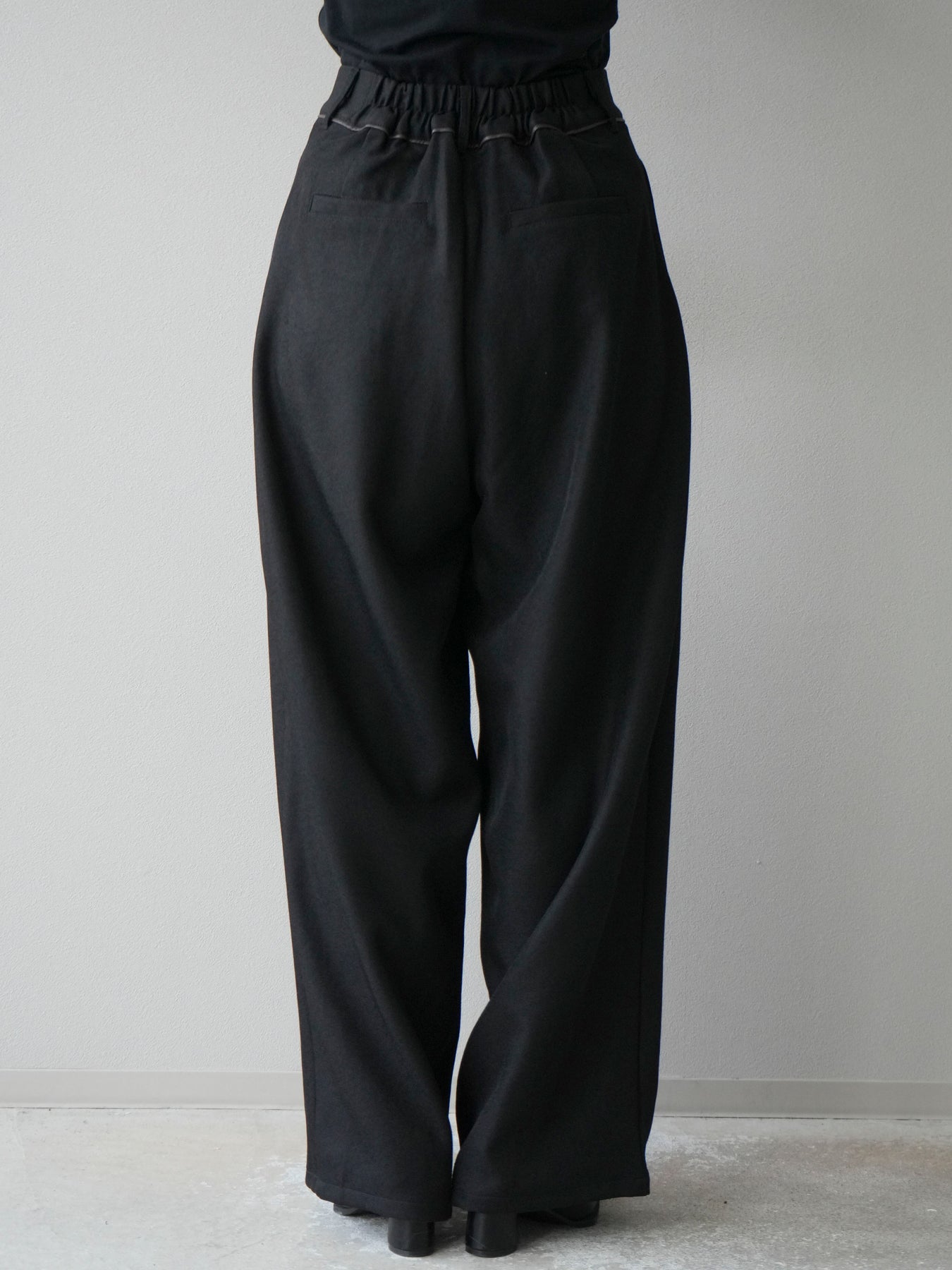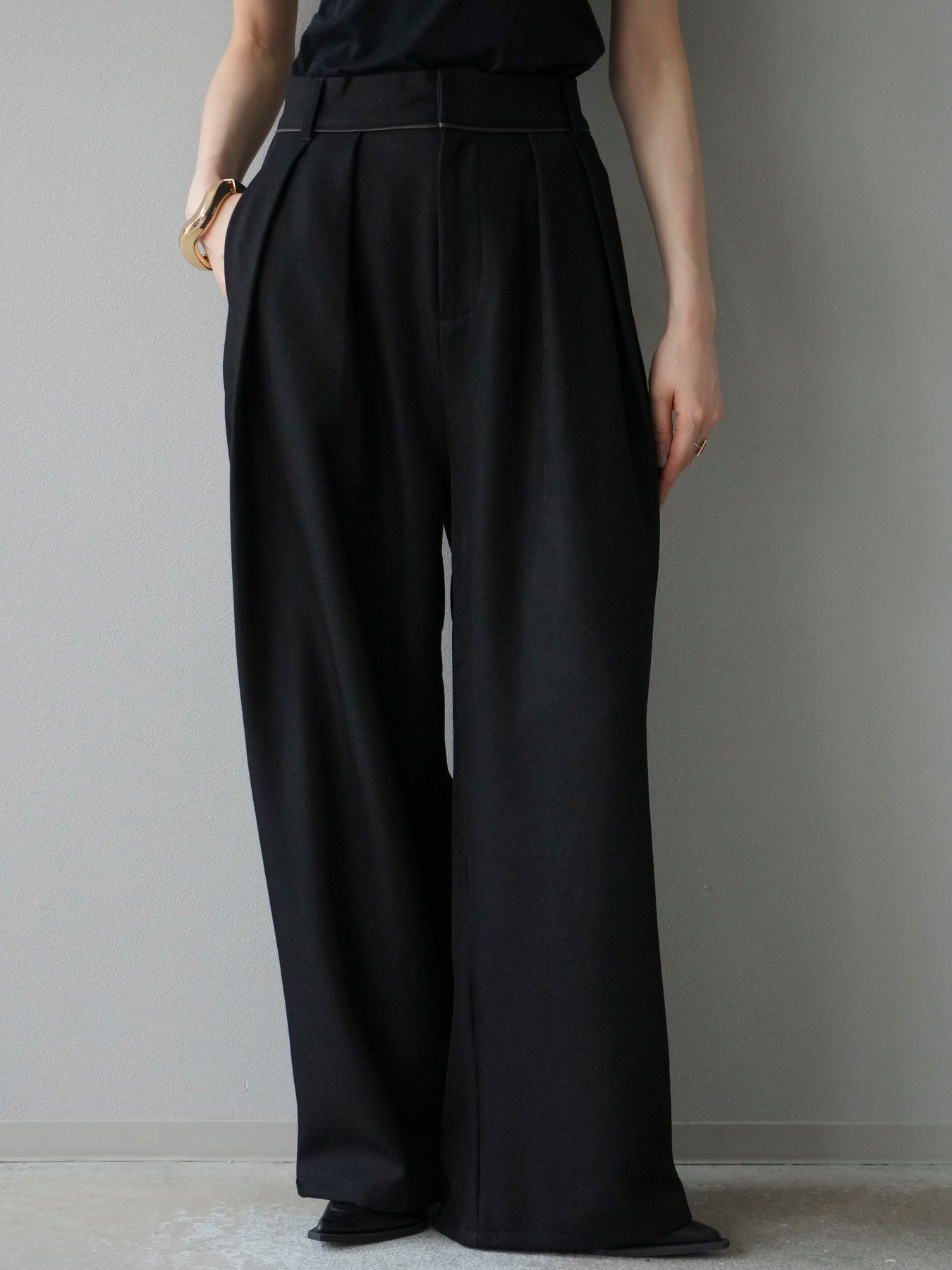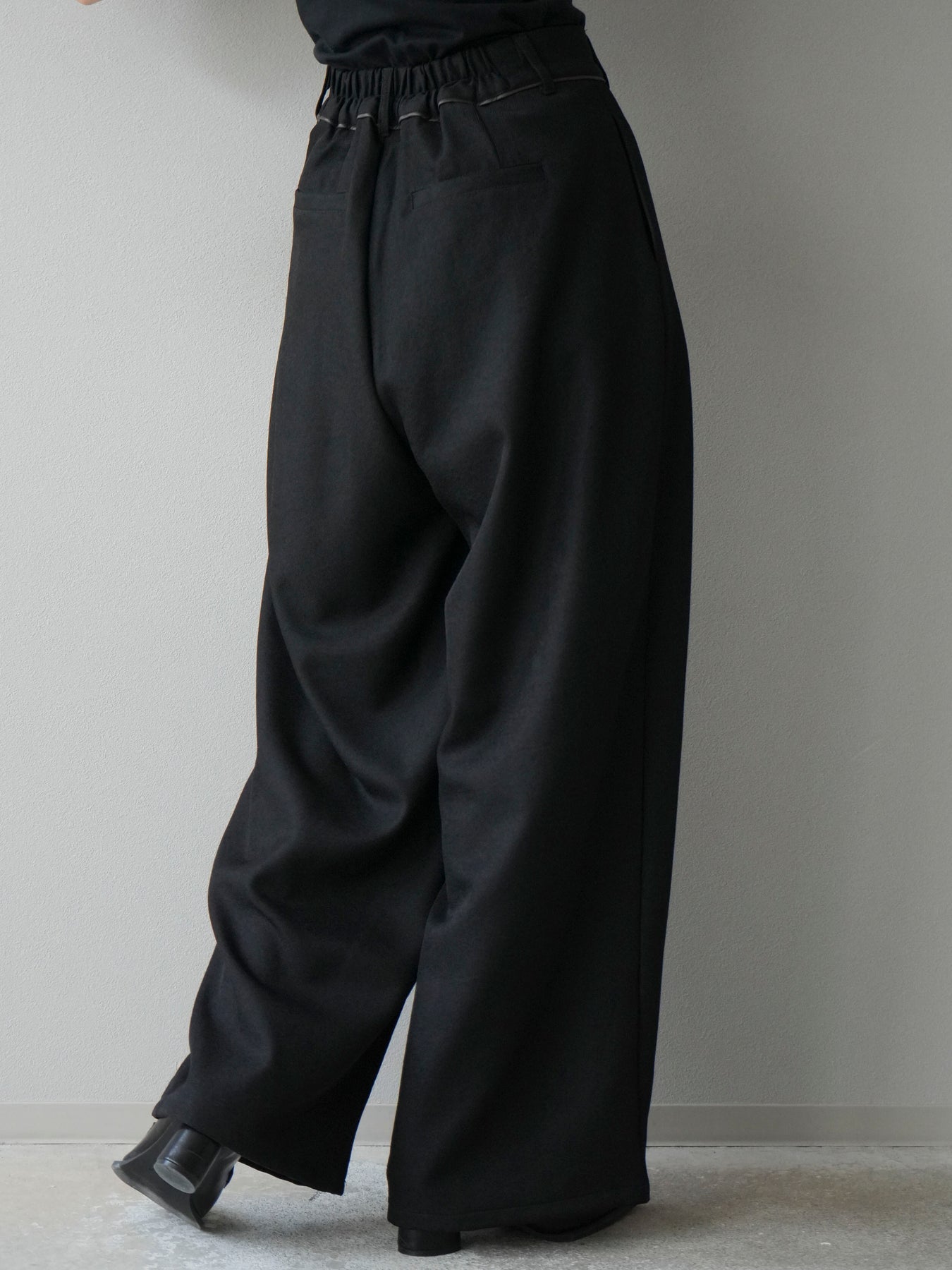 [予約]レザーパイピングタックワイドパンツ/ブラック