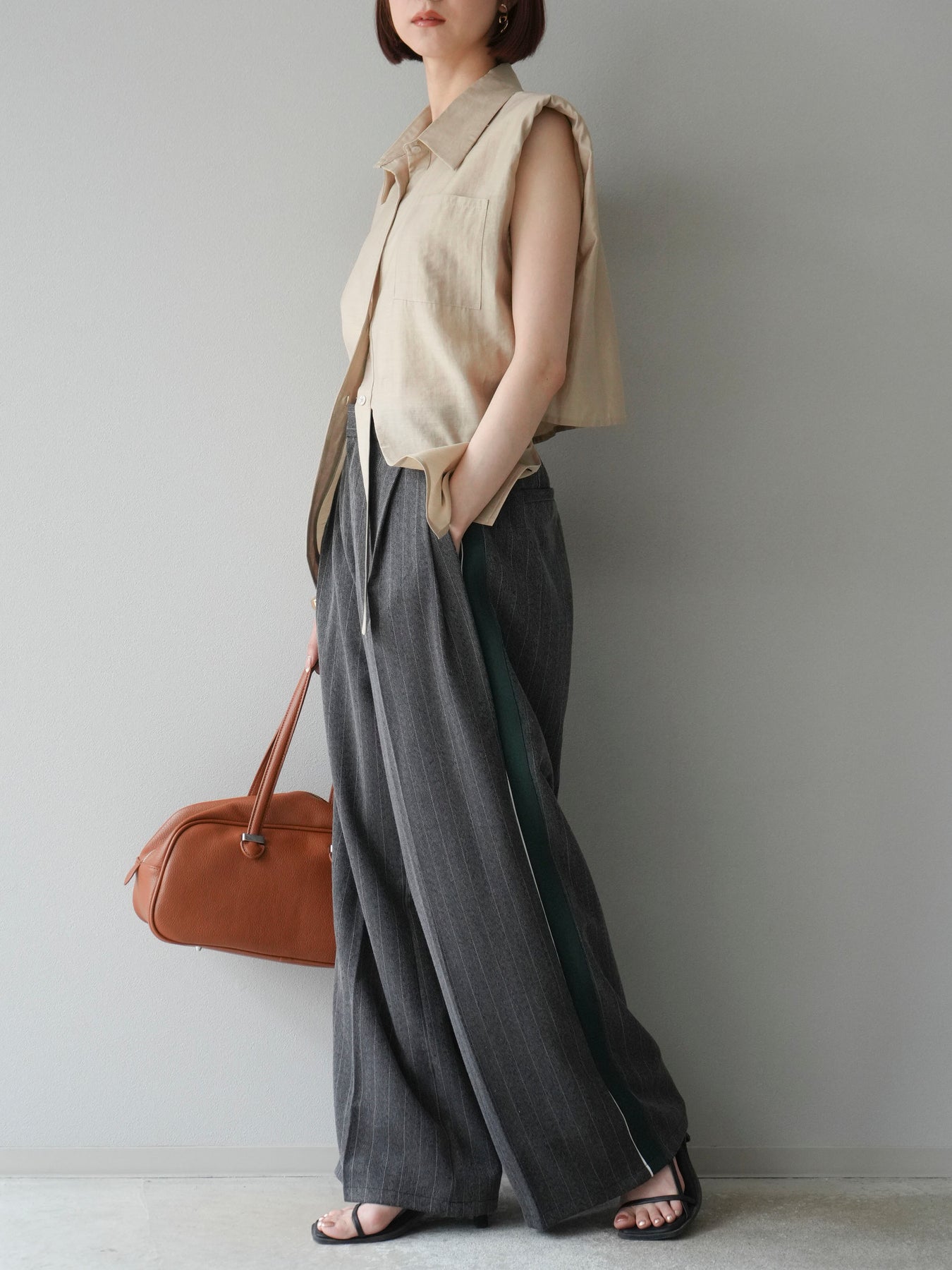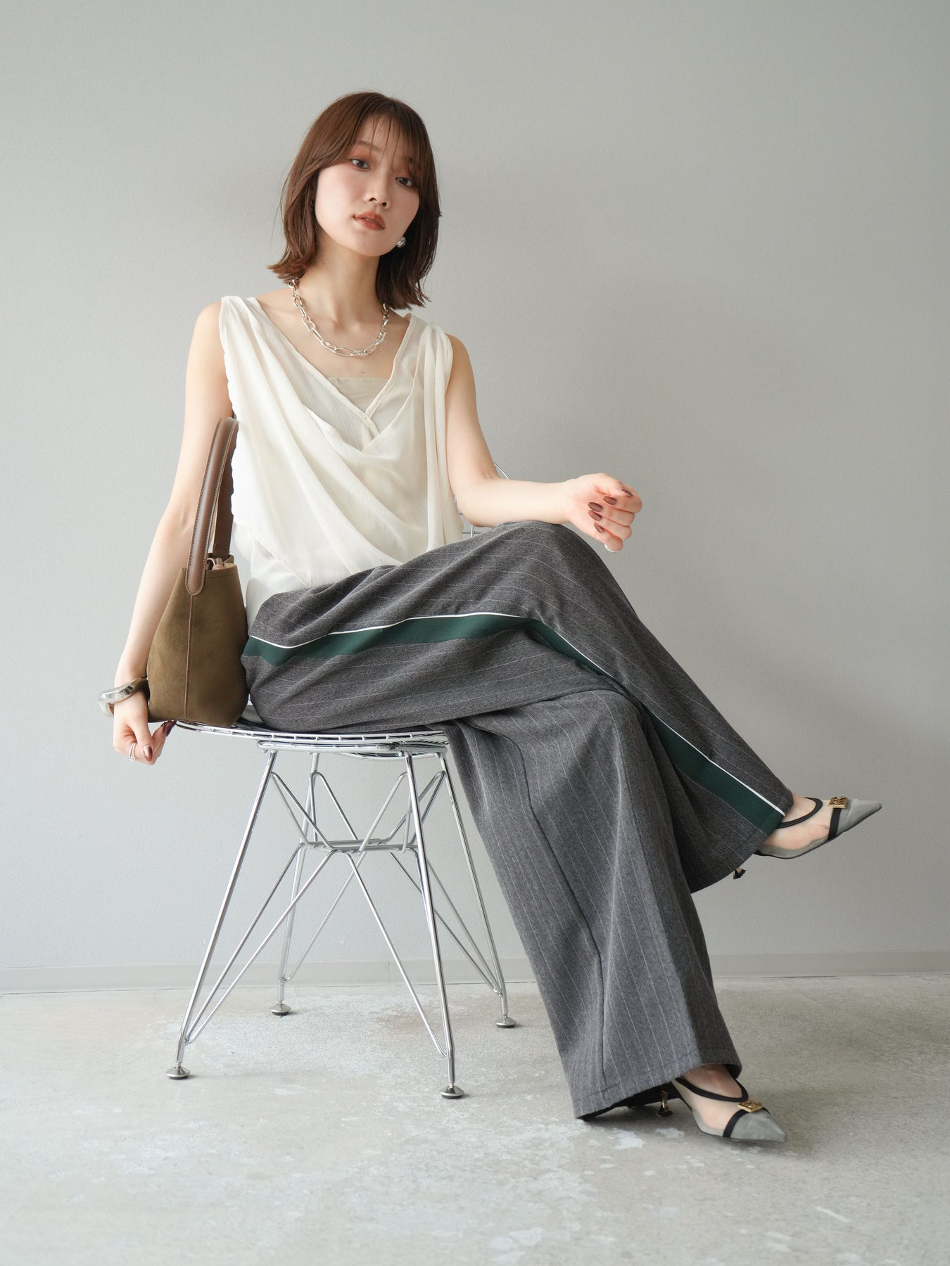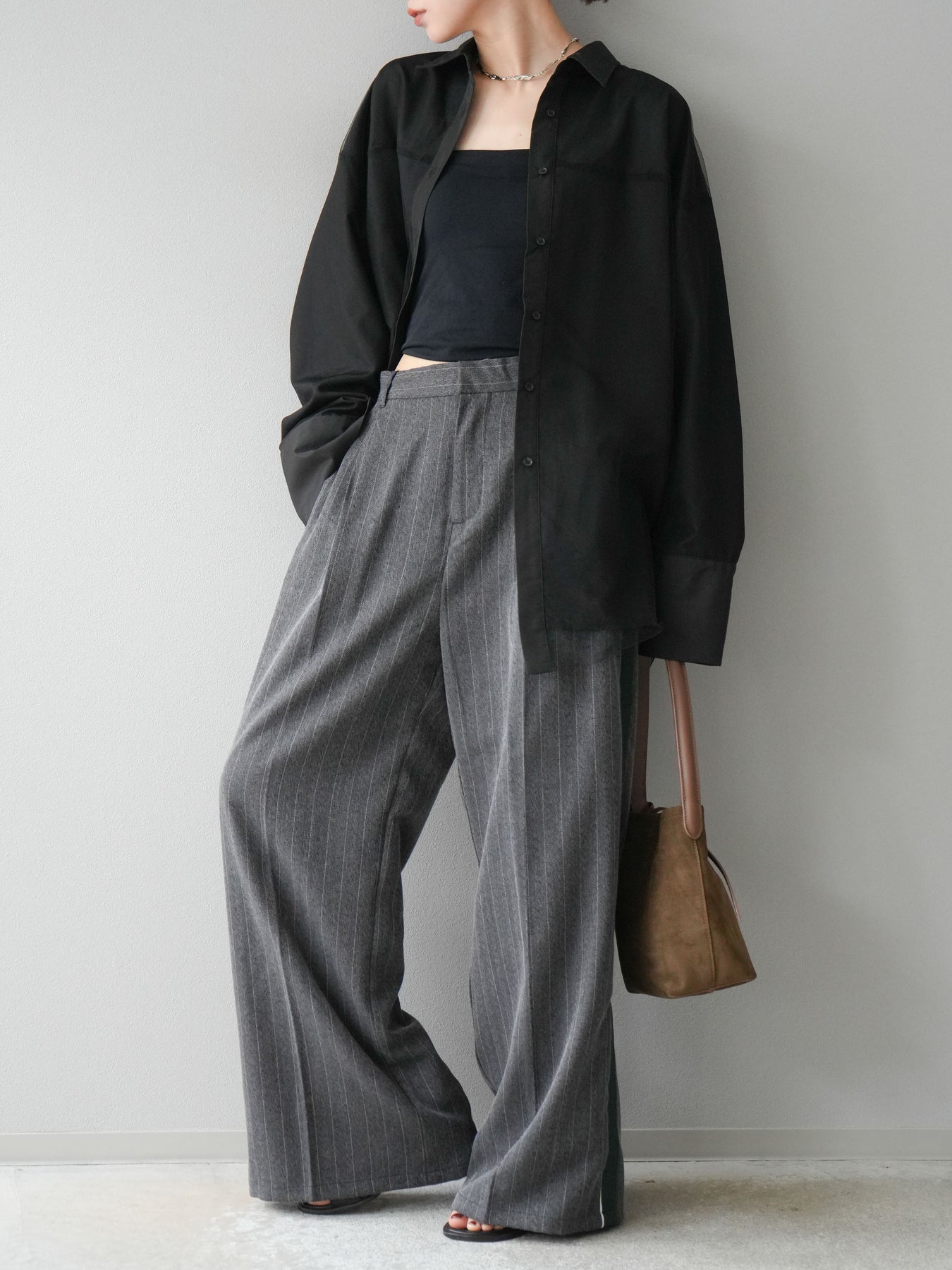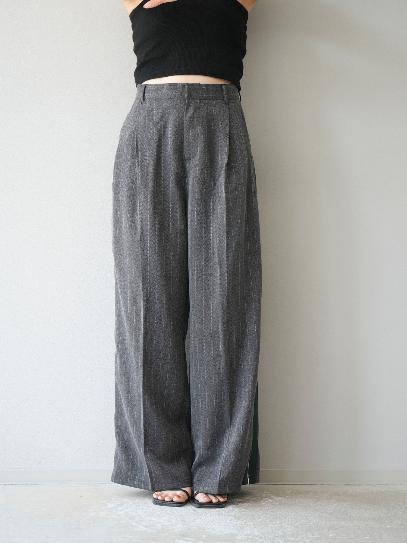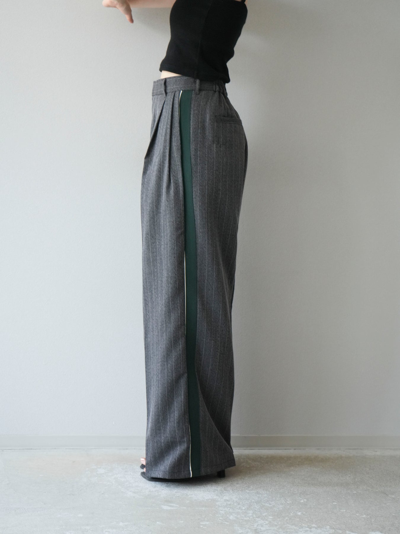 [予約]サイドラインストライプワイドパンツ/チャコール