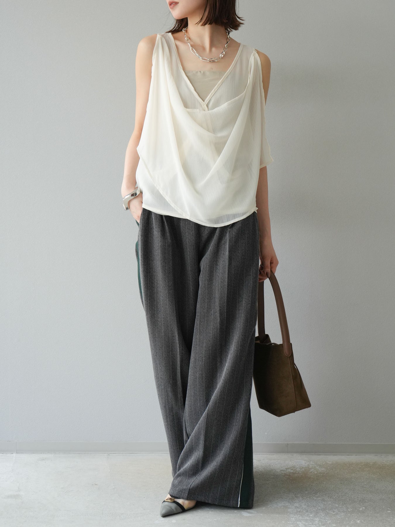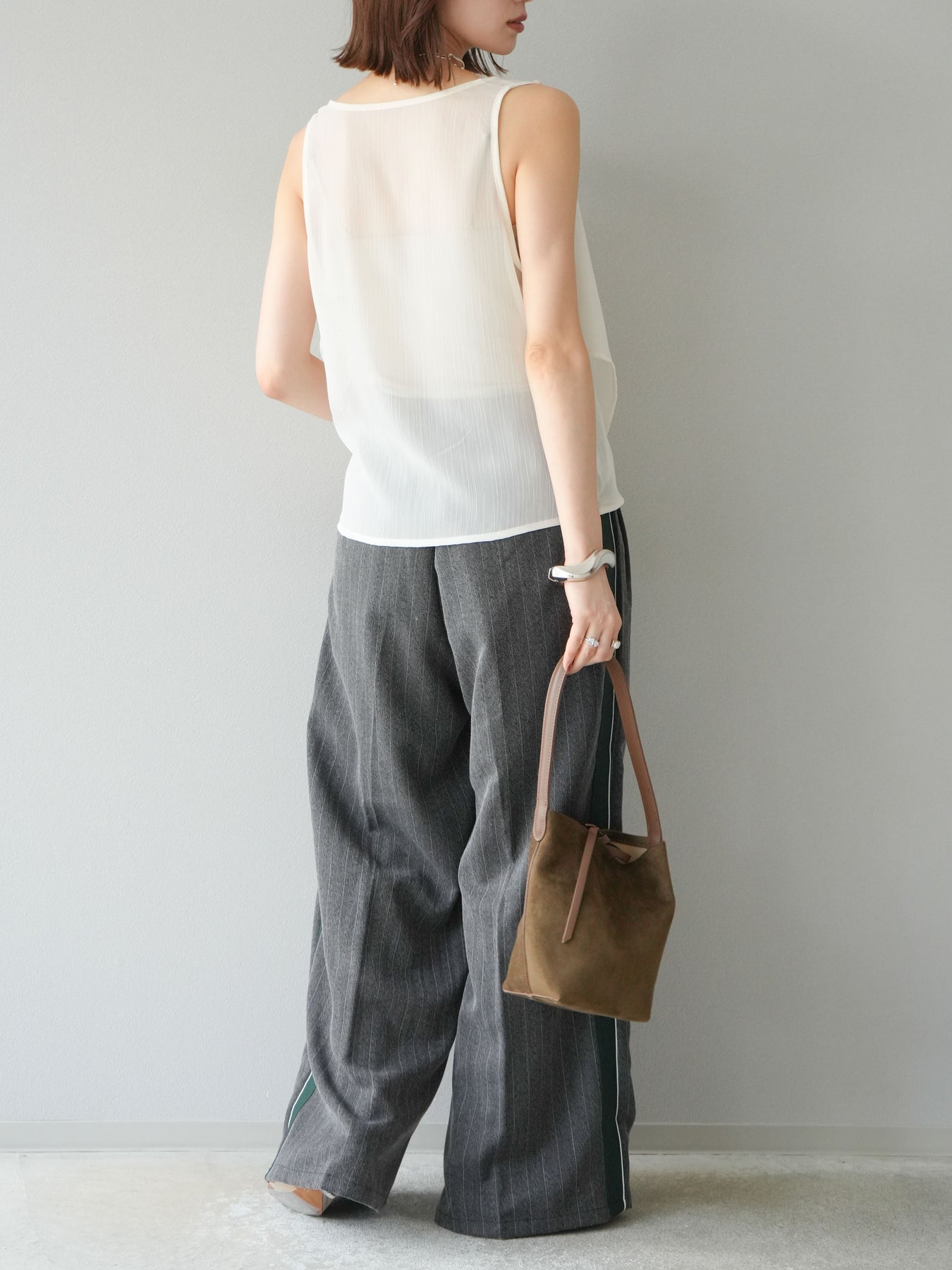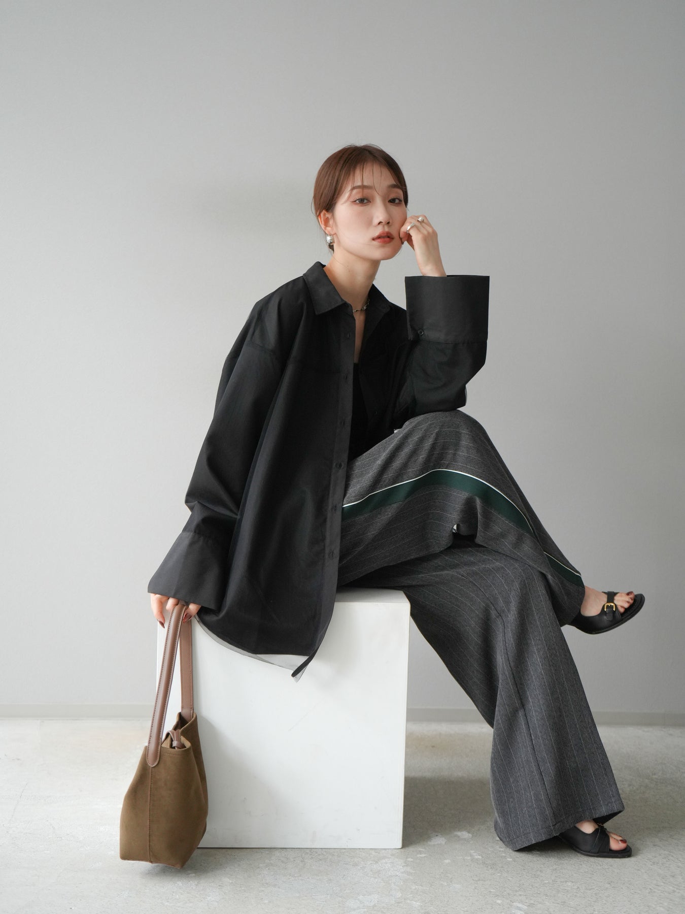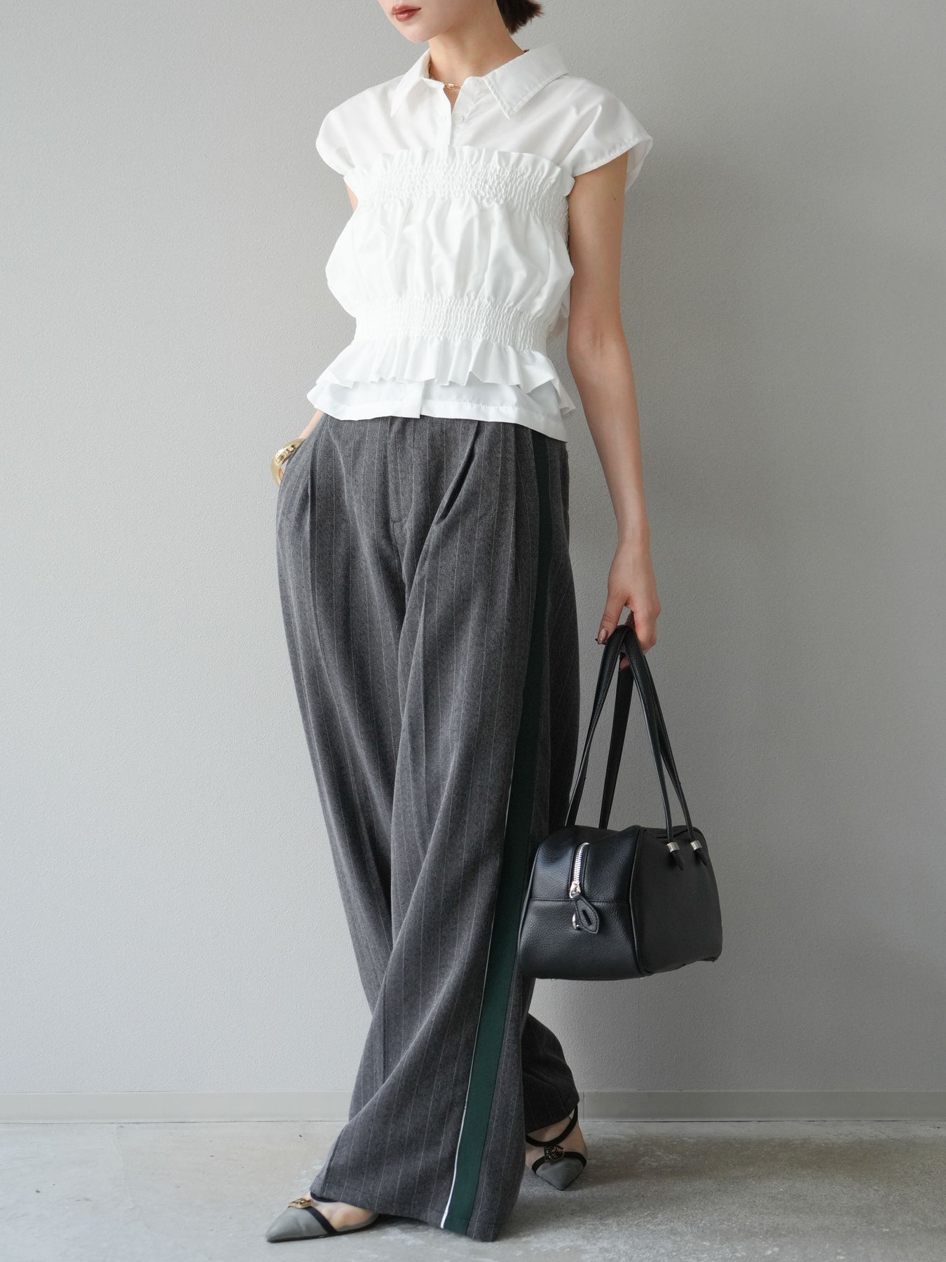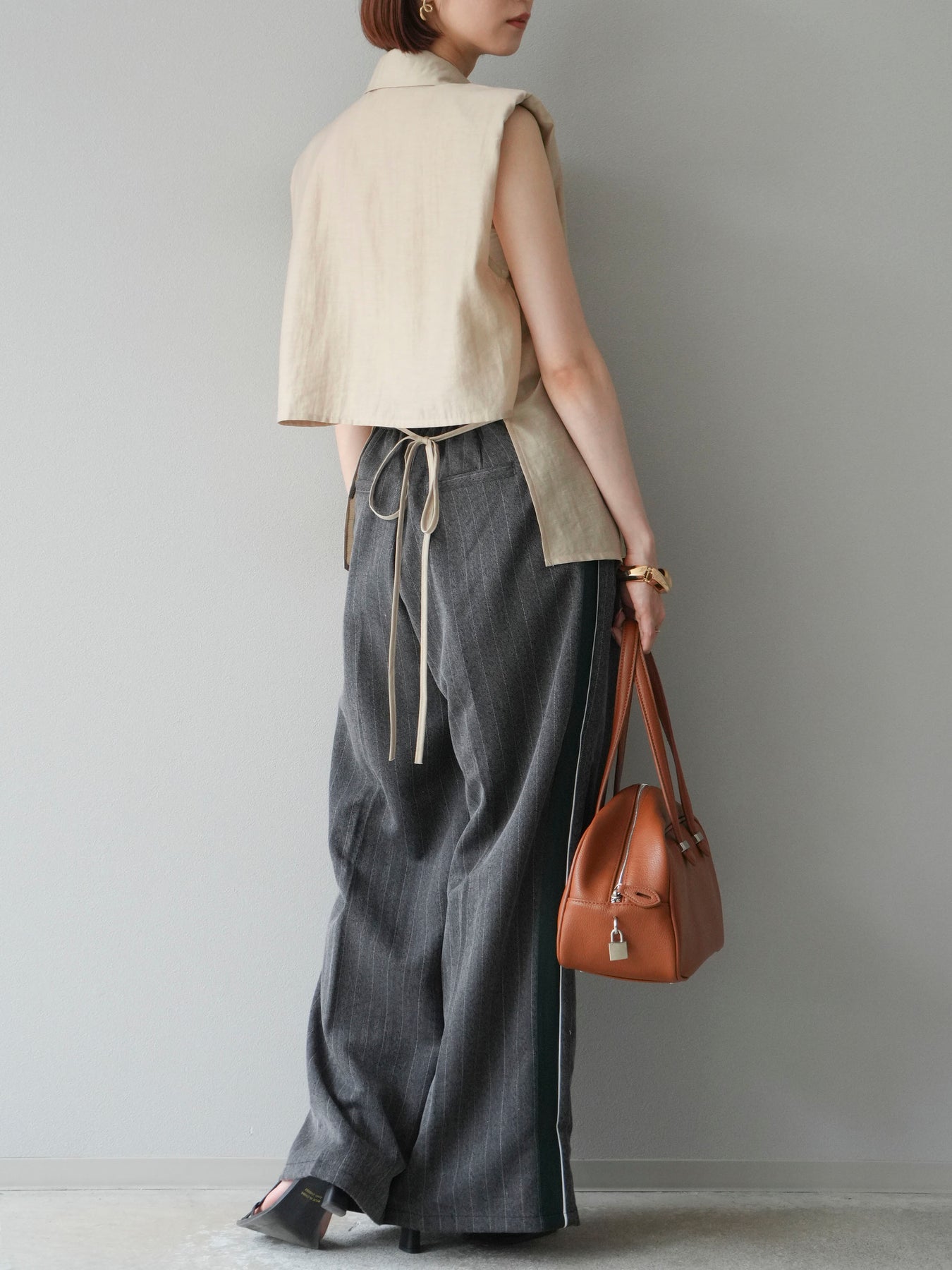 [予約]サイドラインストライプワイドパンツ/チャコール