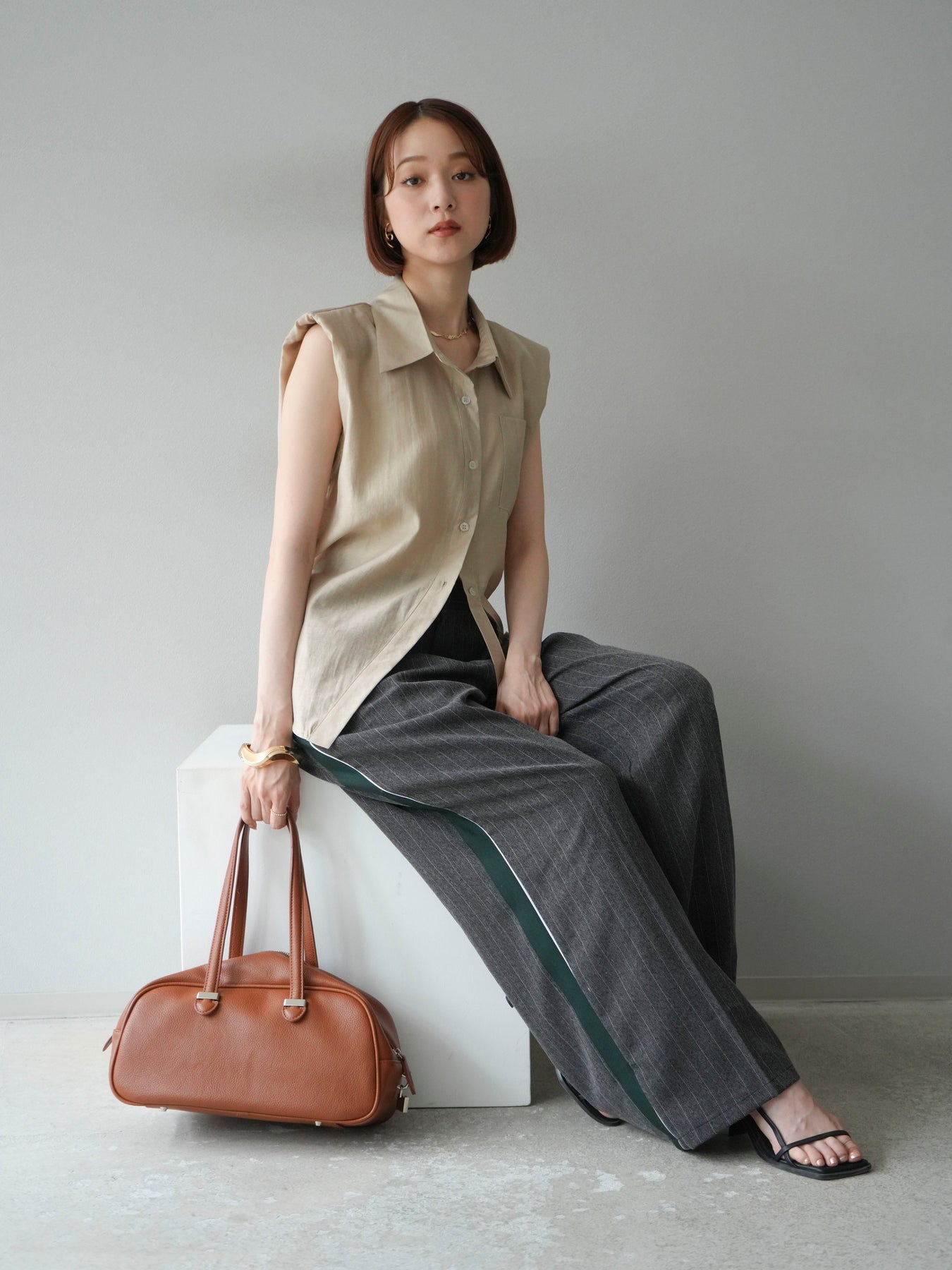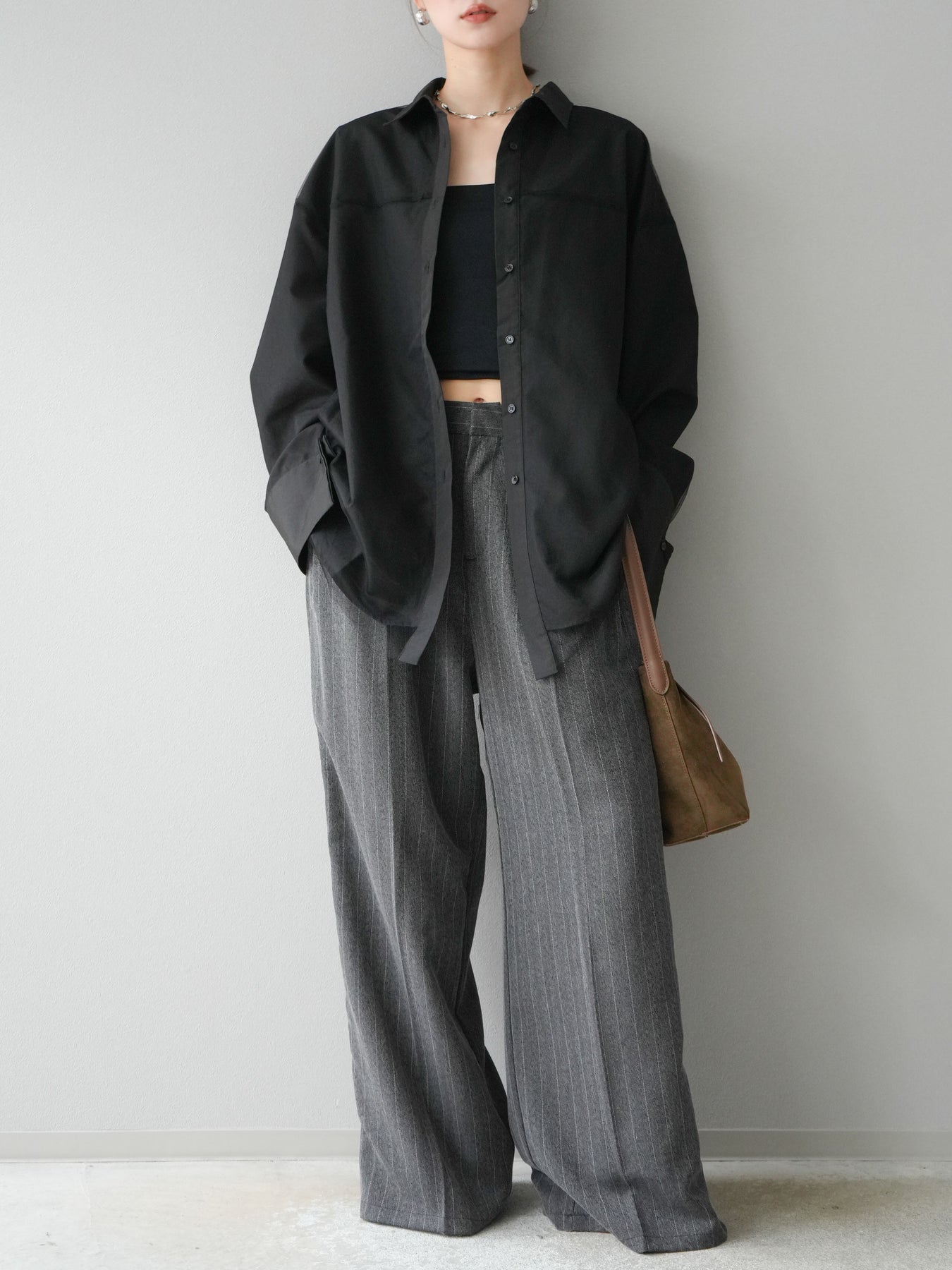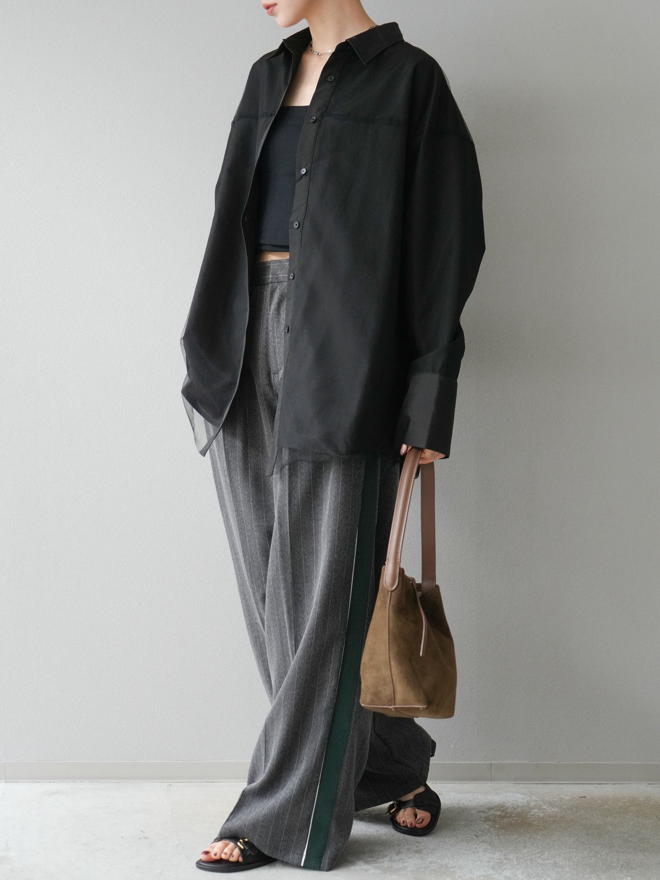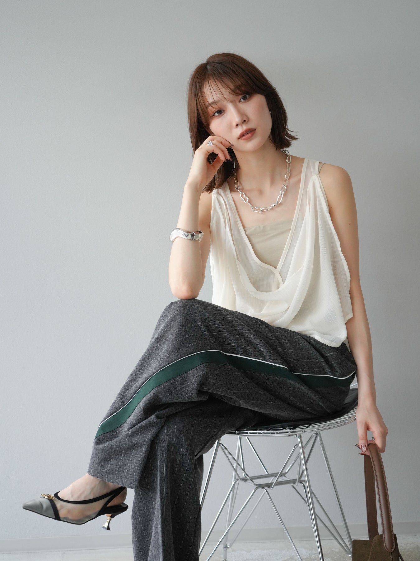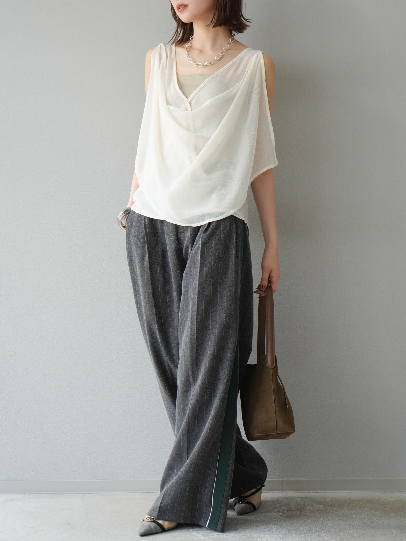 [予約]サイドラインストライプワイドパンツ/チャコール