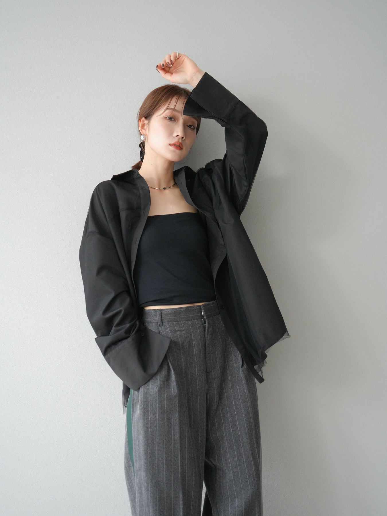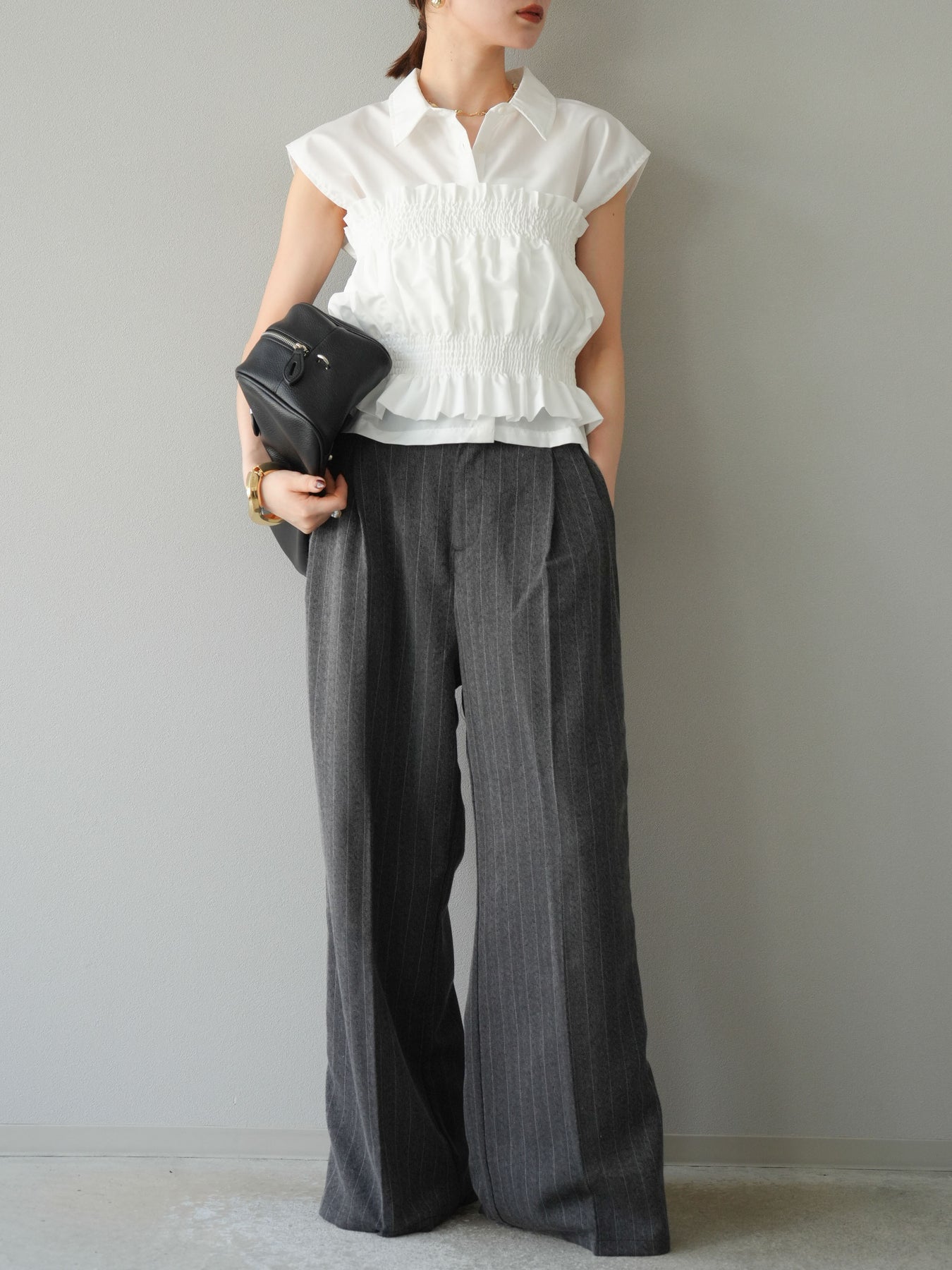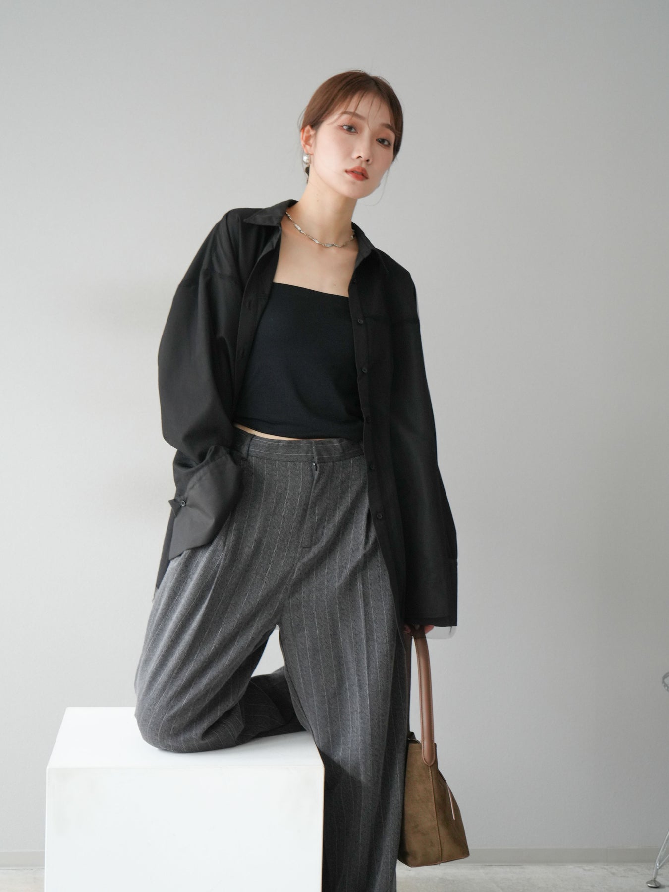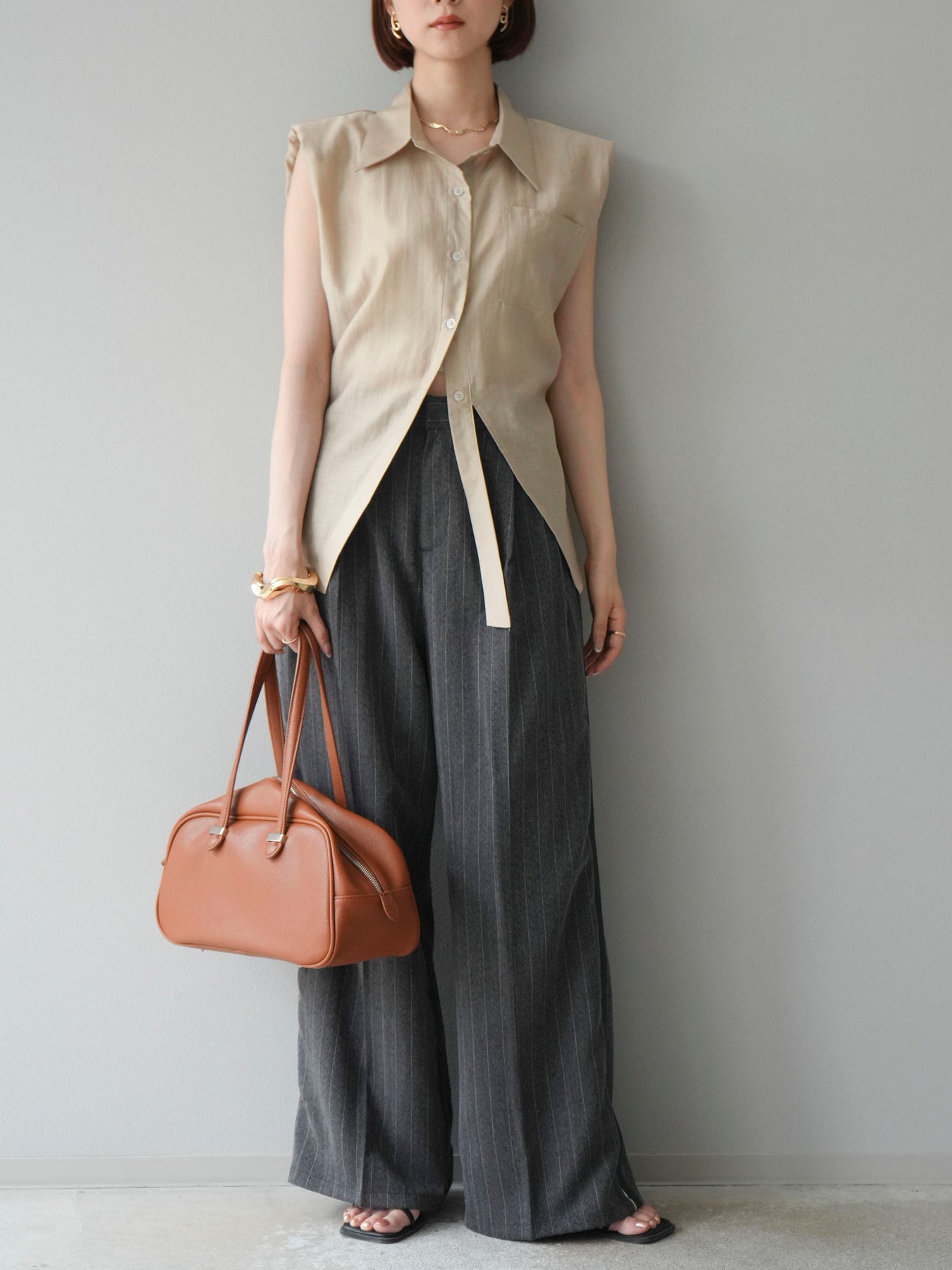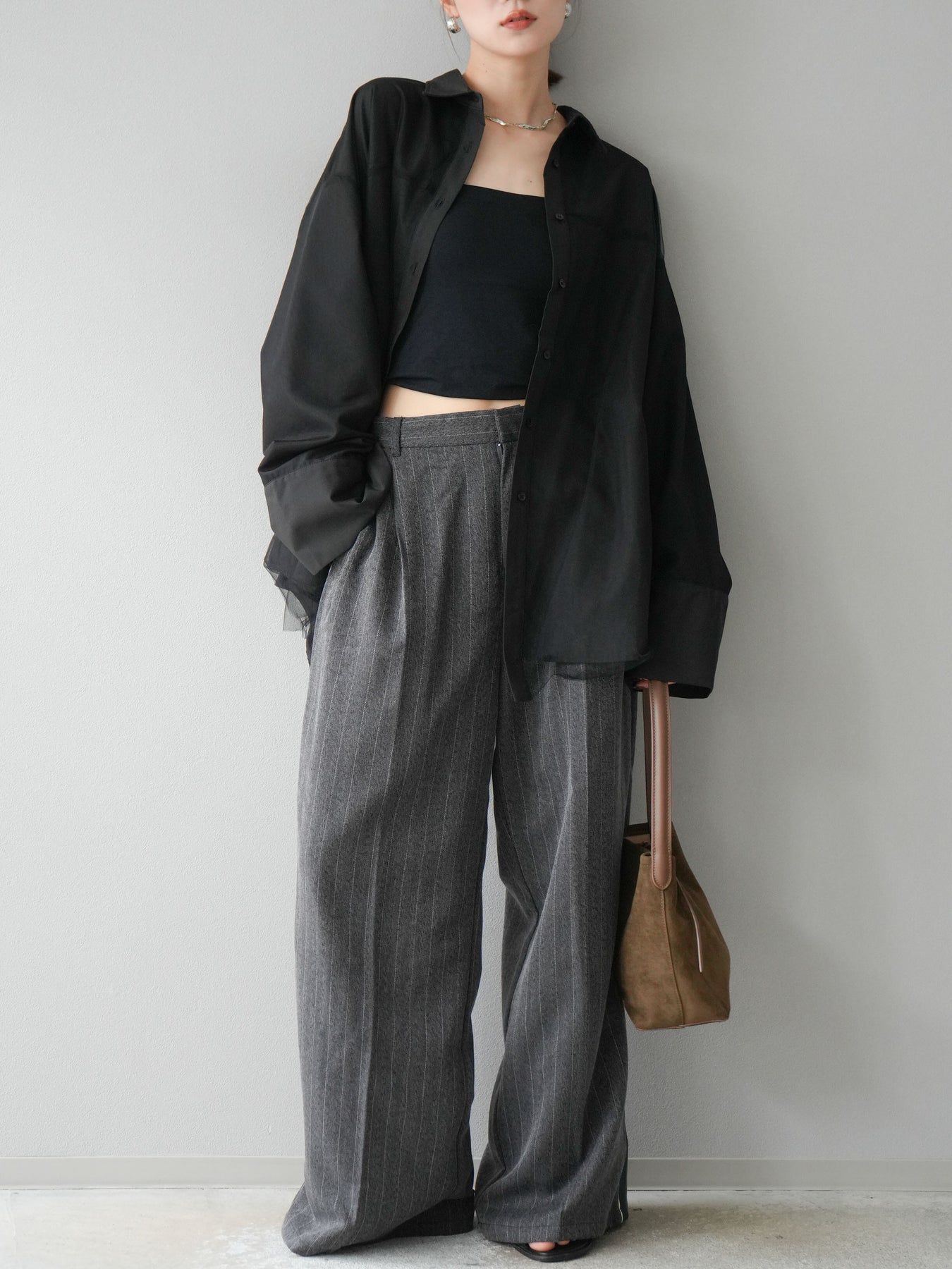 [予約]サイドラインストライプワイドパンツ/チャコール