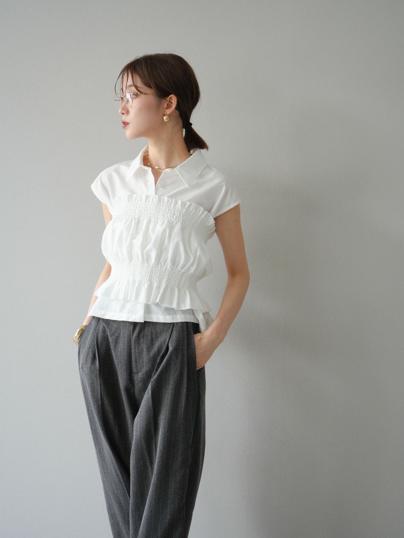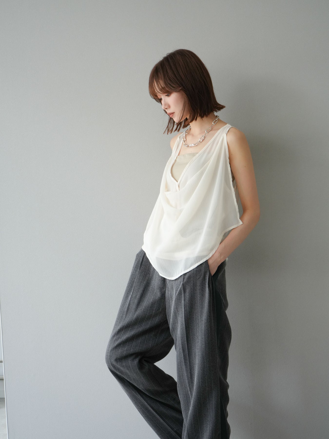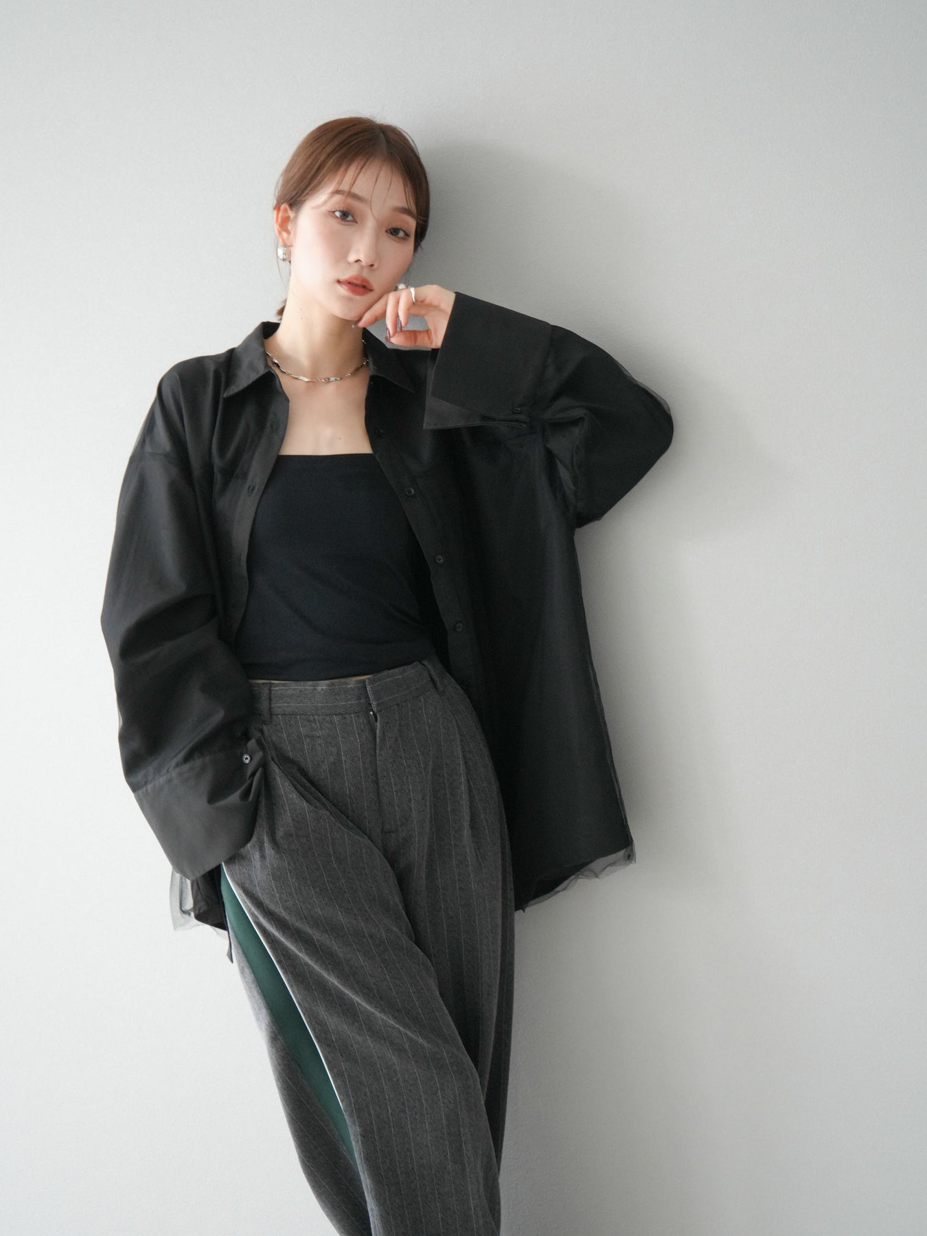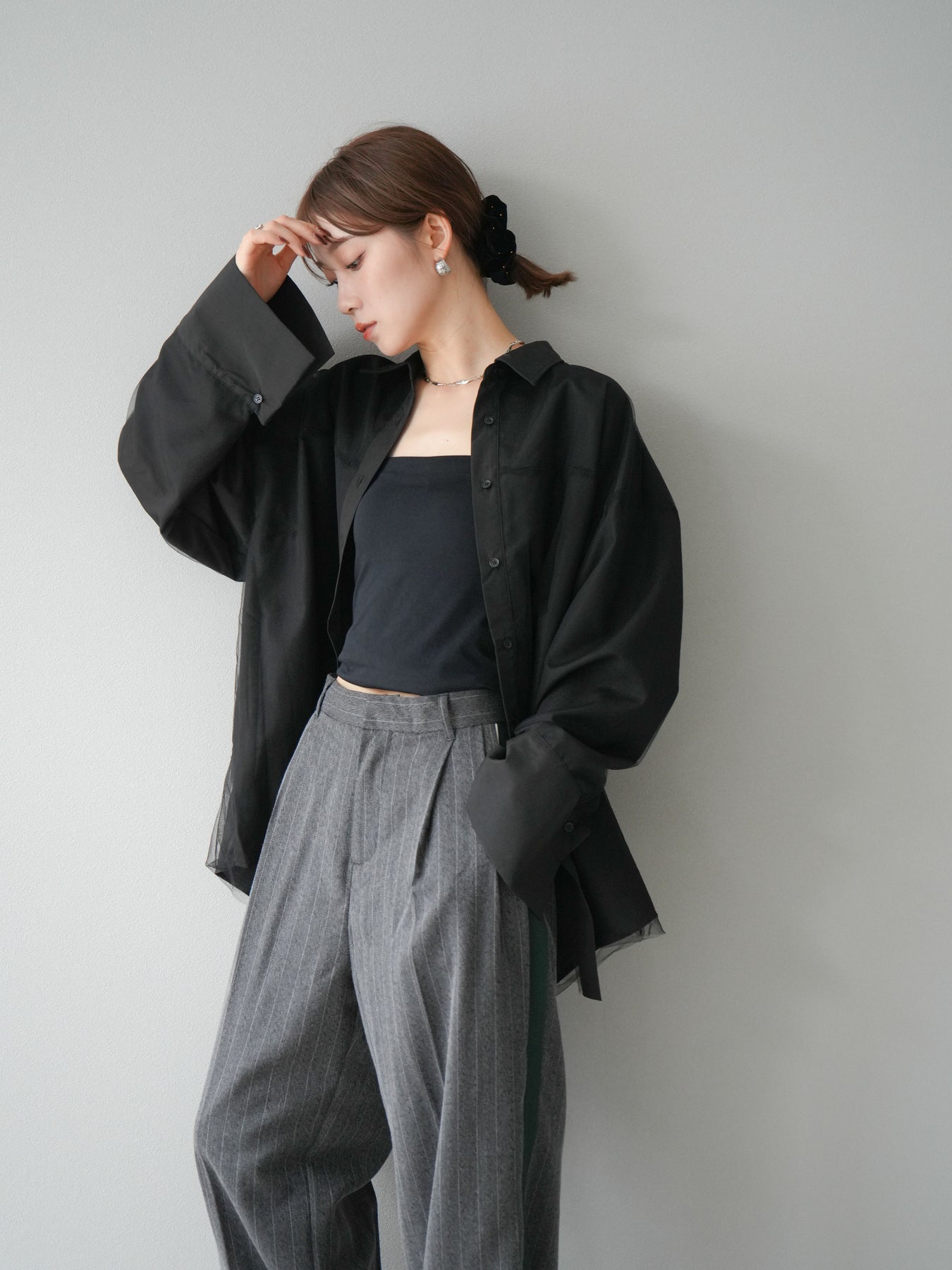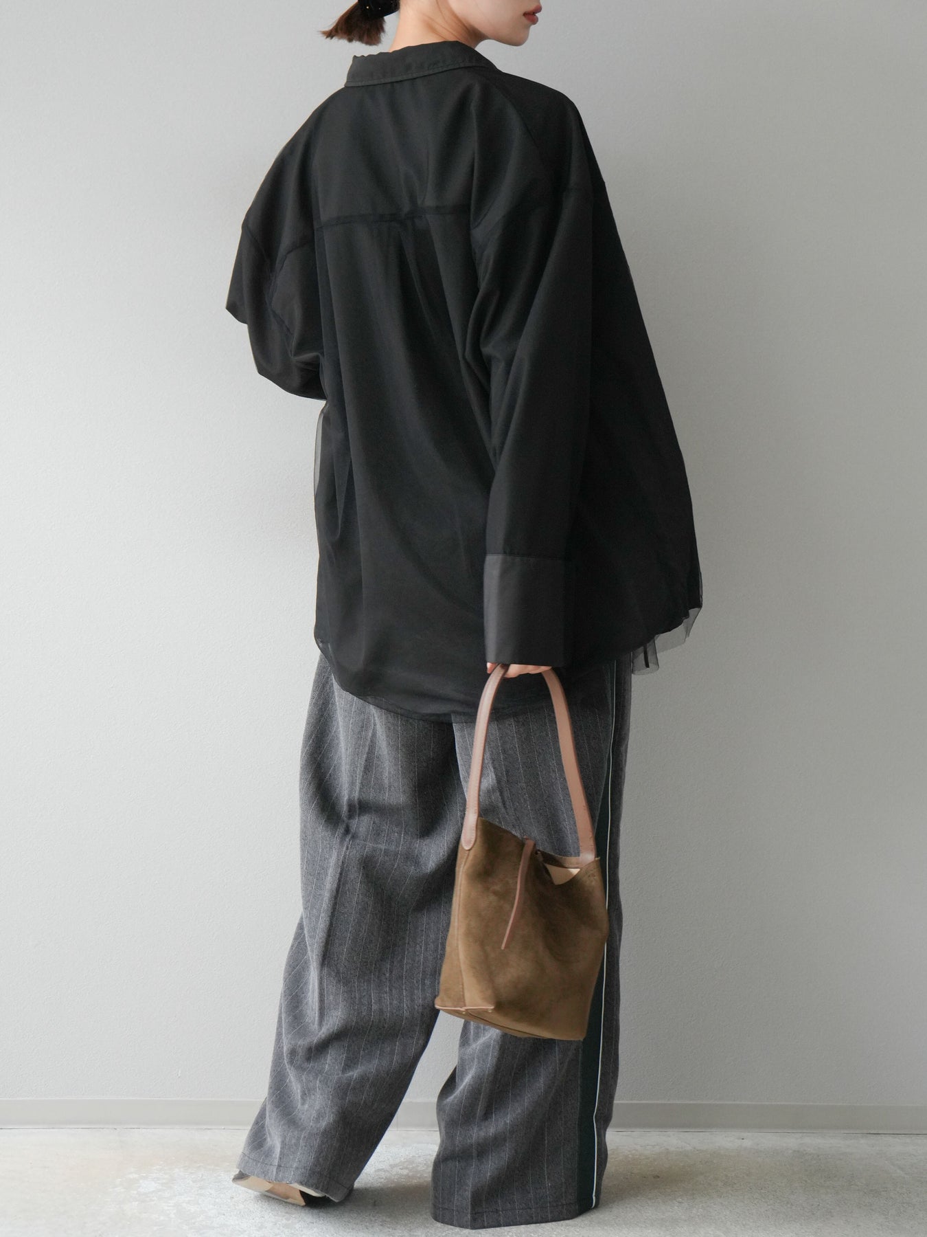 [予約]サイドラインストライプワイドパンツ/チャコール