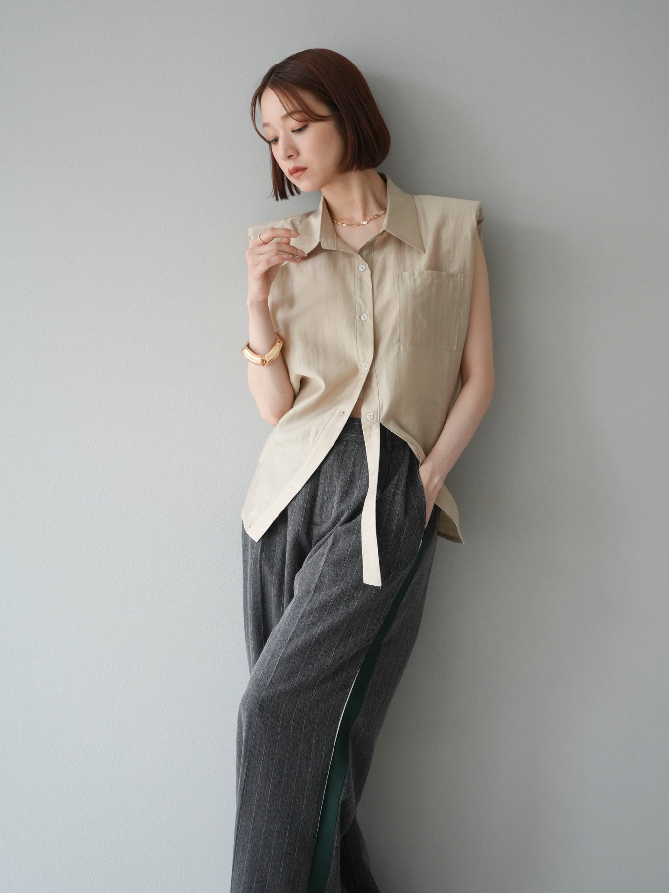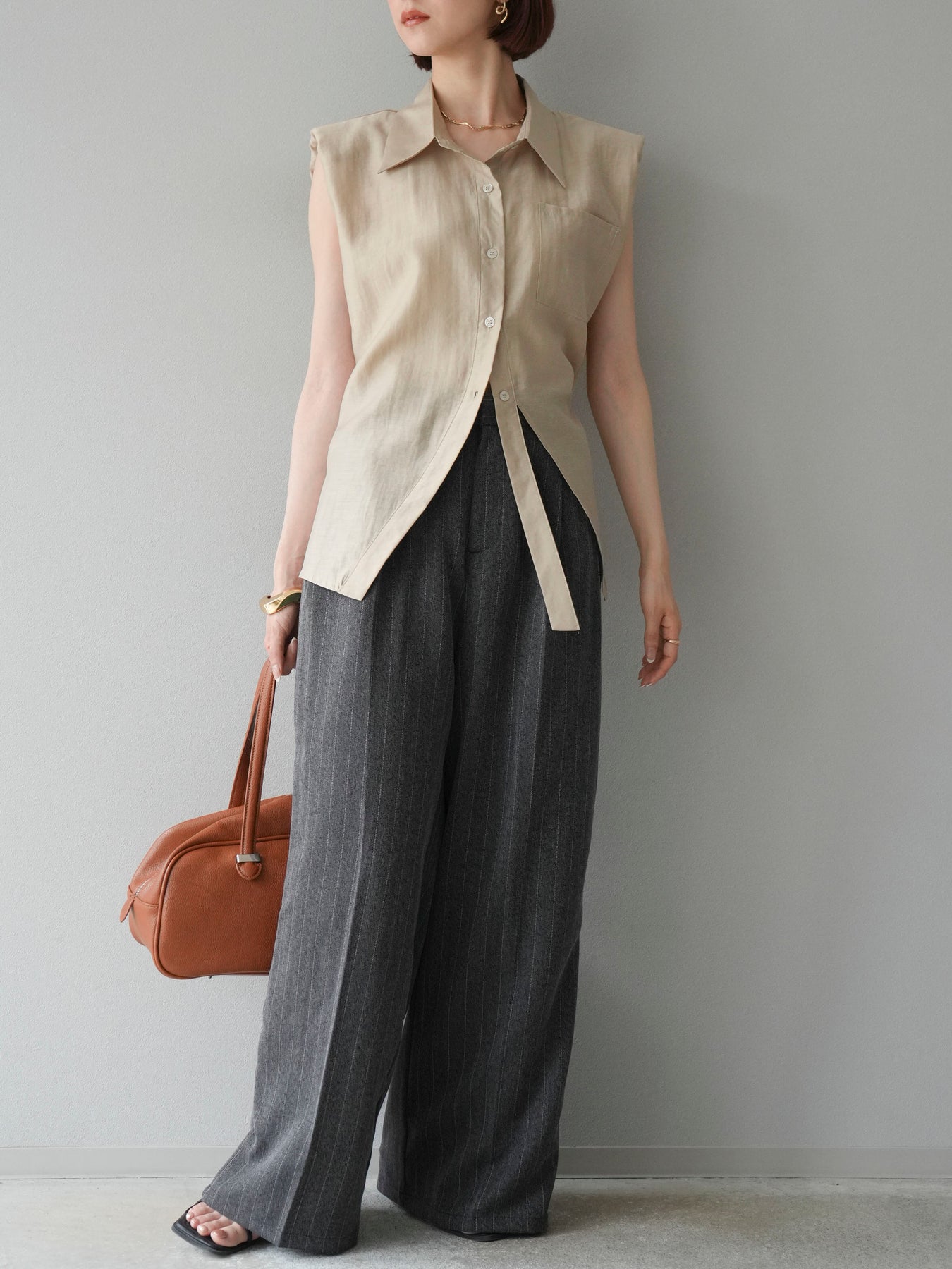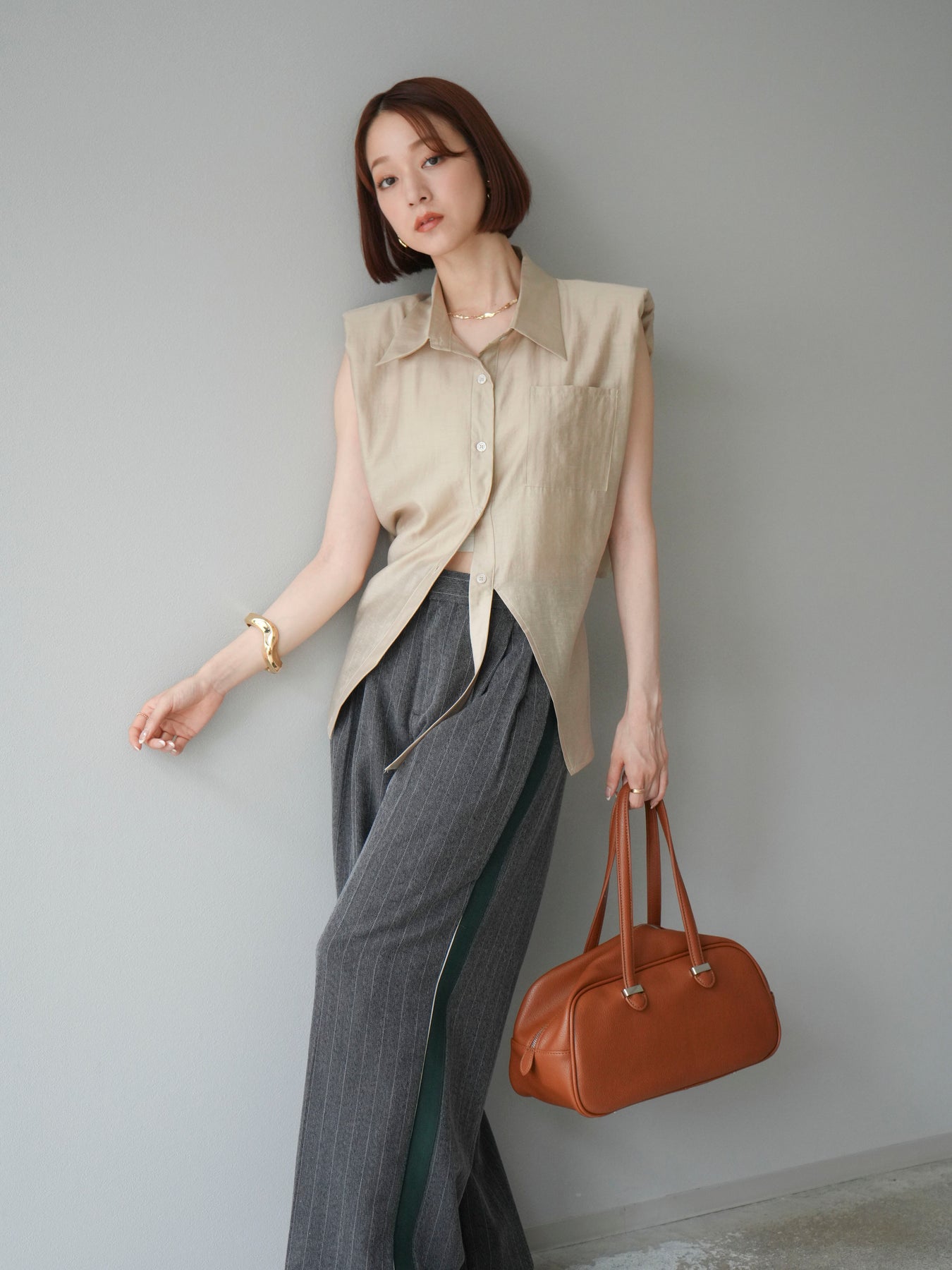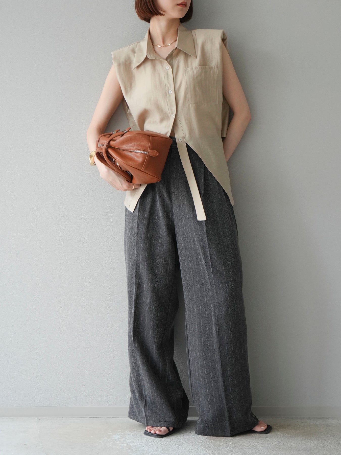 クラシックなストライプ柄に、サイドの配色ラインでスポーティさをプラスしたワイドパンツ。 ストンと落ちるワイドシルエットが脚のラインを拾わず、リラクシーな穿き心地ながらもスマートな印象に。 ウエストはタック入りで、立体感のあるフォルムに仕上げています。 サイドのラインがさりげなくアクセントになり、シンプルなトップスとも相性抜群。 通勤スタイルから休日のカジュアルまで、幅広く活躍する一本です。