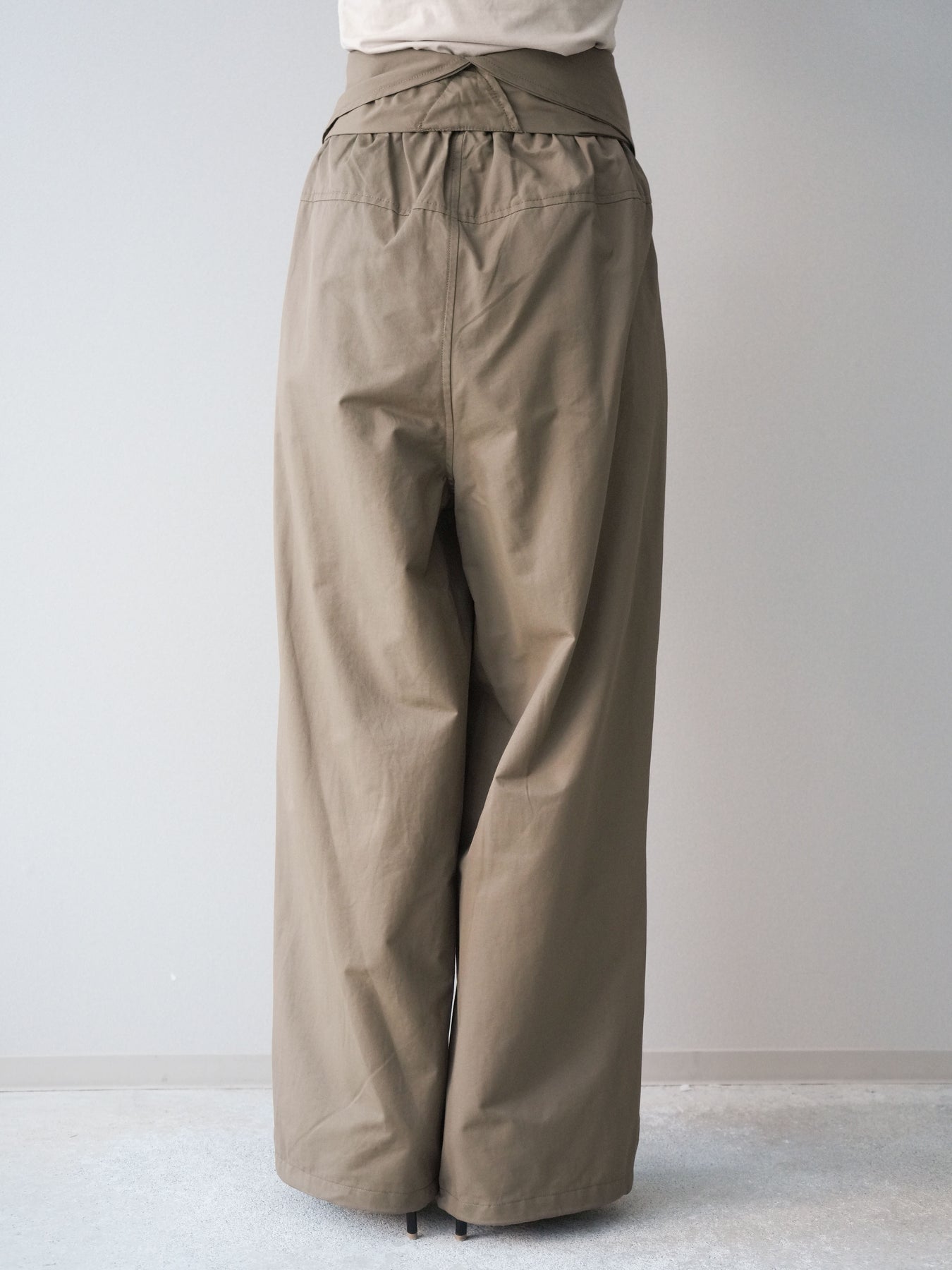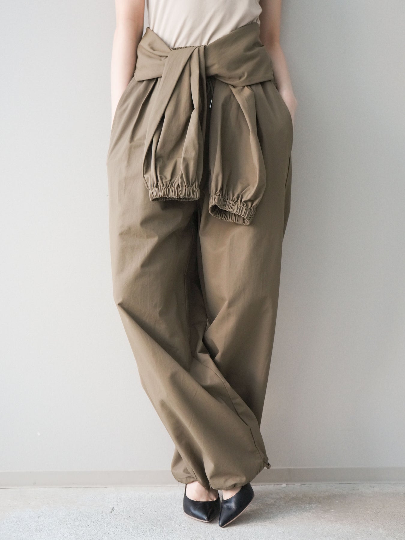 [予約]ウエスト巻きデザインドロストコットンナイロンパンツ/brown