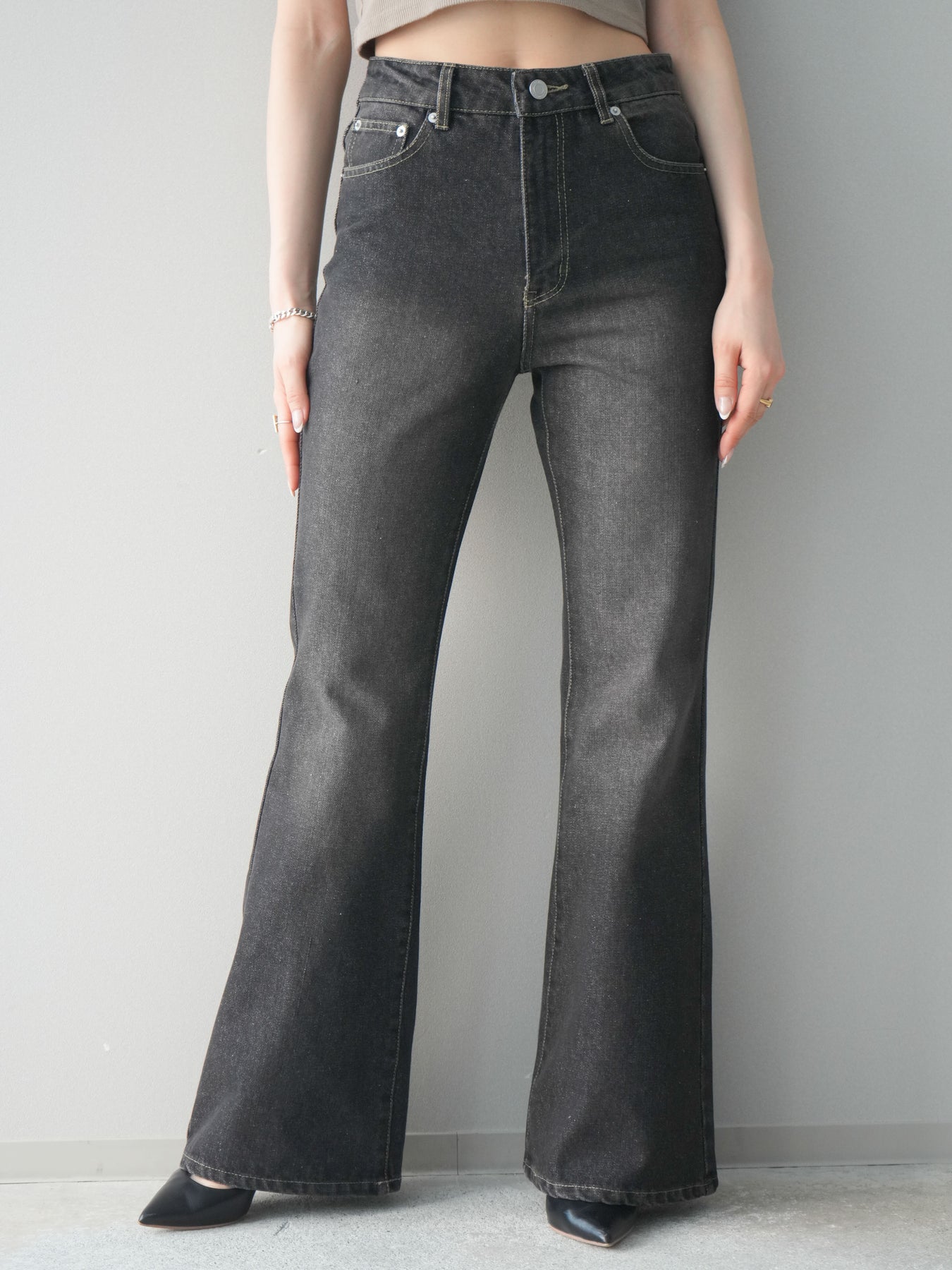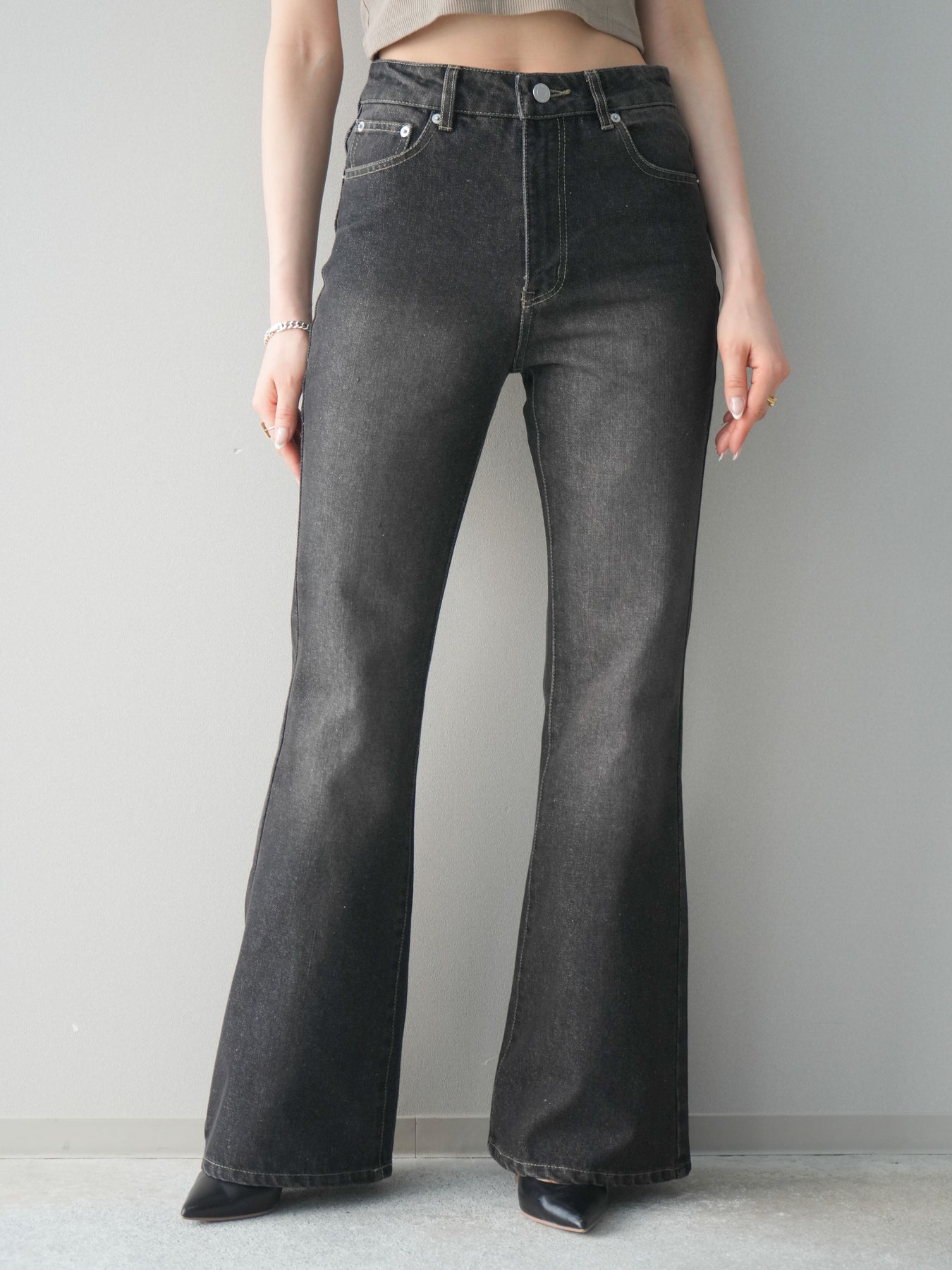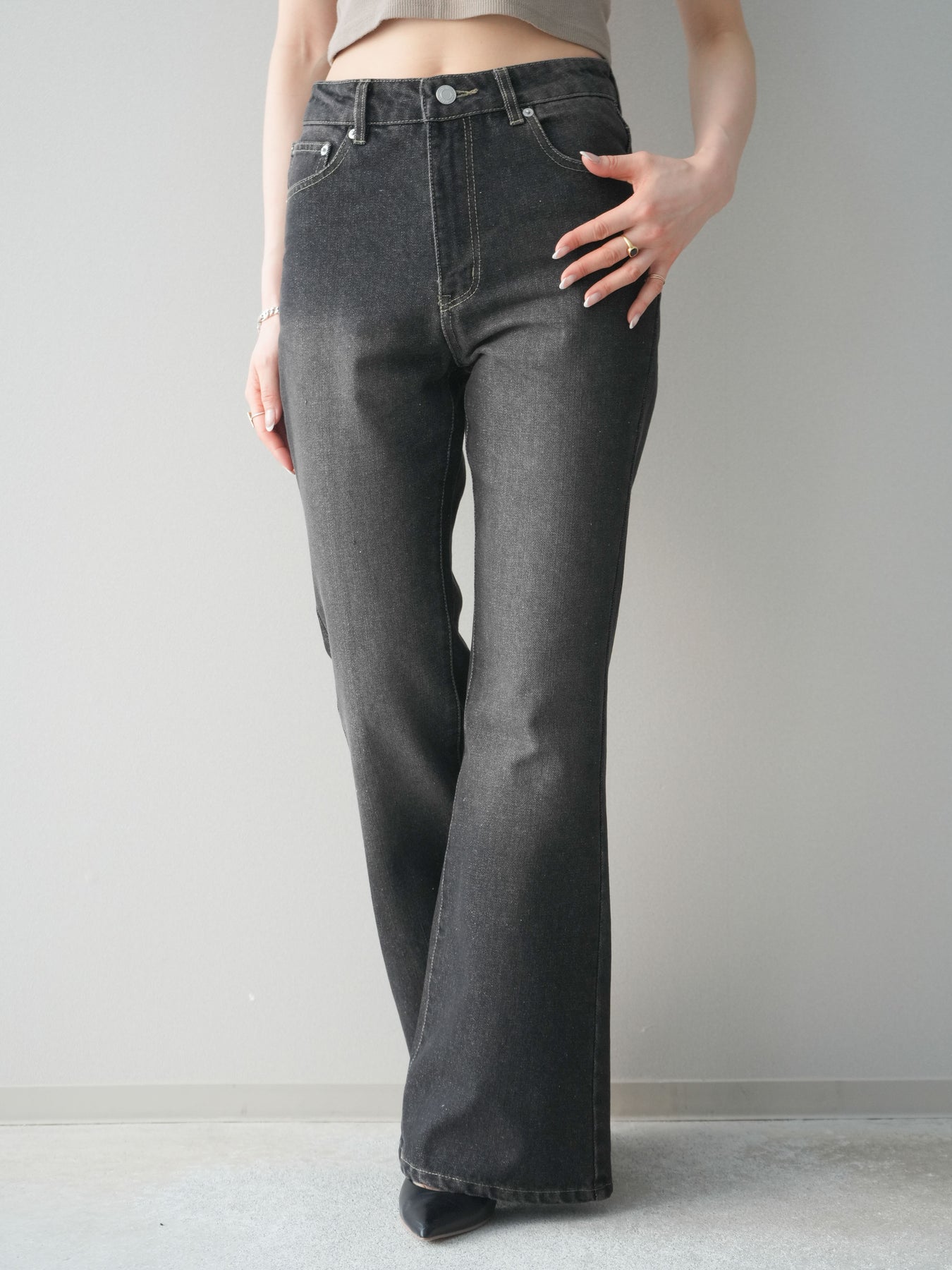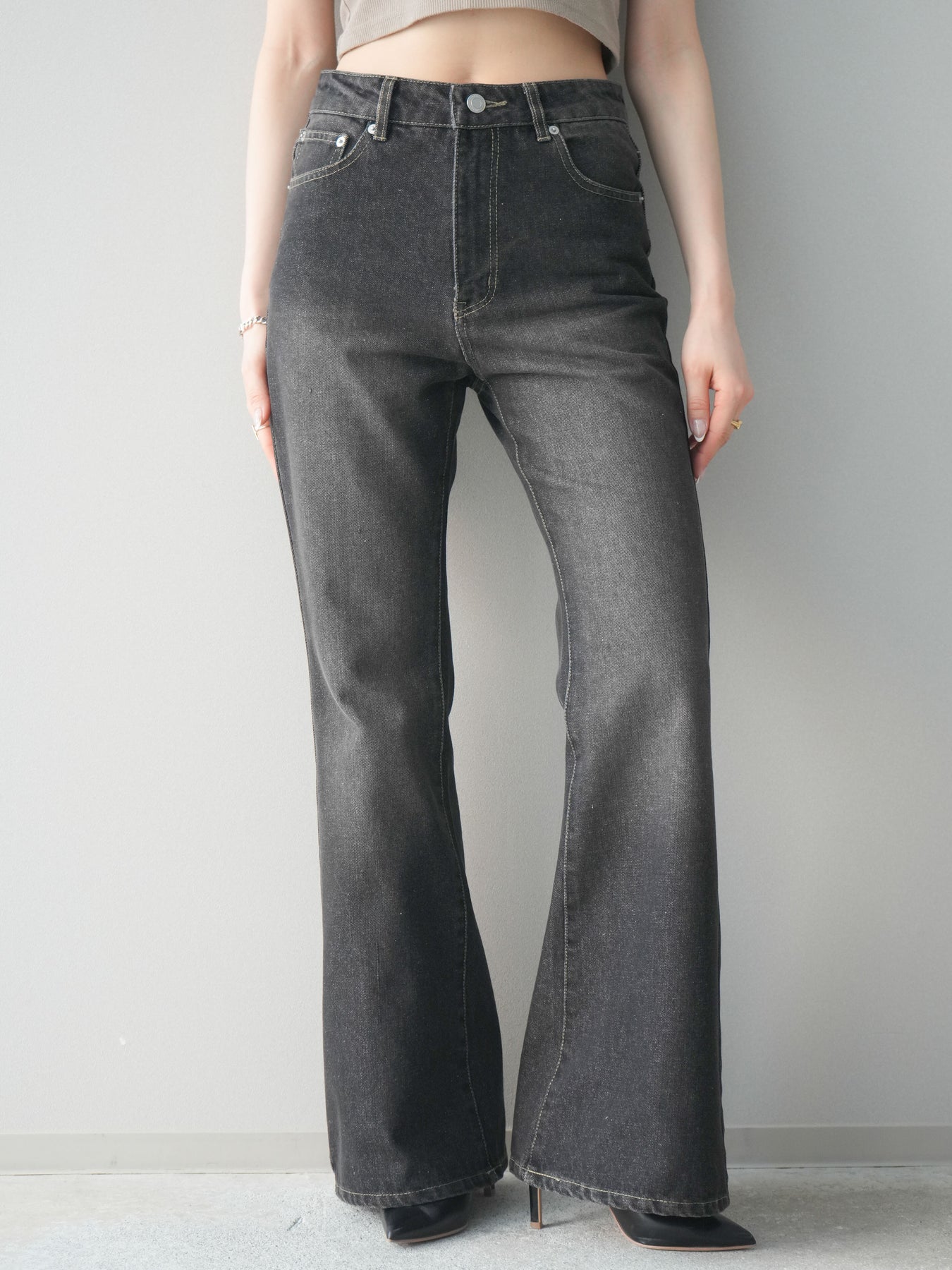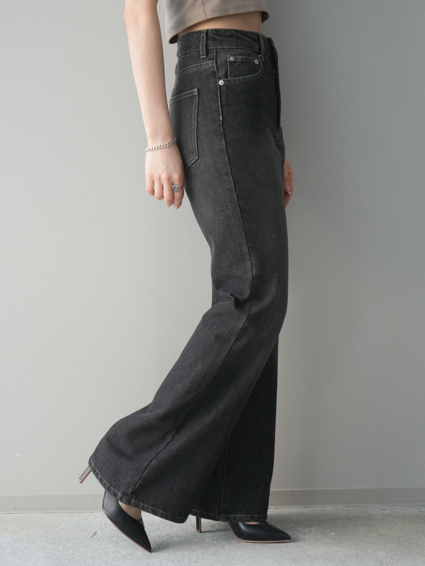 [予約]フレアデニムパンツ/black