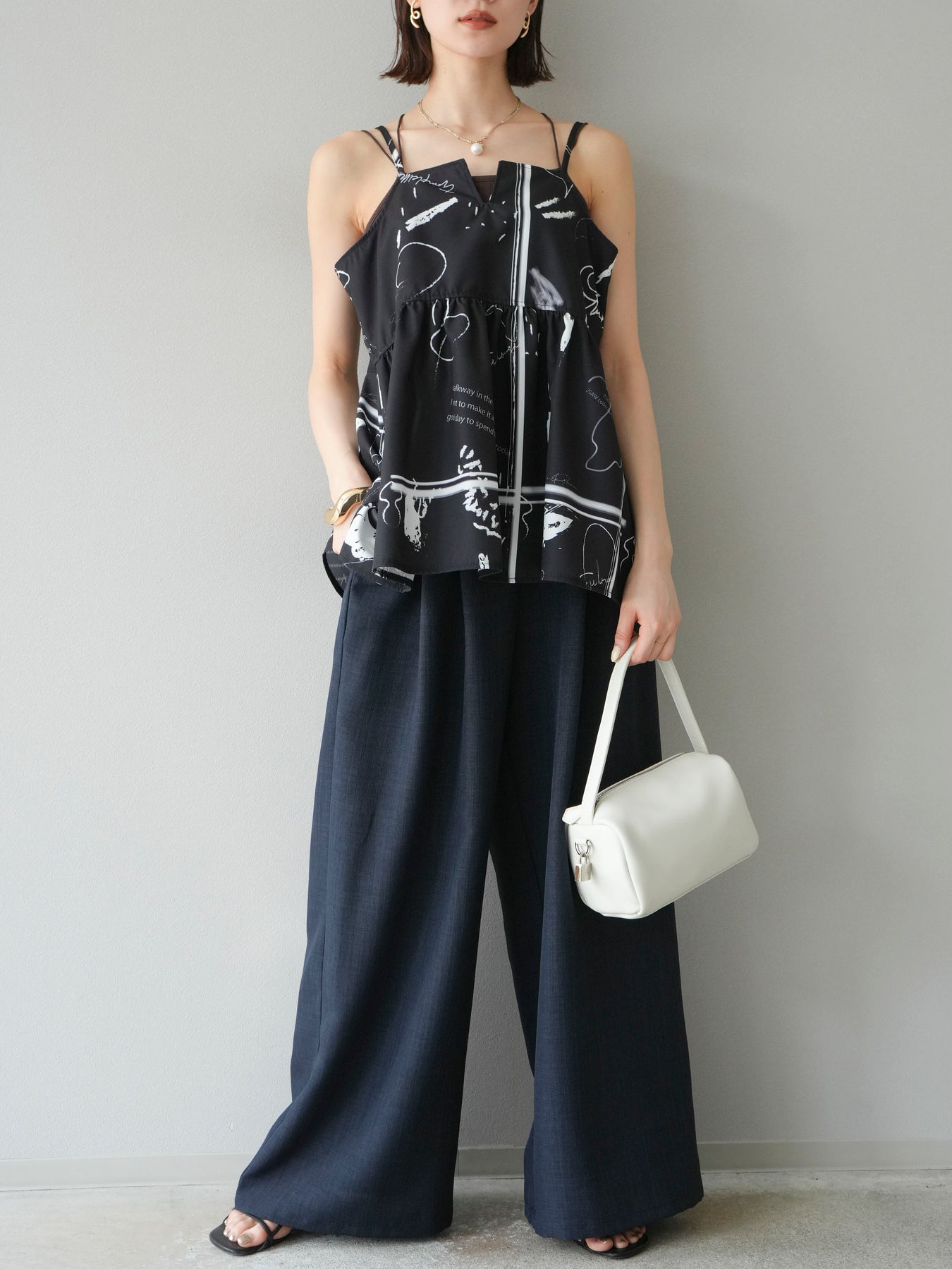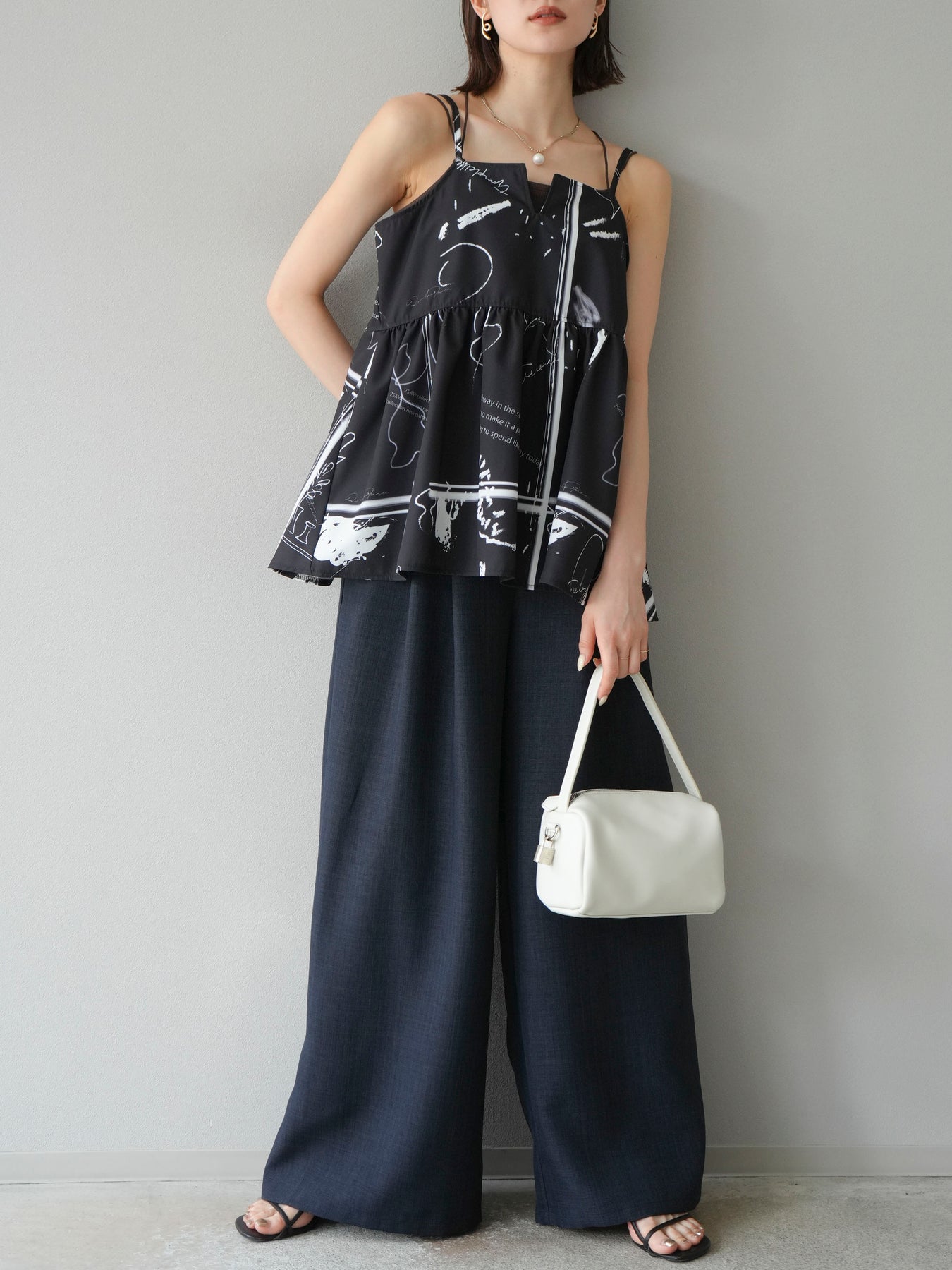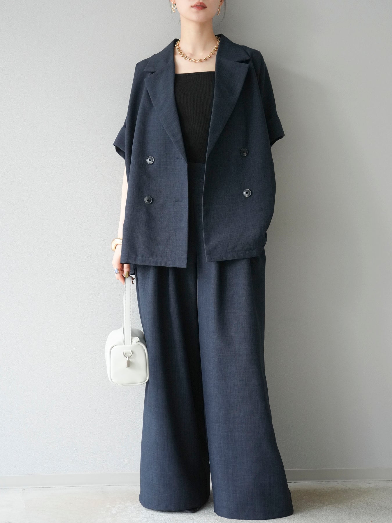 [予約]リネンライクイージーワイドパンツ/チャコール