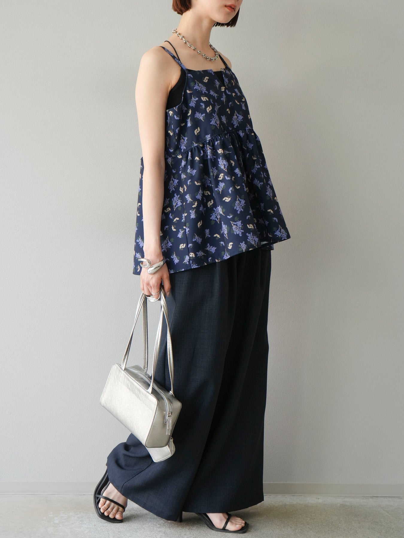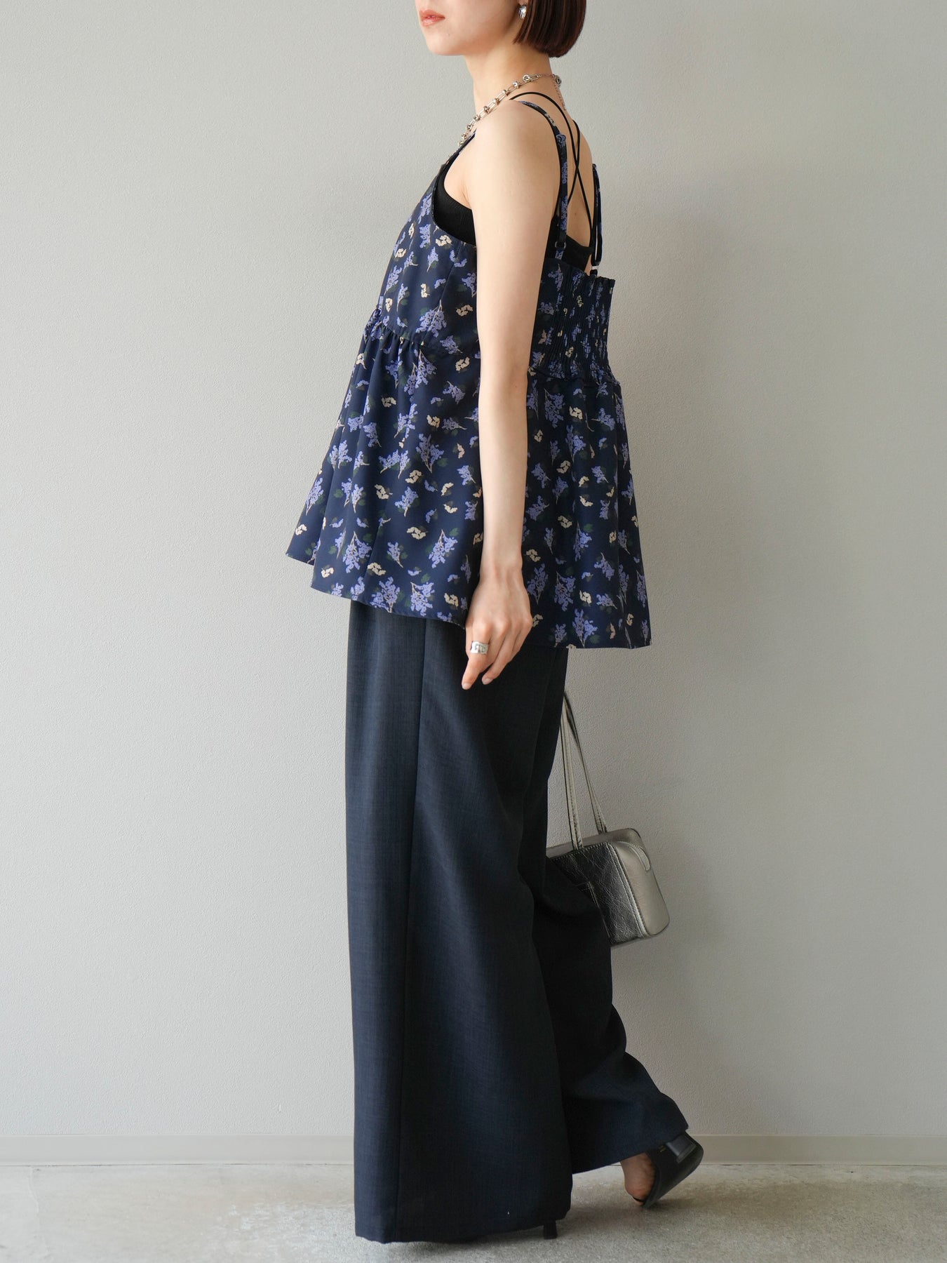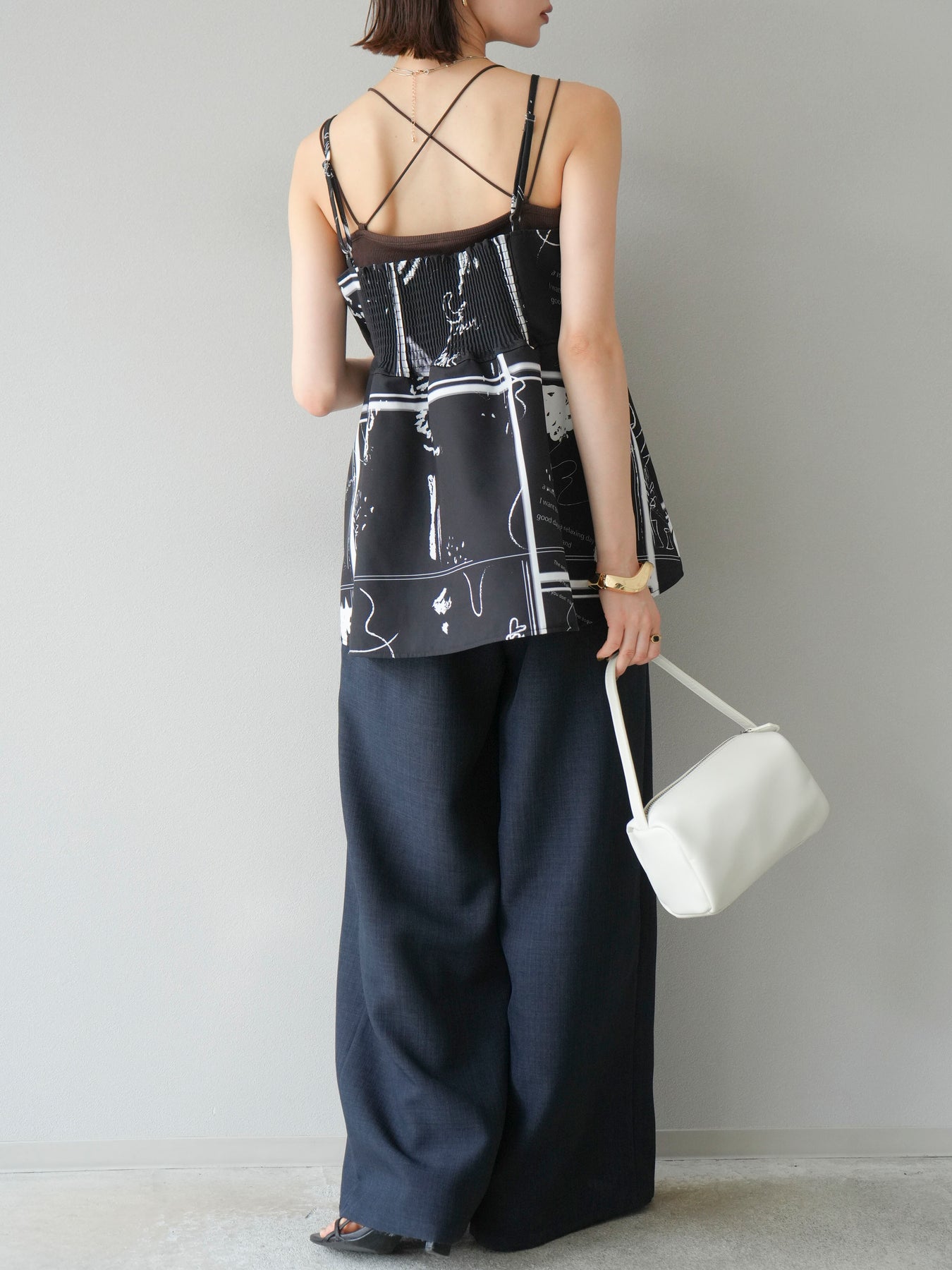 [予約]リネンライクイージーワイドパンツ/チャコール