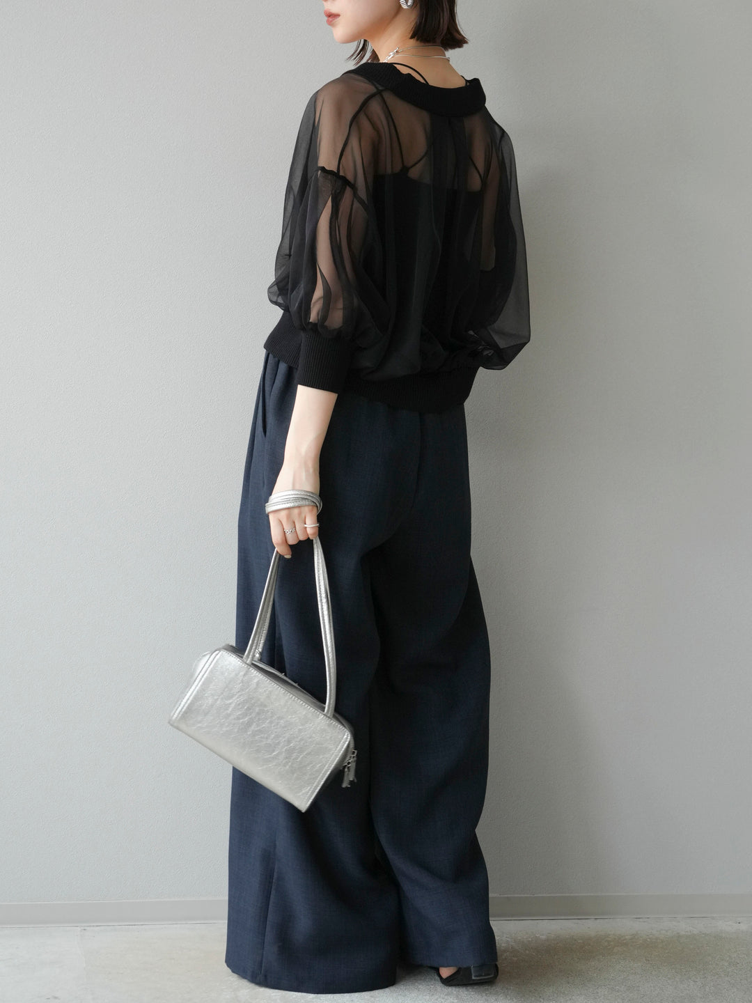 ・お手入れ方法:水温30℃以下手洗いでのお洗濯をお薦めします。素材の特性上、洗濯の際に色落ち・縮みが生じる恐れがありますので単独で・短時間でのお洗濯をお薦めします。裏返してネットに入れ手洗いコースで洗濯、洗濯後は形を整えてから干してください。※タンブラー乾燥は控えてください。 濡れたままの状態で擦れると、色落ち色移りすることがあります。つけ置き洗いや雨や汗で濡れたまま放置は避け、速やかに処理してください。着用中の摩擦や汗、水濡れ、濃淡差があるものとの重ね着にご注意ください。