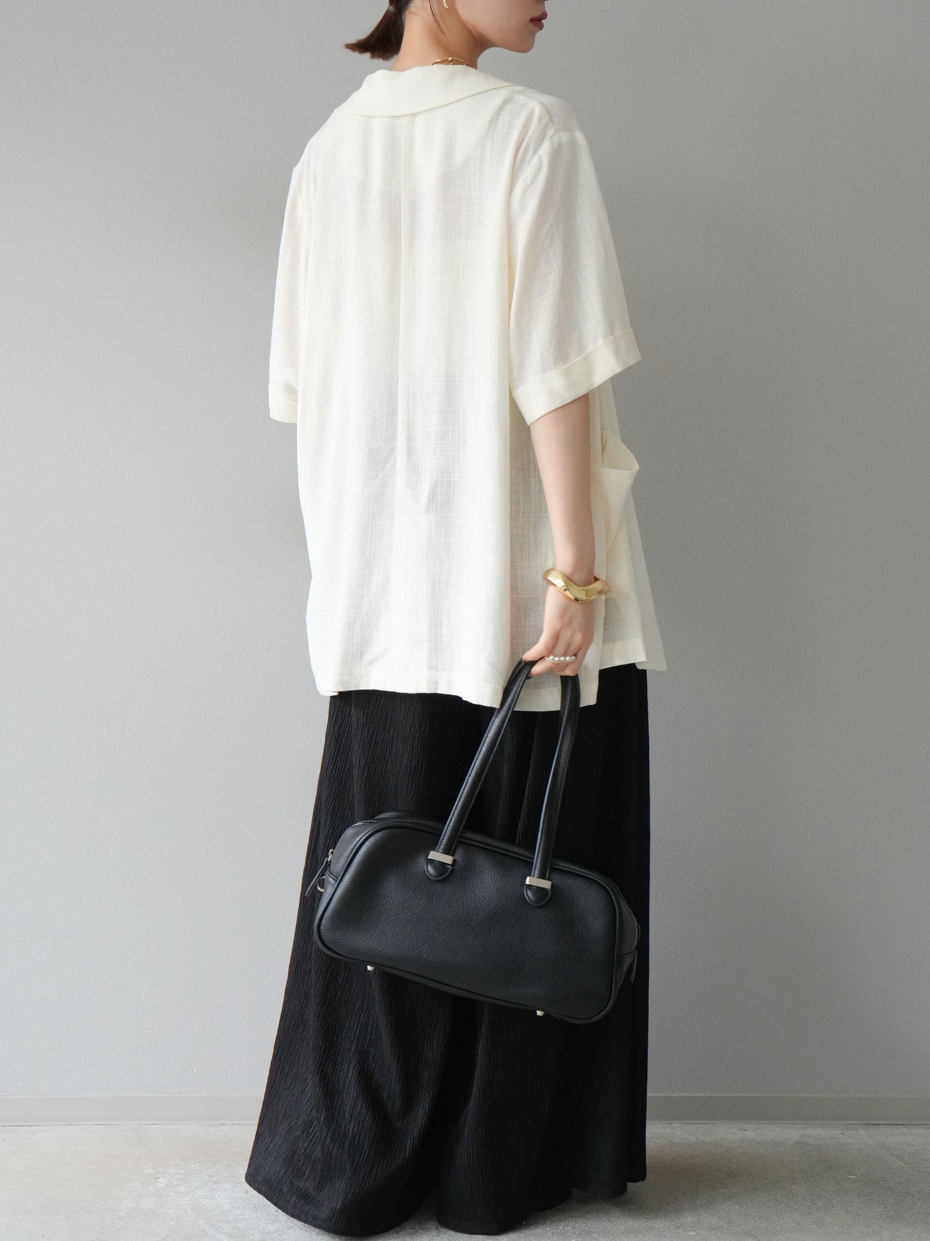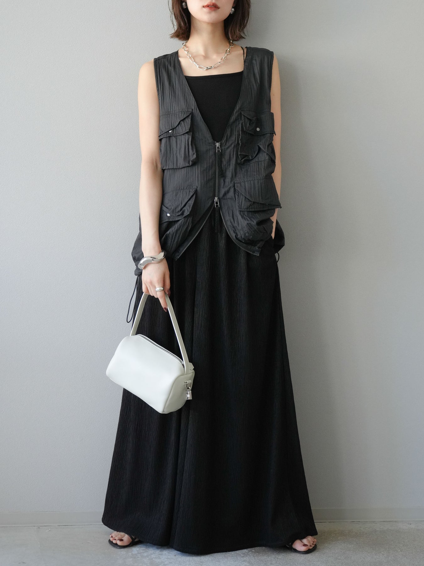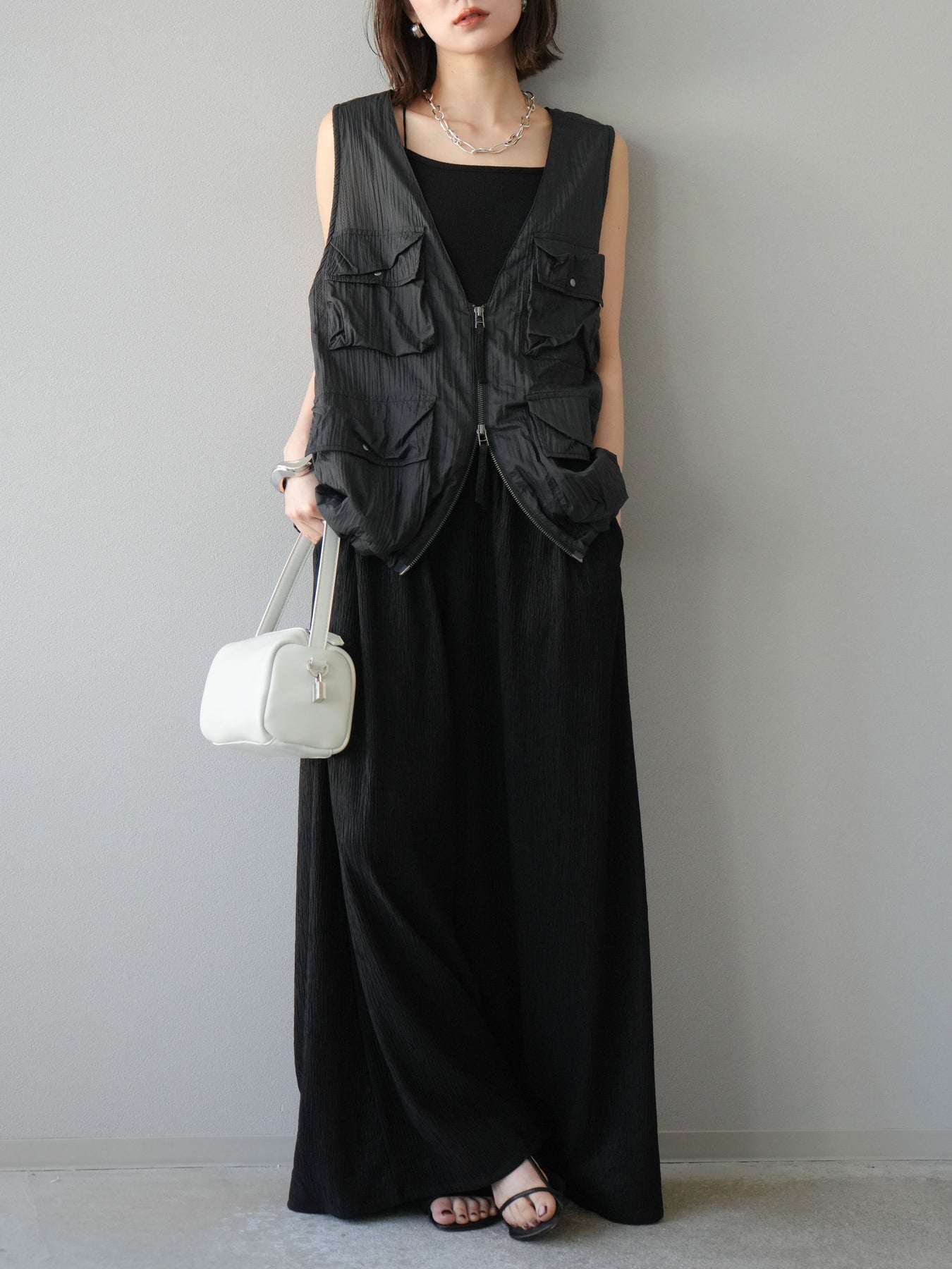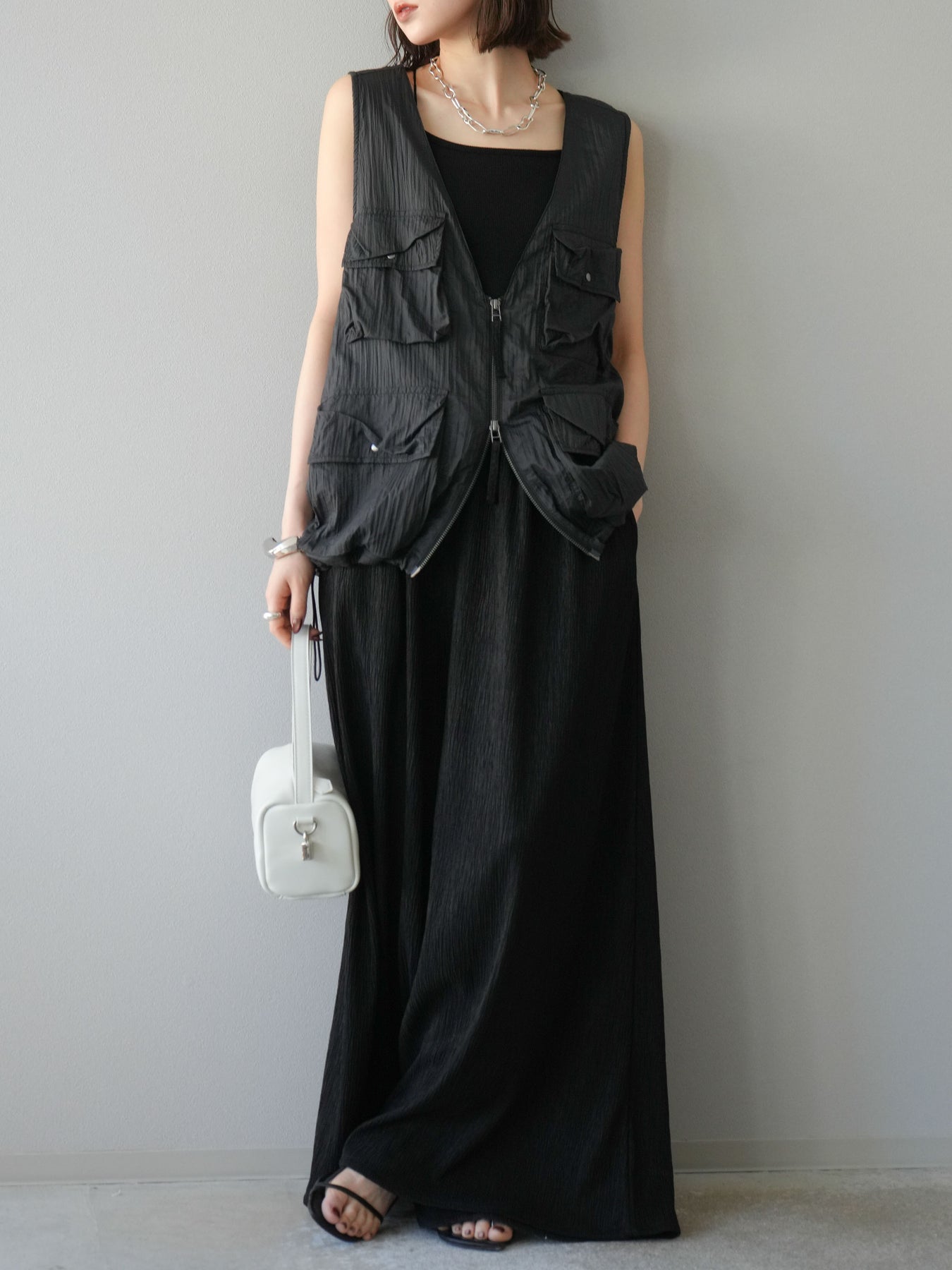 凹凸感のある表面が特徴の楊柳素材を使用した、涼しげな風合いのバギーパンツ。柔らかく軽やかな履き心地で、暑い季節にも快適に着用できます。 ウエストは総ゴム+ドローストリング仕様でリラクシーなフィット感。たっぷりと生地を使ったボリューム感のあるワイドシルエットが、動くたびに揺れ、抜け感のあるスタイルを演出します。 シンプルなトップスを合わせるだけで存在感のある着こなしが完成する、デイリーに活躍する1本です。