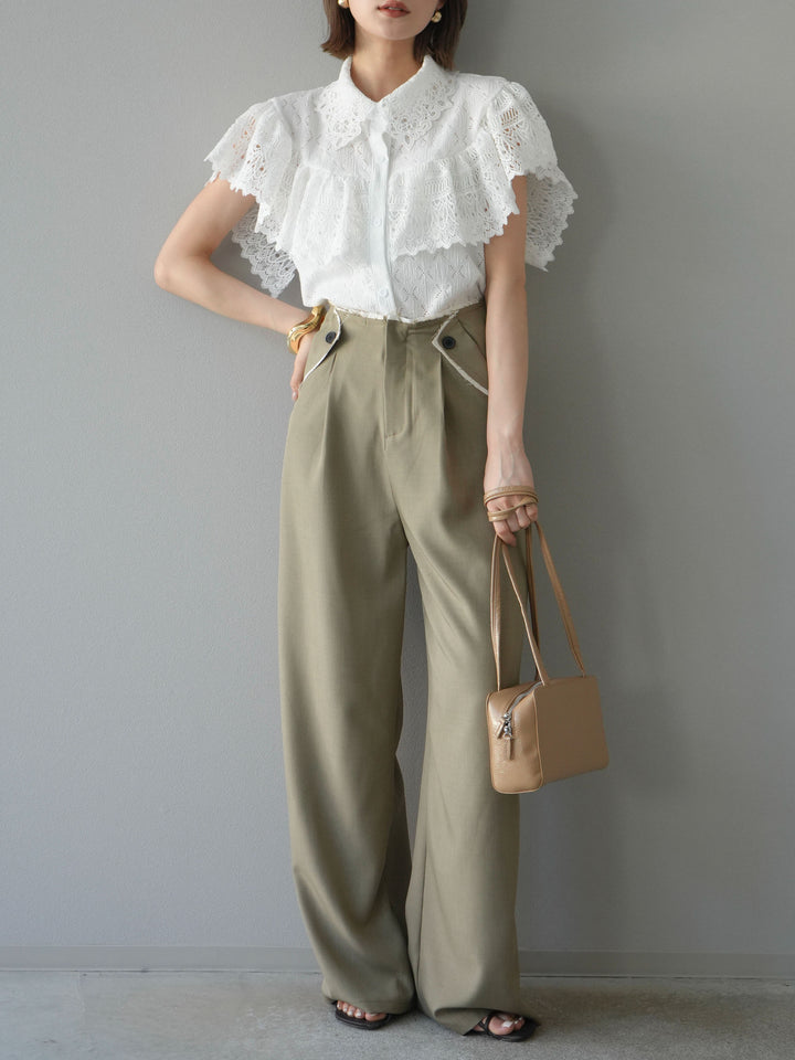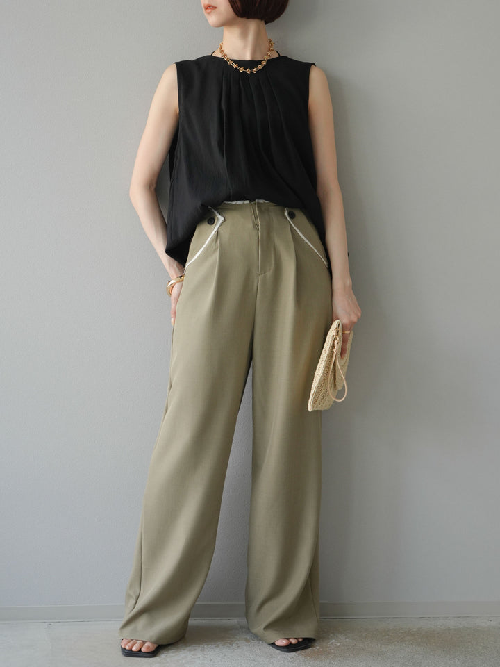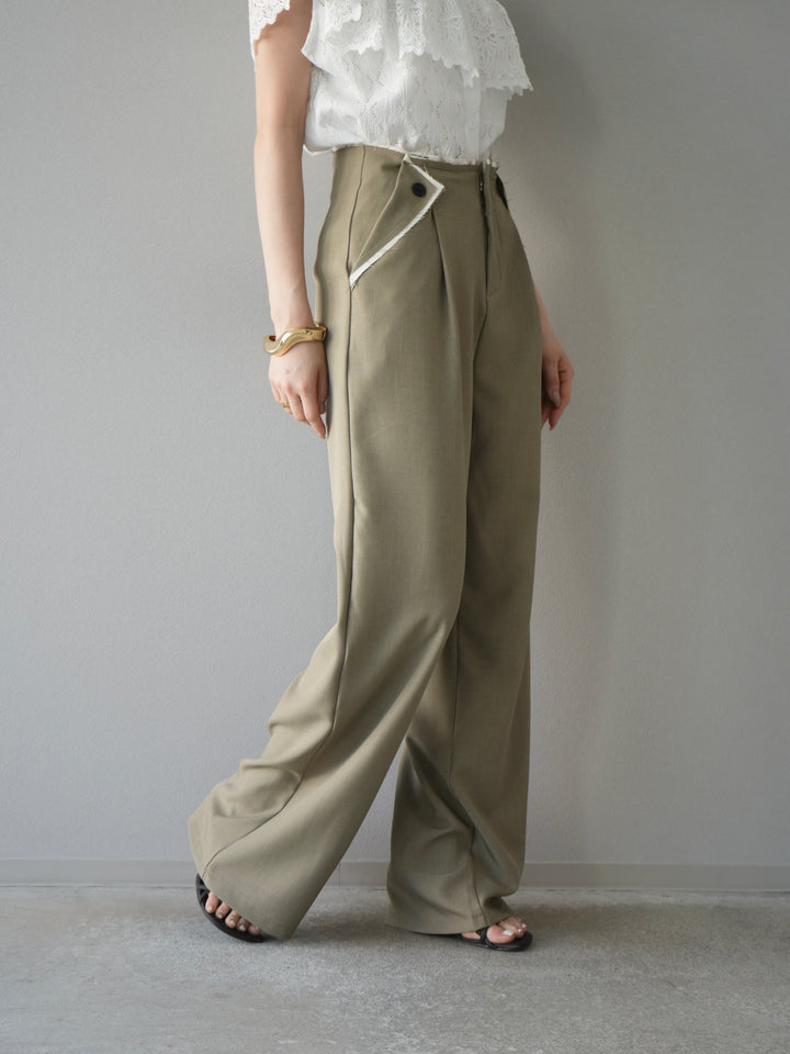 [予約]カットオフレイヤードデザインパンツ/カーキ