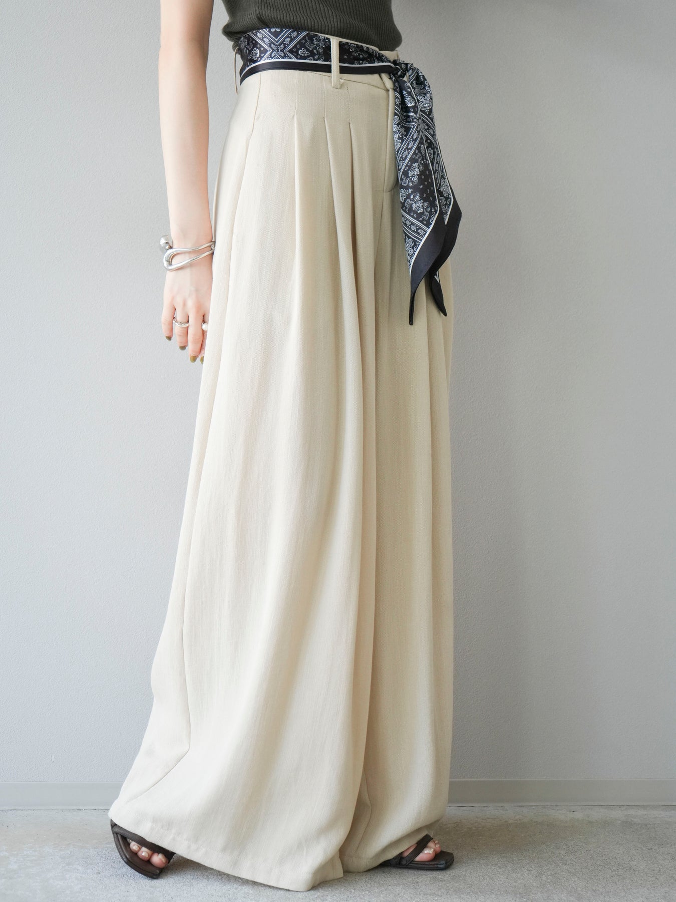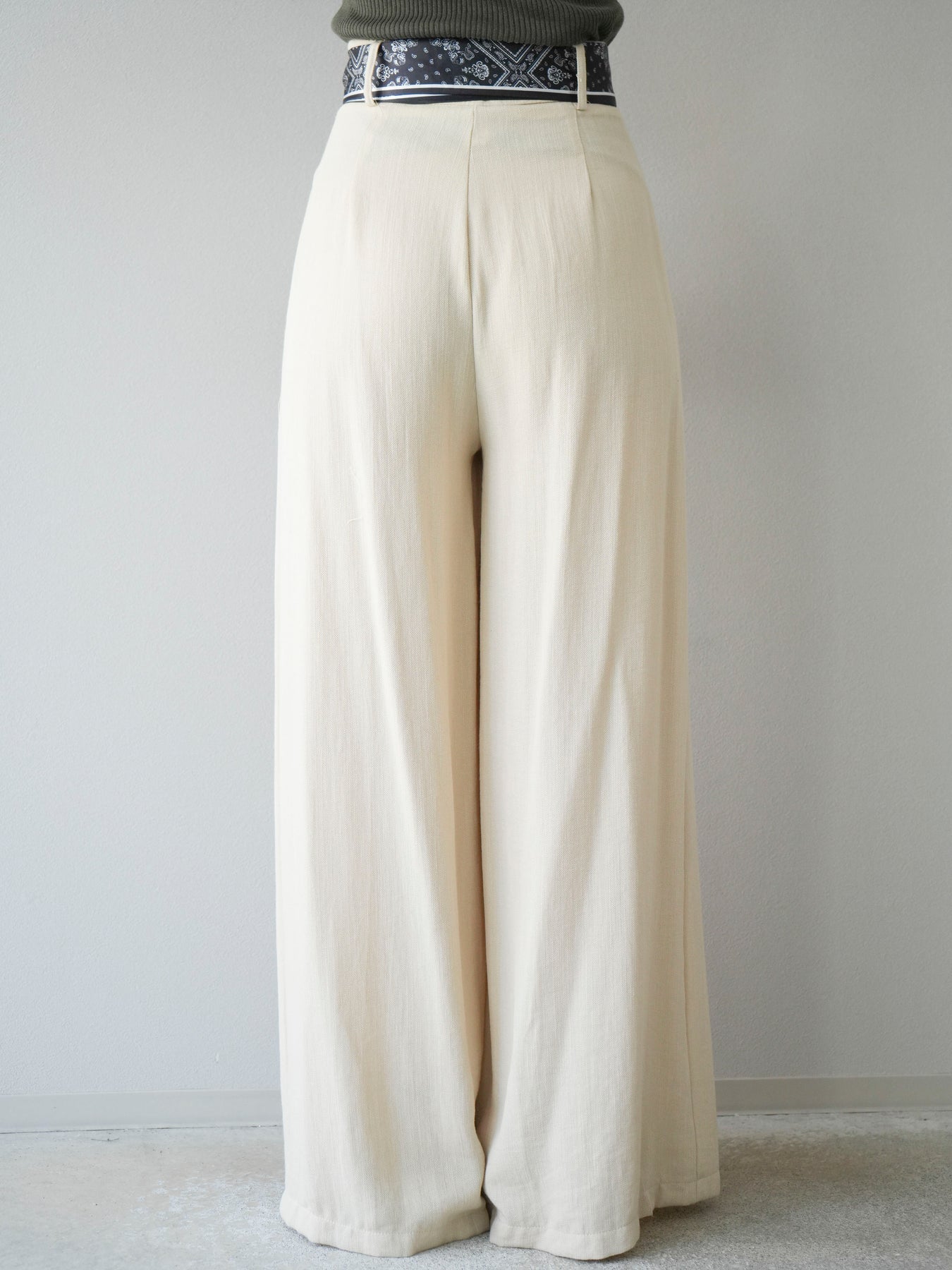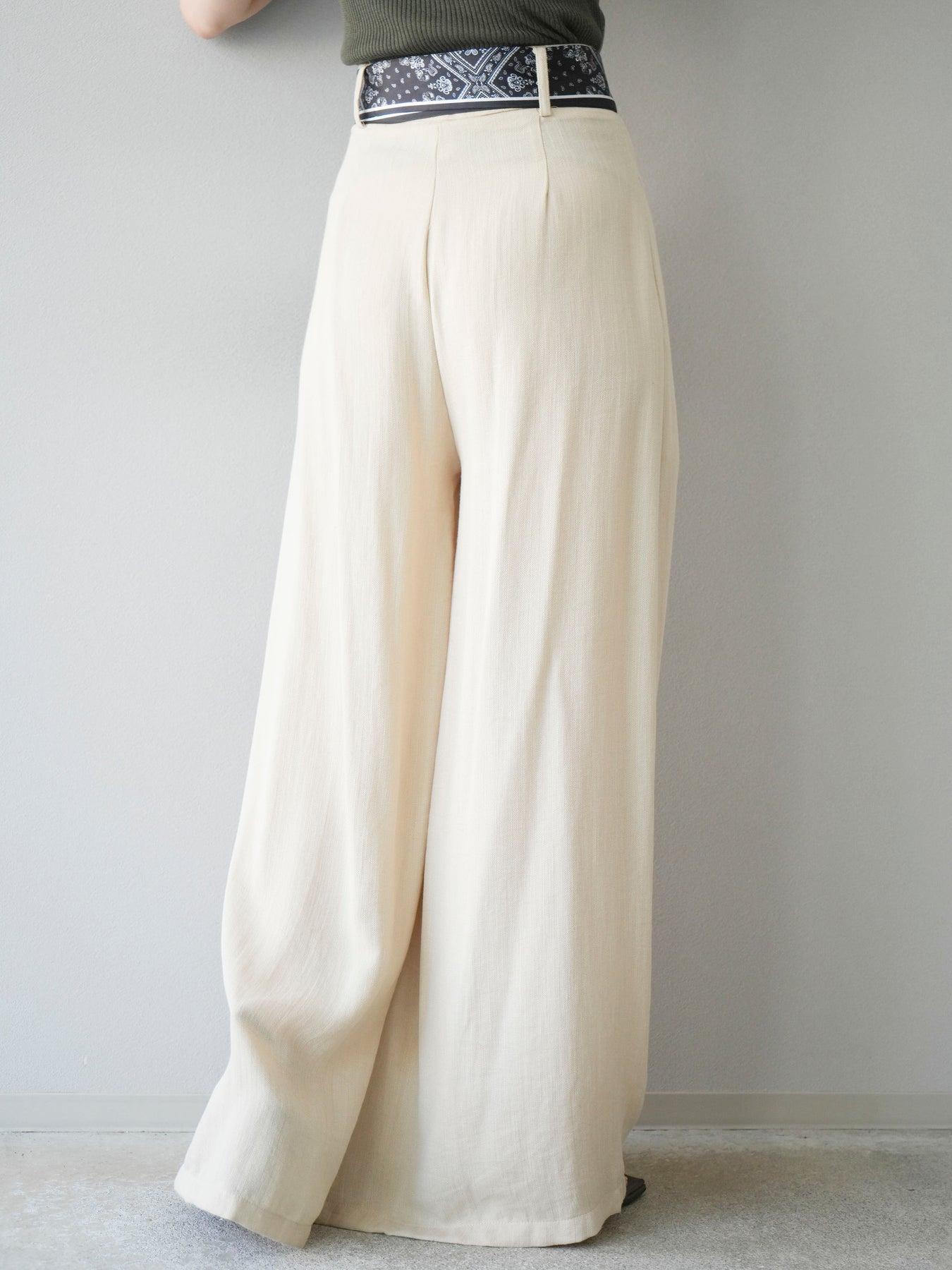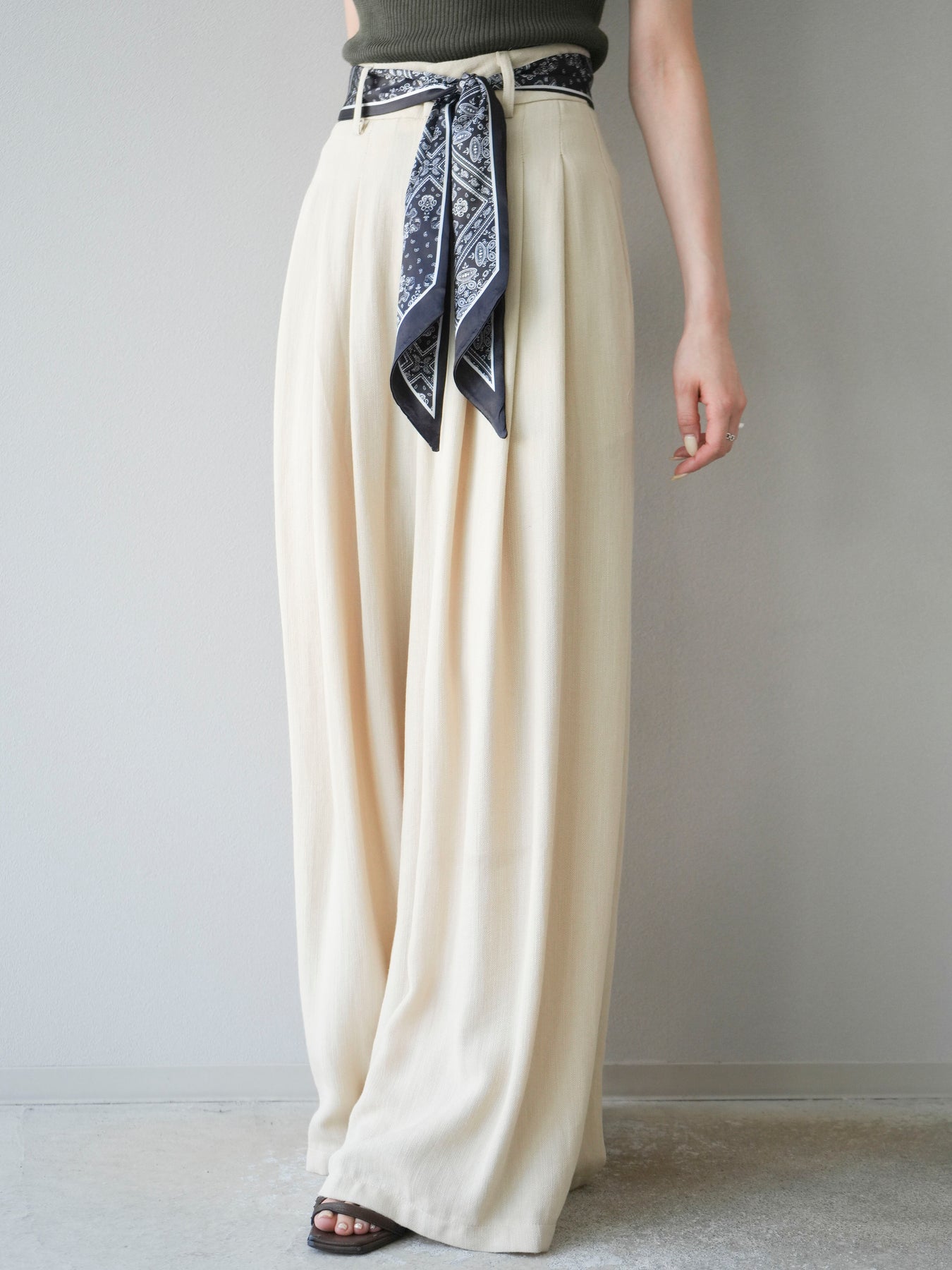 [予約]スカーフベルト付3タックワイドパンツ/ベージュ