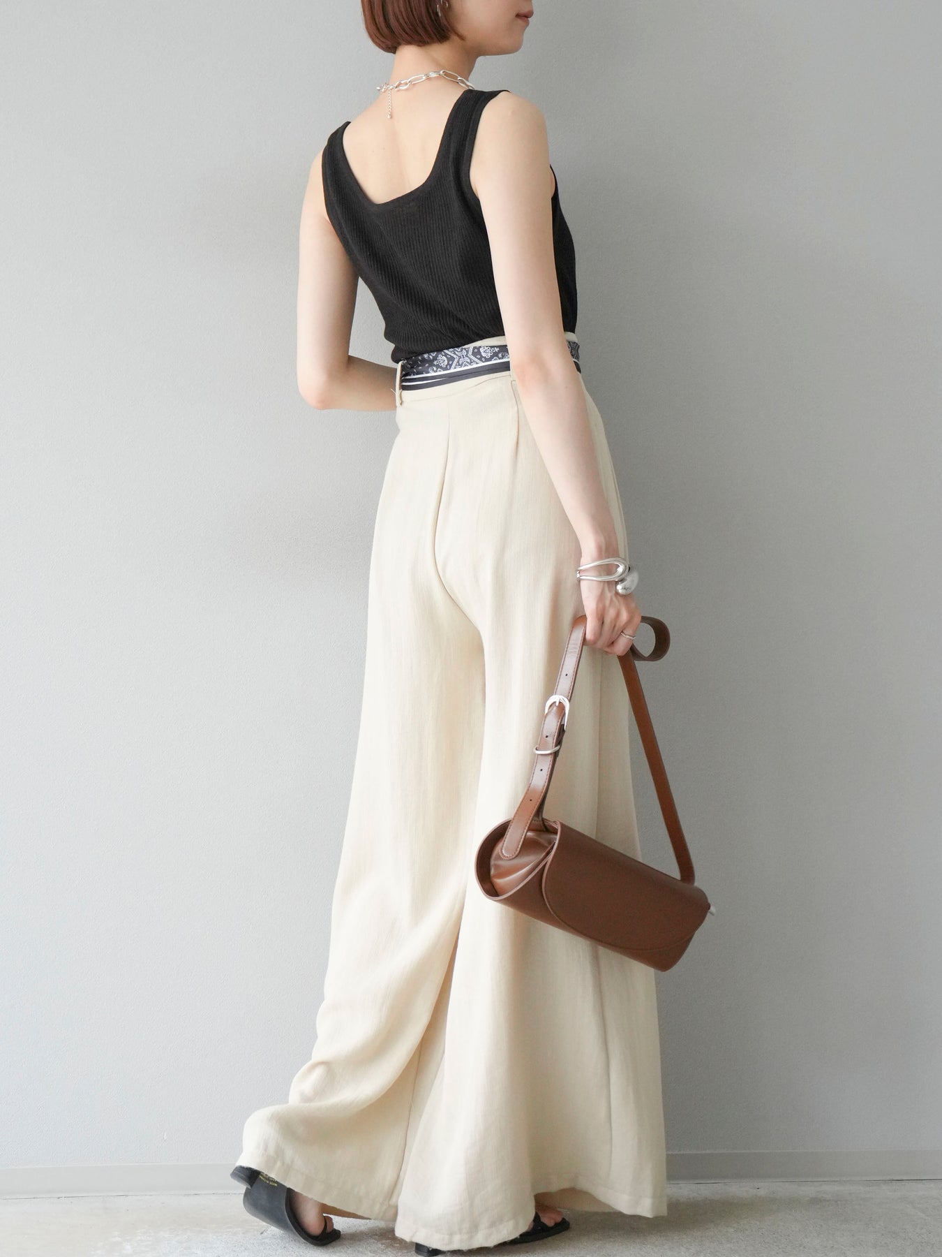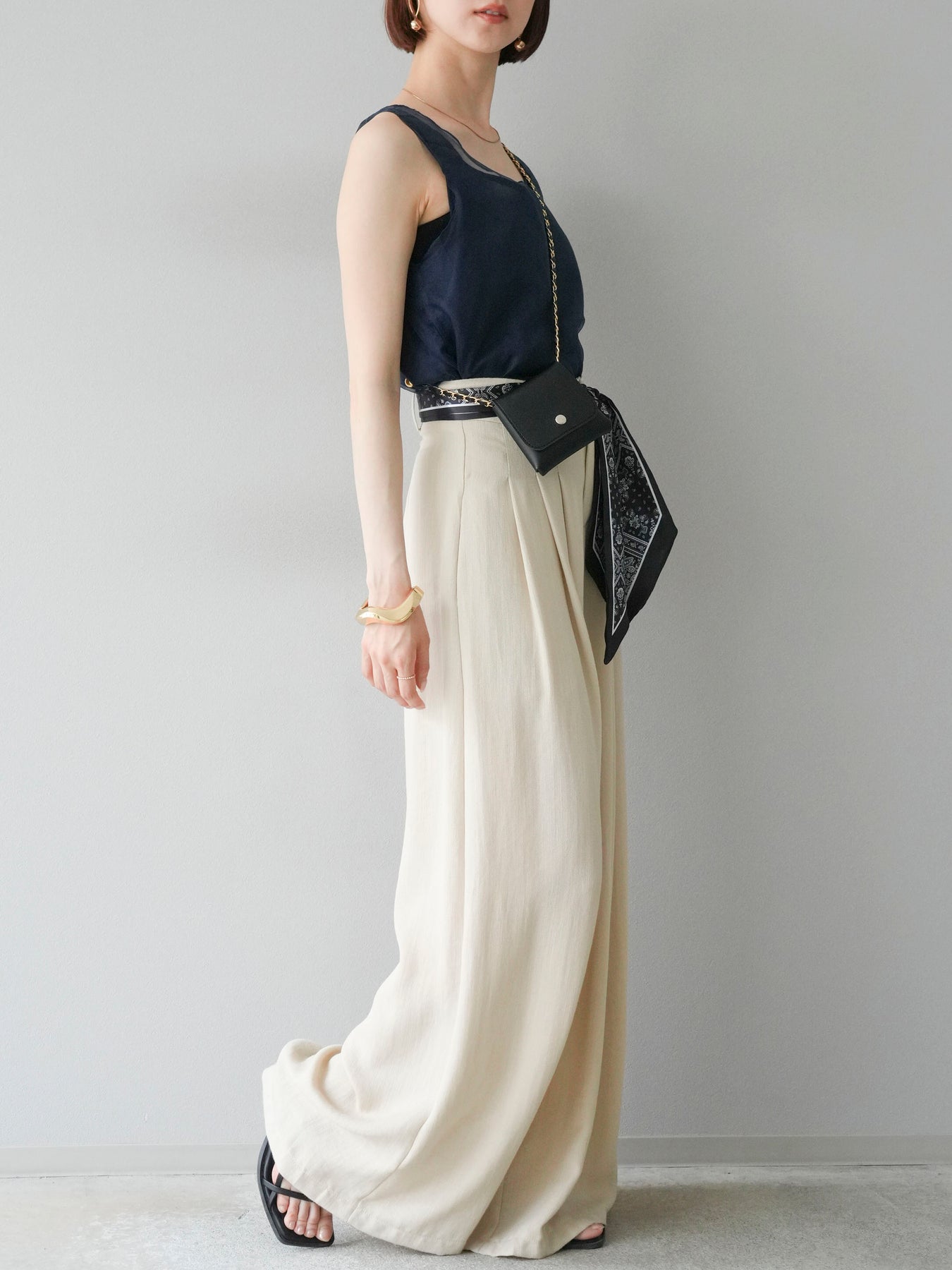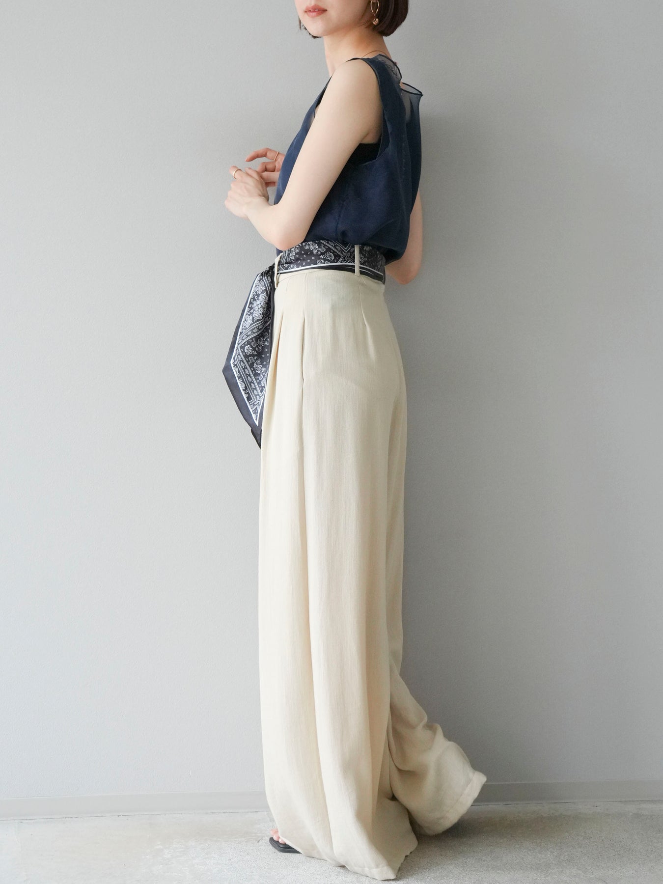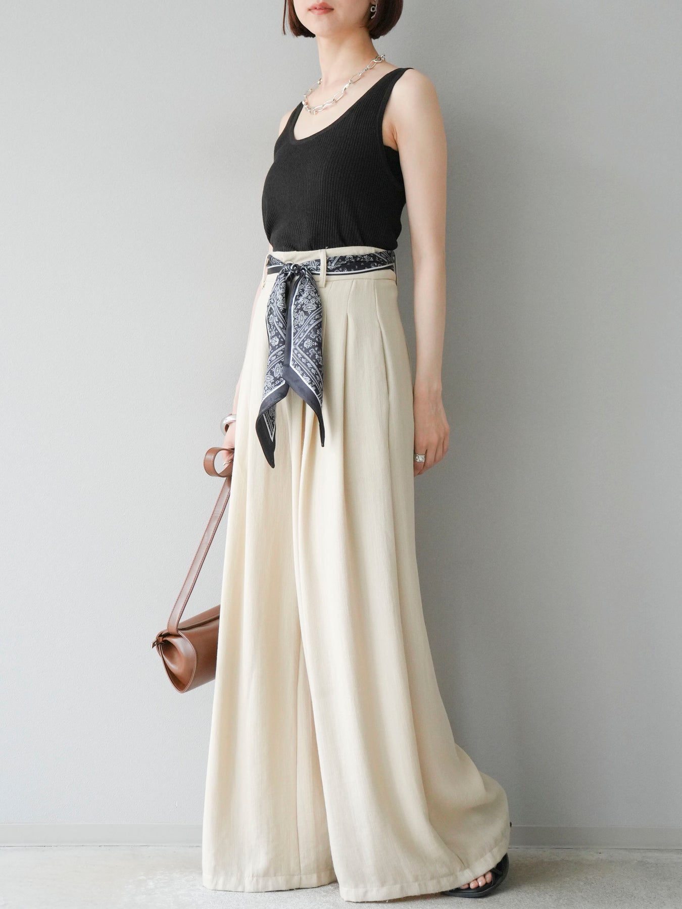 [予約]スカーフベルト付3タックワイドパンツ/ベージュ