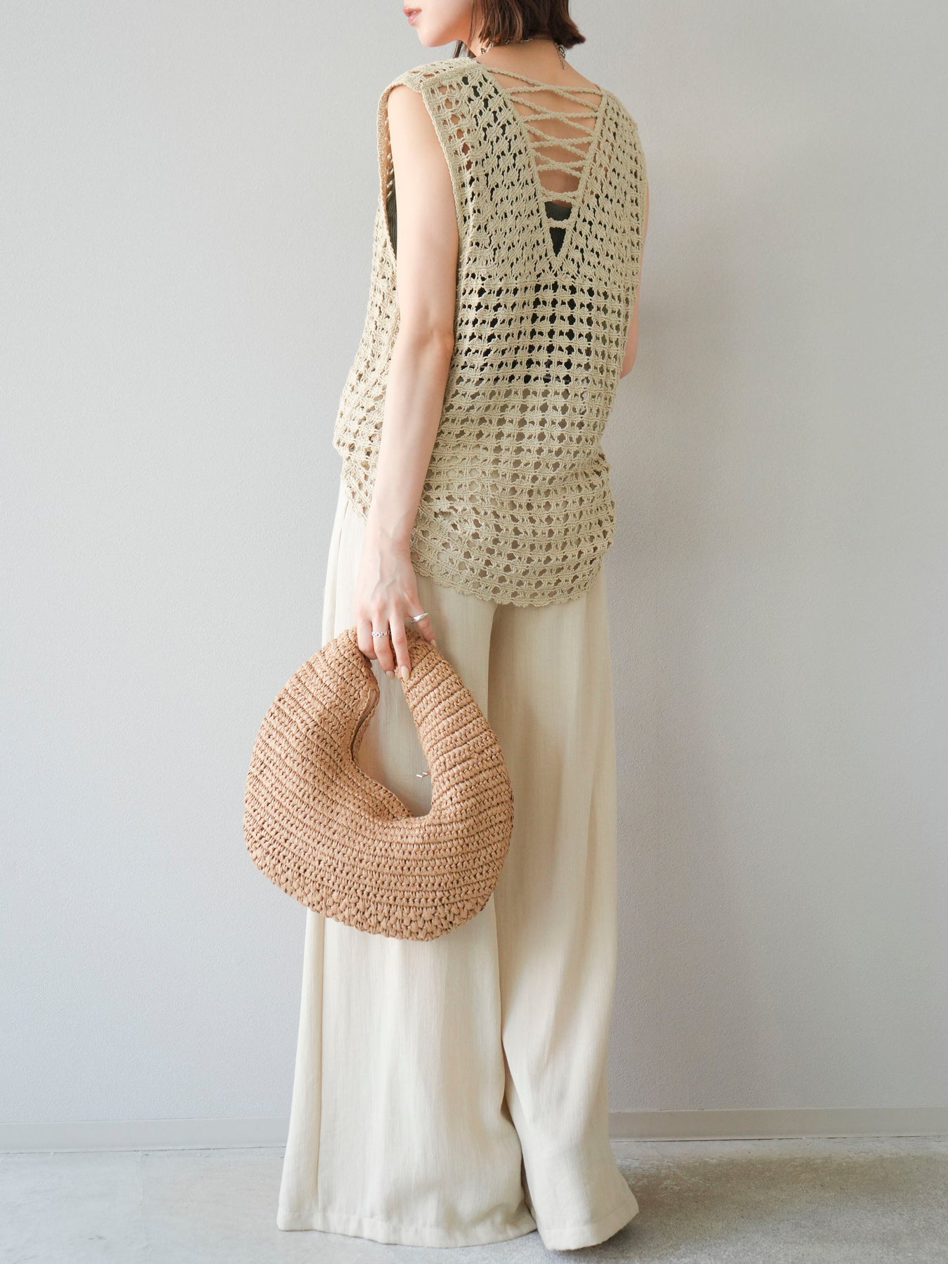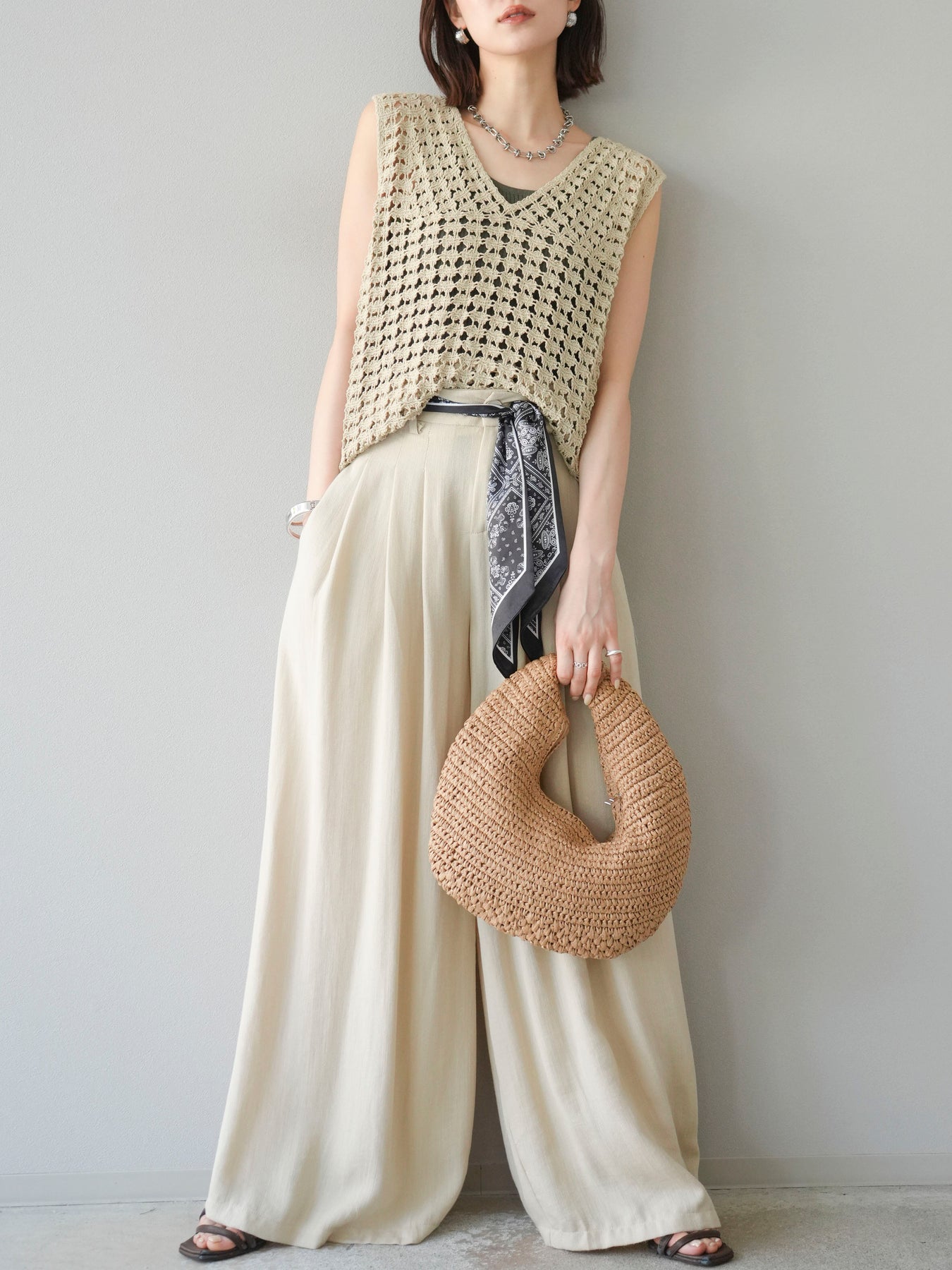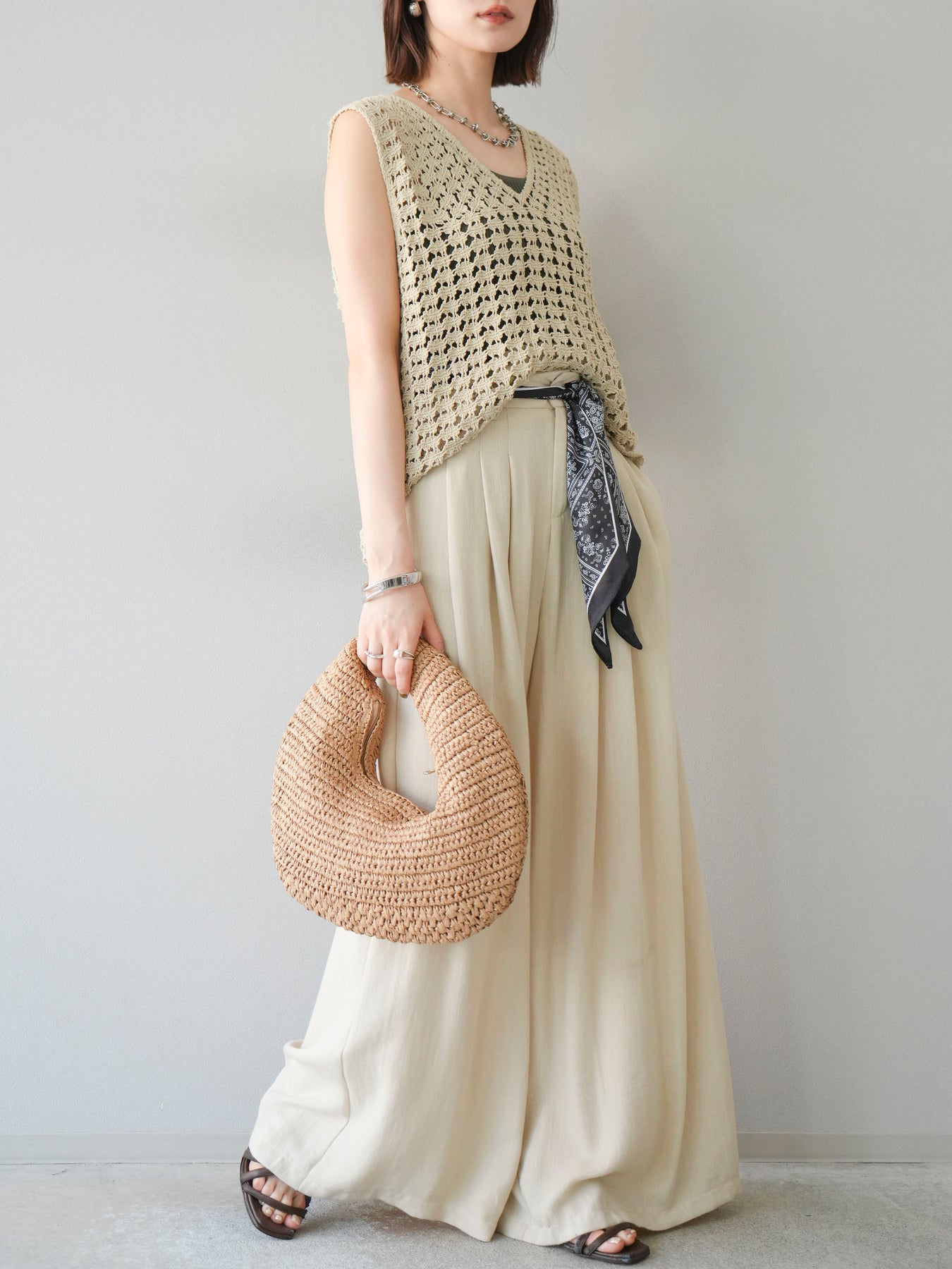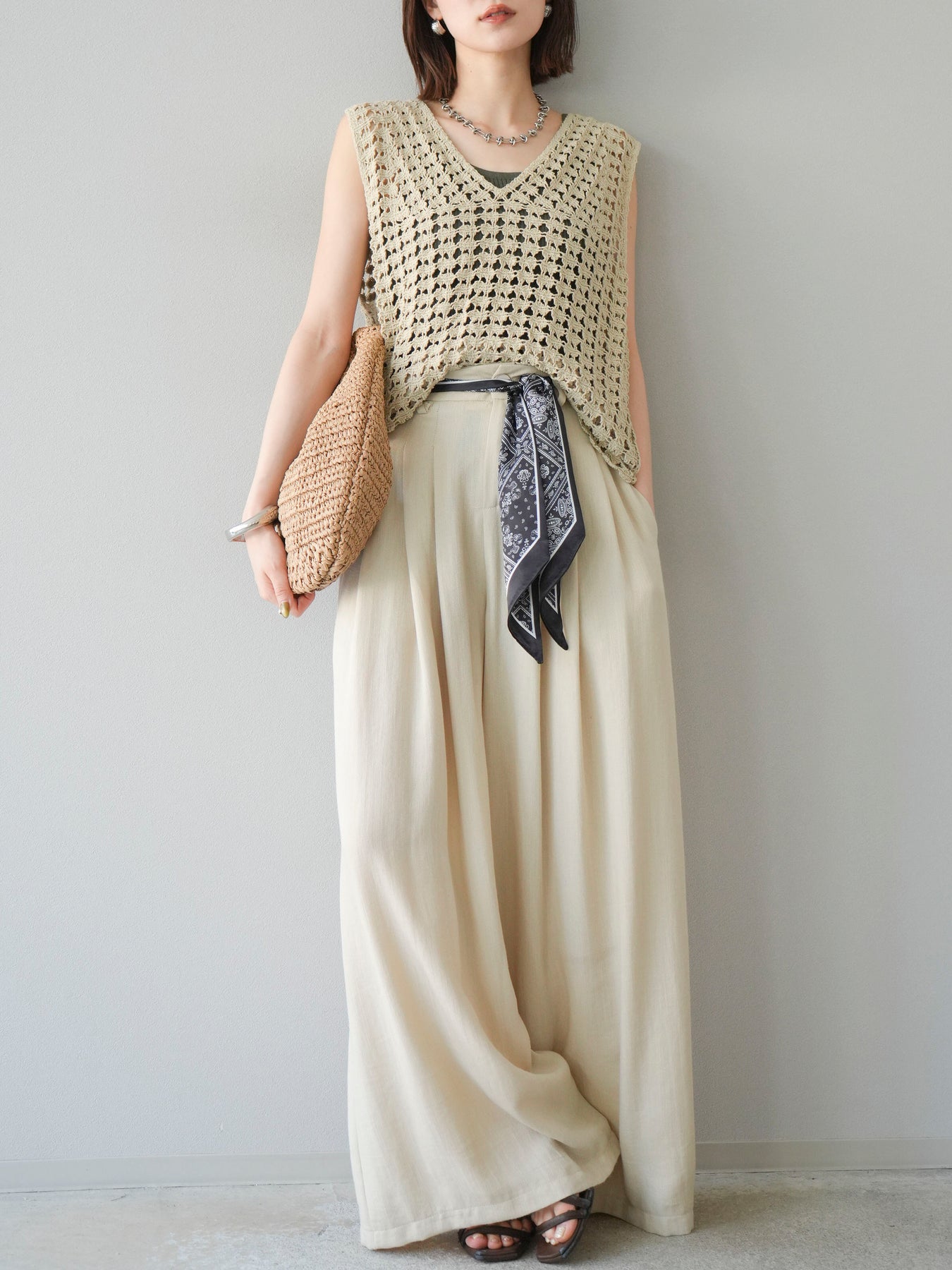 [予約]スカーフベルト付3タックワイドパンツ/ベージュ