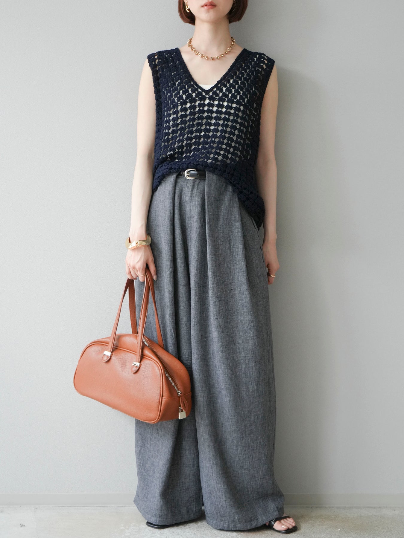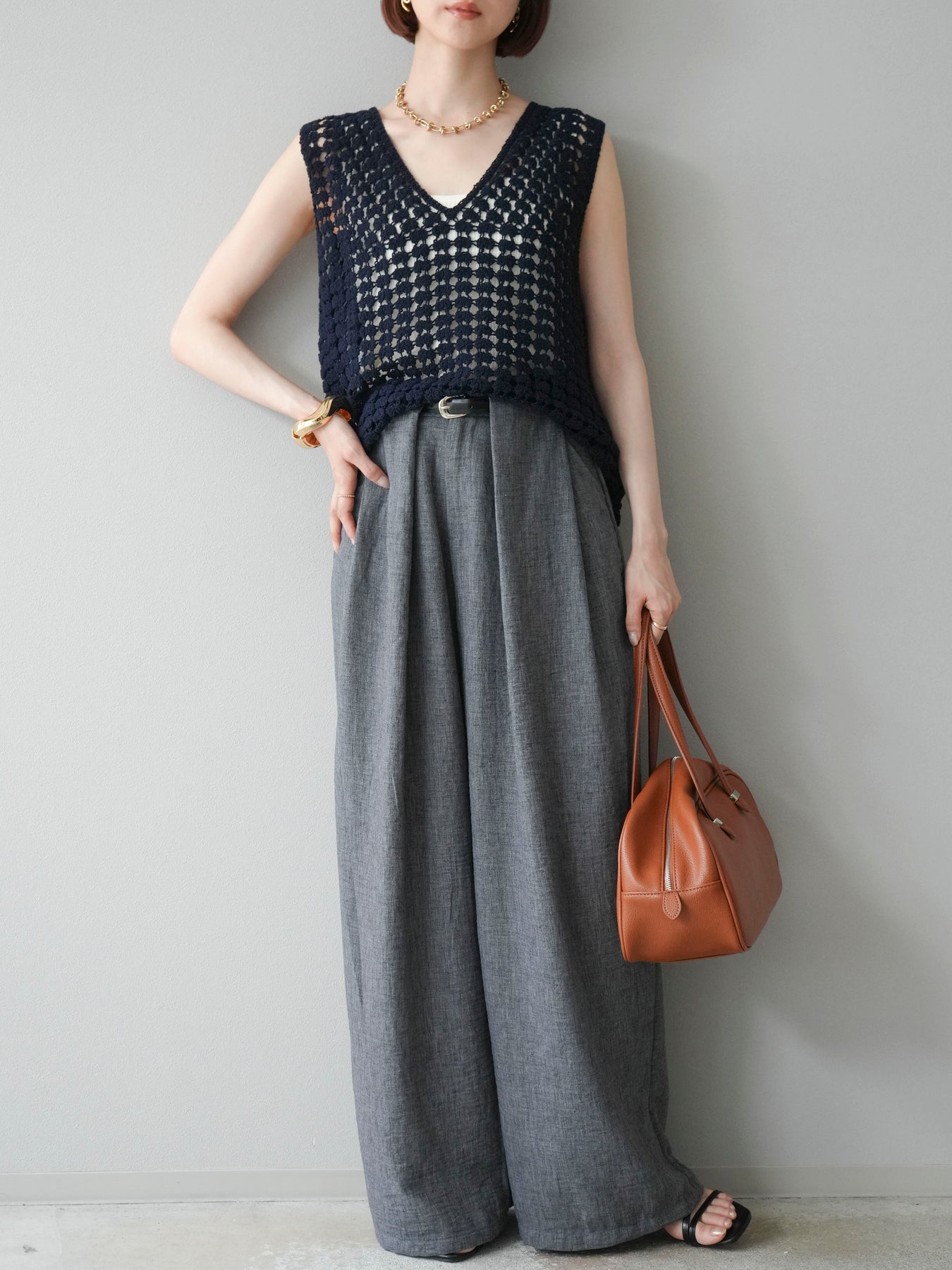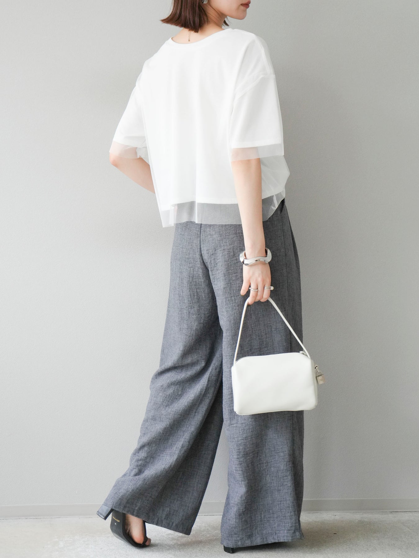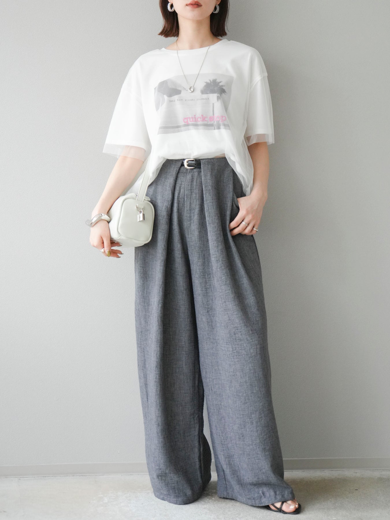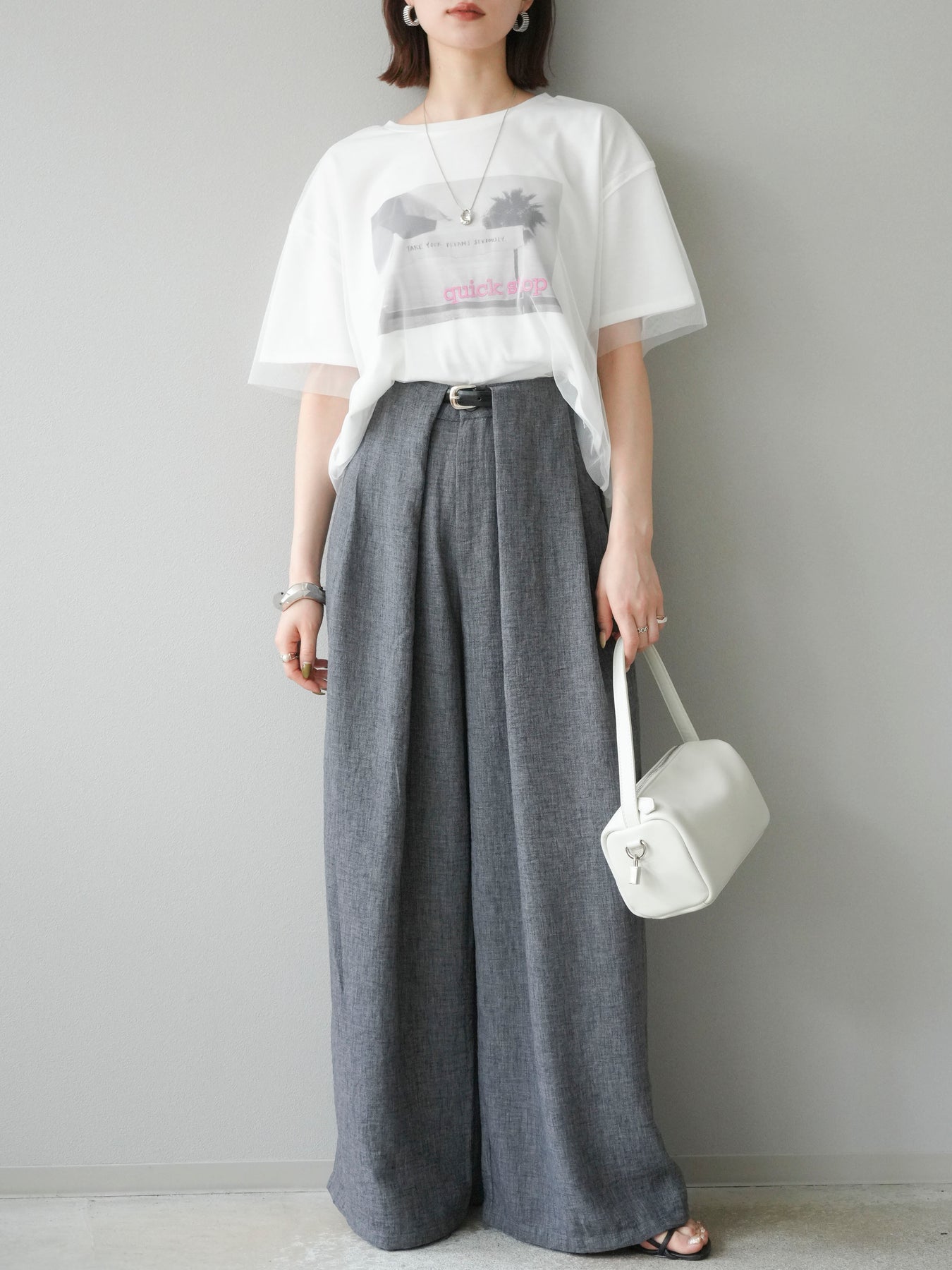 [予約]リネンライクベルト付タックループワイドパンツに関連する商品を探す↓