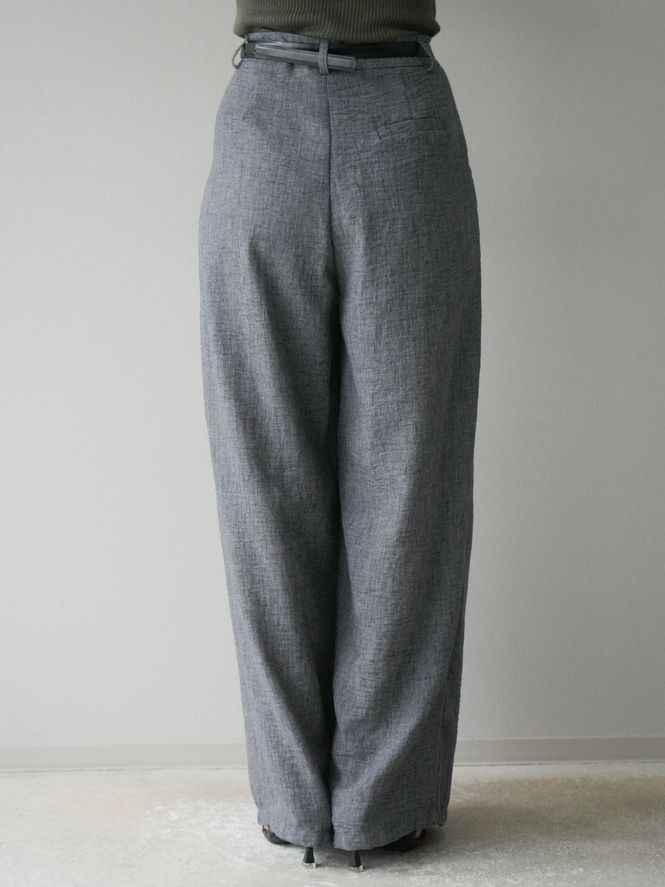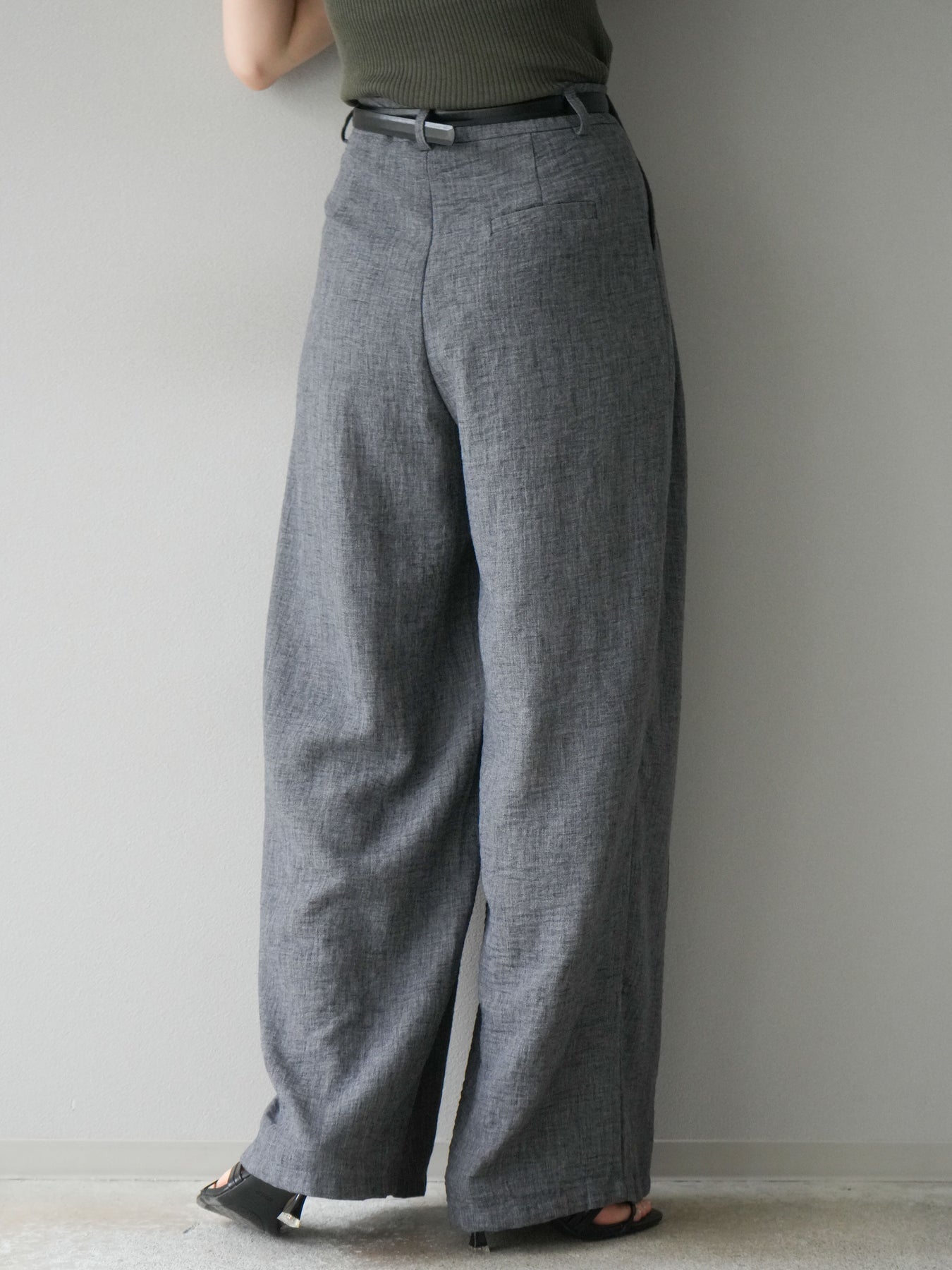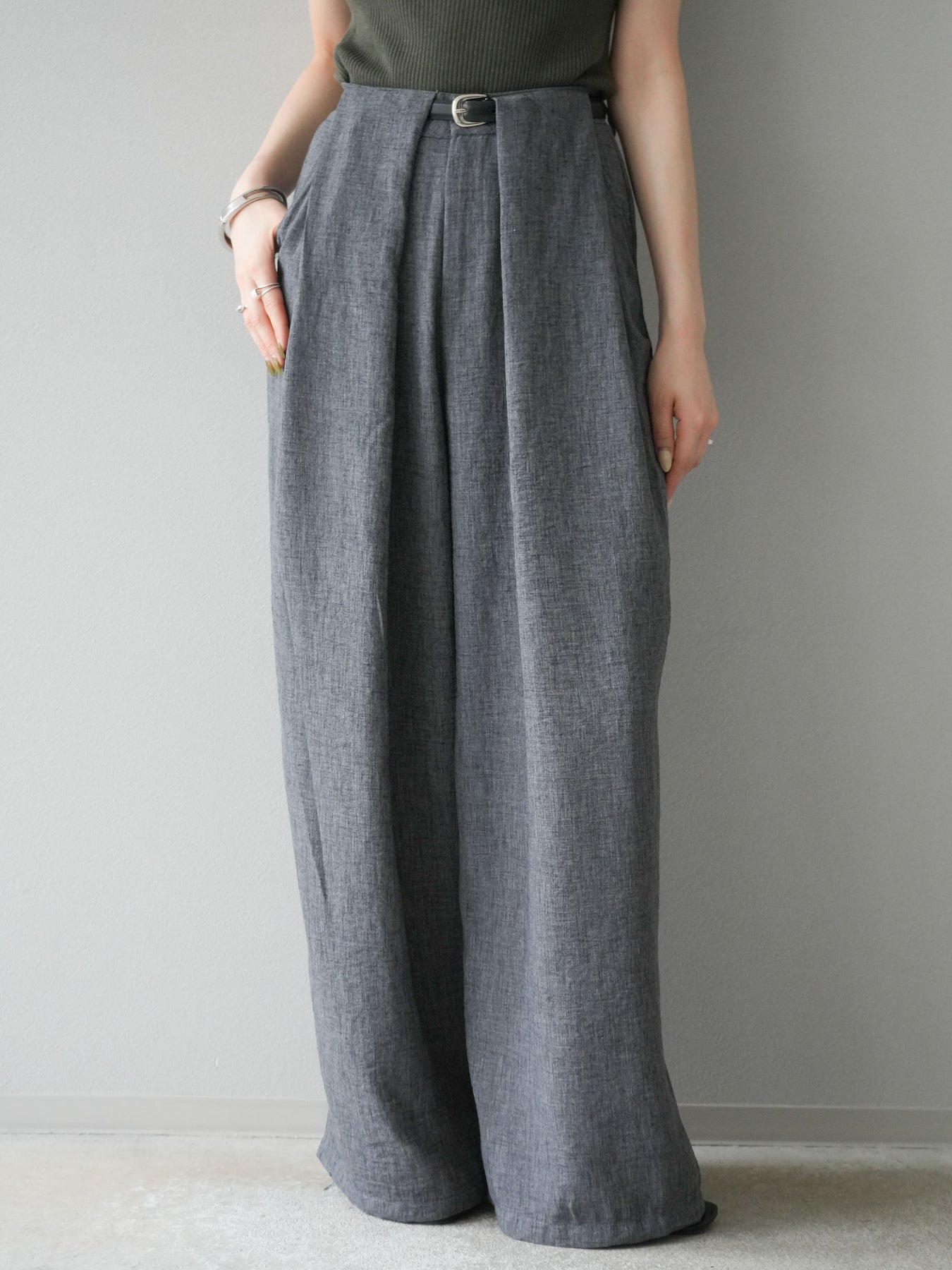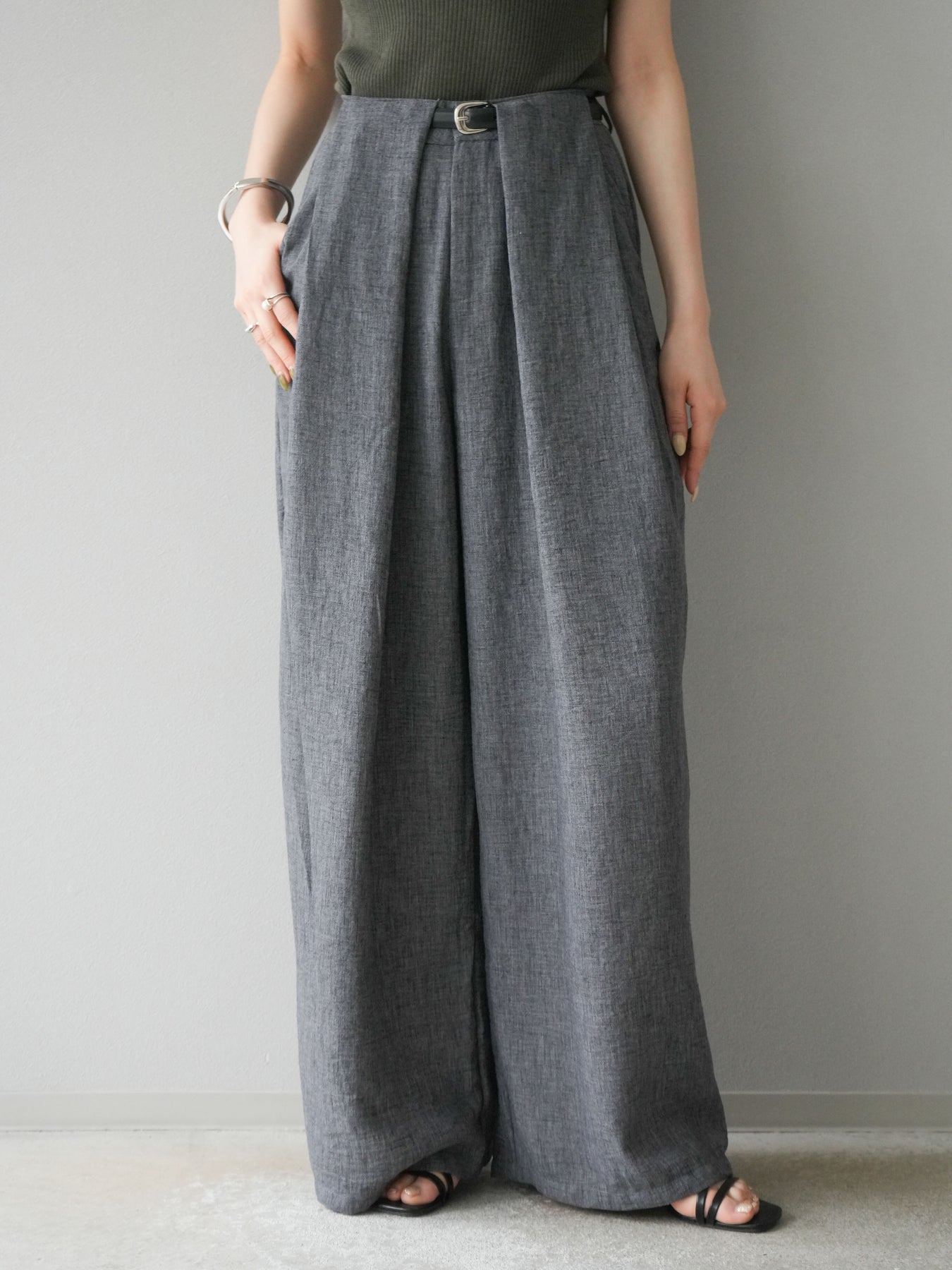 [予約]リネンライクベルト付タックループワイドパンツ/ブラック