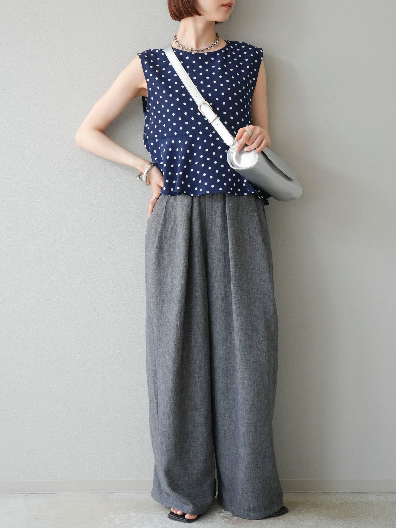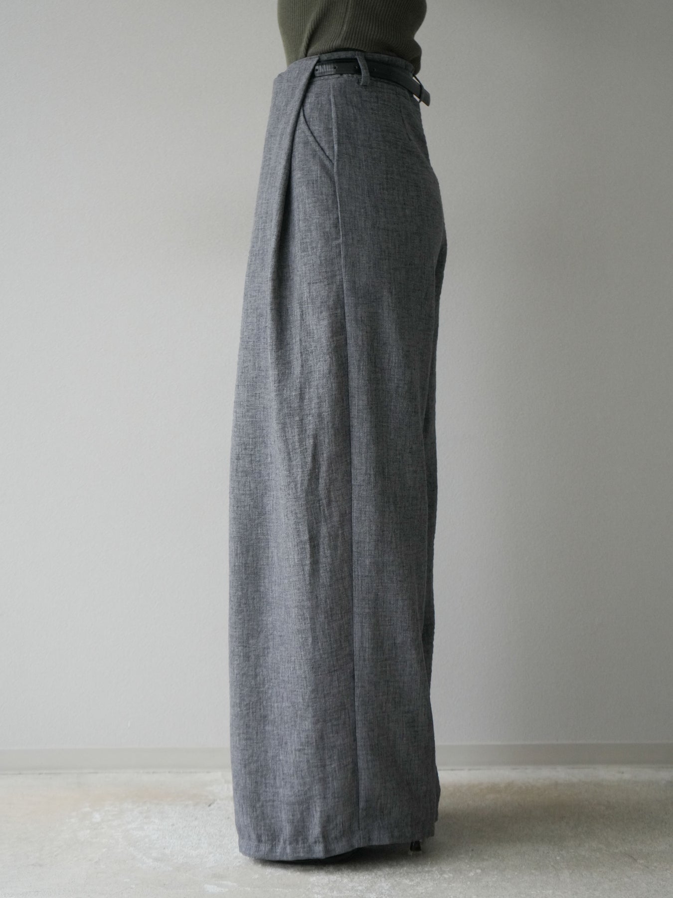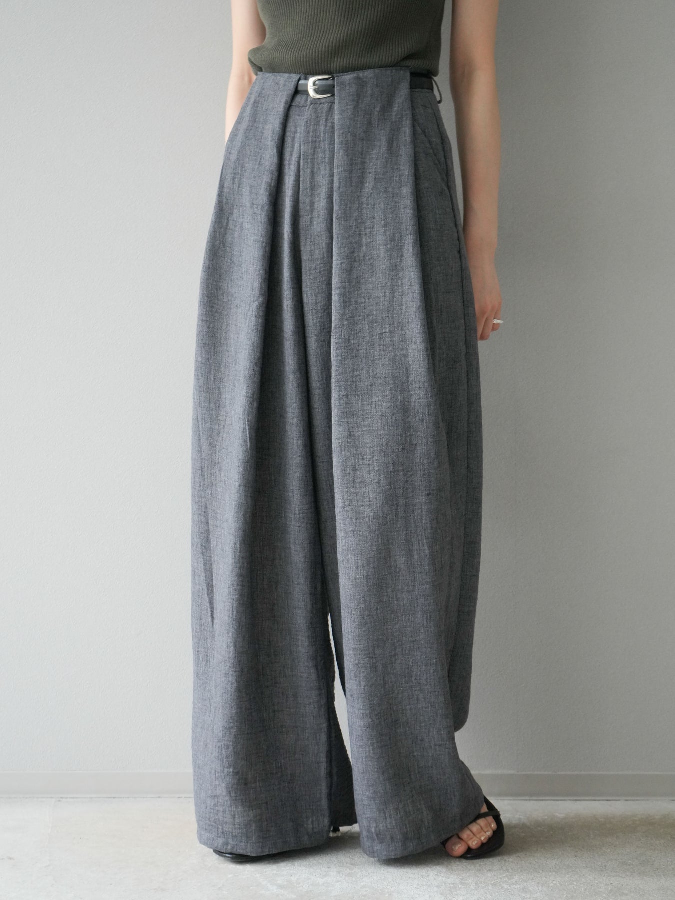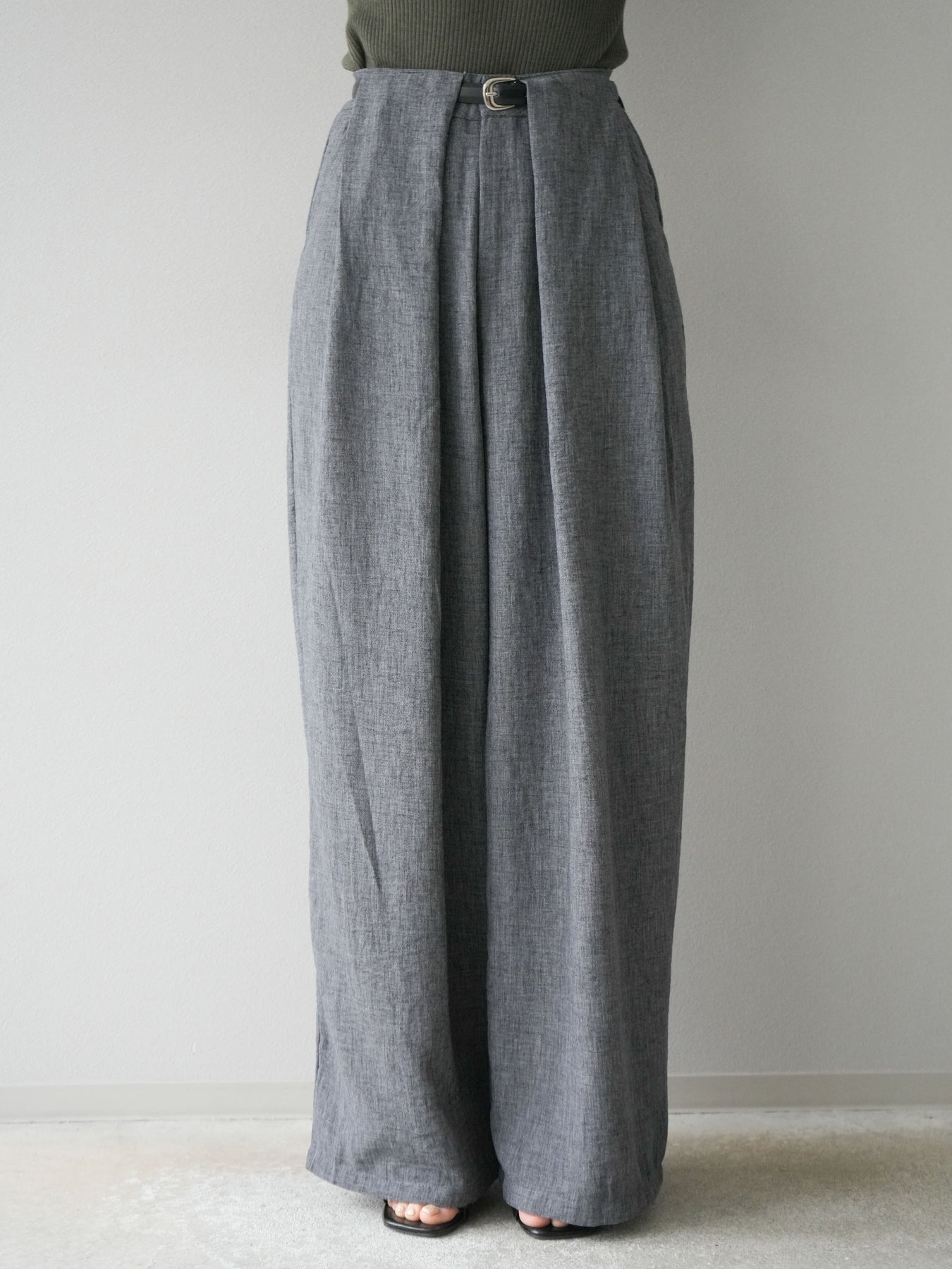 [予約]リネンライクベルト付タックループワイドパンツ/ブラック