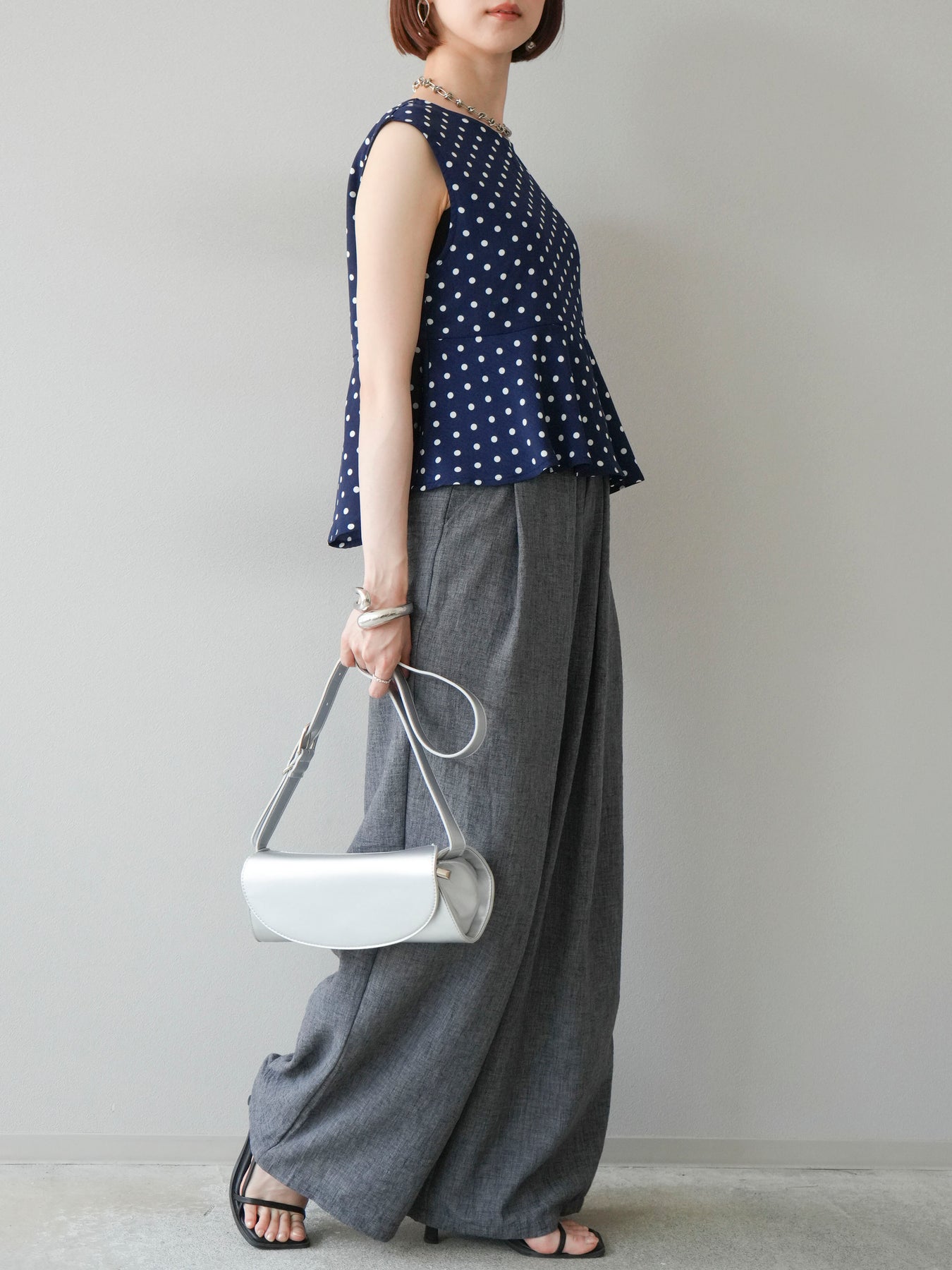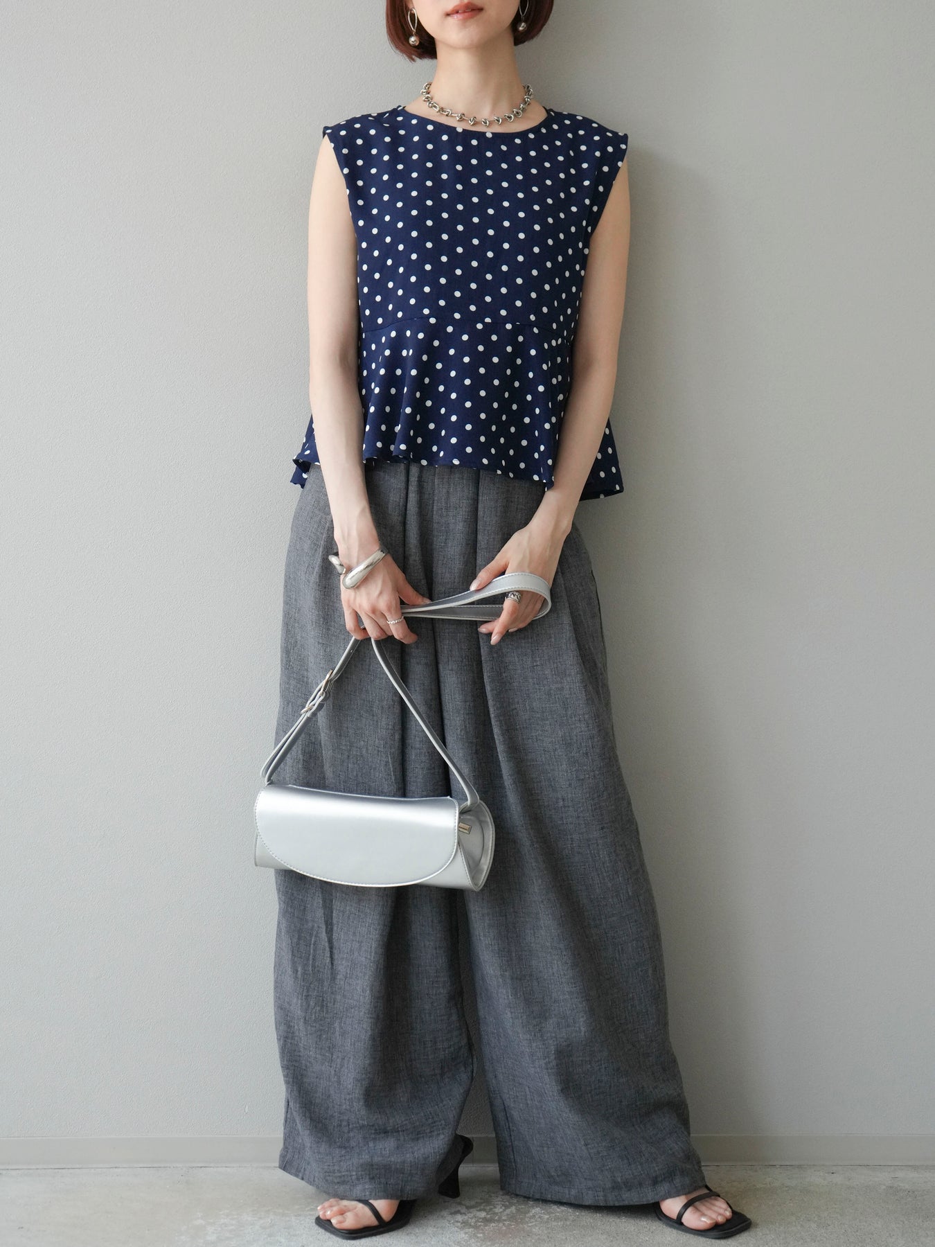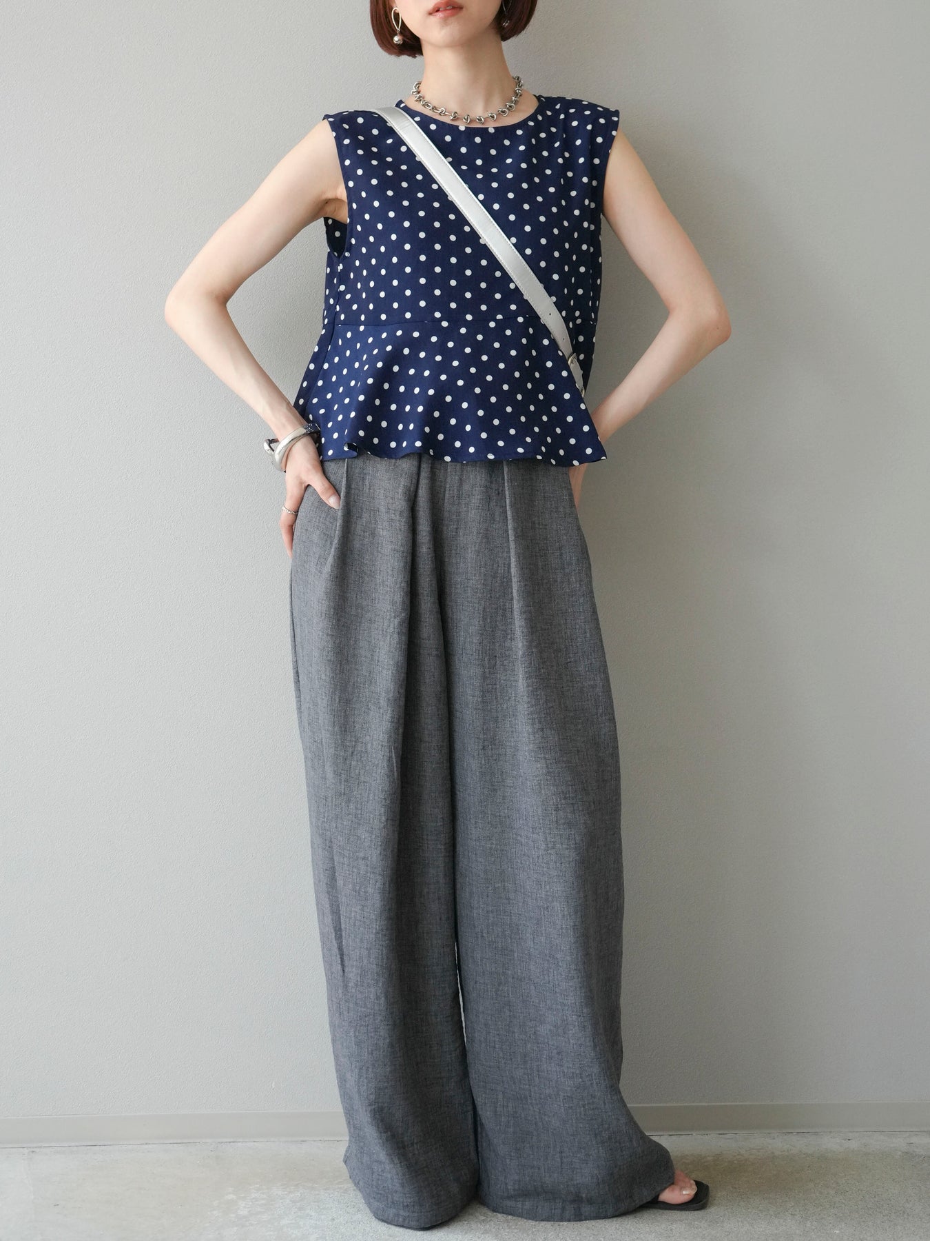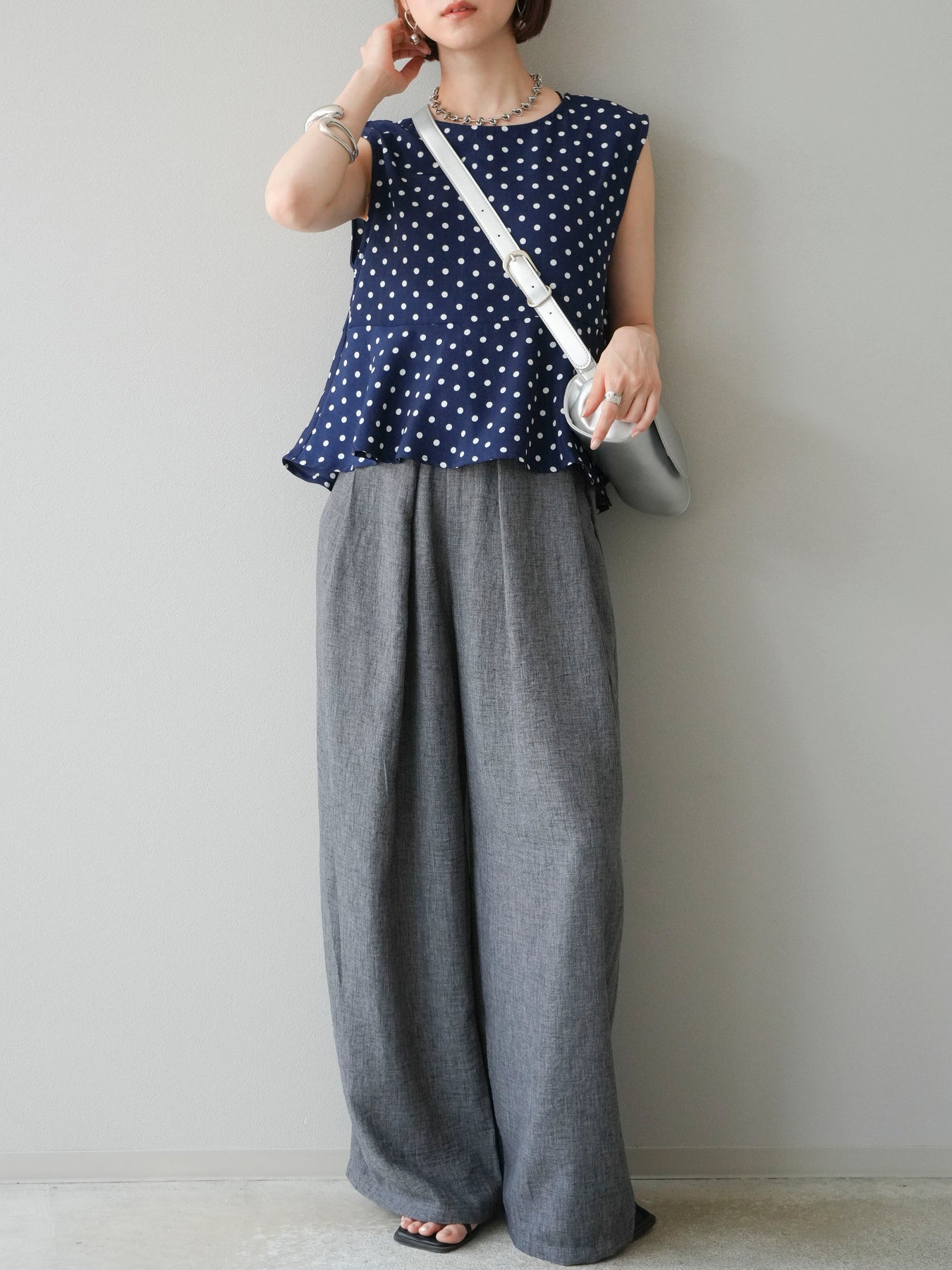 [予約]リネンライクベルト付タックループワイドパンツ/ブラック