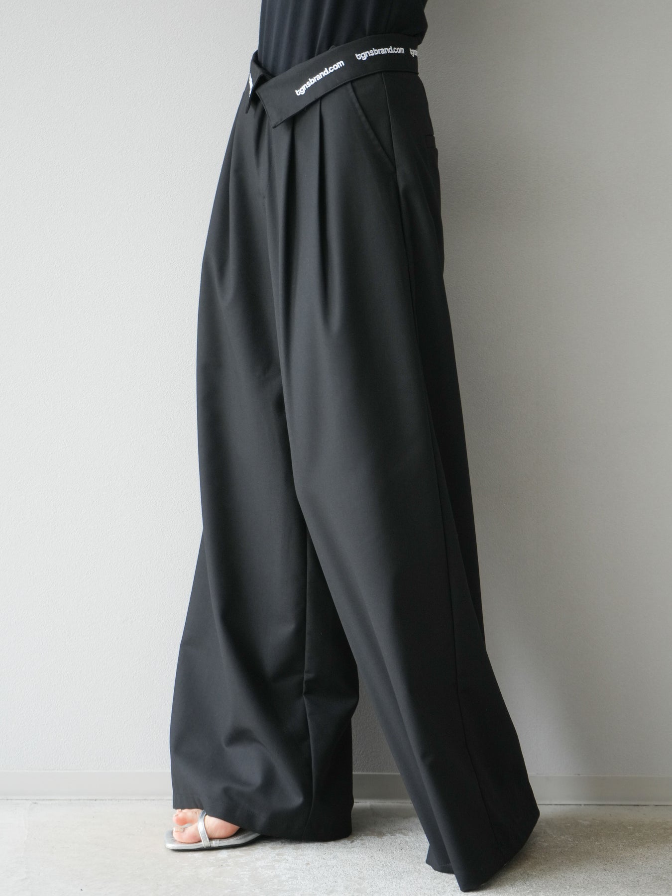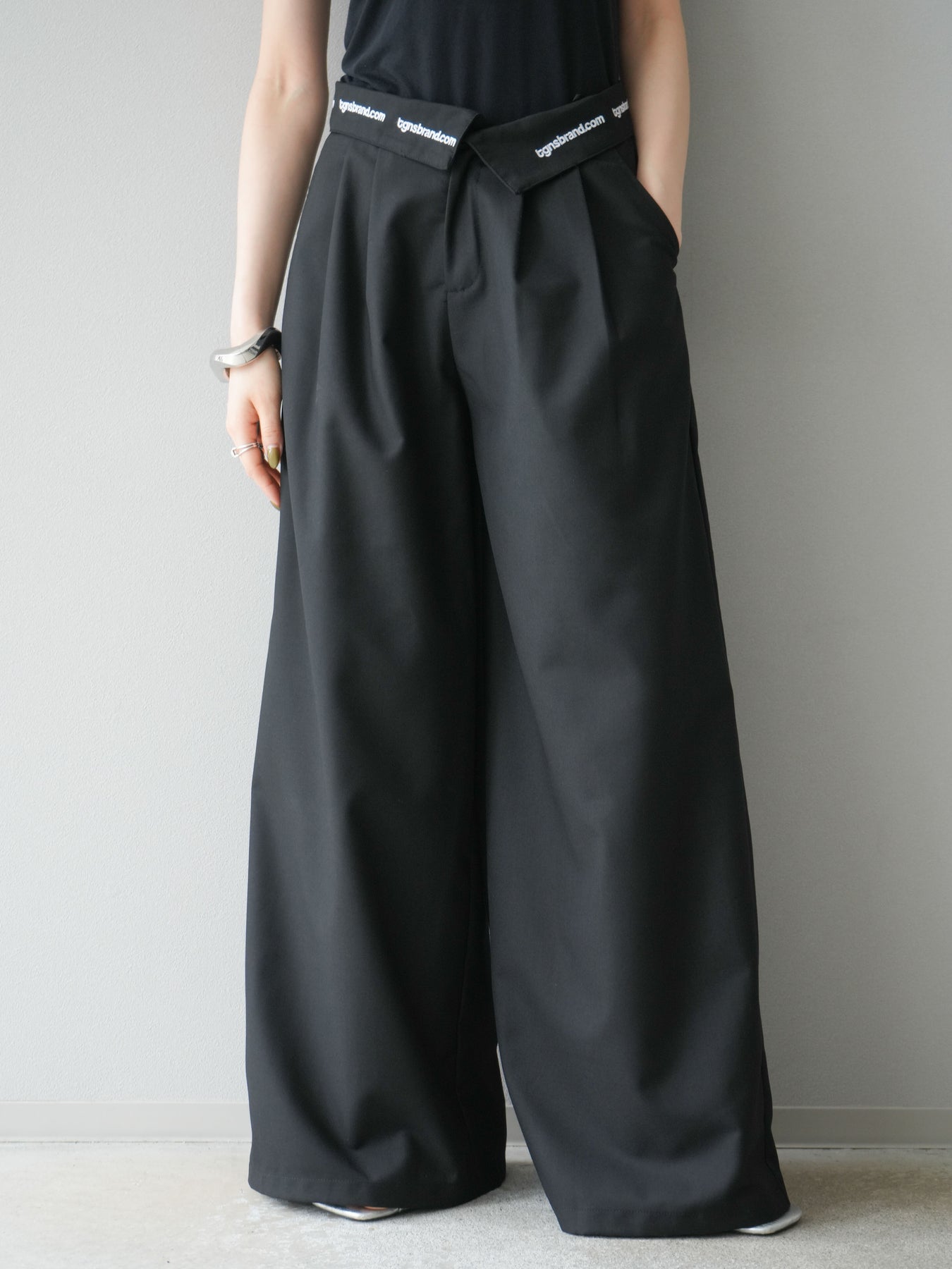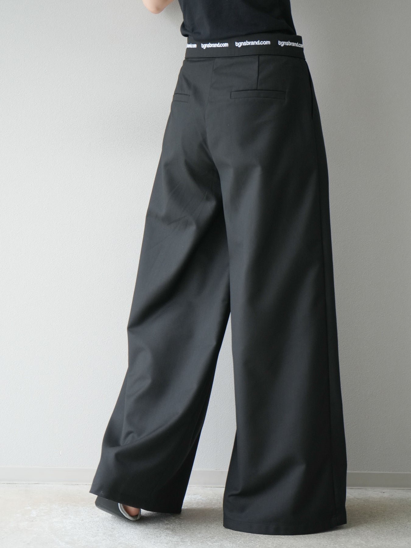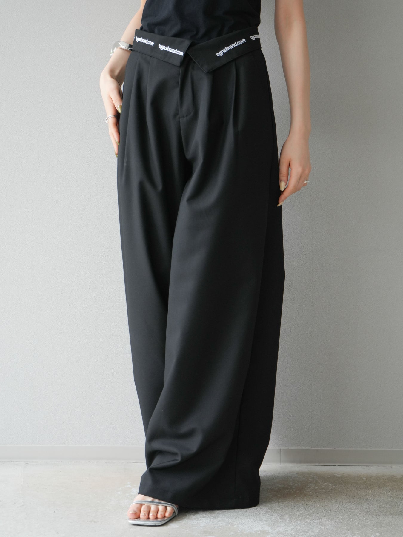 [予約]ウエスト折り返しロゴタックワイドパンツ/ブラック