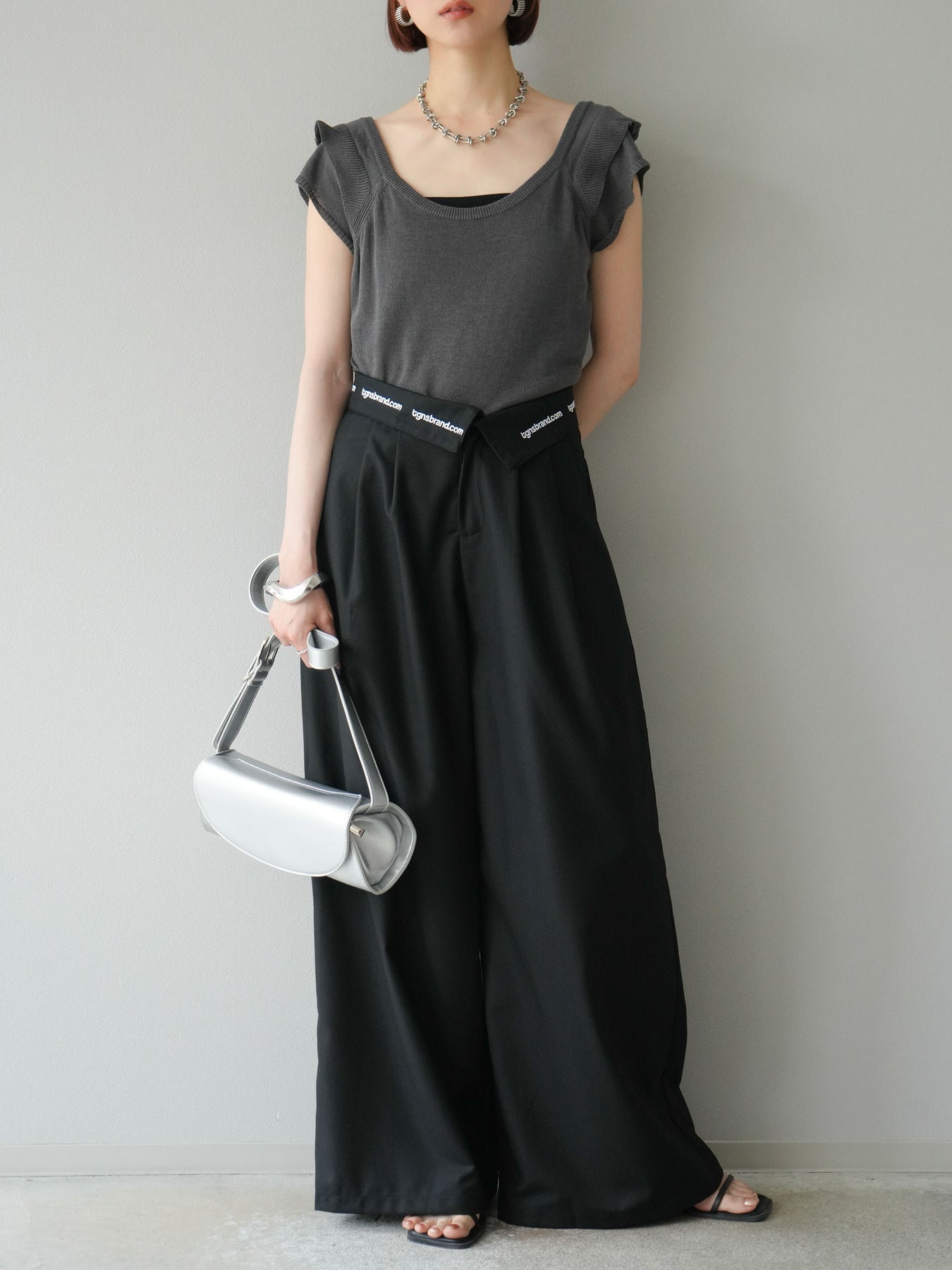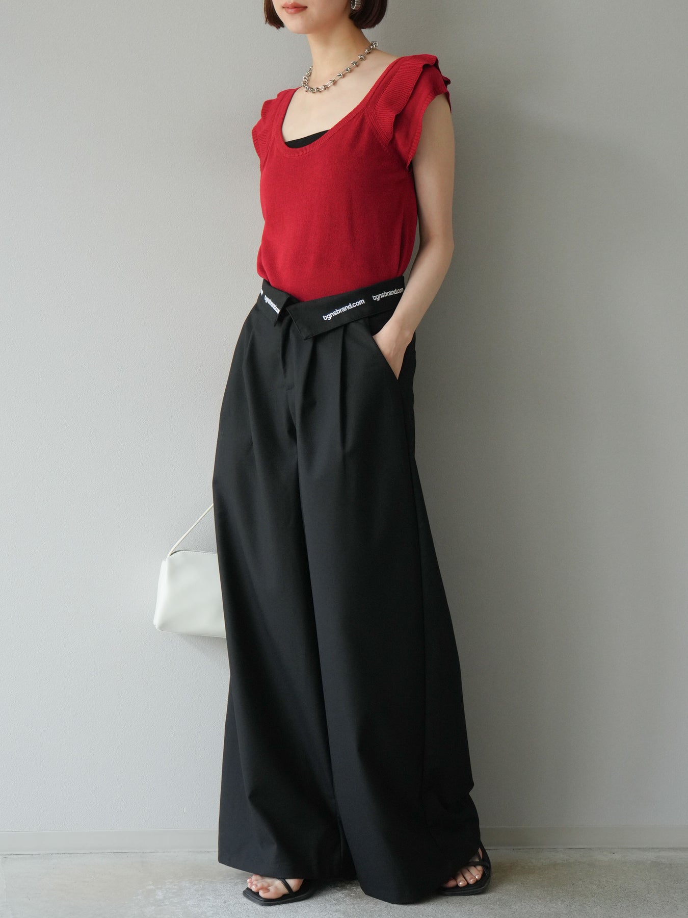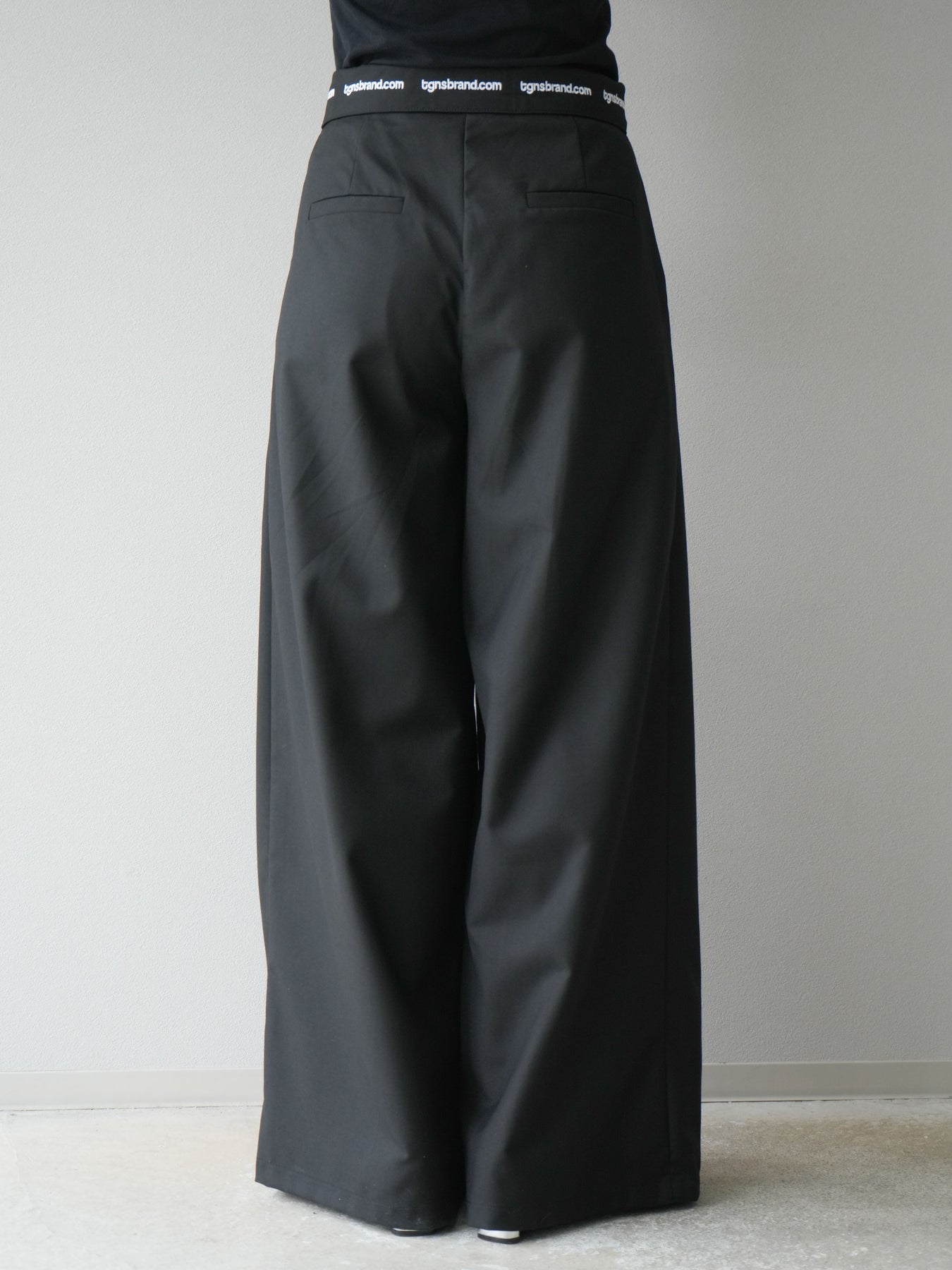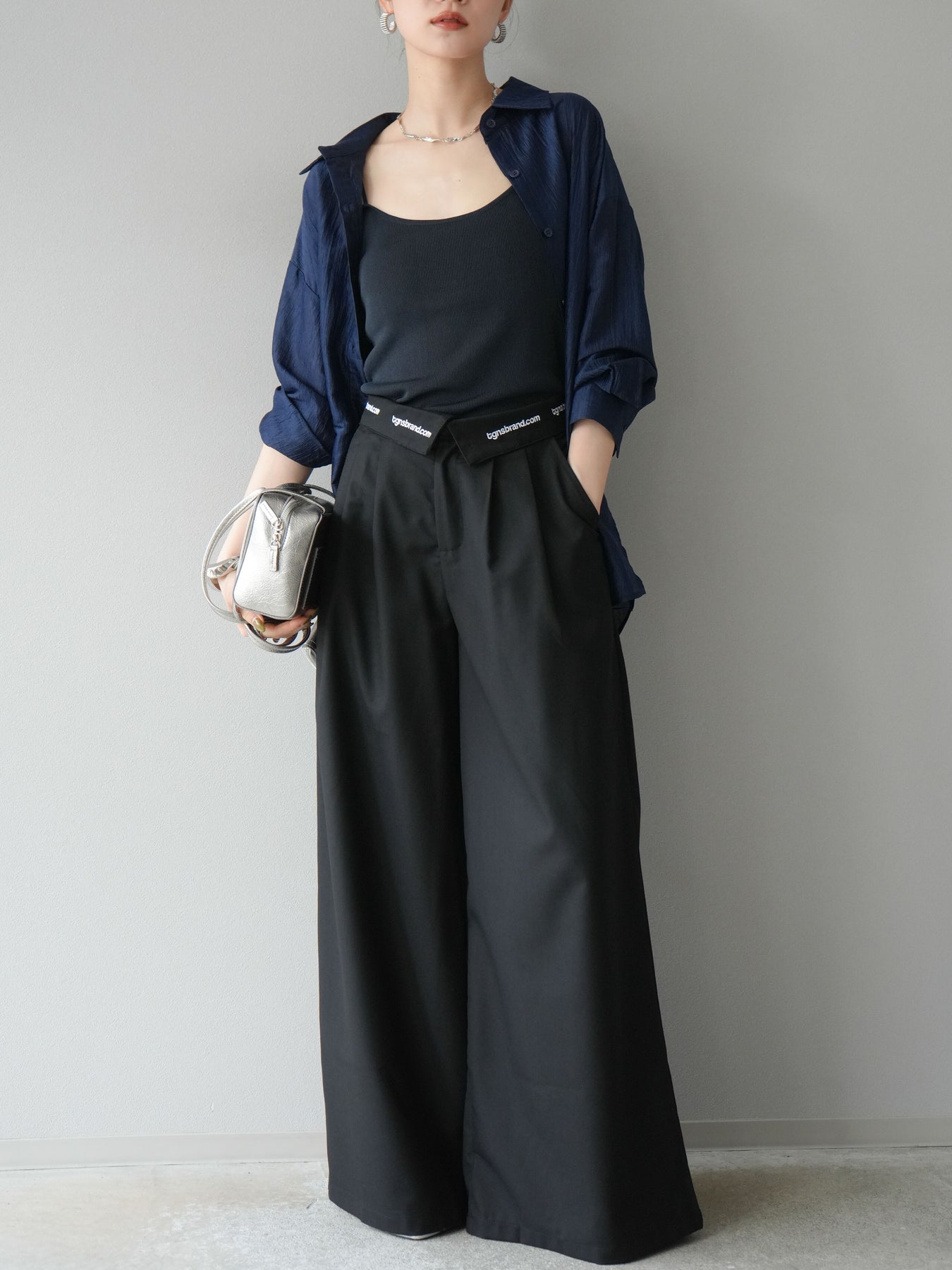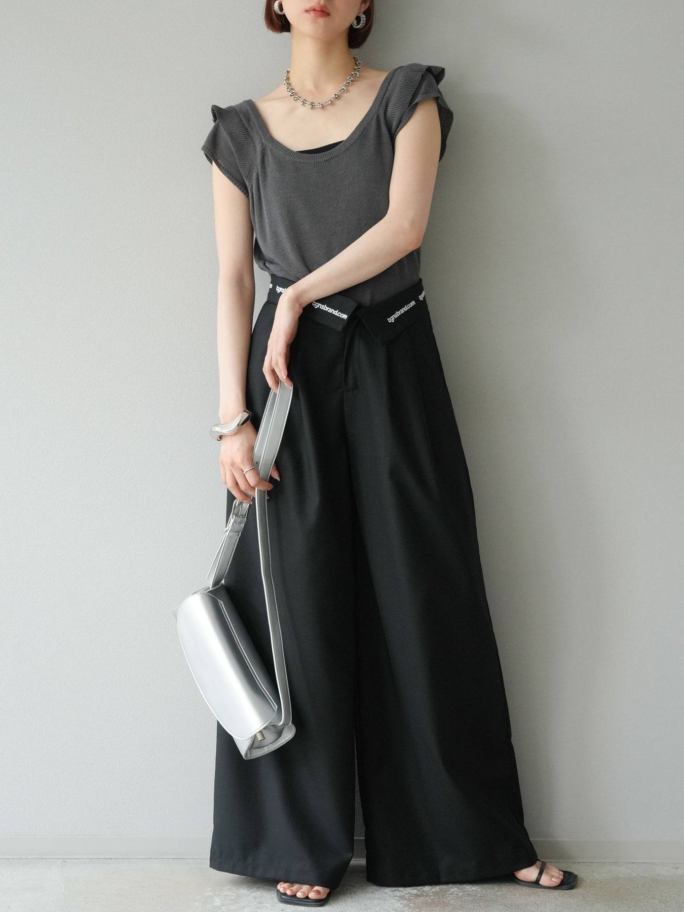 [予約]ウエスト折り返しロゴタックワイドパンツ/ブラック