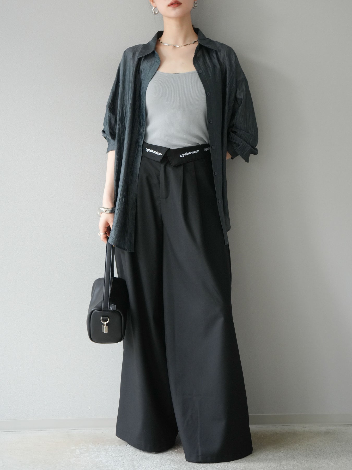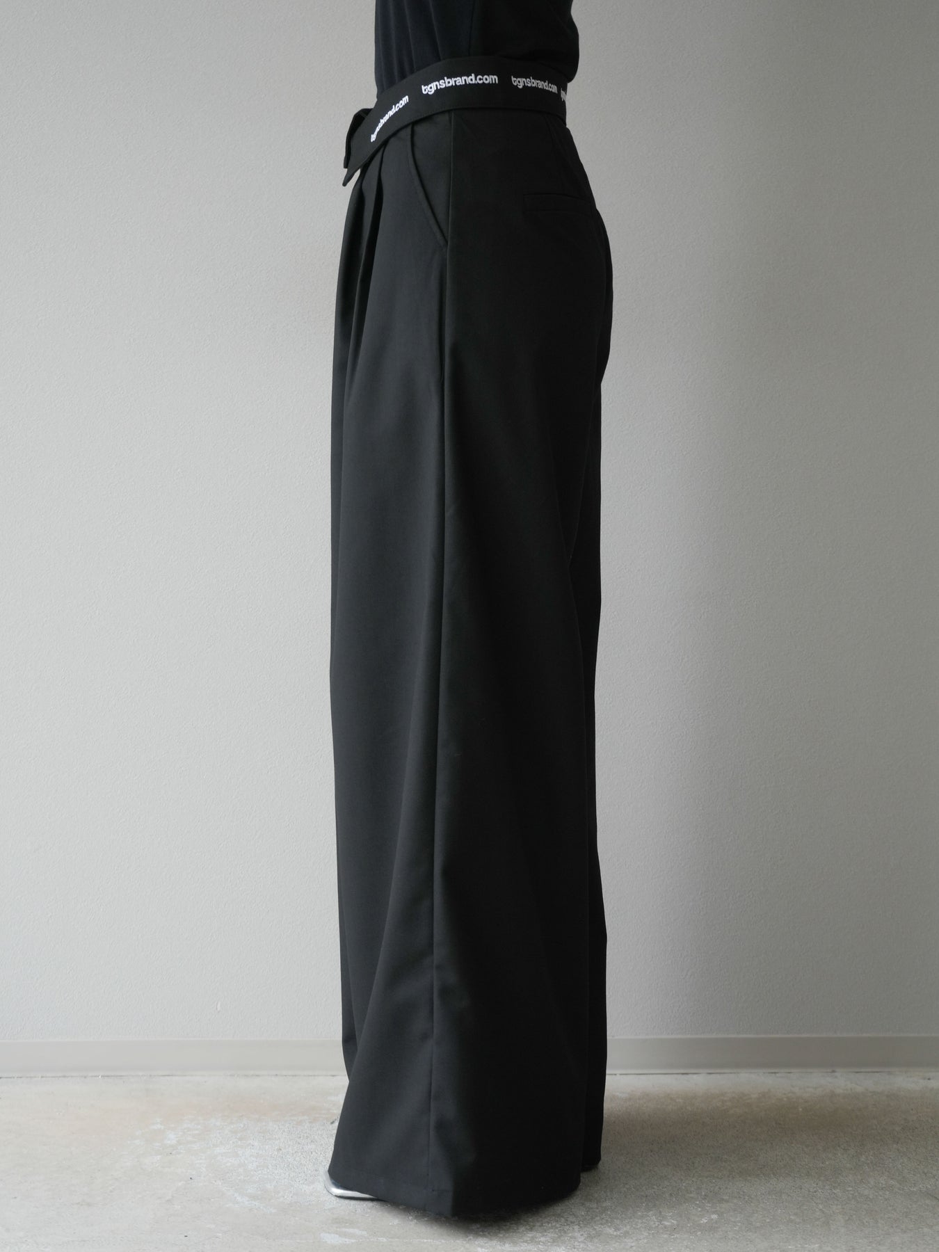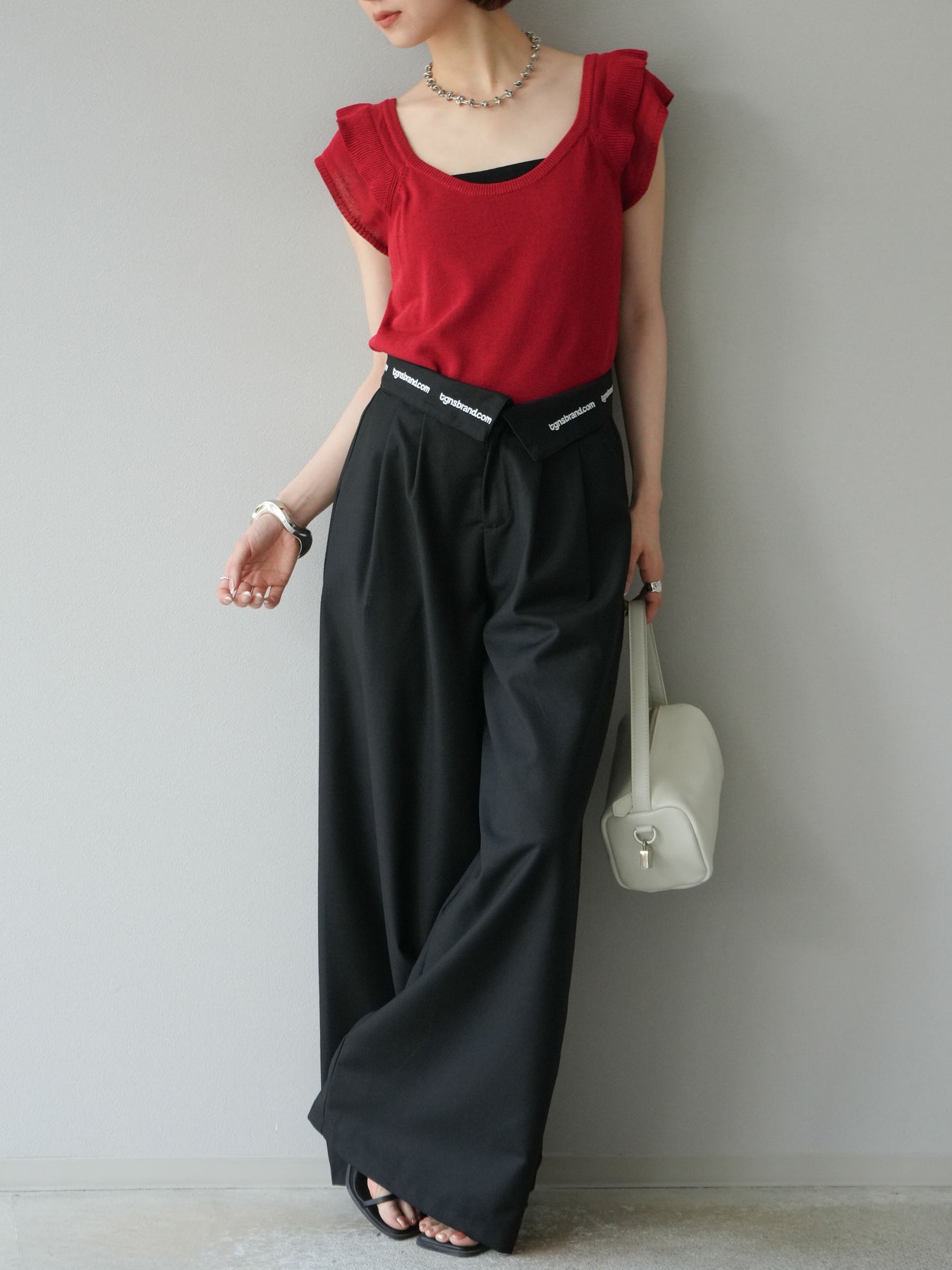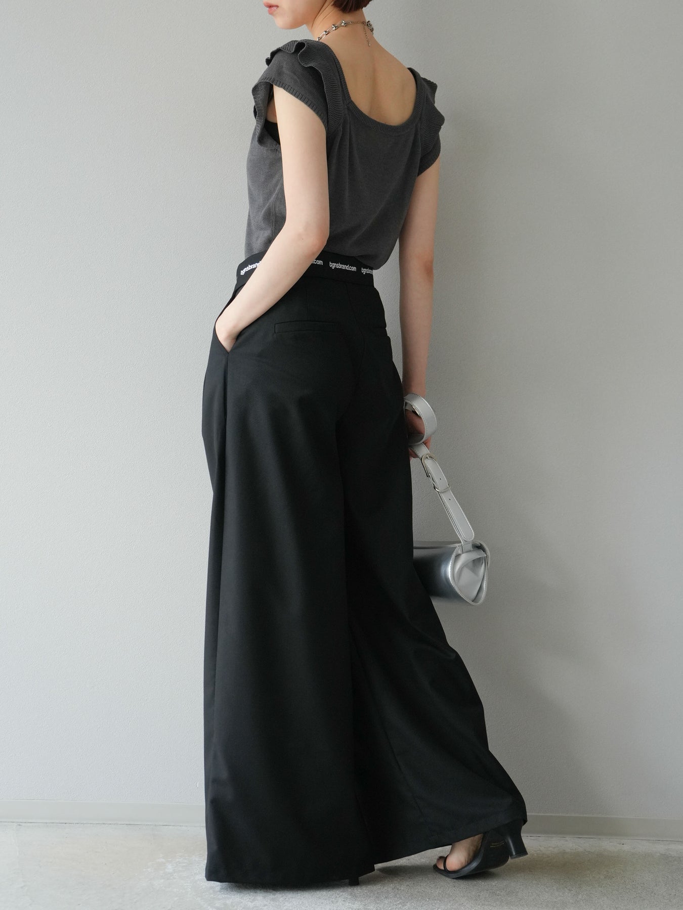 [予約]ウエスト折り返しロゴタックワイドパンツ/ブラック