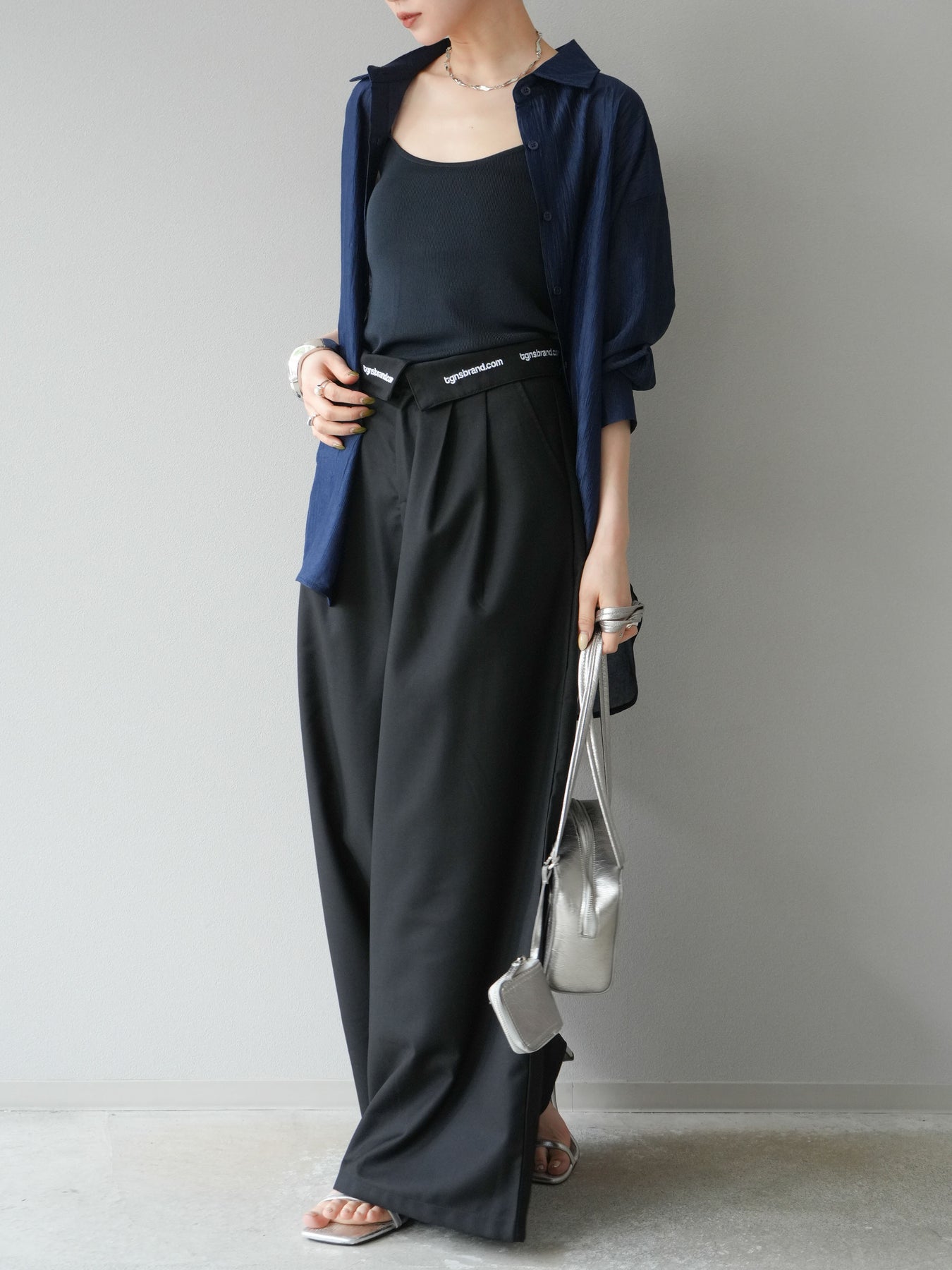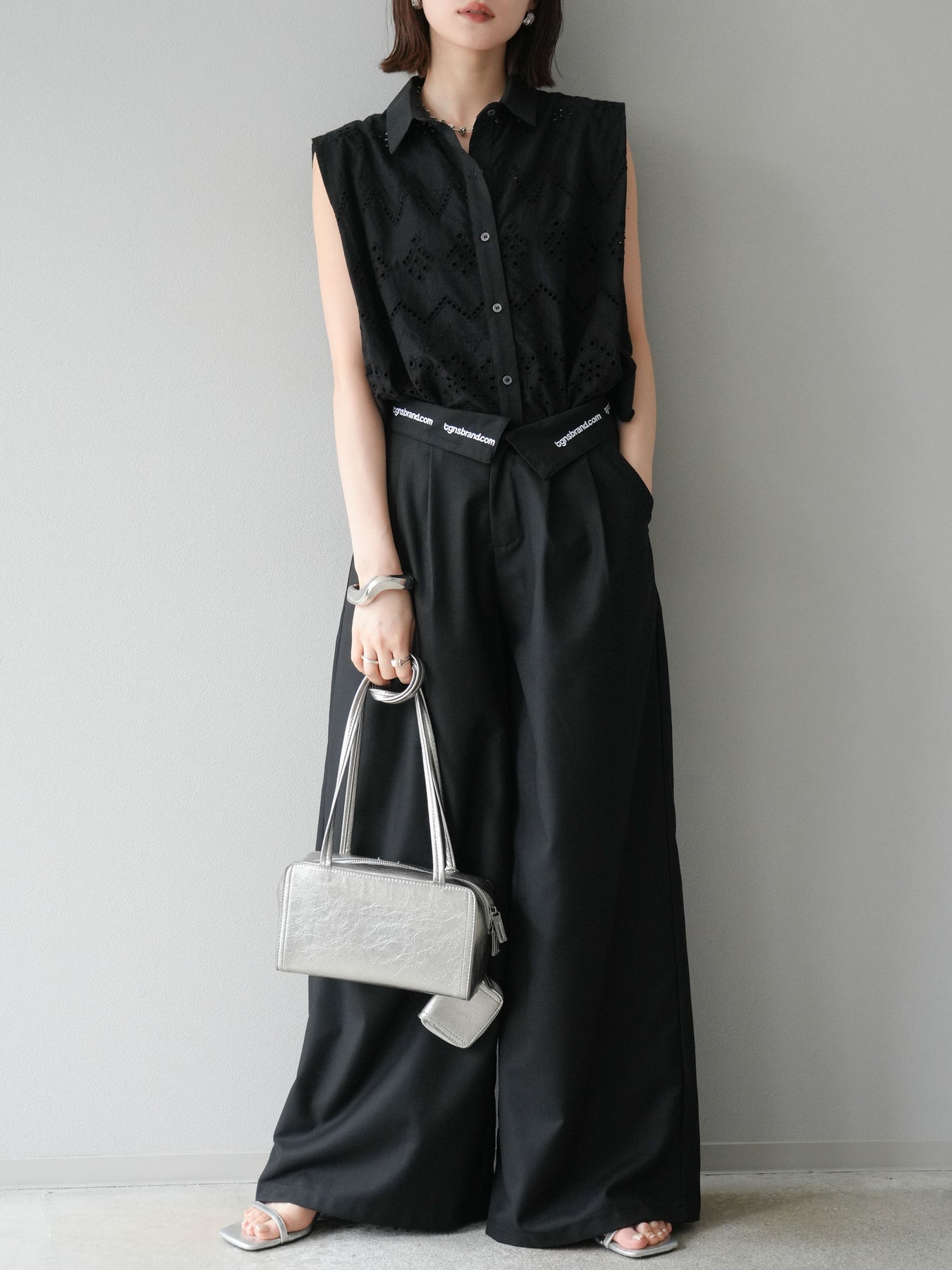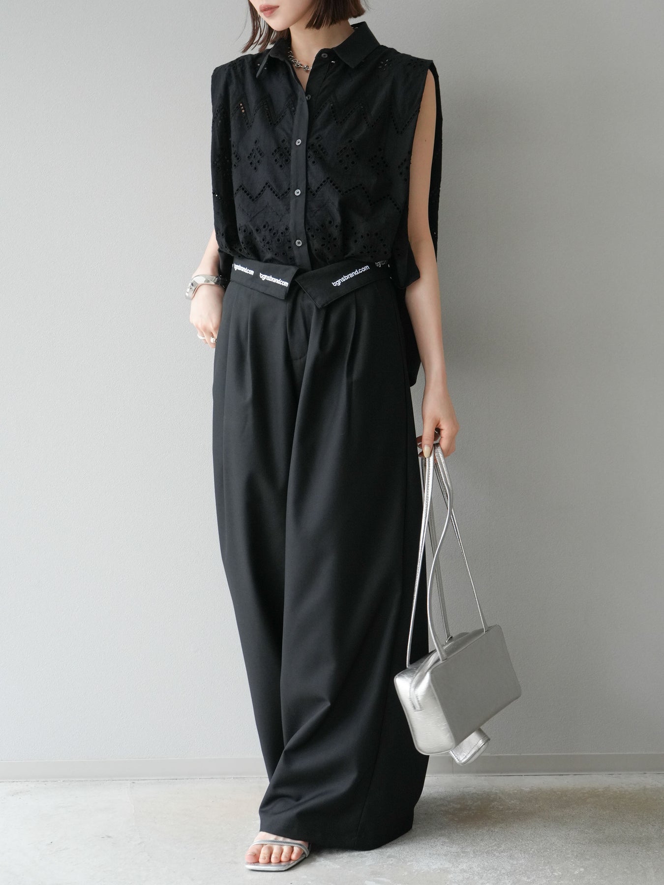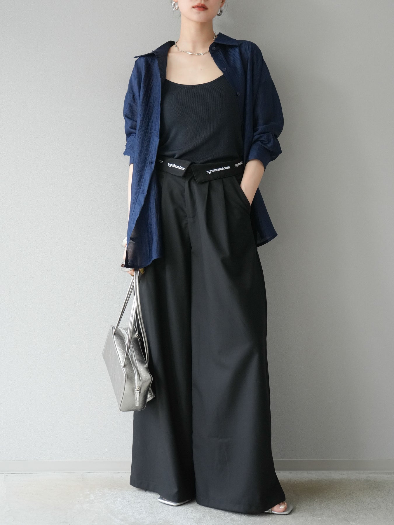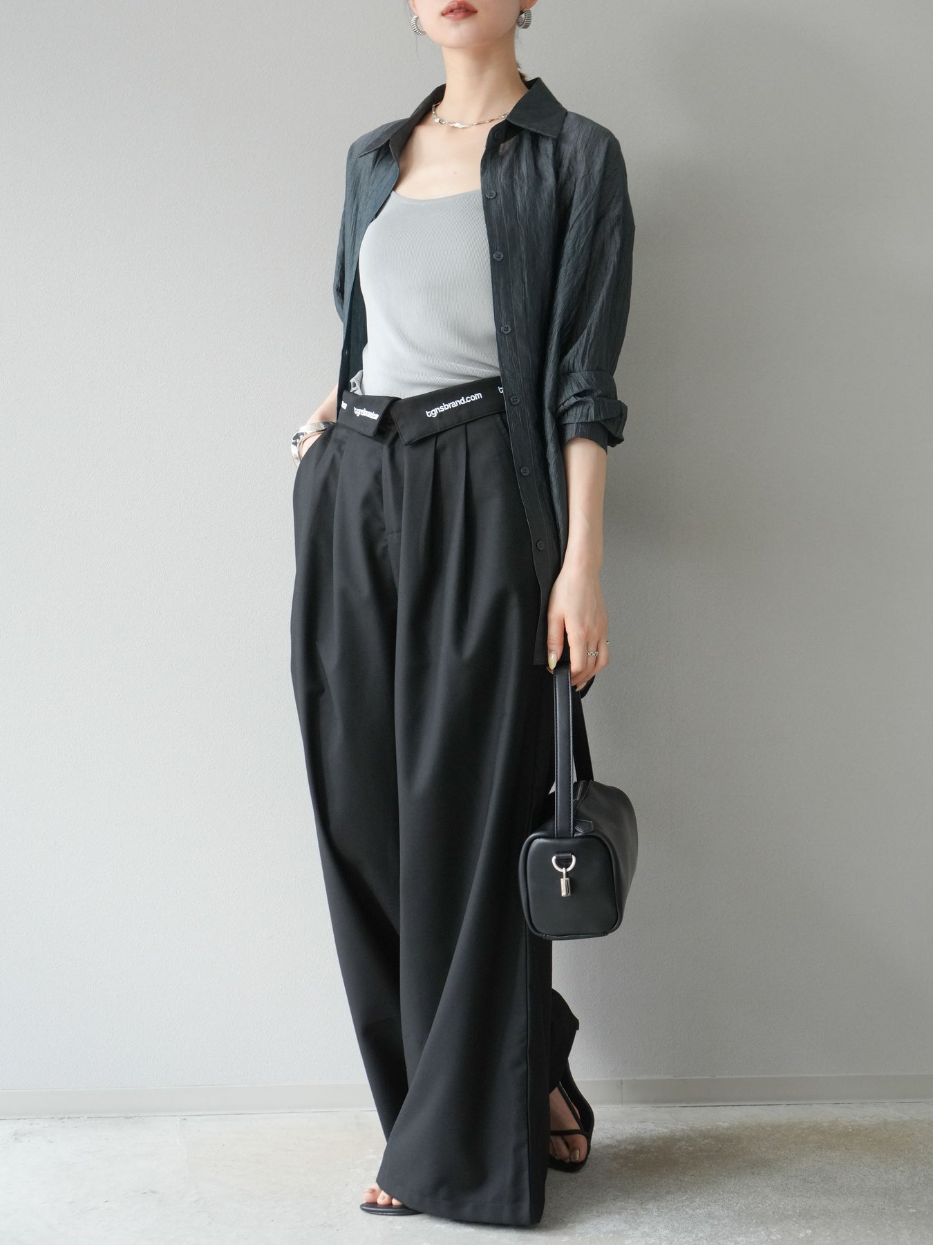 [予約]ウエスト折り返しロゴタックワイドパンツ/ブラック