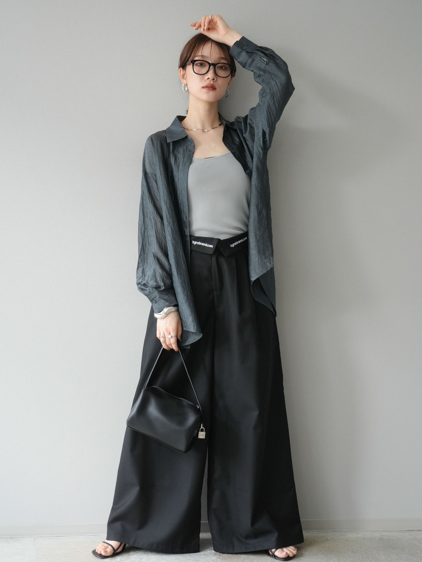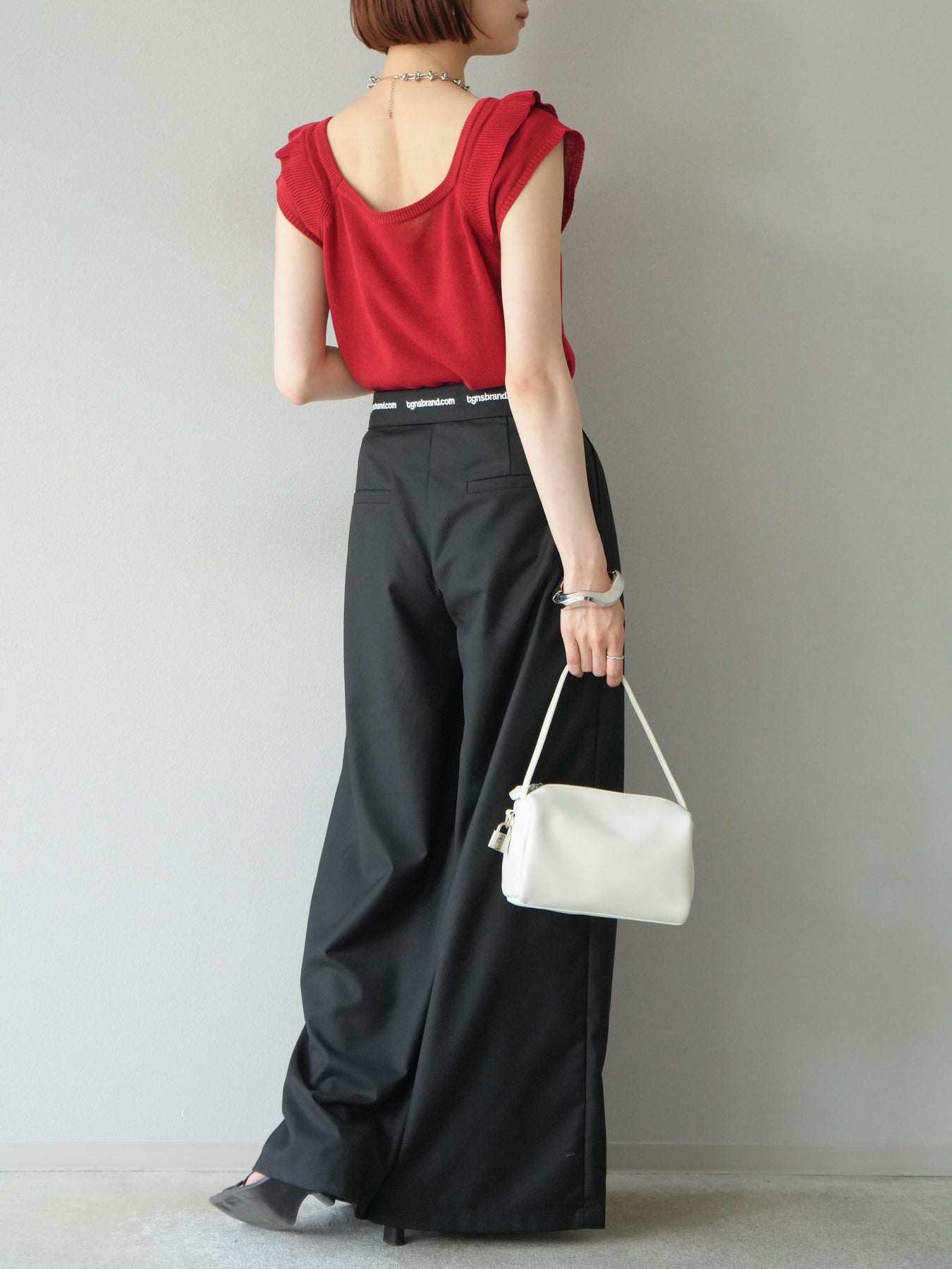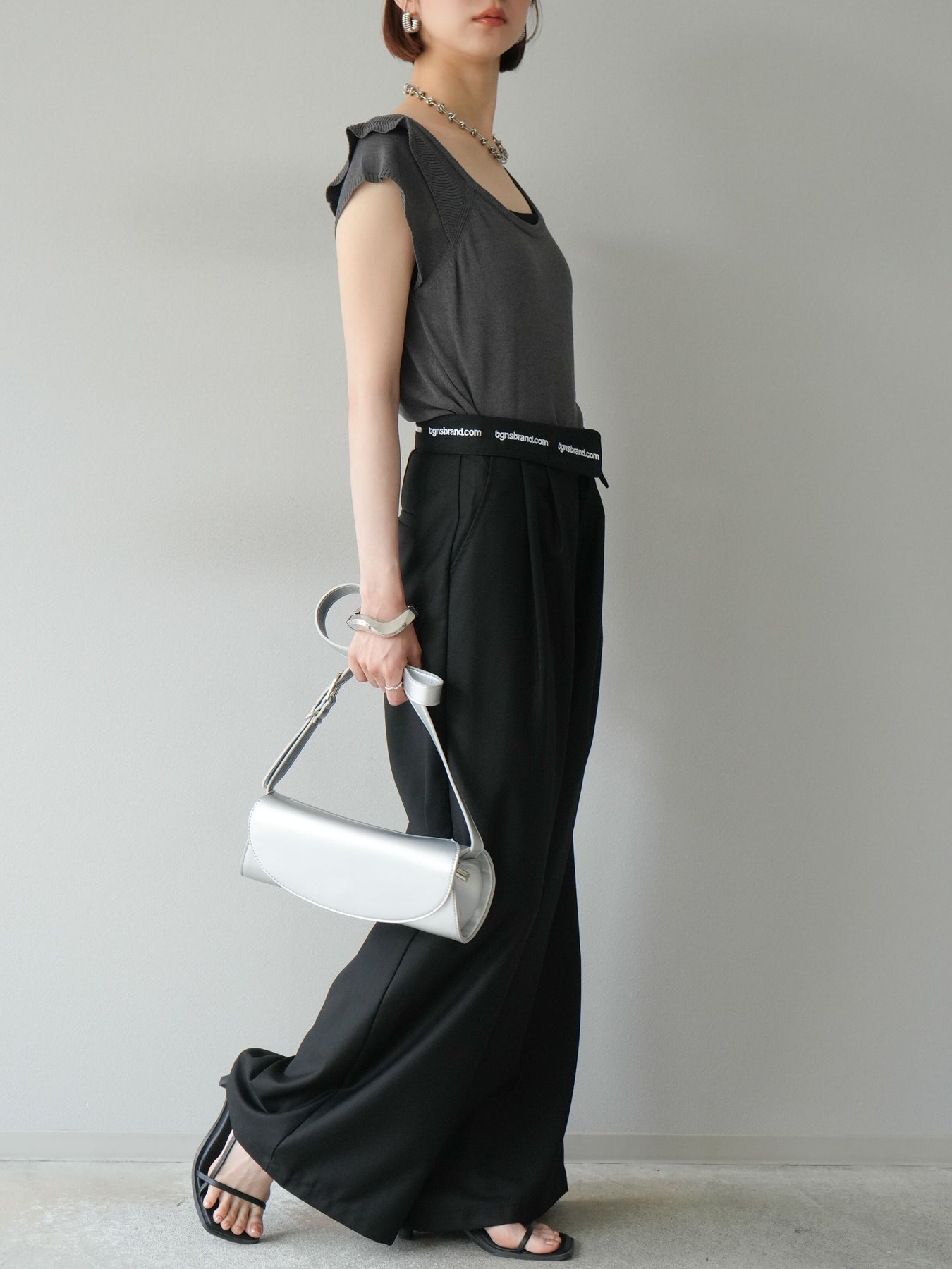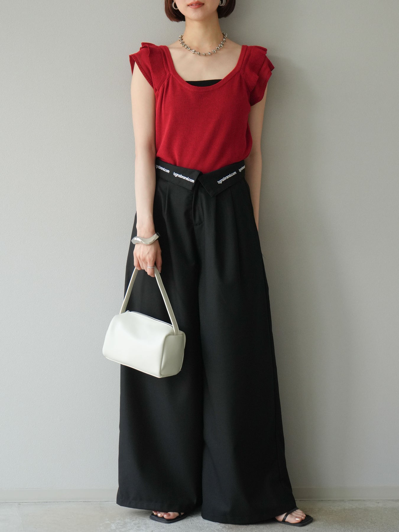 [予約]ウエスト折り返しロゴタックワイドパンツ/ブラック