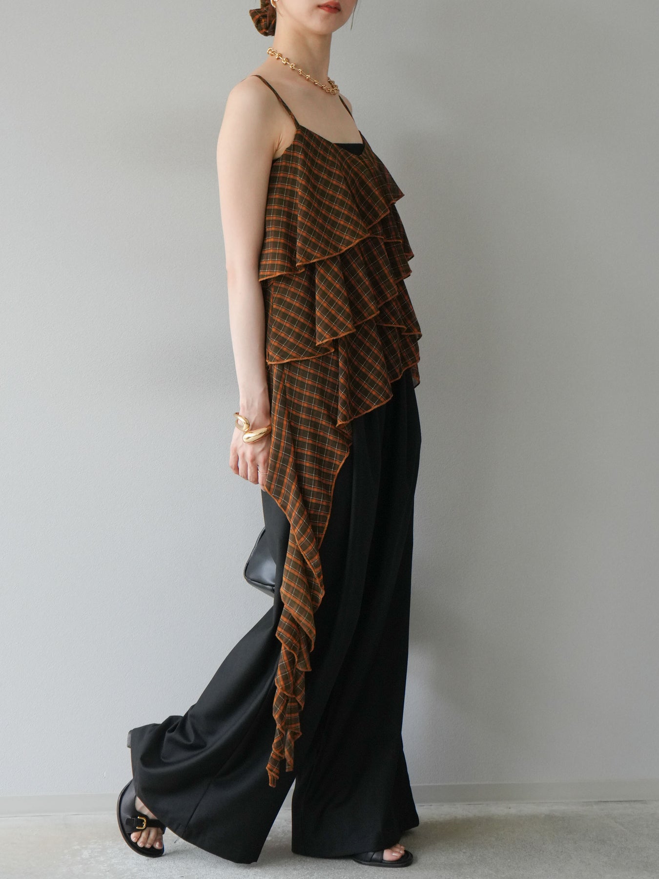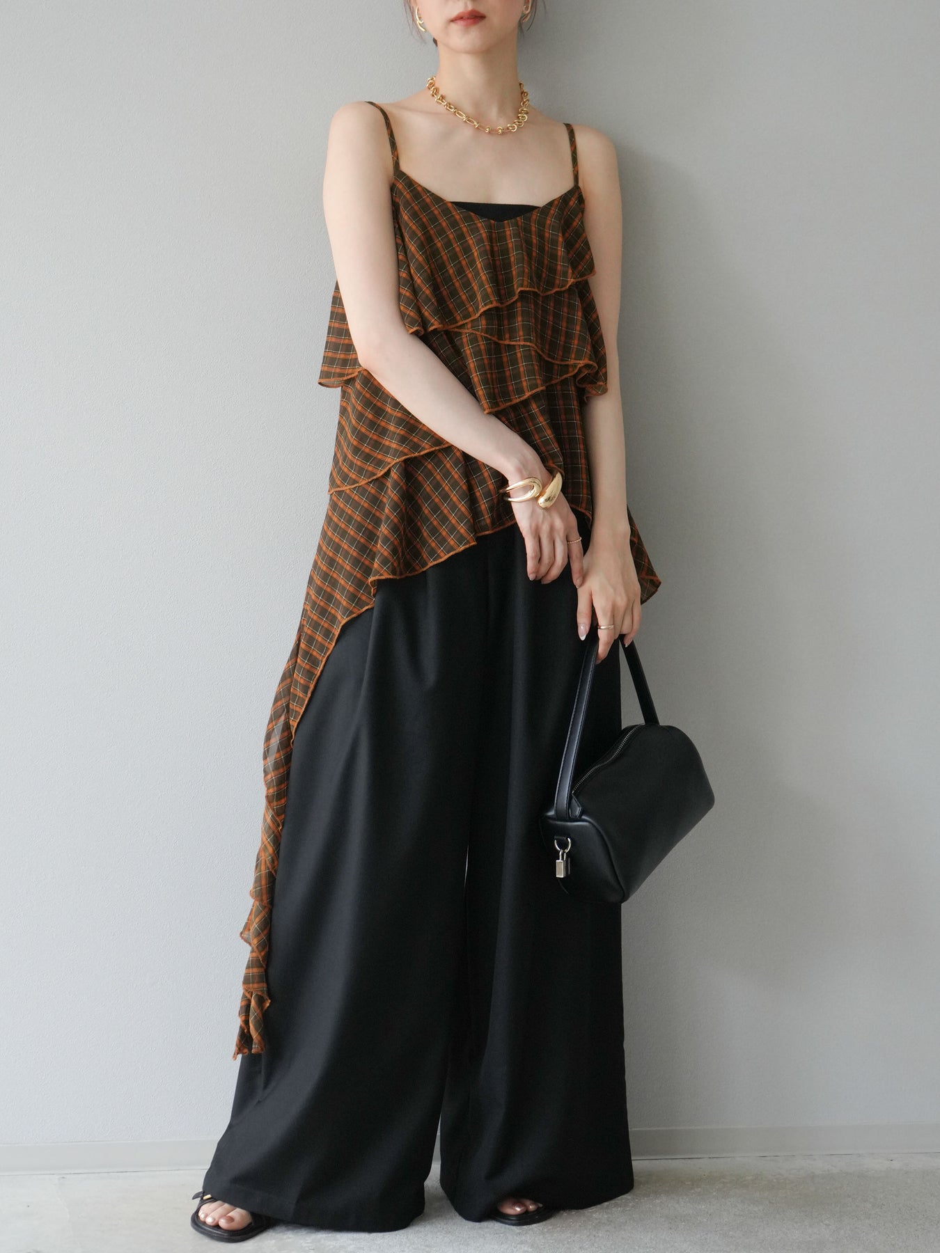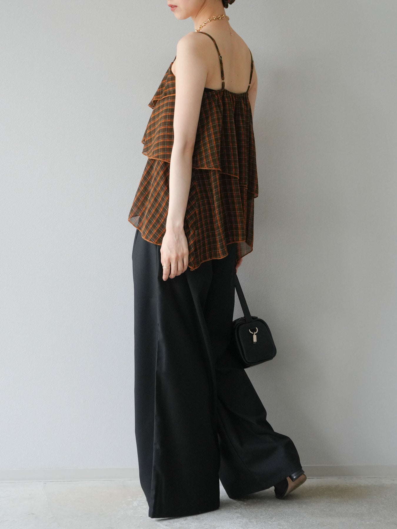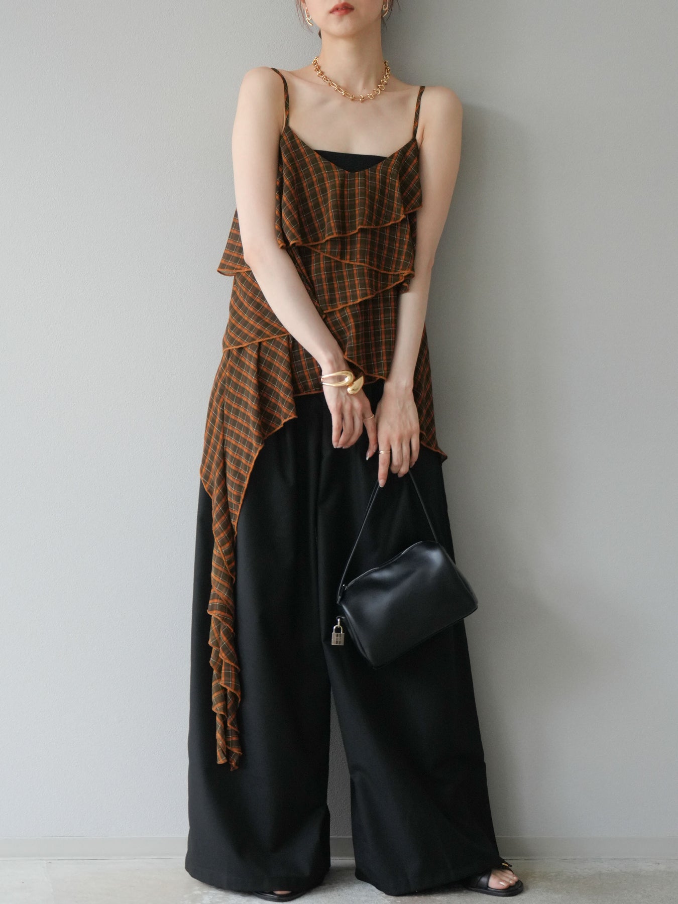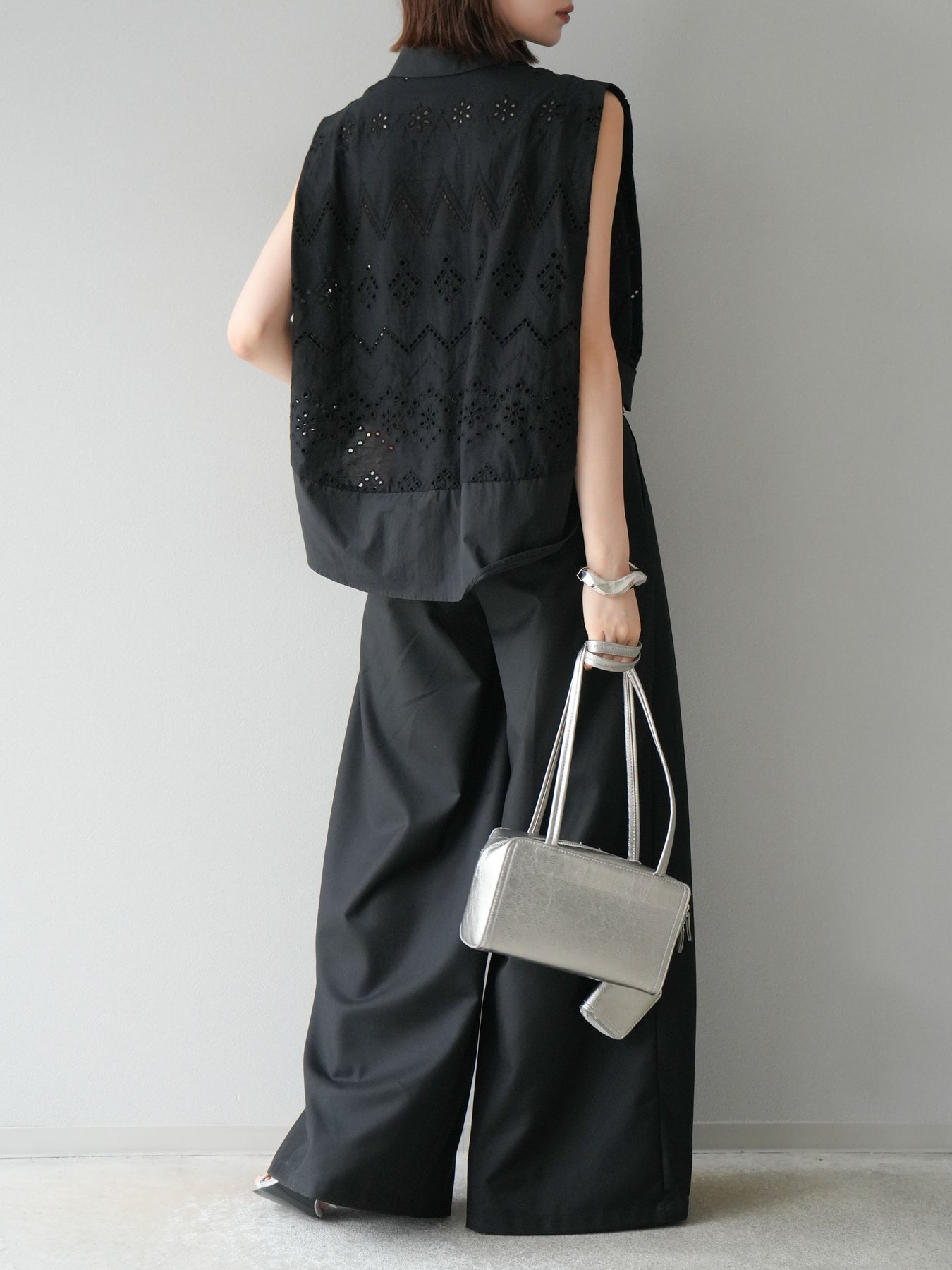 [予約]ウエスト折り返しロゴタックワイドパンツ/ブラック