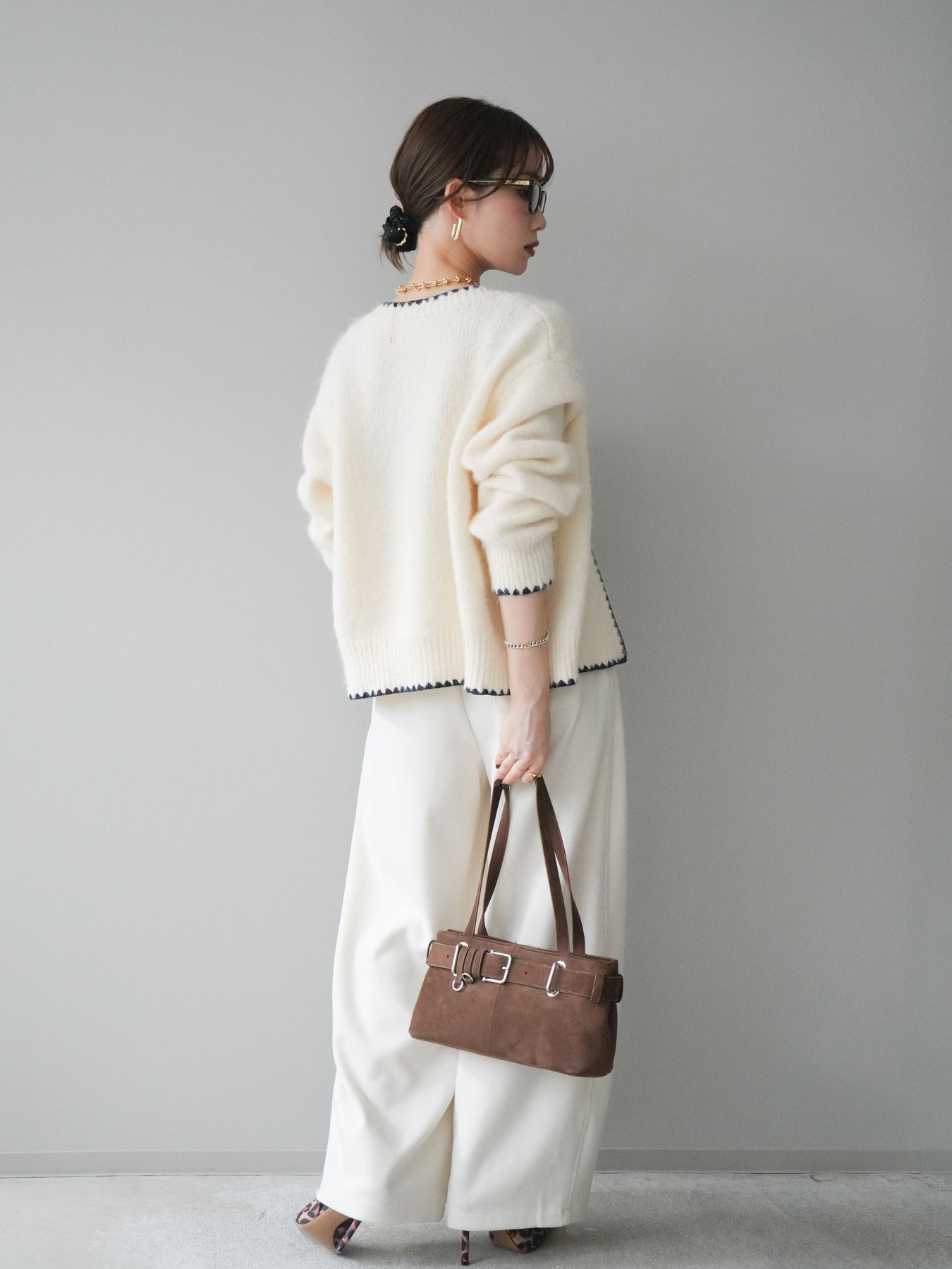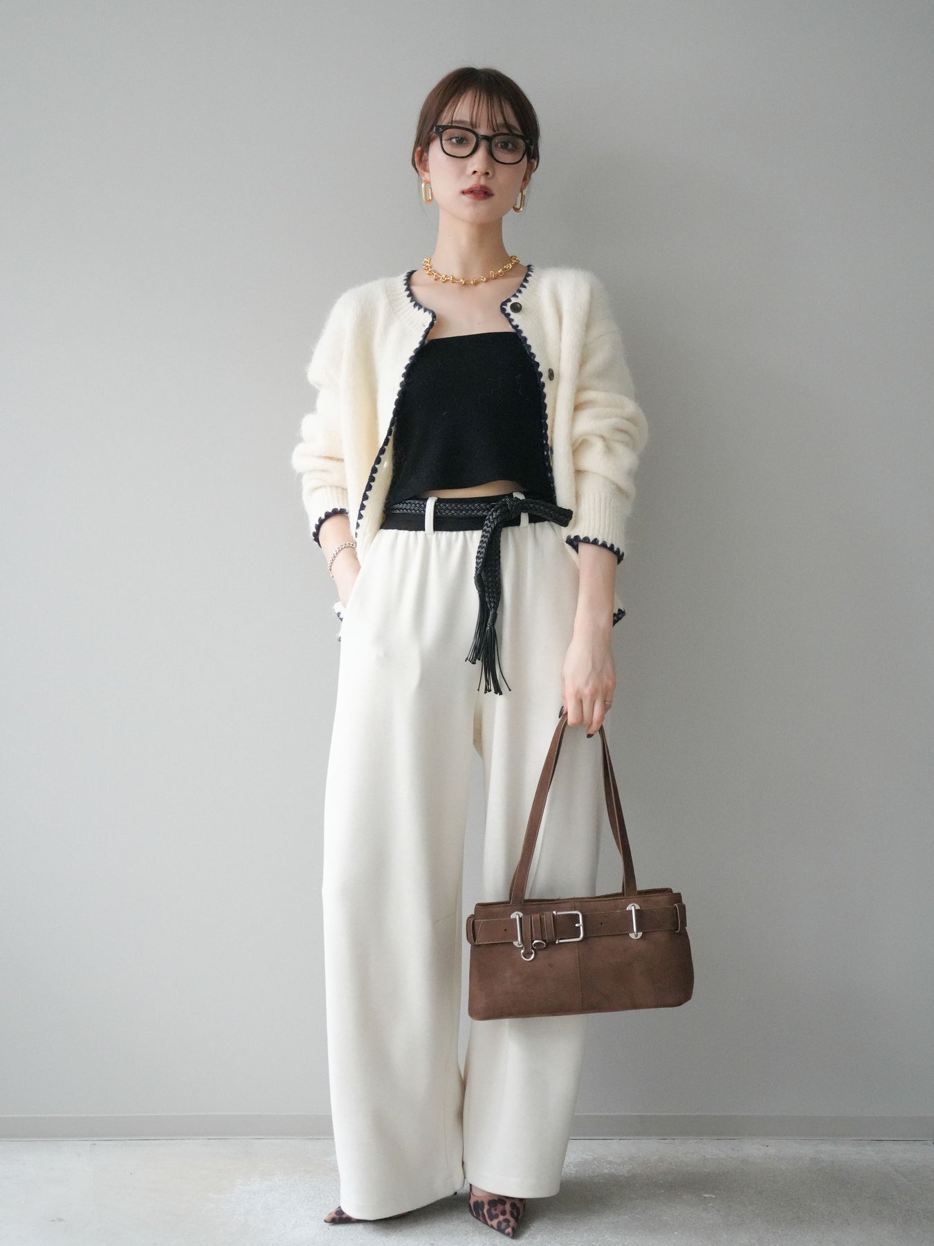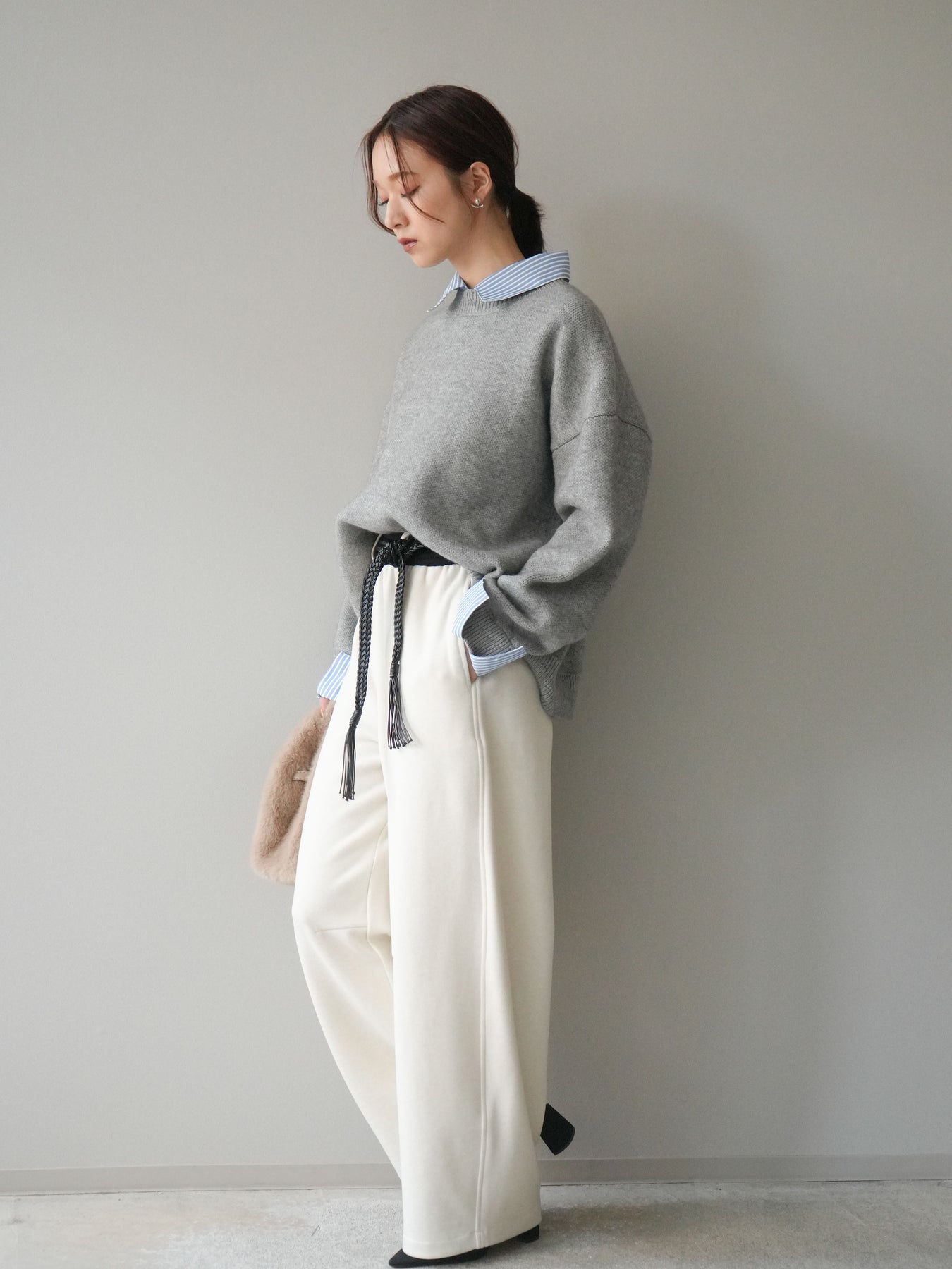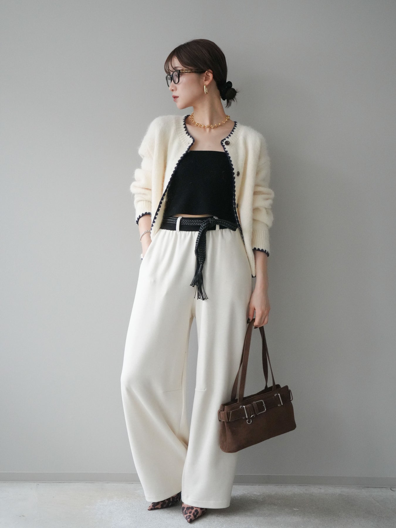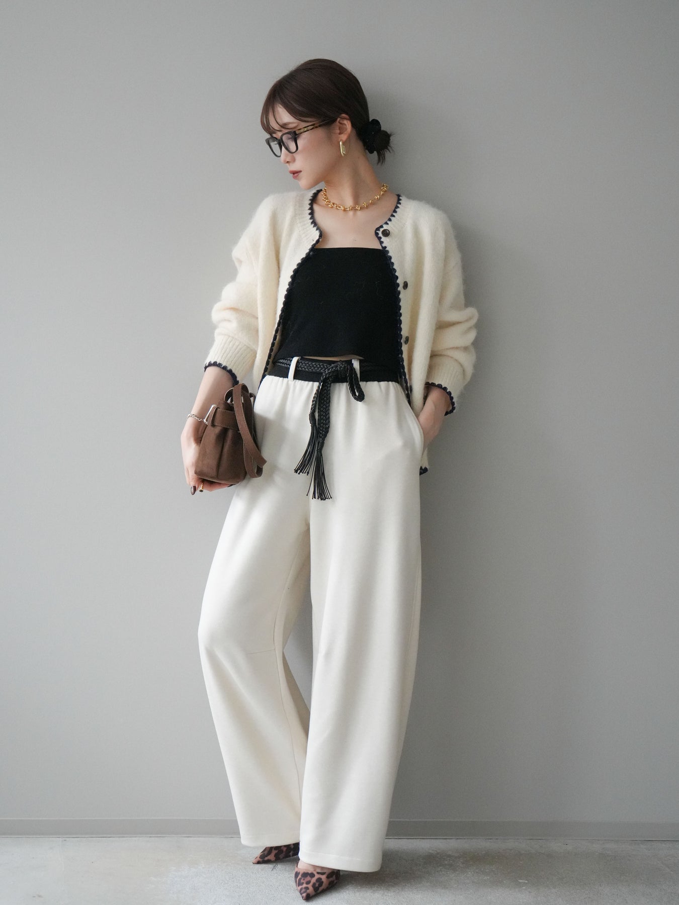 [予約]編み込みベルト付きウエスト配色スエットパンツ/ivory