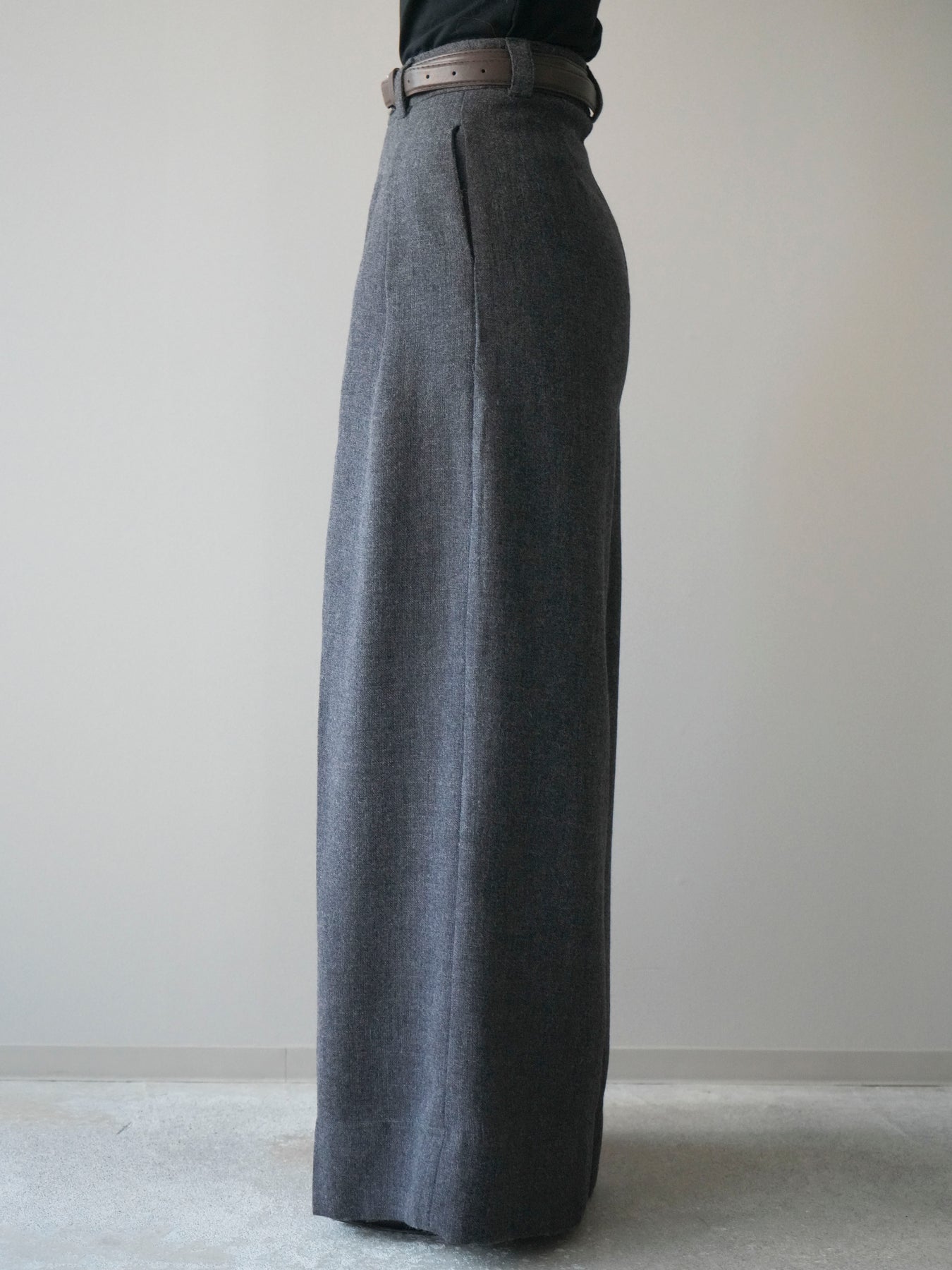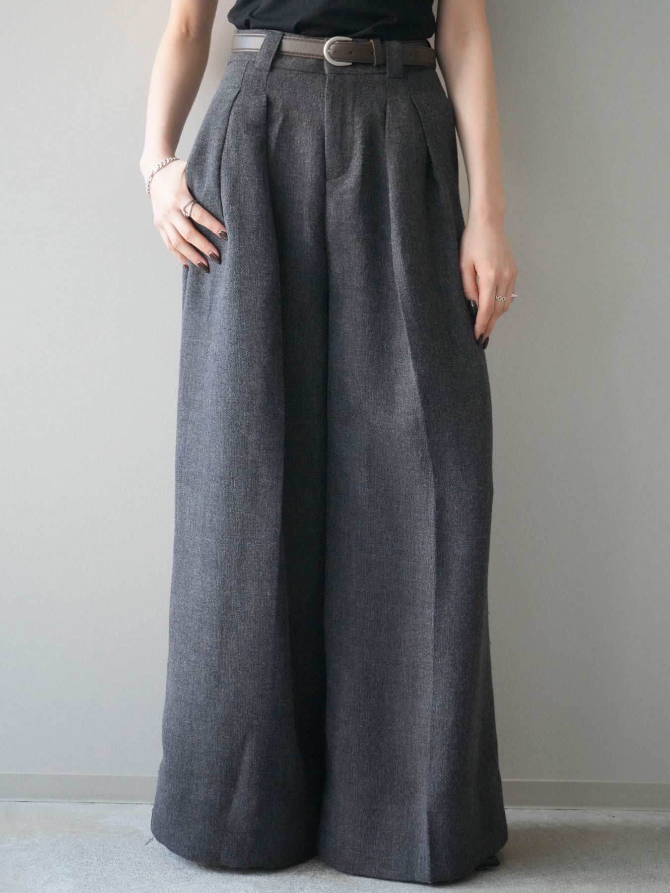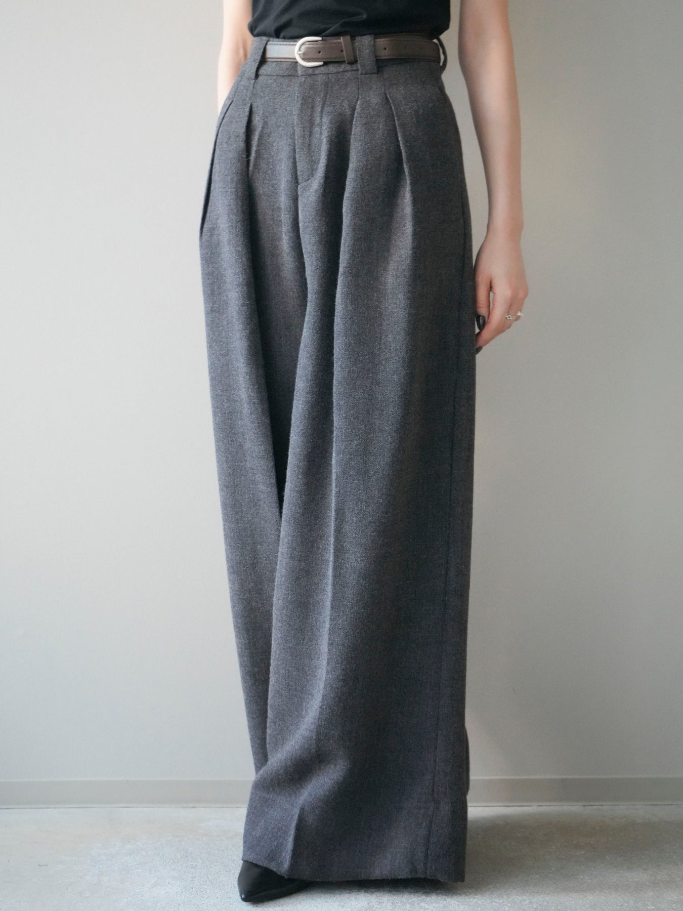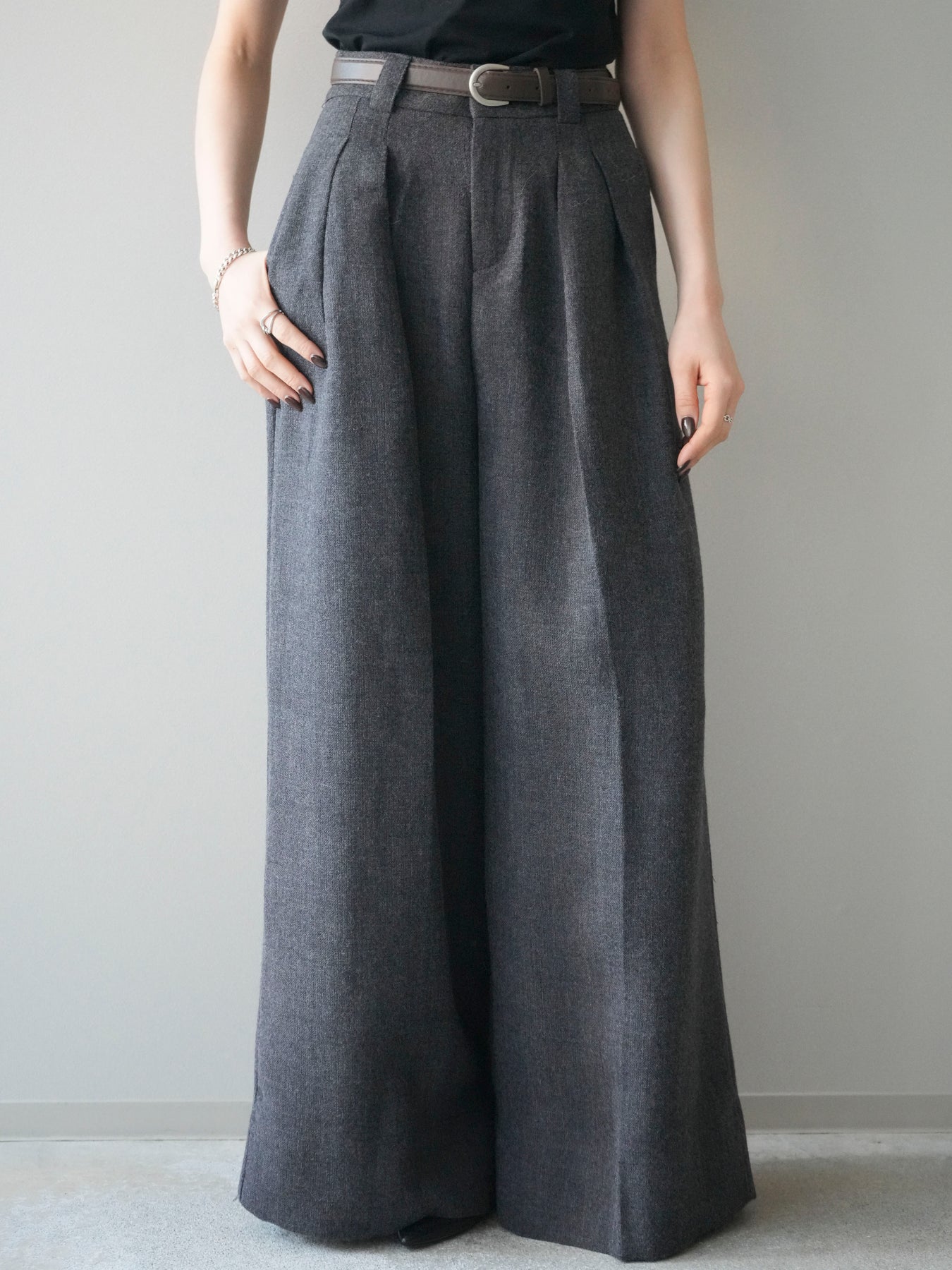 [予約]ウールタッチベルト付ワイドパンツ/charcoal