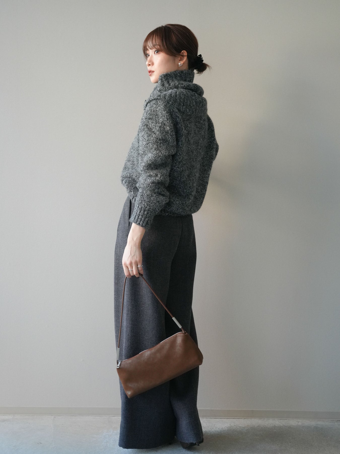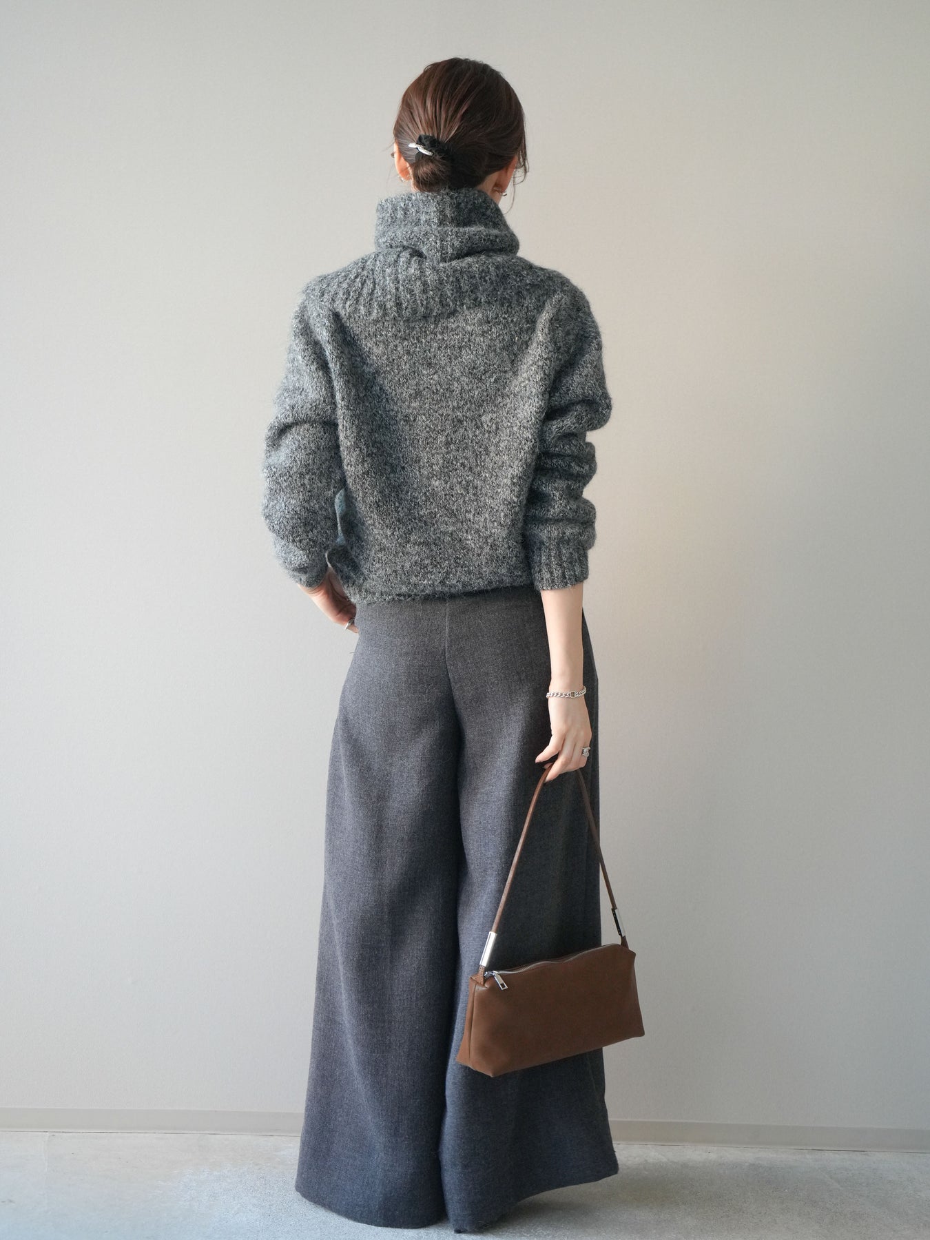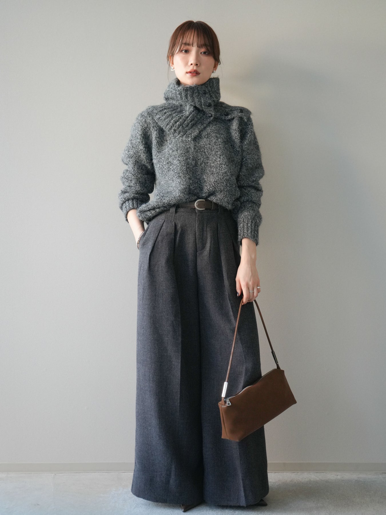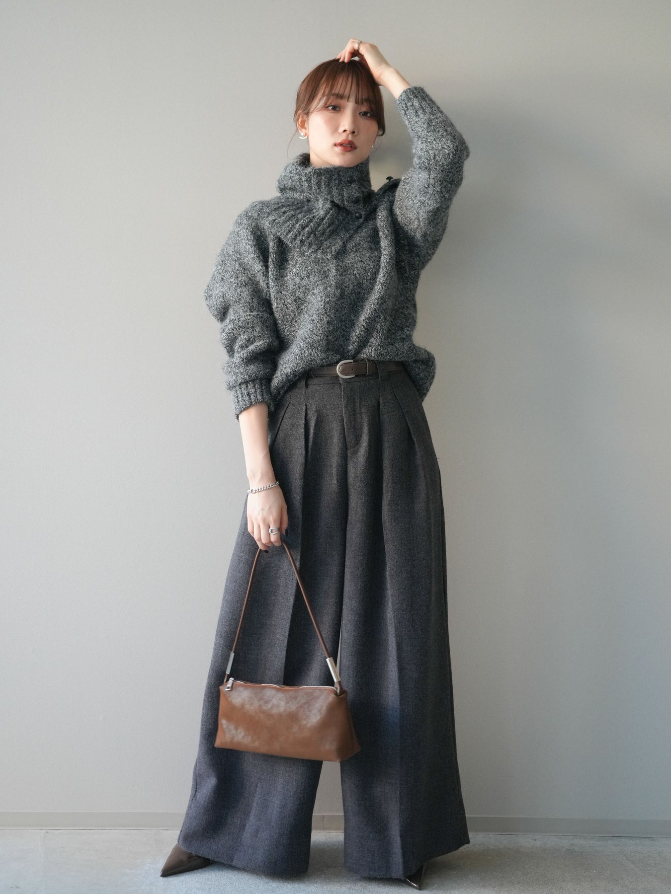 [予約]ウールタッチベルト付ワイドパンツ/charcoal