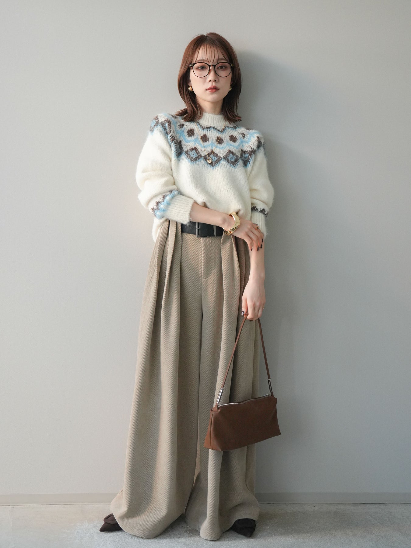 立体的なループデザインが印象的な、存在感抜群のコールテンワイドパンツ。フロントに重なるように配されたループが縦のラインを強調し、歩くたびにゆらめく動きがコーデに奥行きを与えてくれます。しっかりとしたコールテン素材がシルエットを美しく保ちつつ、ワイド特有のリラックス感も両立。セットのベルトがウエストまわりを引き締め、スタイリングをバランスよくまとめてくれます。シンプルなトップスと合わせるだけで主役級の着こなしが完成する、個性と上品さを備えた一本です。