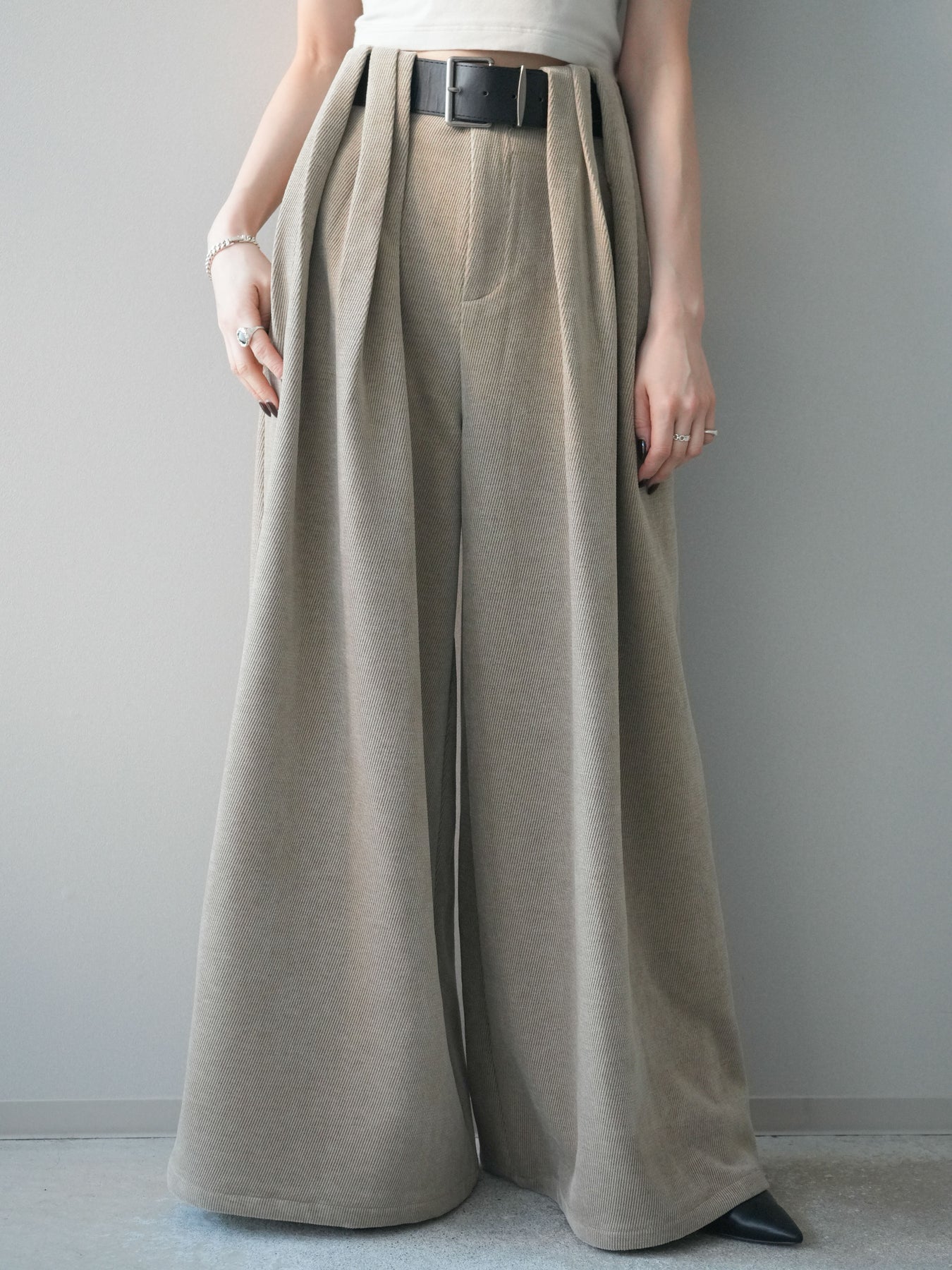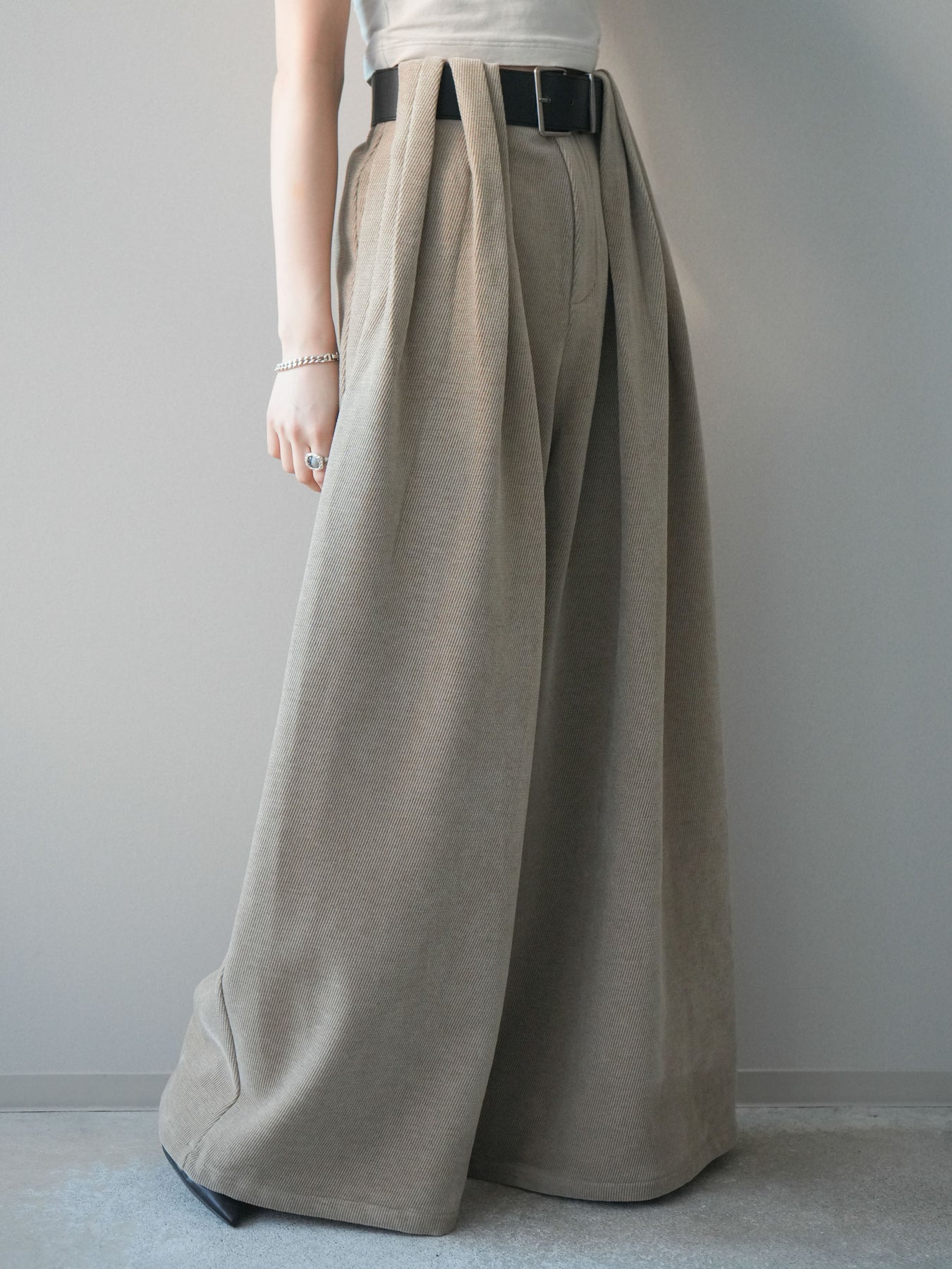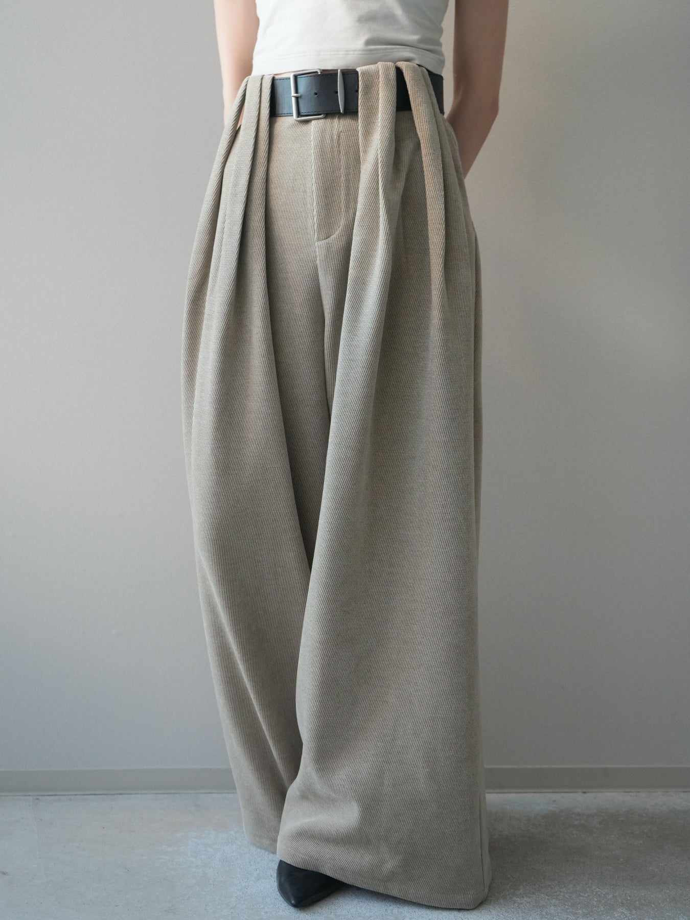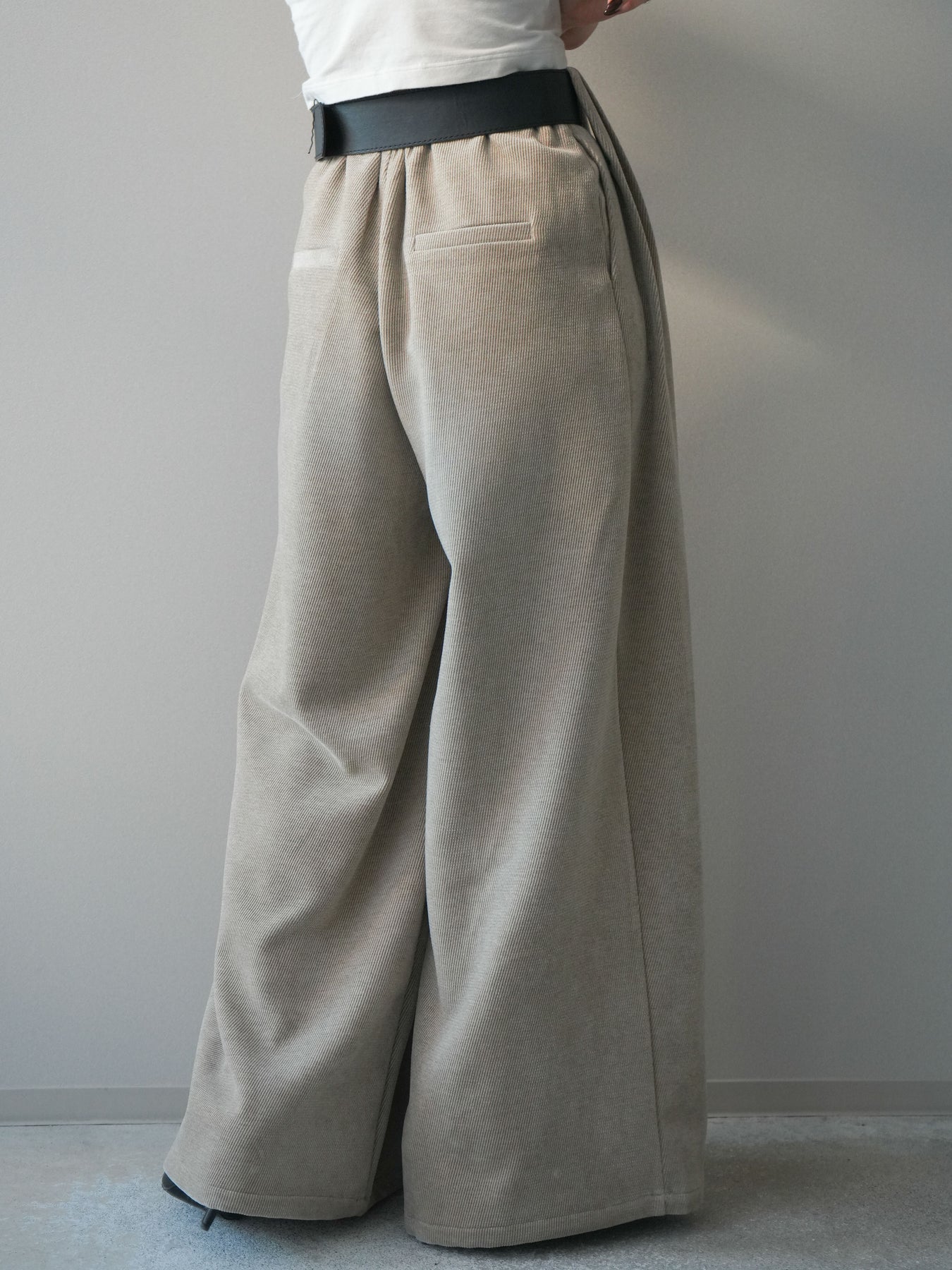 [予約]ベルトデザインループコールテンワイドパンツ(ベルト付き)/beige