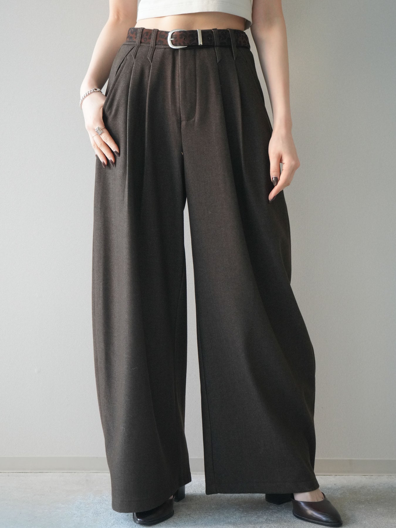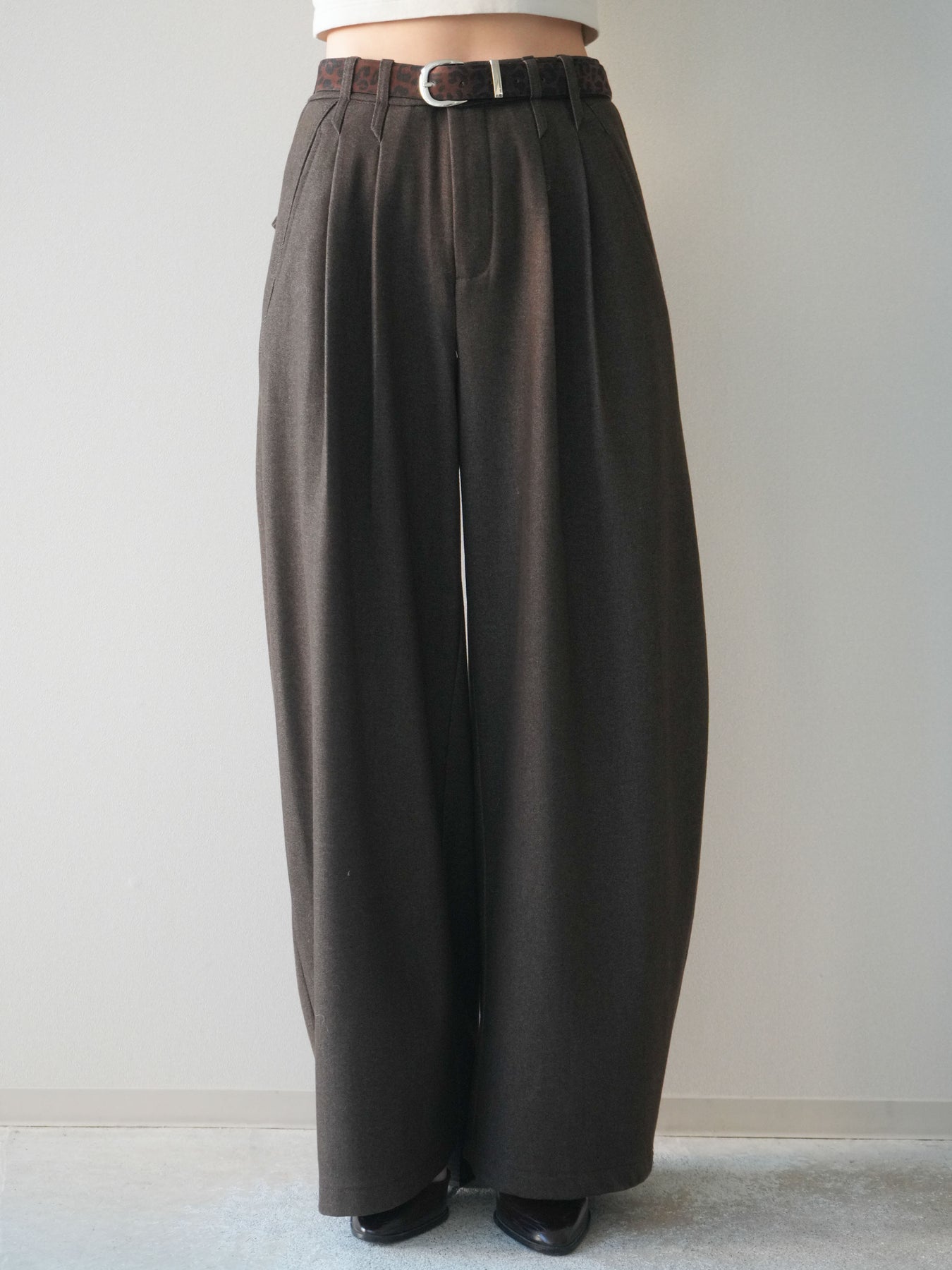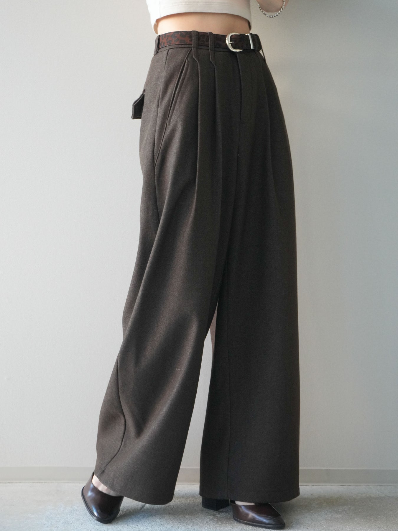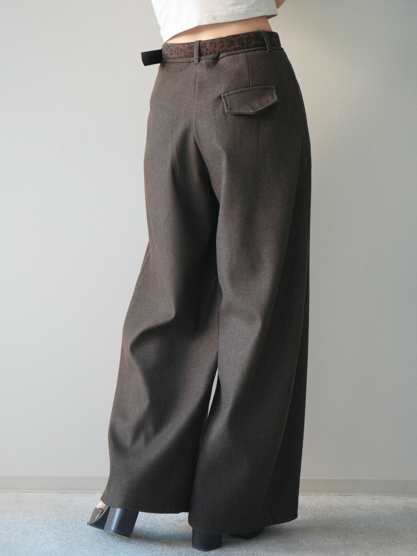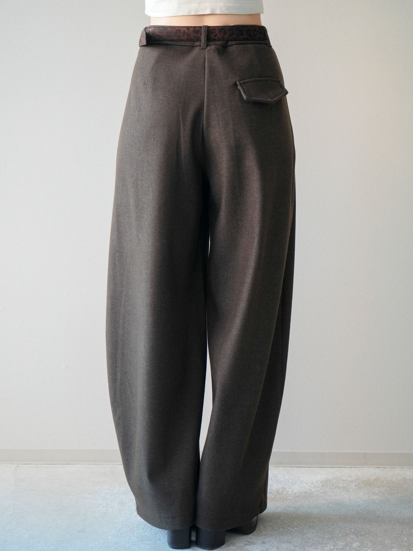 [予約]アニマル柄ベルト付きウールタッチワイドパンツ/brown