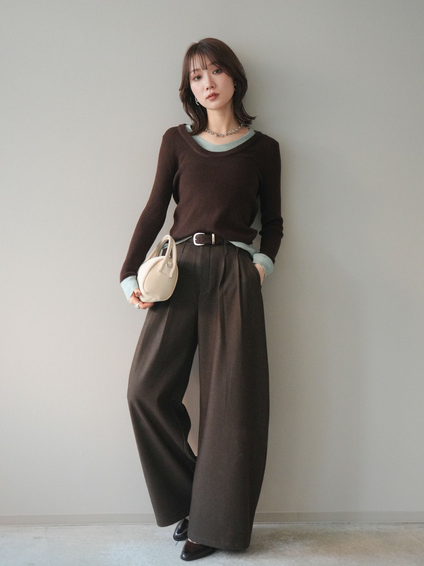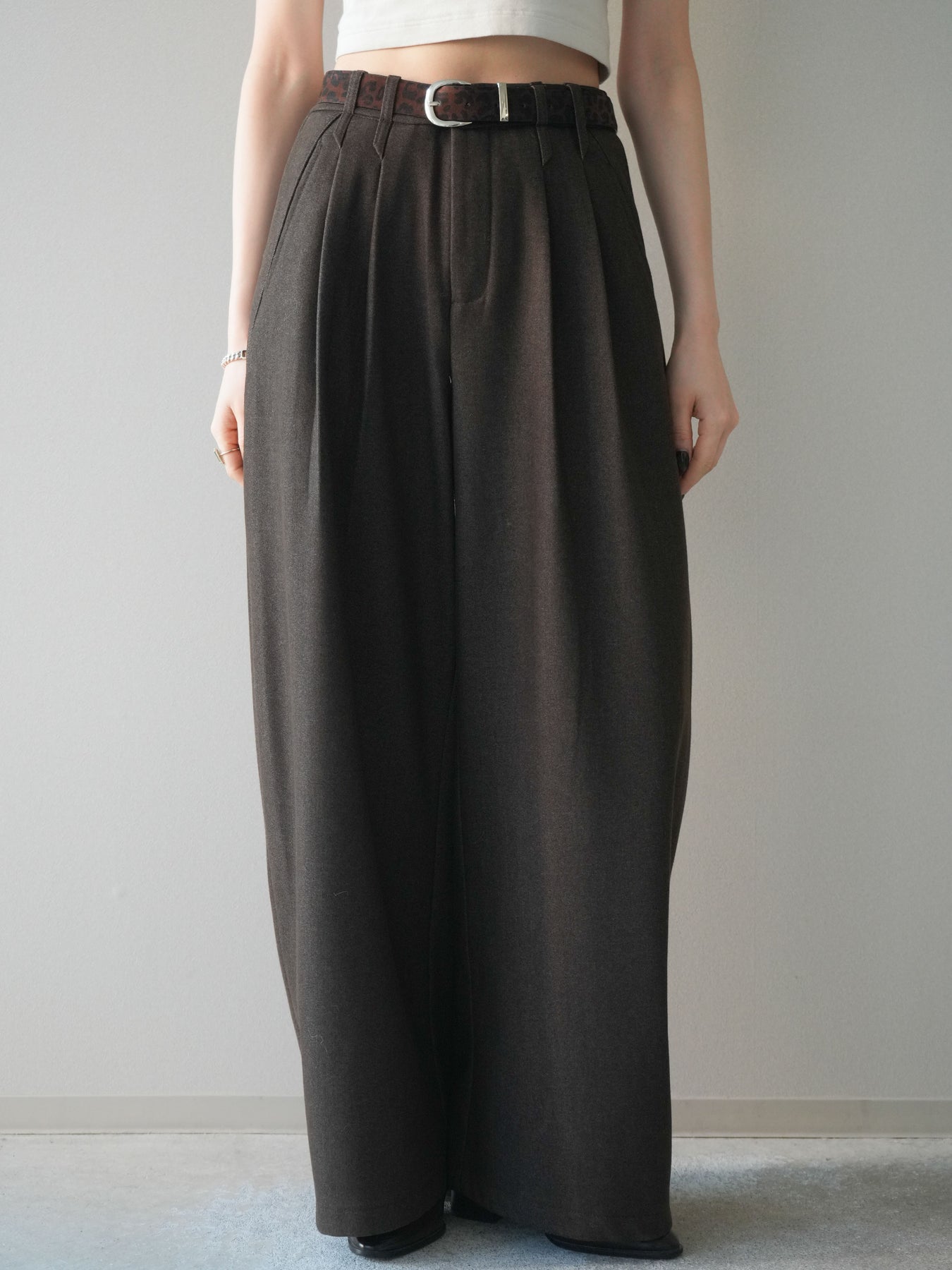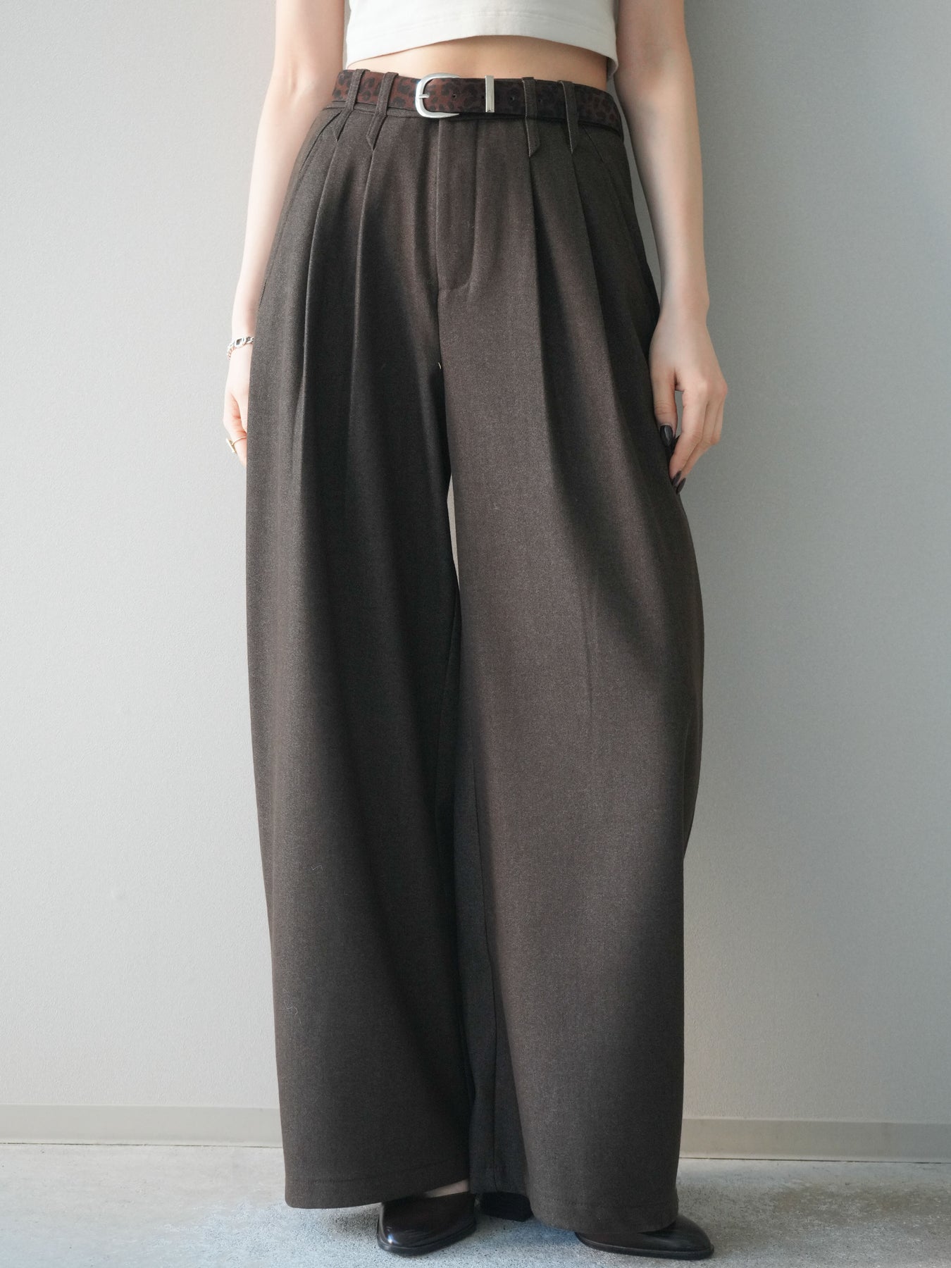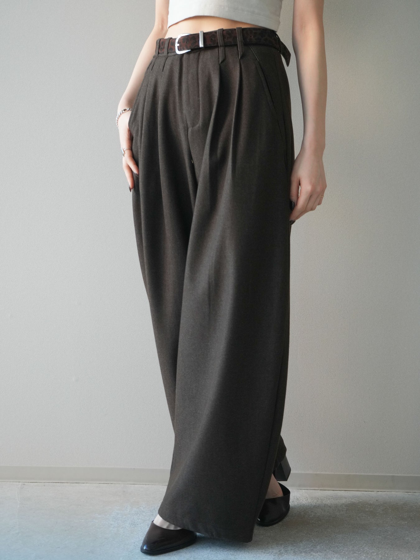 [予約]アニマル柄ベルト付きウールタッチワイドパンツ/brown