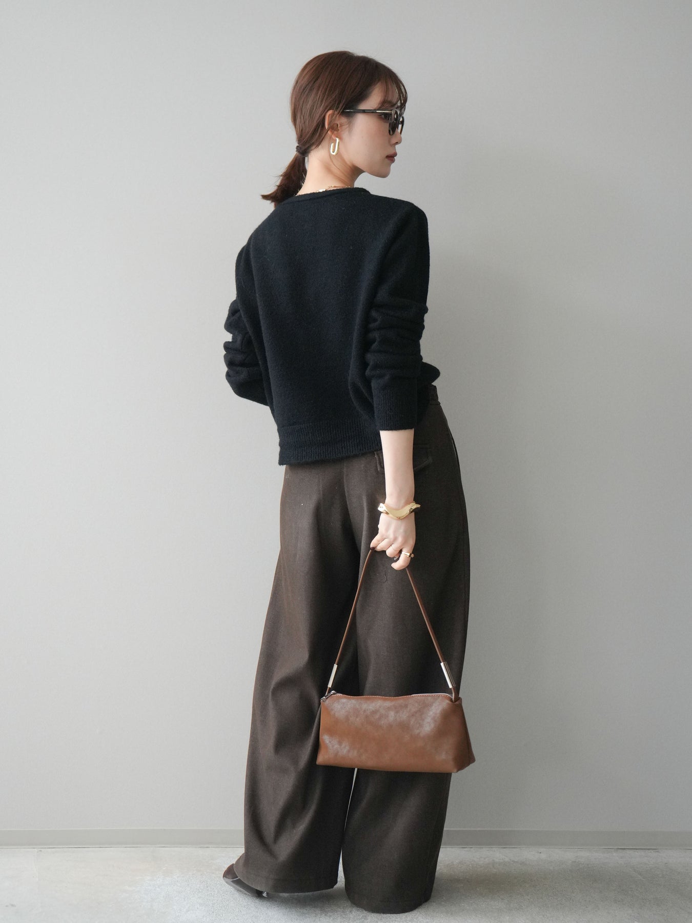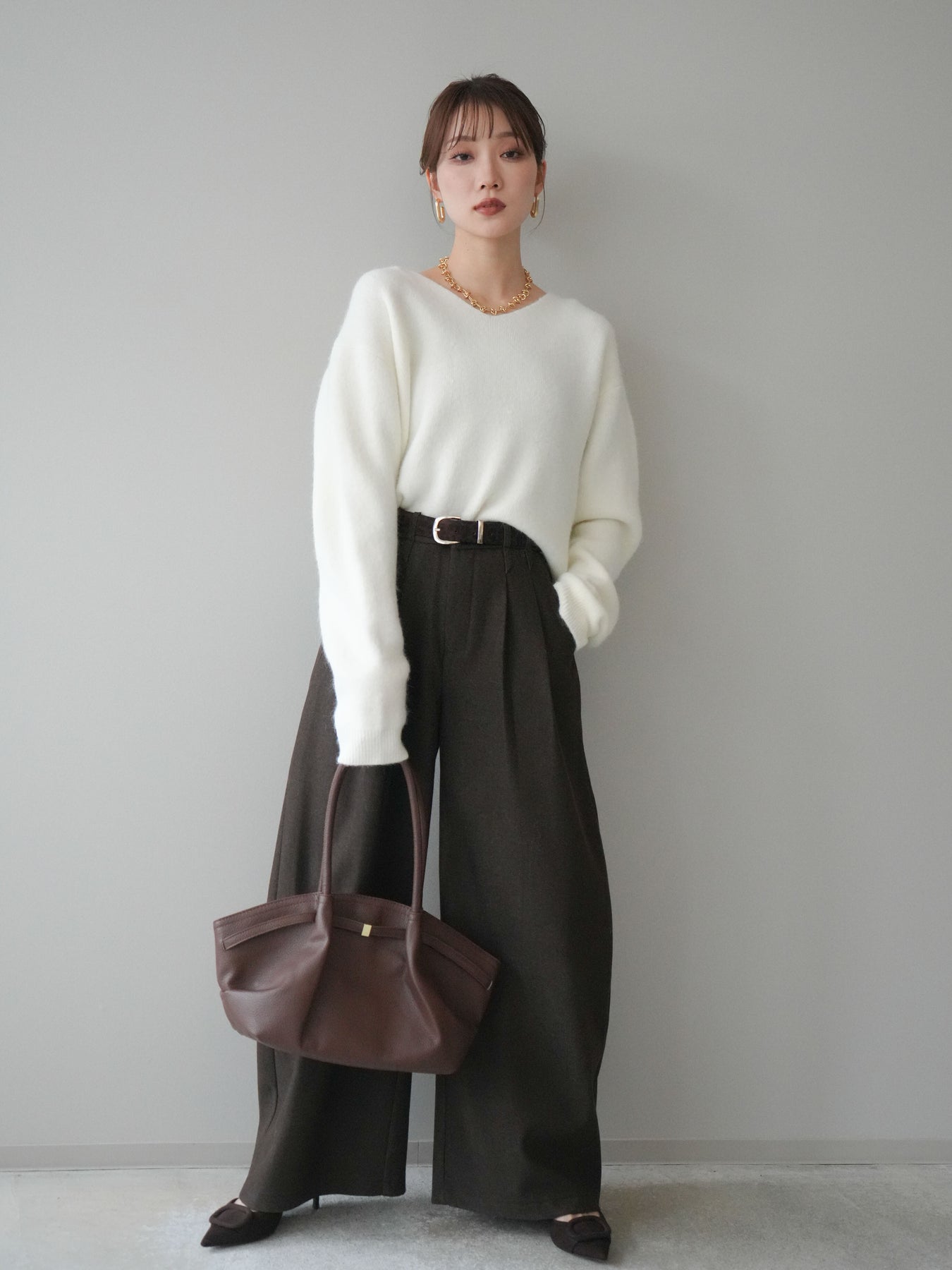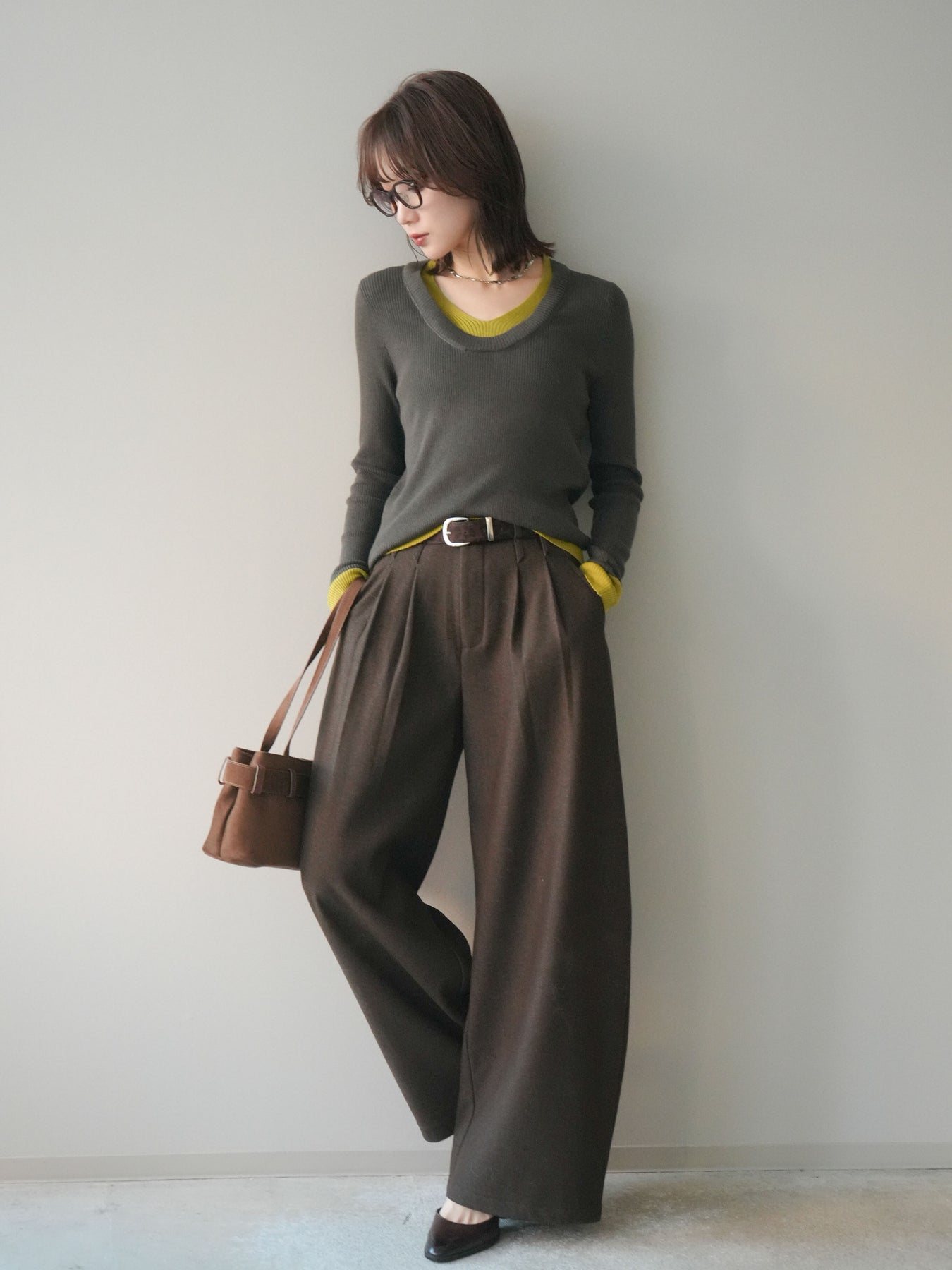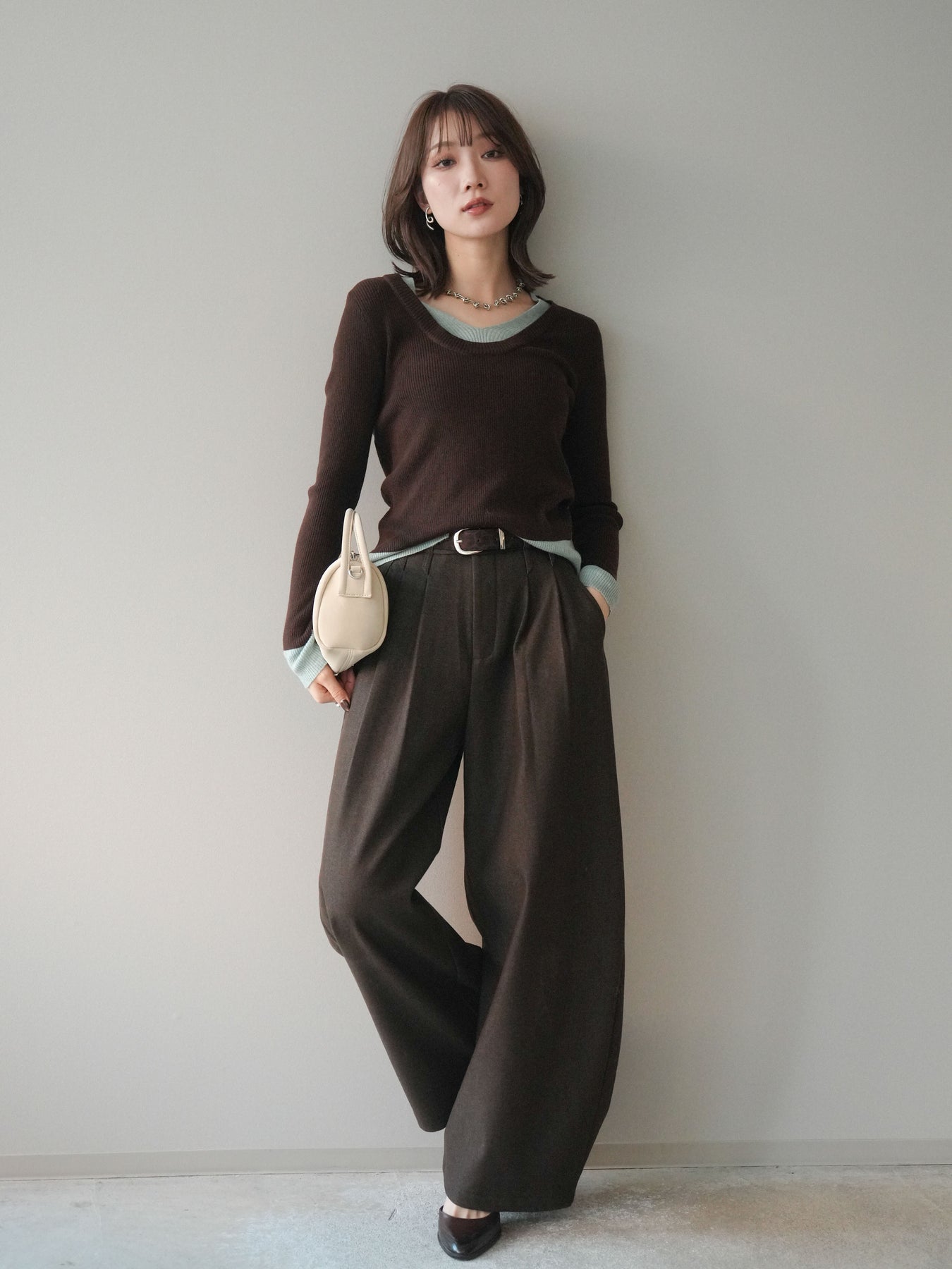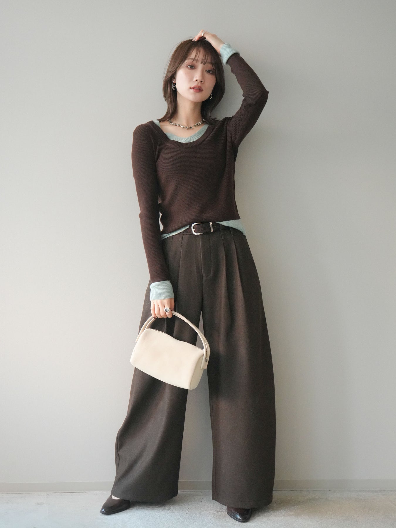 [予約]アニマル柄ベルト付きウールタッチワイドパンツ/brown