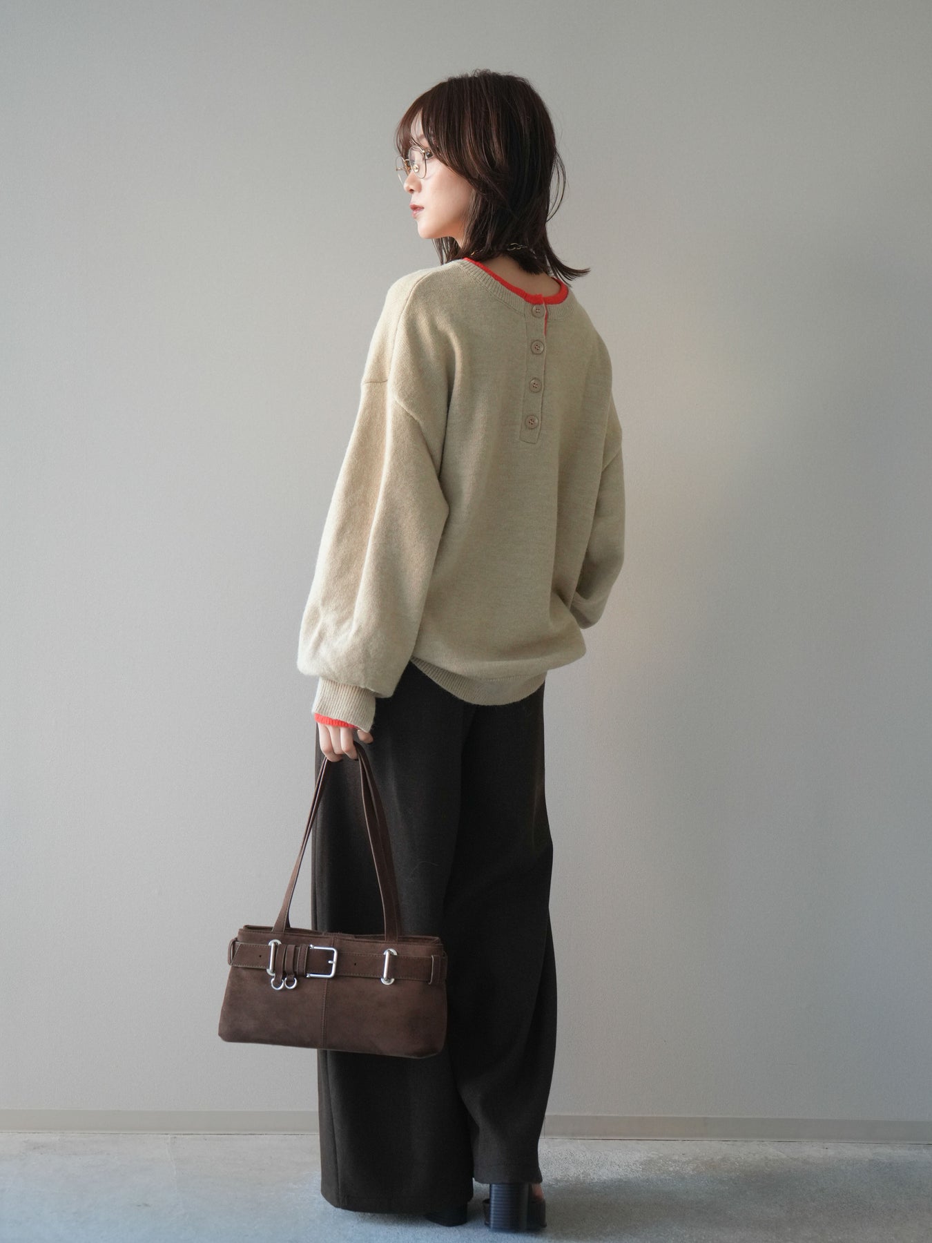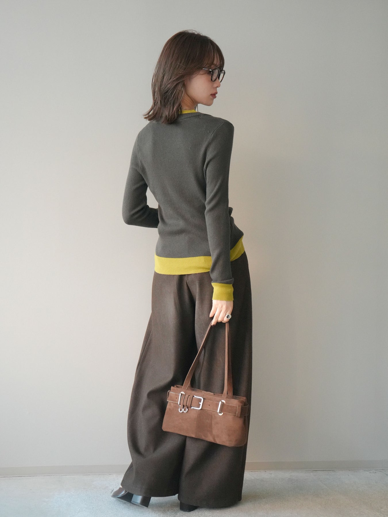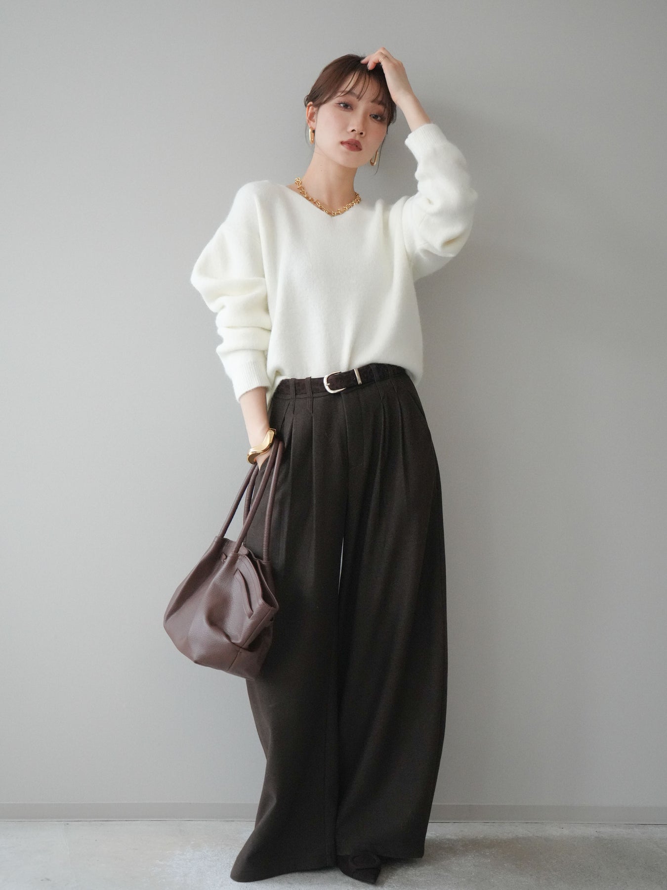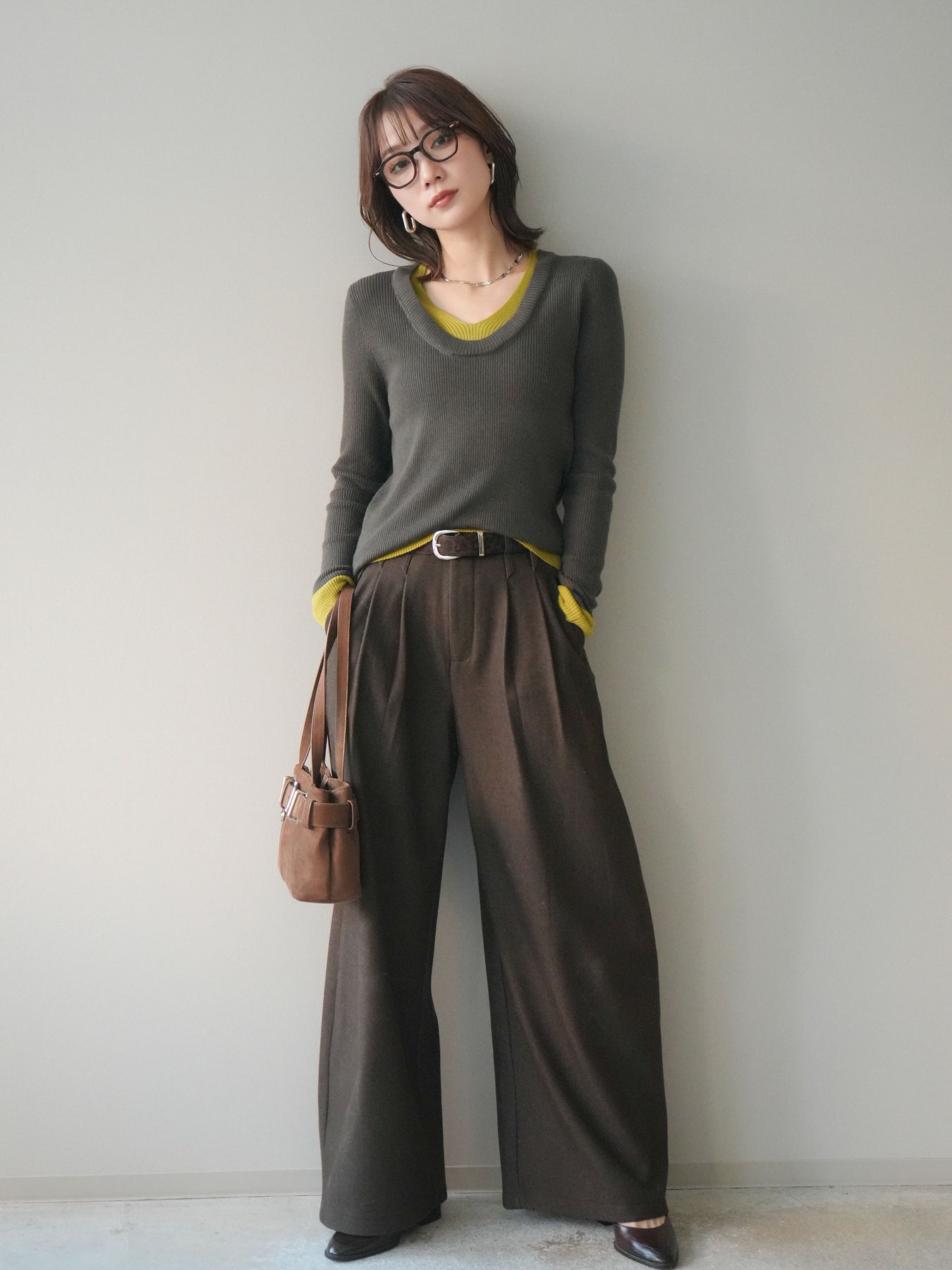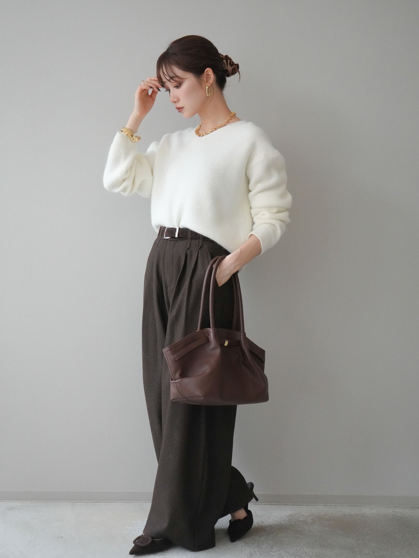 [予約]アニマル柄ベルト付きウールタッチワイドパンツ/brown