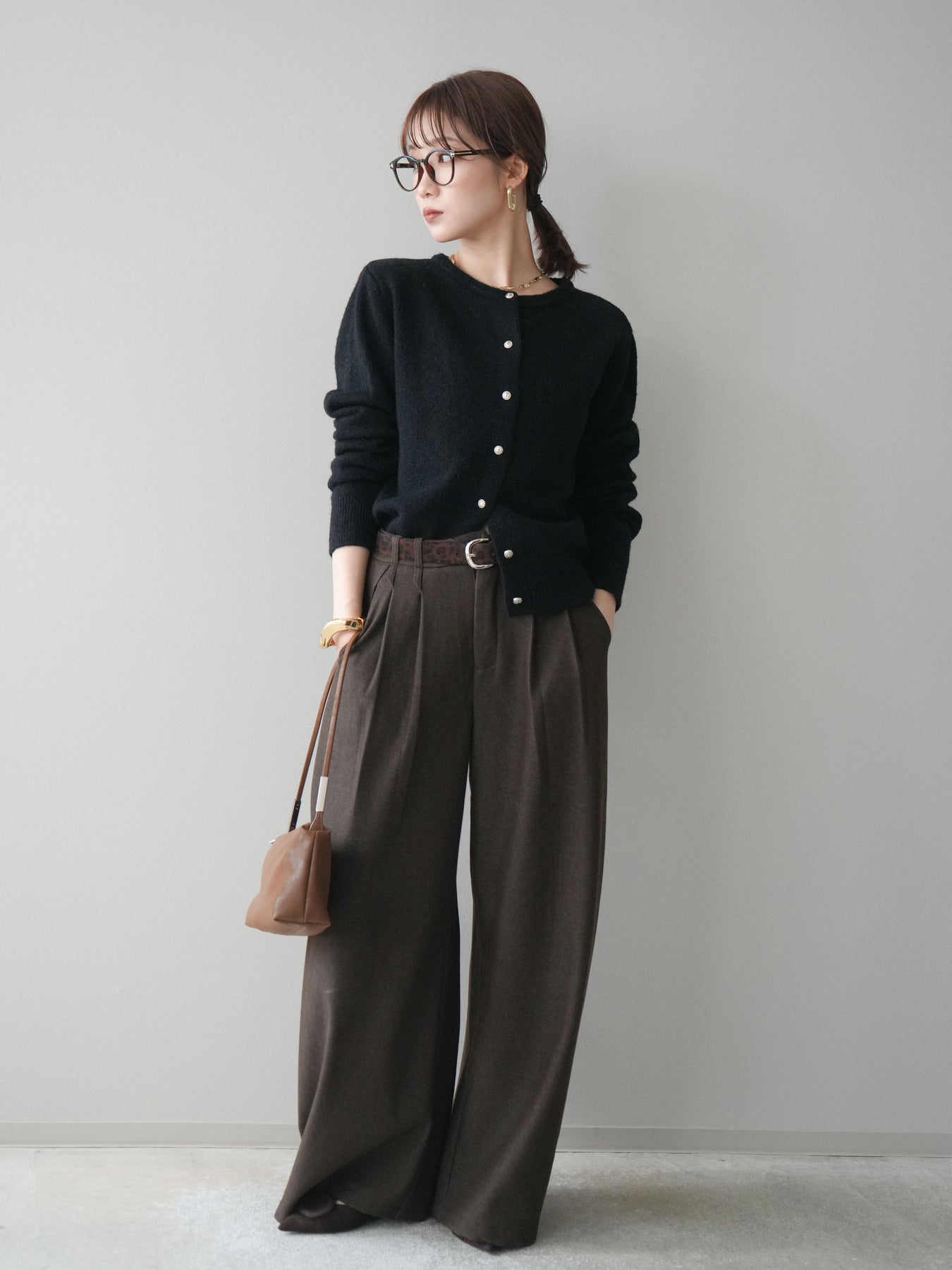 ウールのような柔らかな風合いで仕立てたワイドパンツに、アニマル柄のベルトをセットした印象的な一本。ゆったりとしたワイドシルエットが縦のラインをきれいに強調し、足元まで流れるような落ち感が大人らしい雰囲気を演出します。セットのベルトがスタイリングのアクセントとなり、シンプルなトップスを合わせるだけでこなれたバランスに。オンオフ問わず着回しやすく、季節感を取り入れたコーデを楽しめる万能ボトムです。