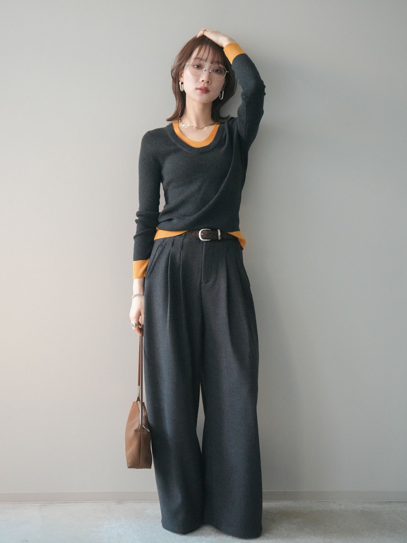 ウールのような柔らかな風合いで仕立てたワイドパンツに、アニマル柄のベルトをセットした印象的な一本。ゆったりとしたワイドシルエットが縦のラインをきれいに強調し、足元まで流れるような落ち感が大人らしい雰囲気を演出します。セットのベルトがスタイリングのアクセントとなり、シンプルなトップスを合わせるだけでこなれたバランスに。オンオフ問わず着回しやすく、季節感を取り入れたコーデを楽しめる万能ボトムです。