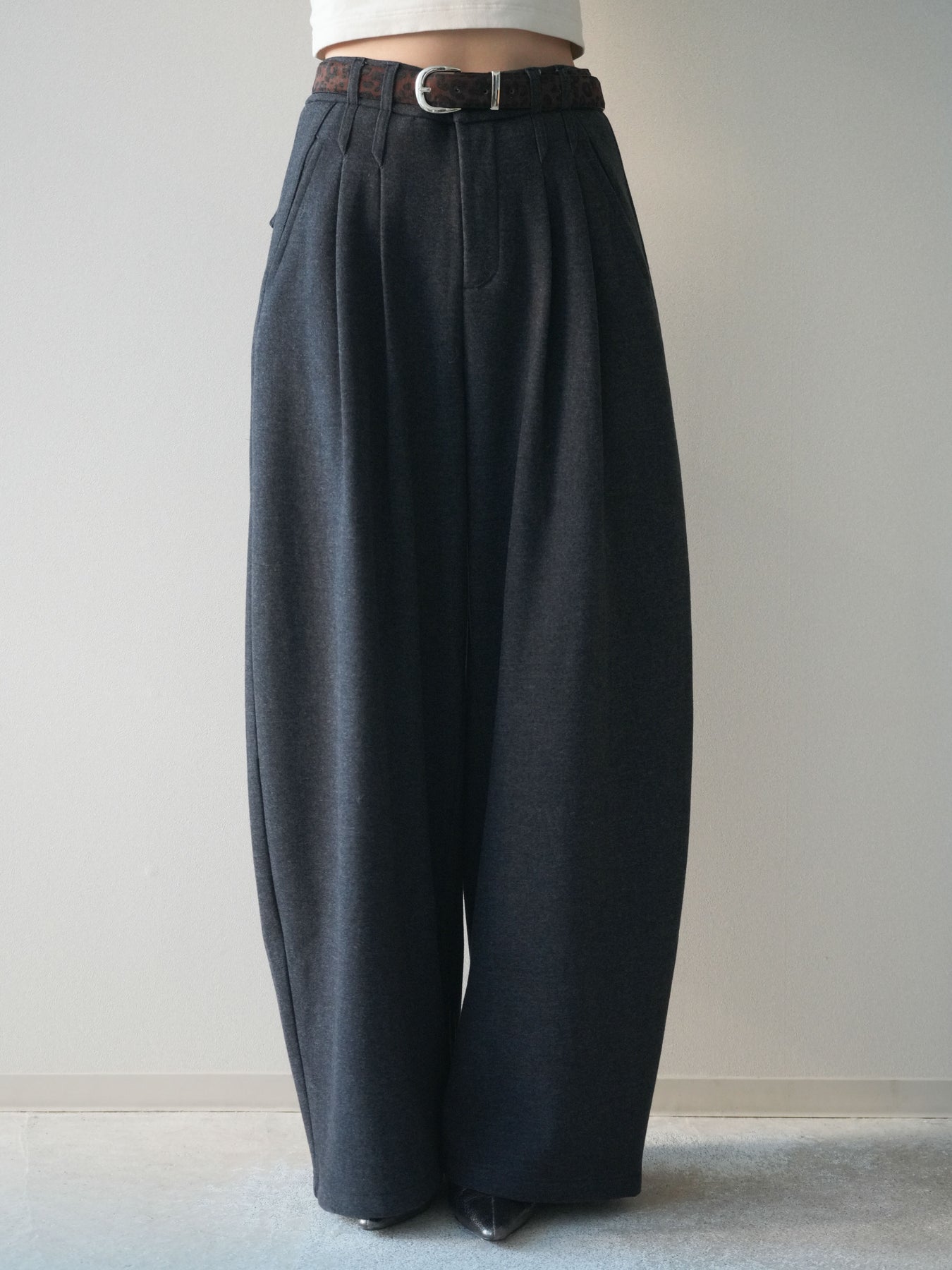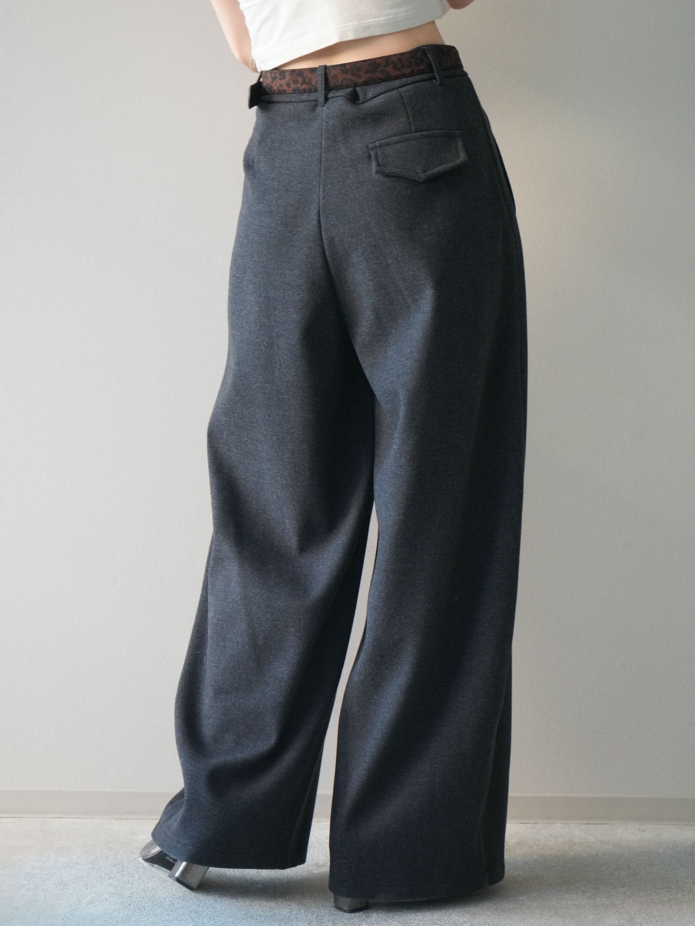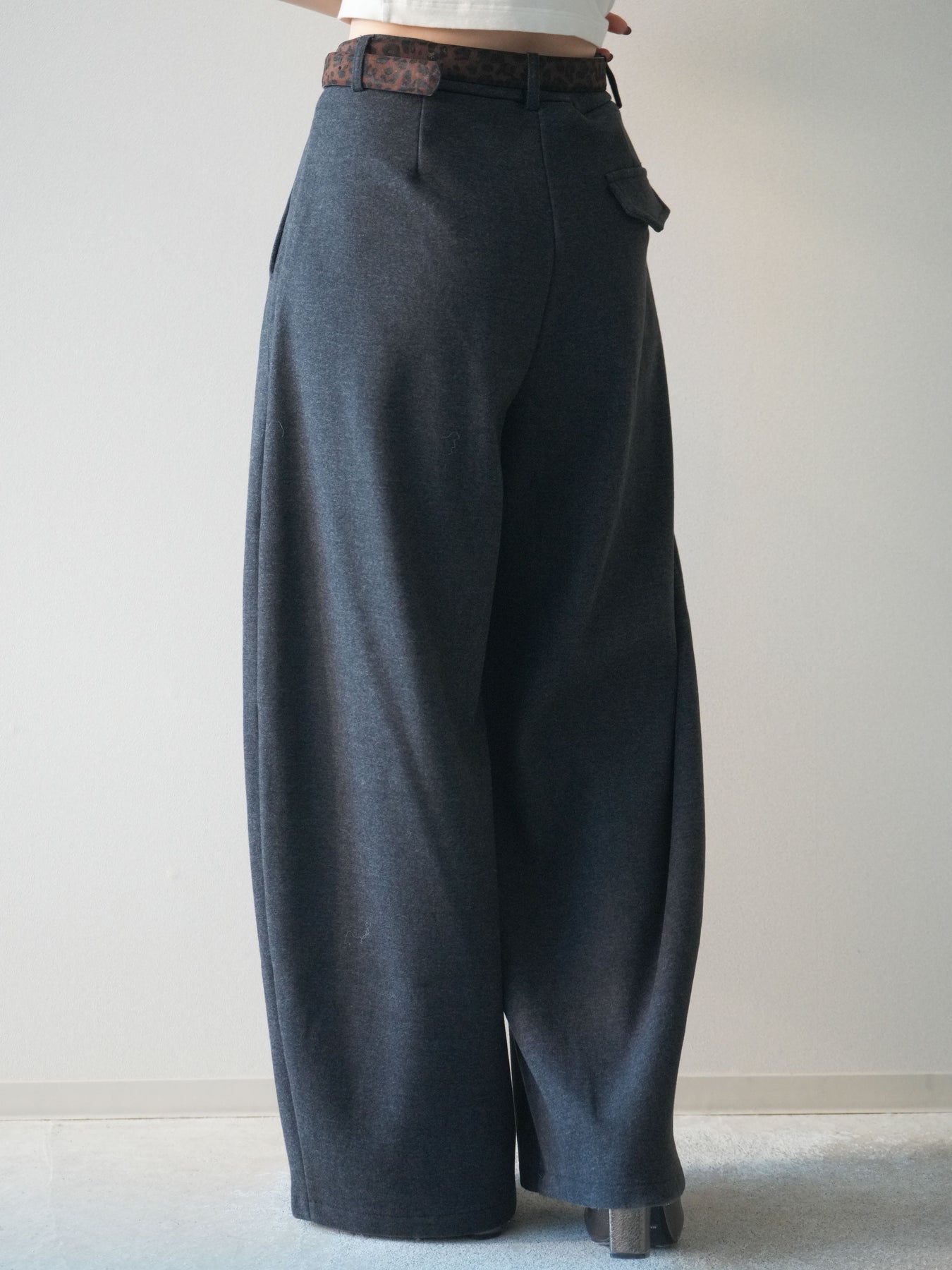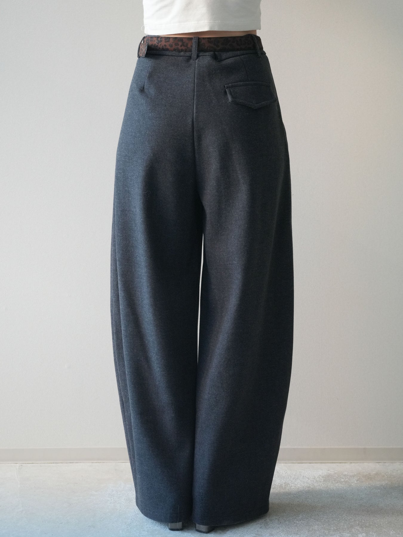 [予約]アニマル柄ベルト付きウールタッチワイドパンツ/charcoal