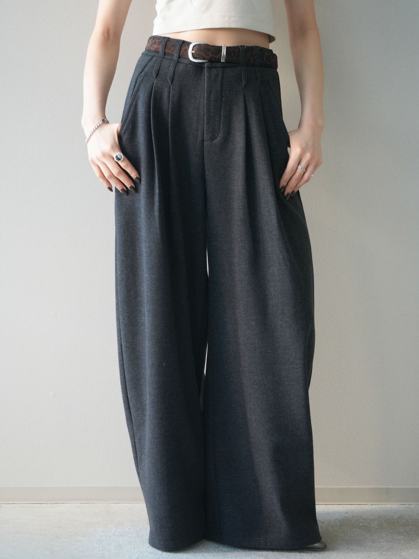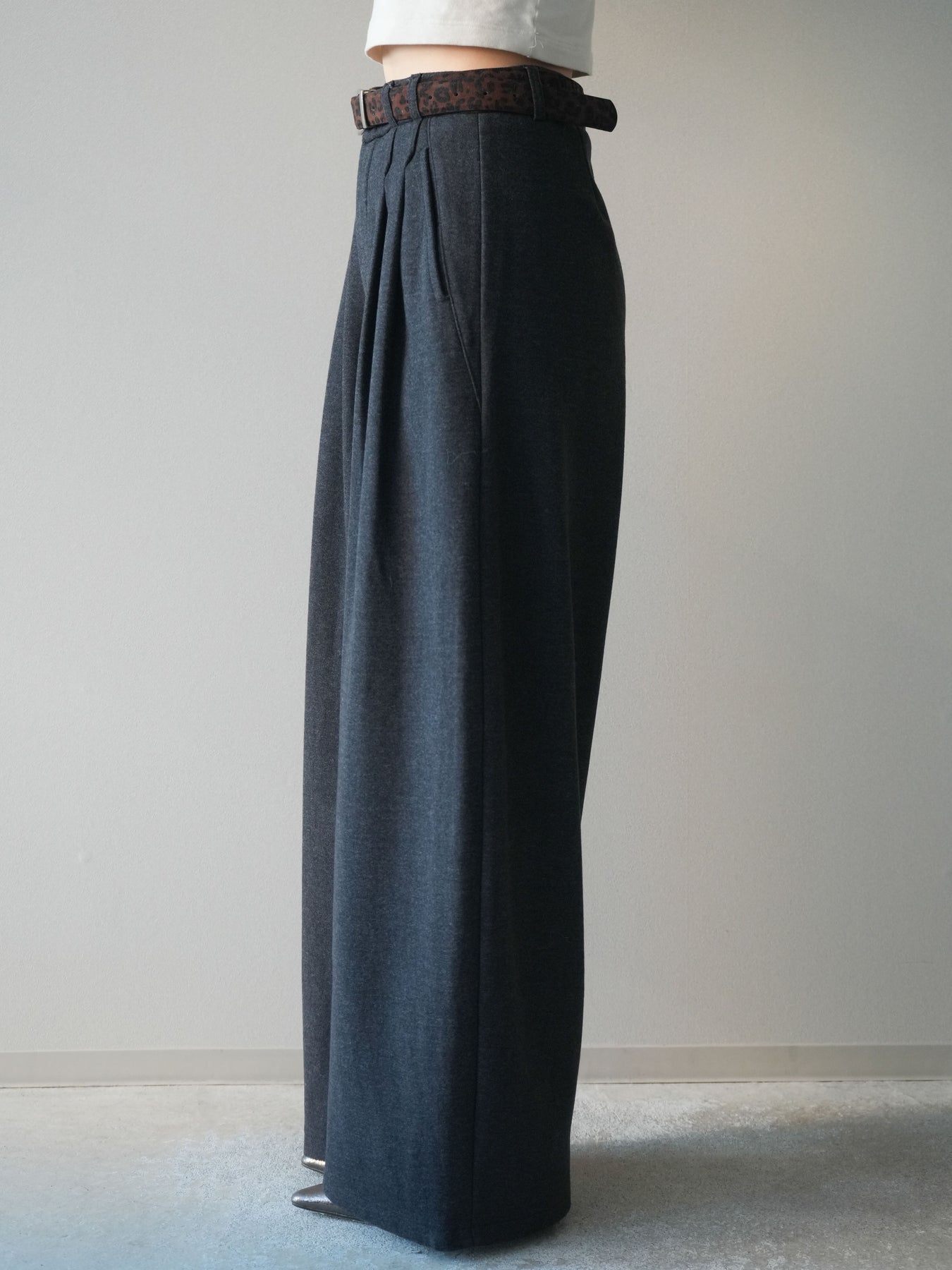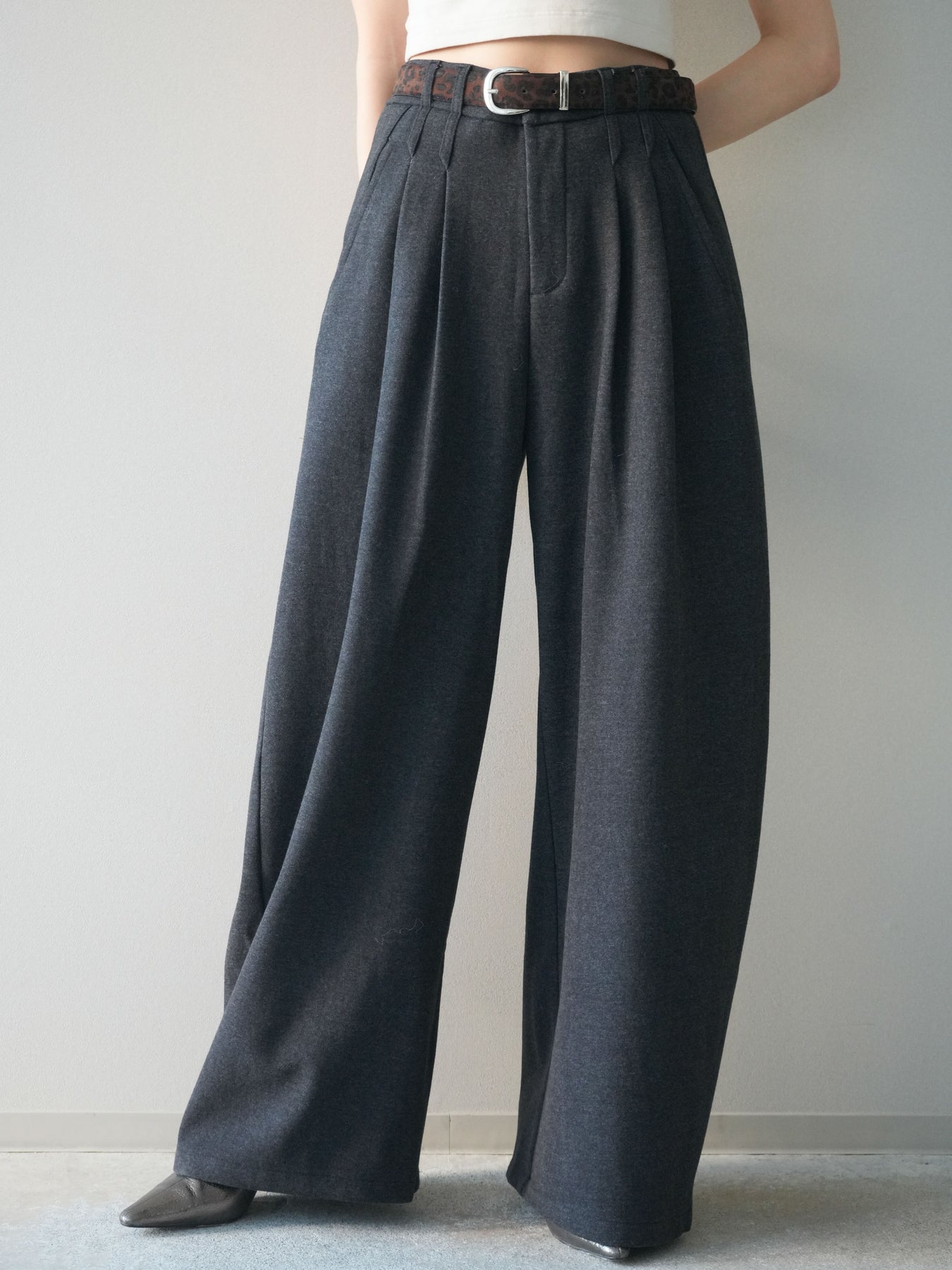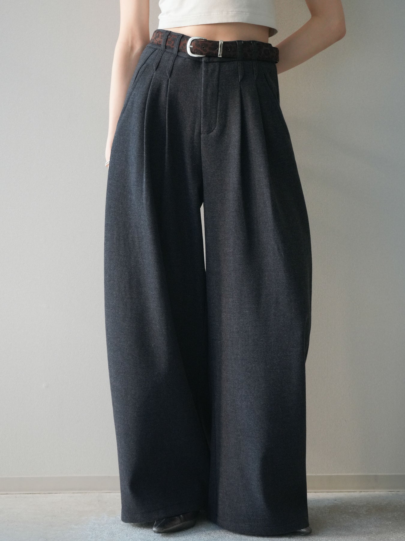 [予約]アニマル柄ベルト付きウールタッチワイドパンツ/charcoal