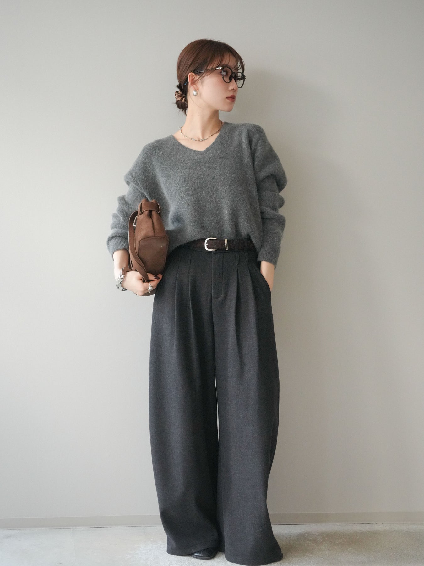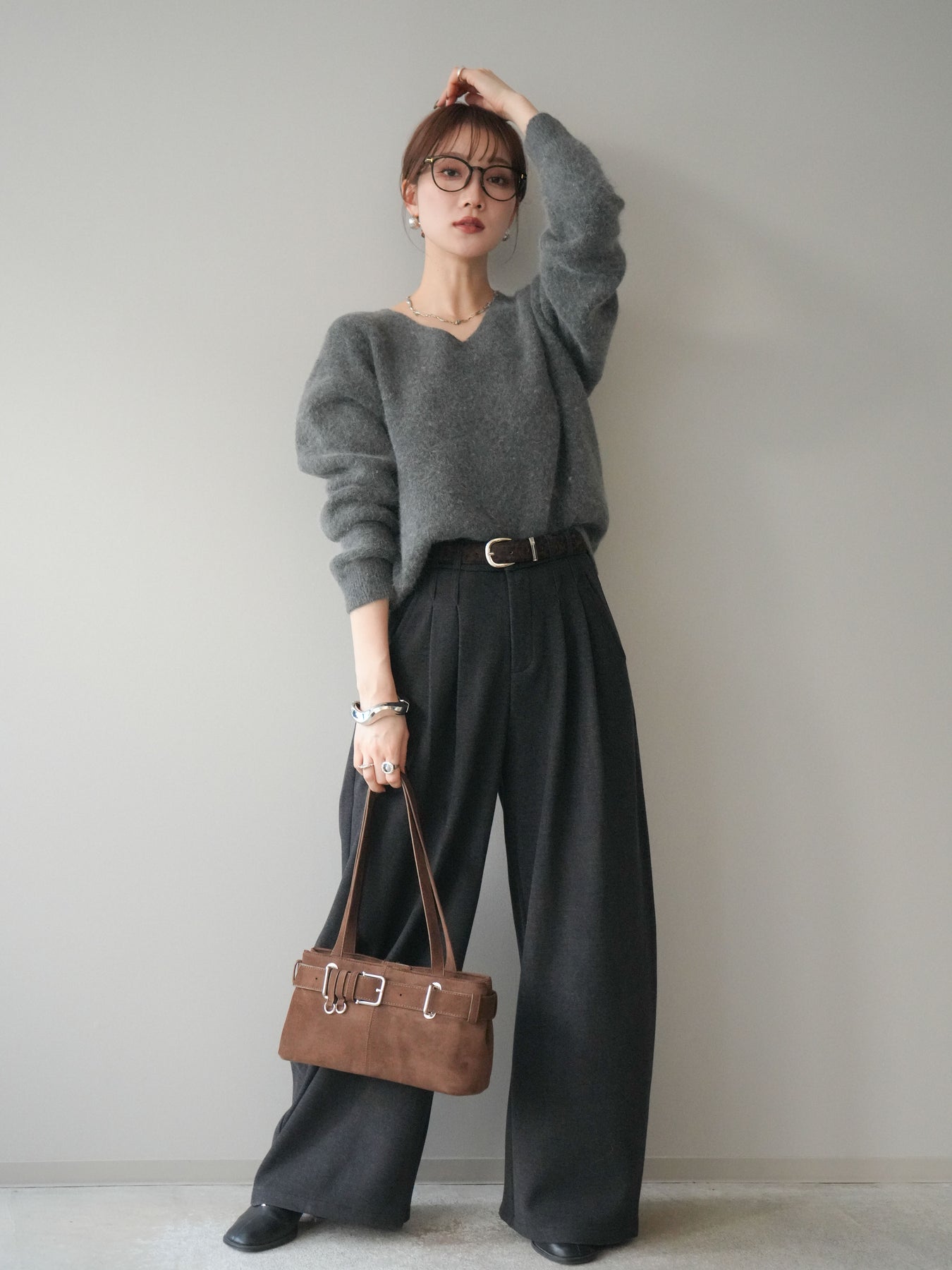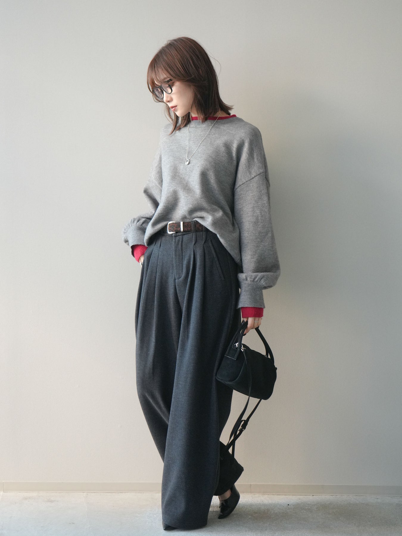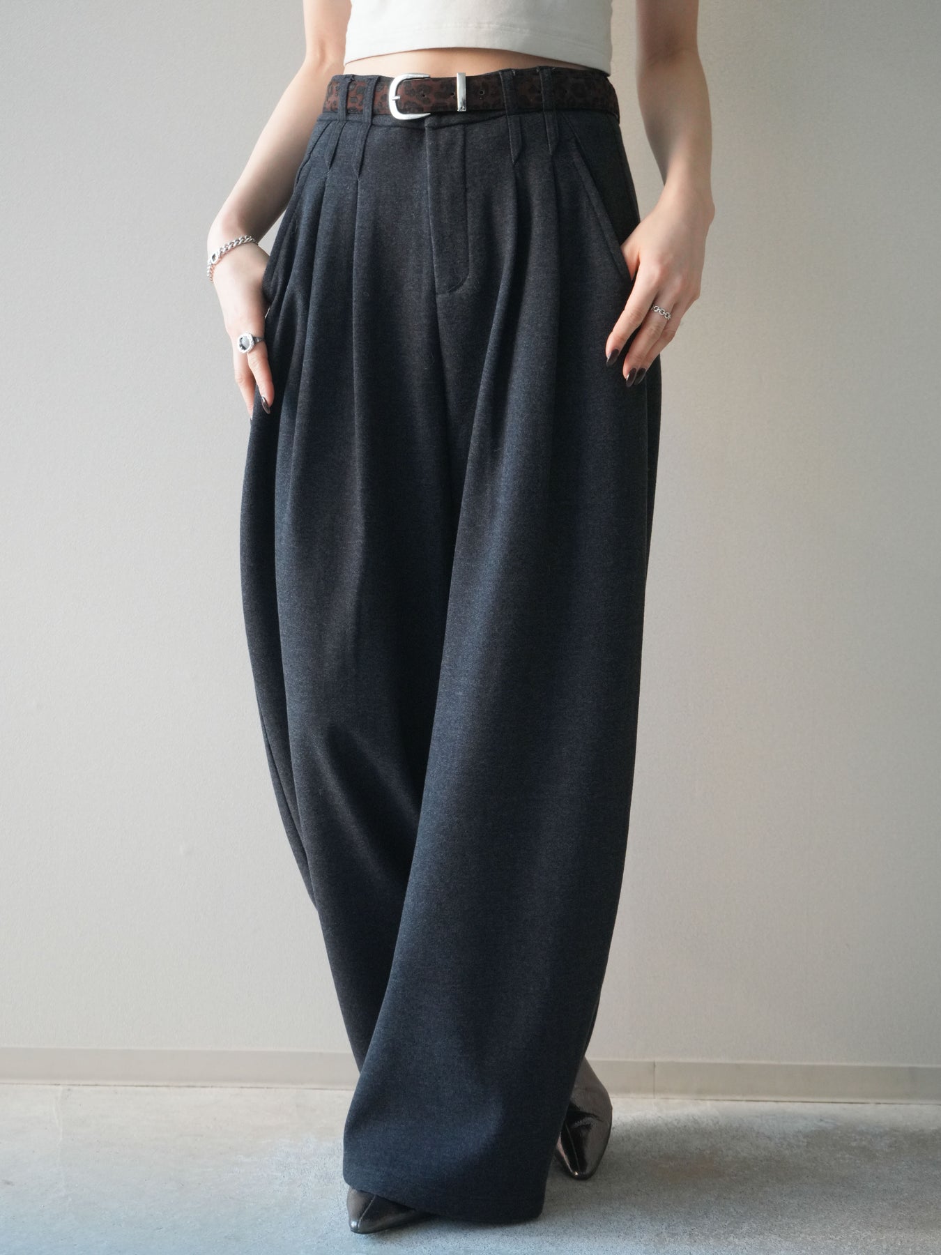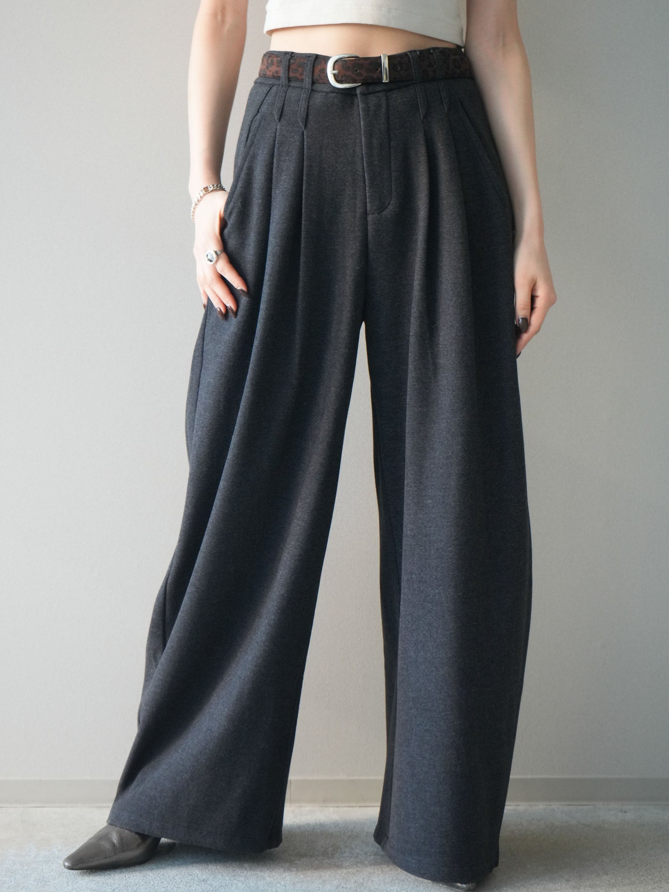 [予約]アニマル柄ベルト付きウールタッチワイドパンツ/charcoal
