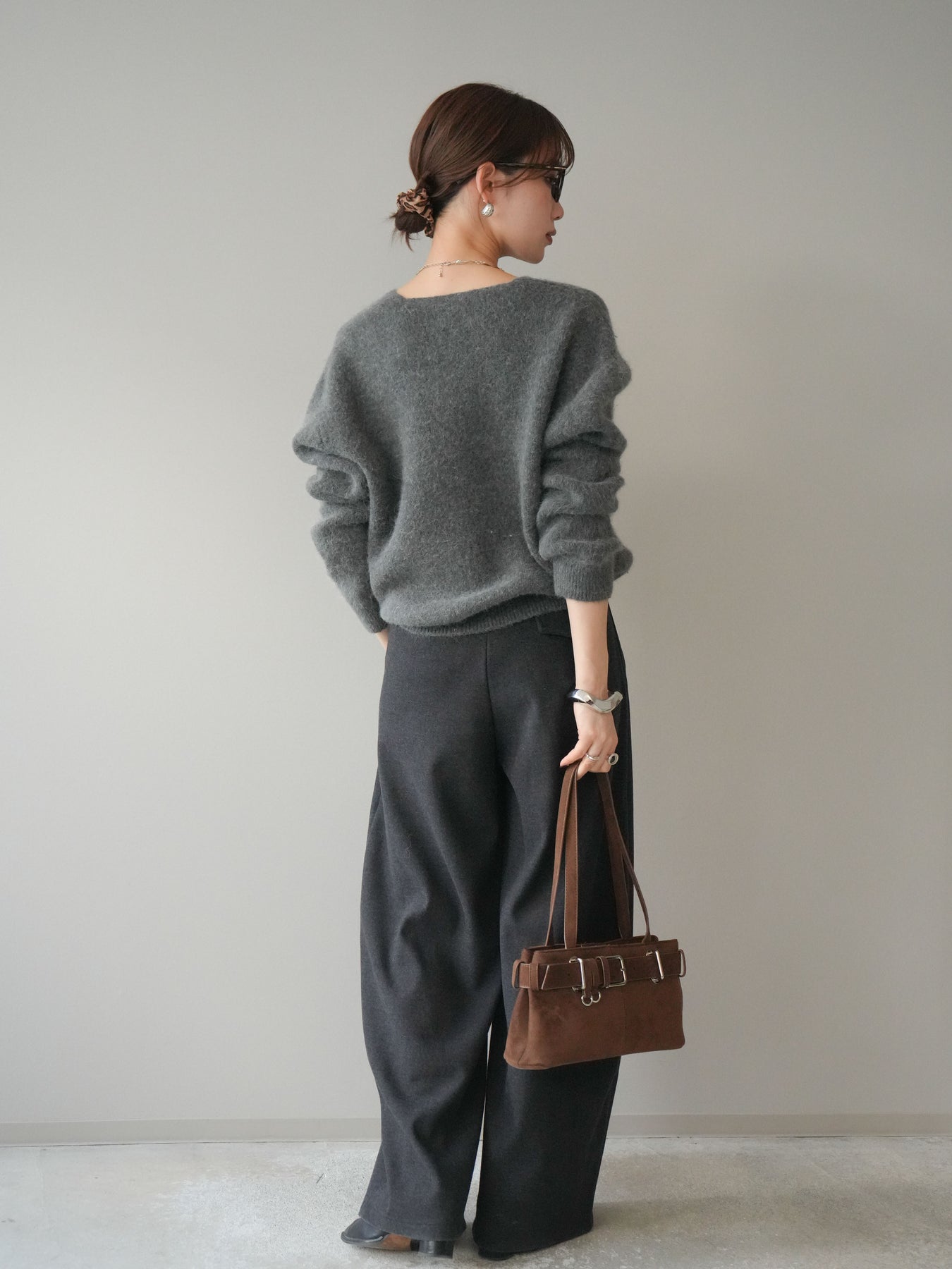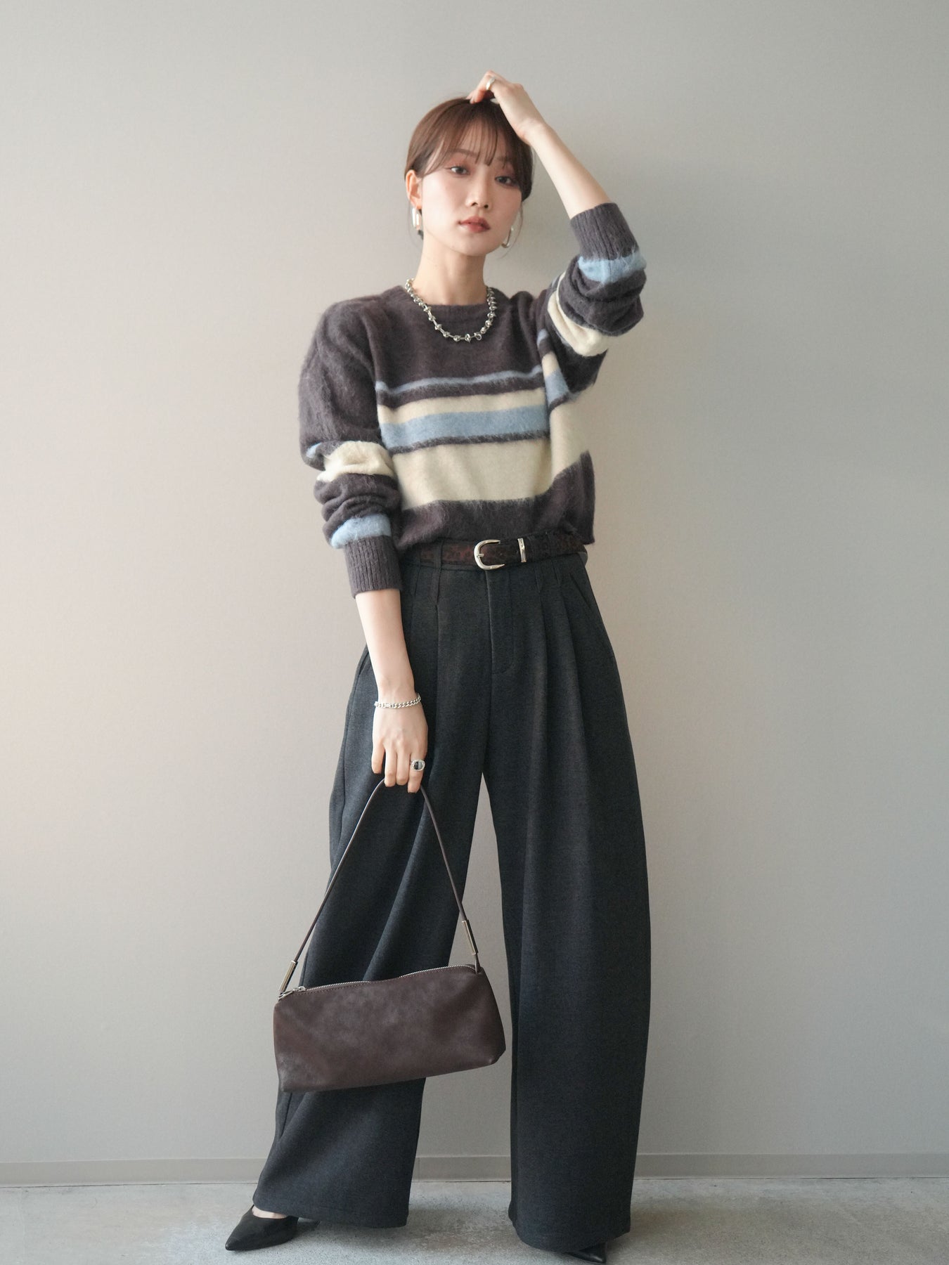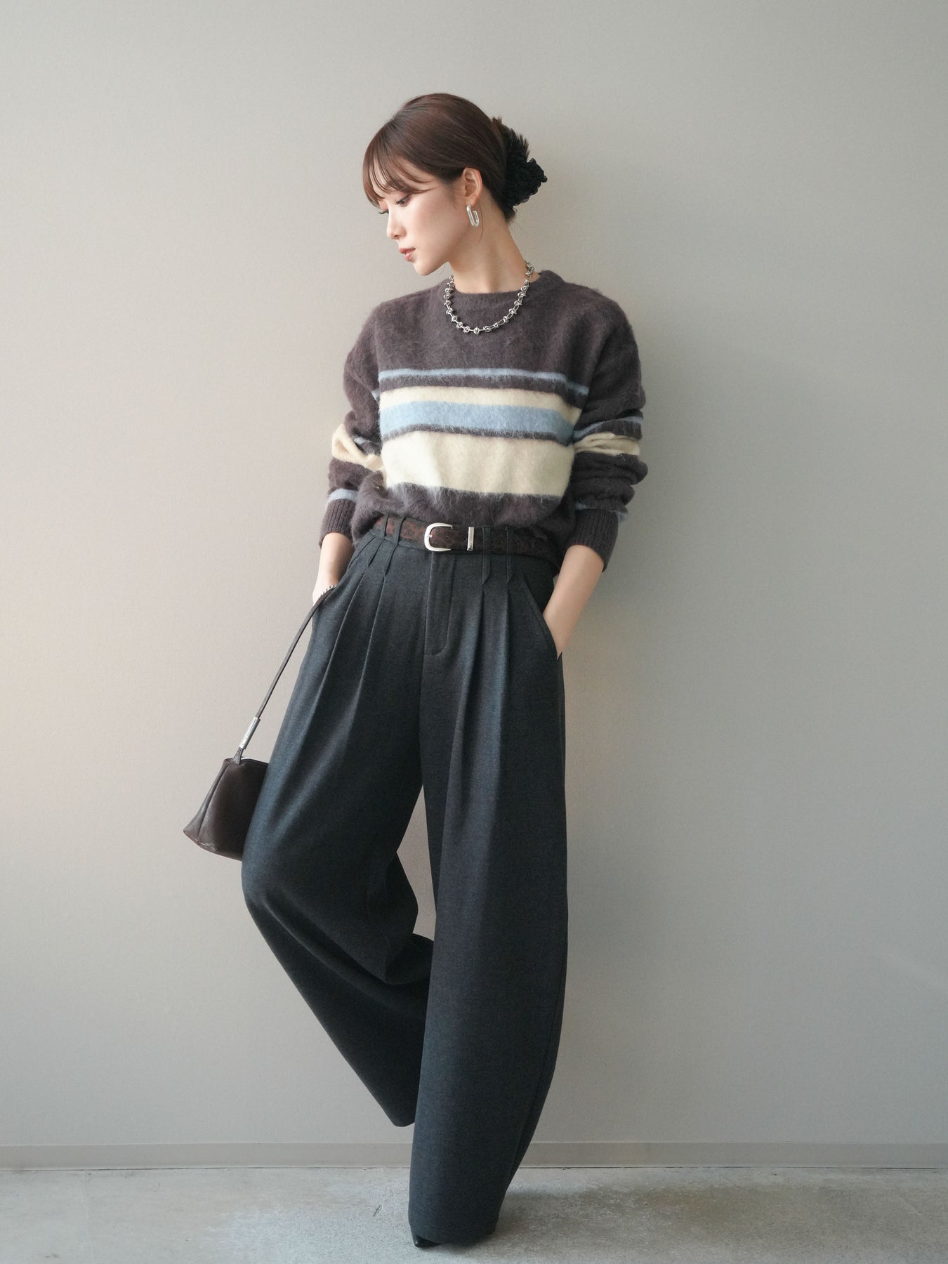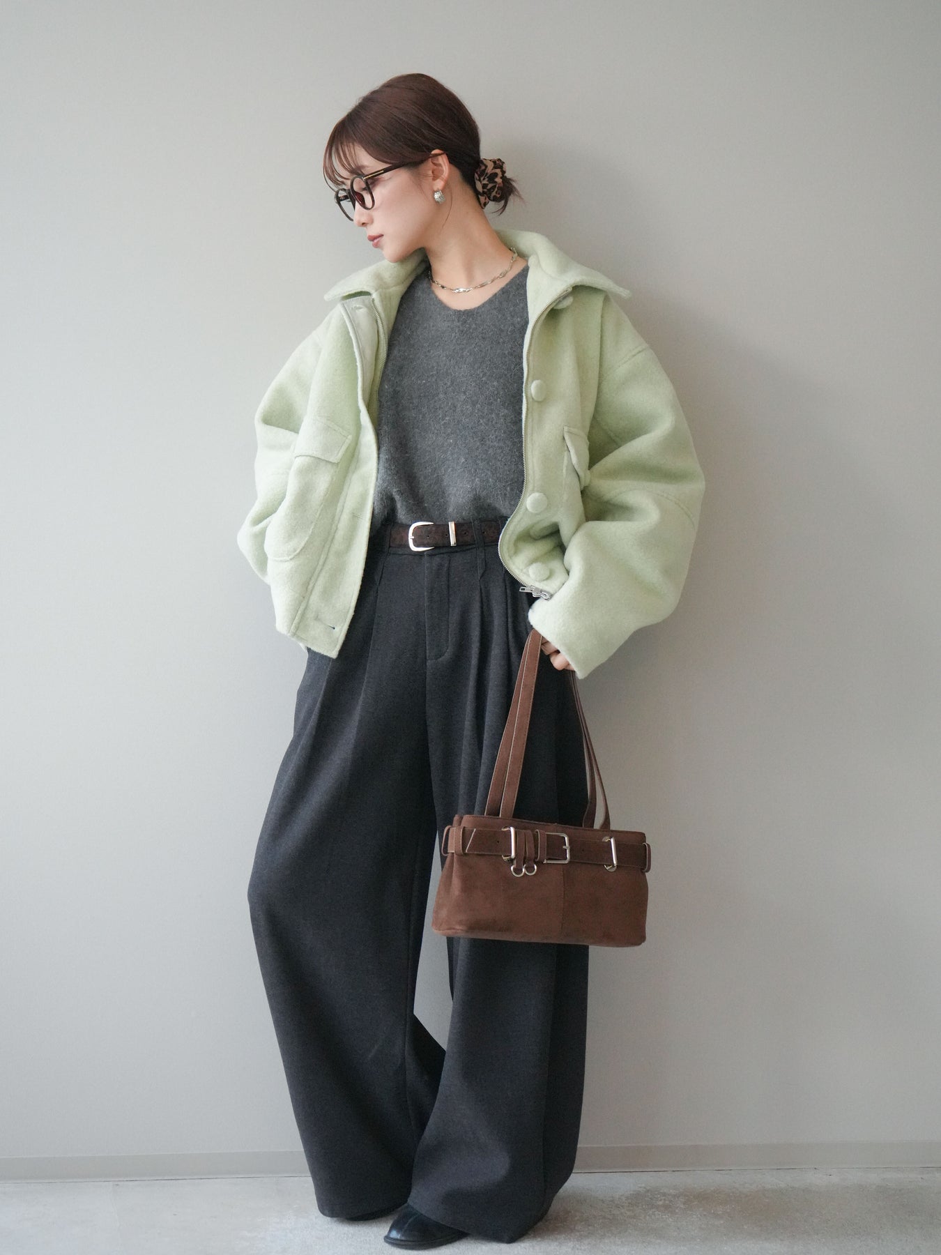 [予約]アニマル柄ベルト付きウールタッチワイドパンツ/charcoal