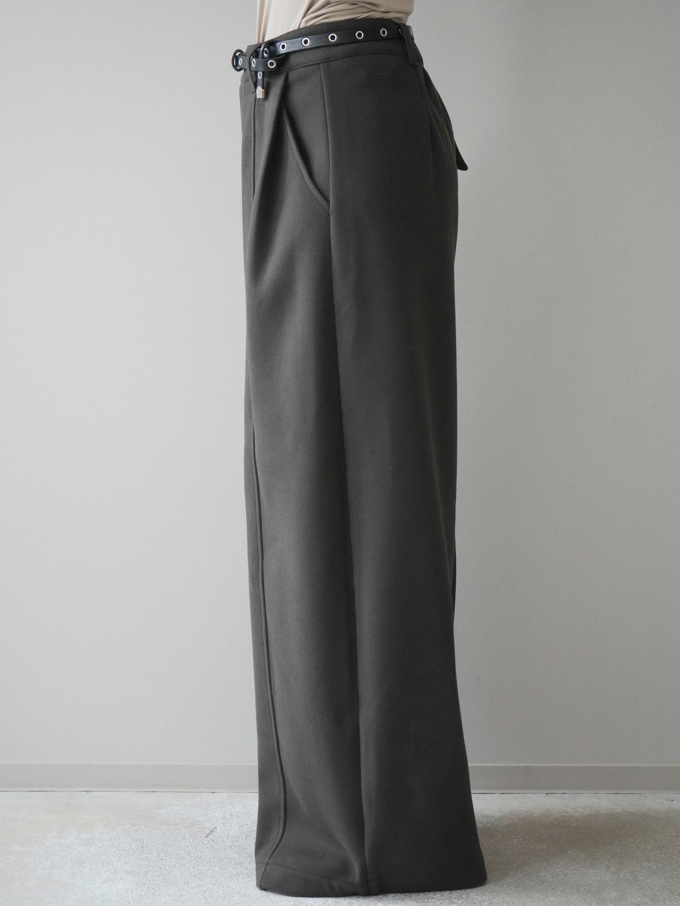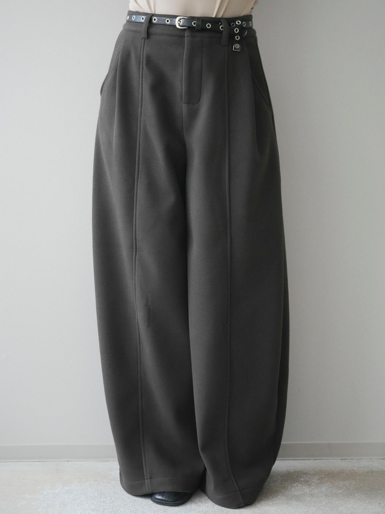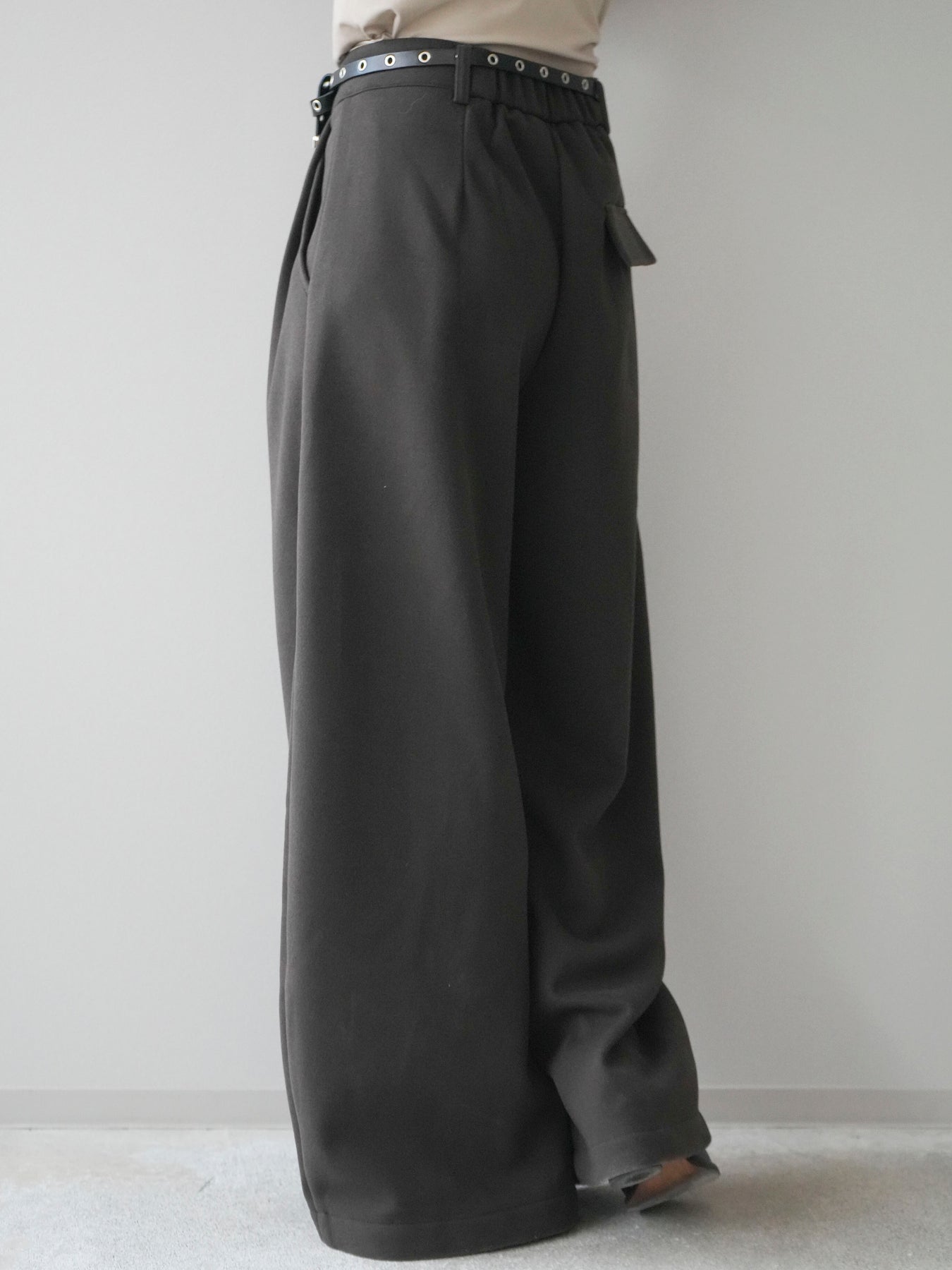 [予約]ベルト付き裏起毛ワイドパンツ/ brown