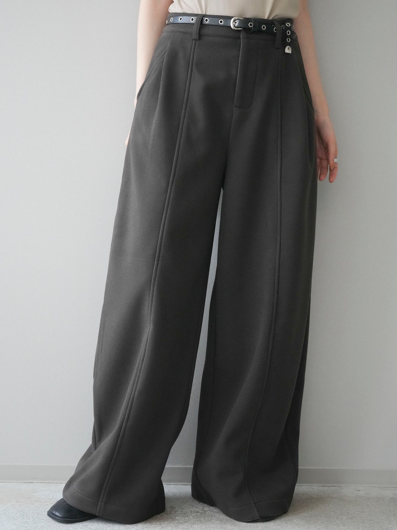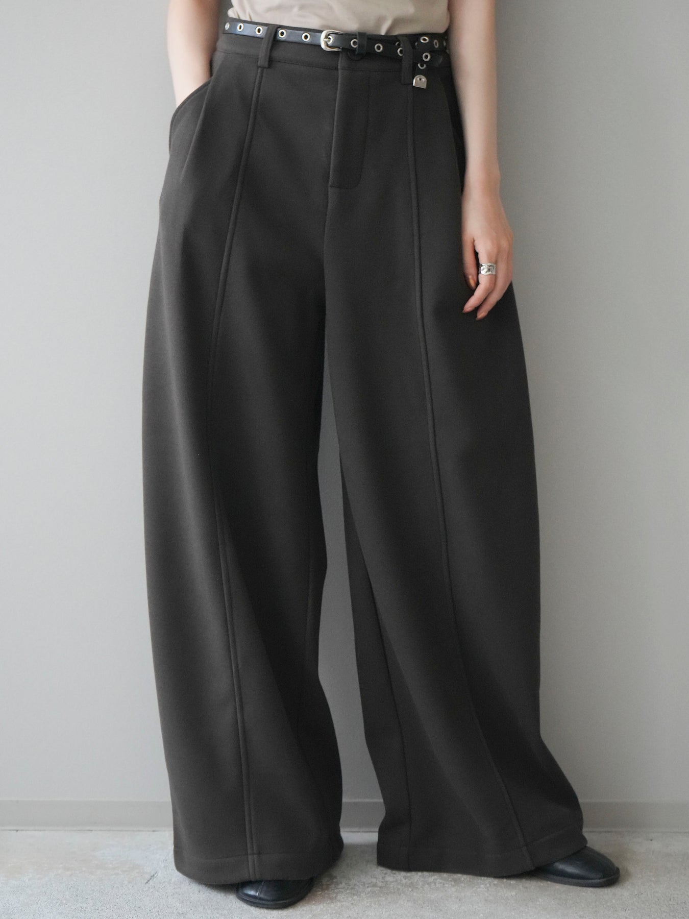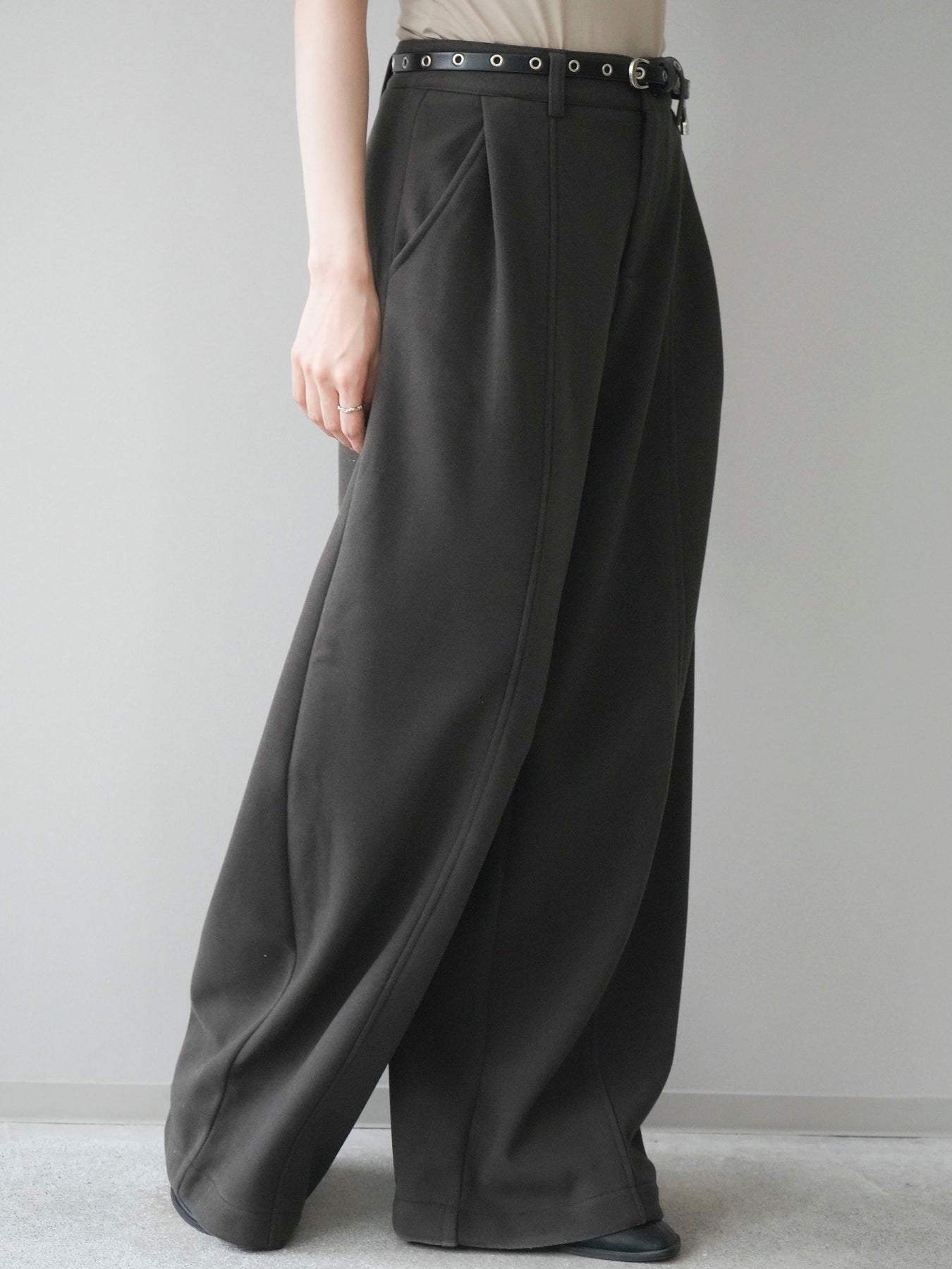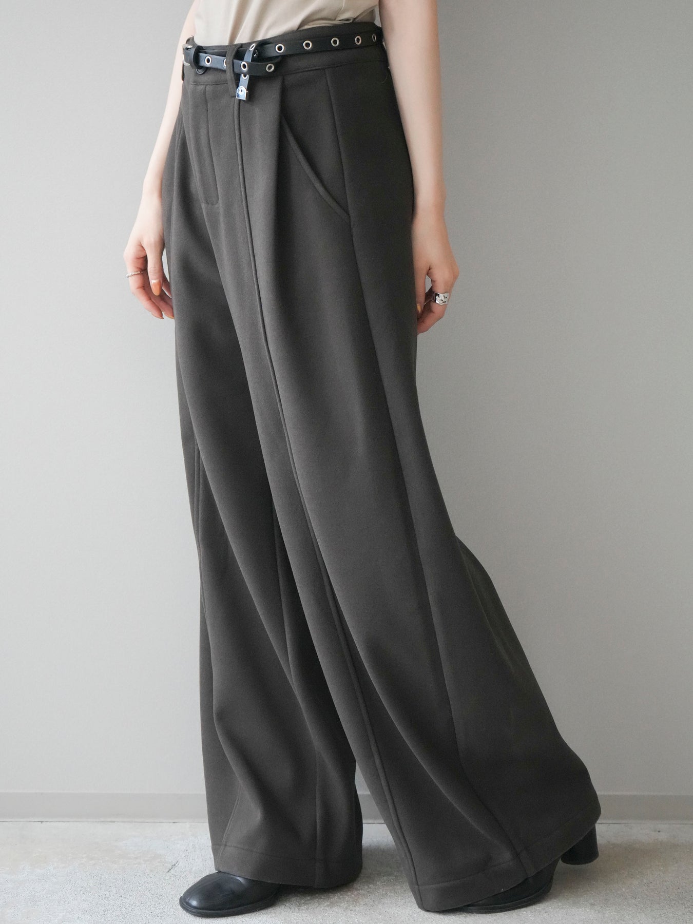 [予約]ベルト付き裏起毛ワイドパンツ/ brown