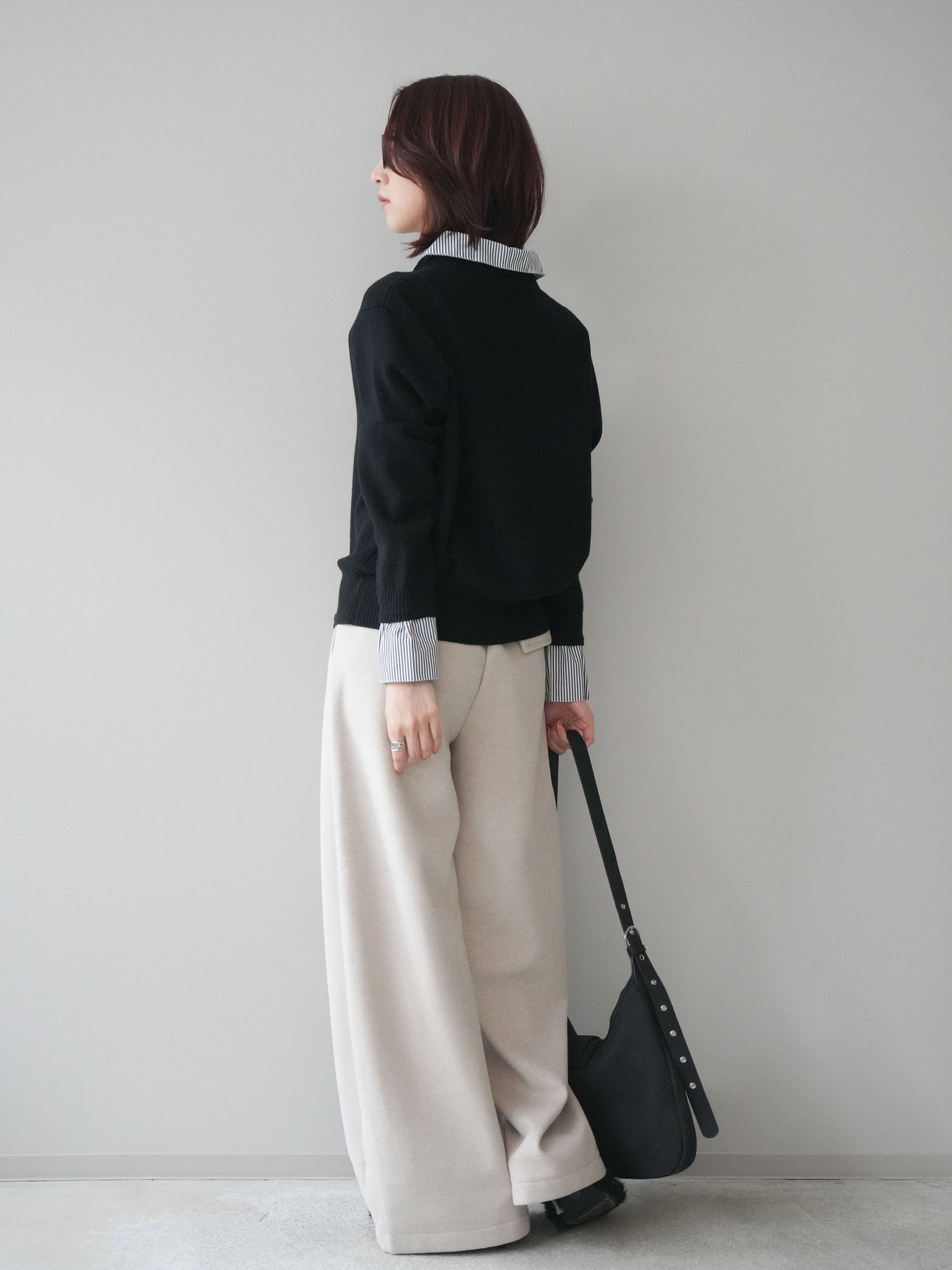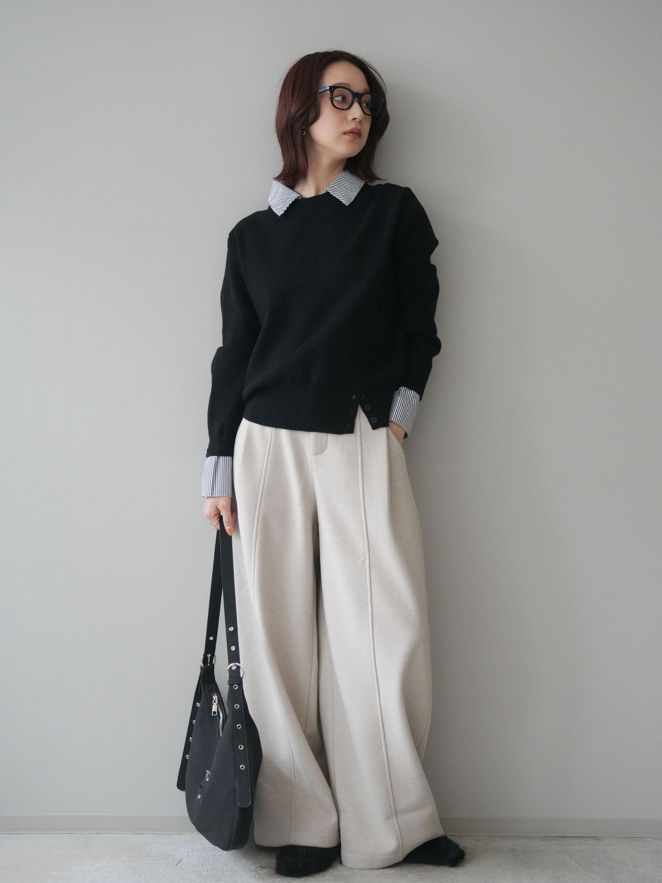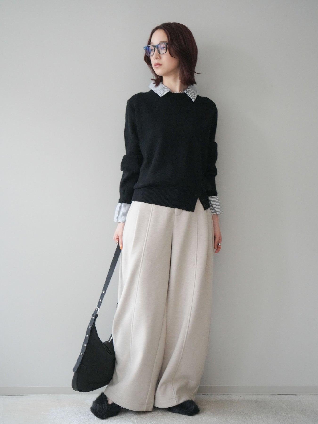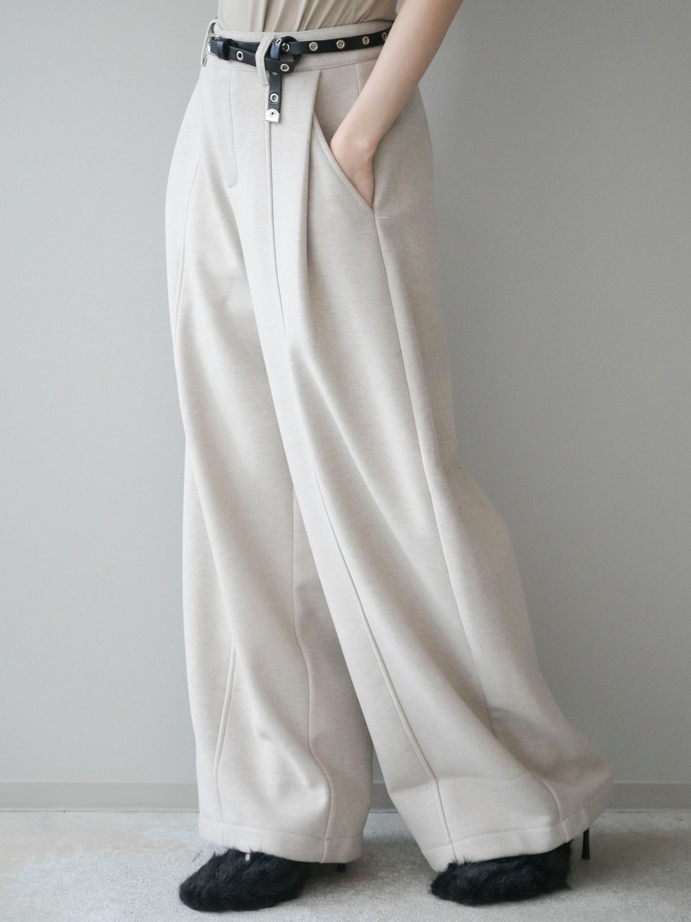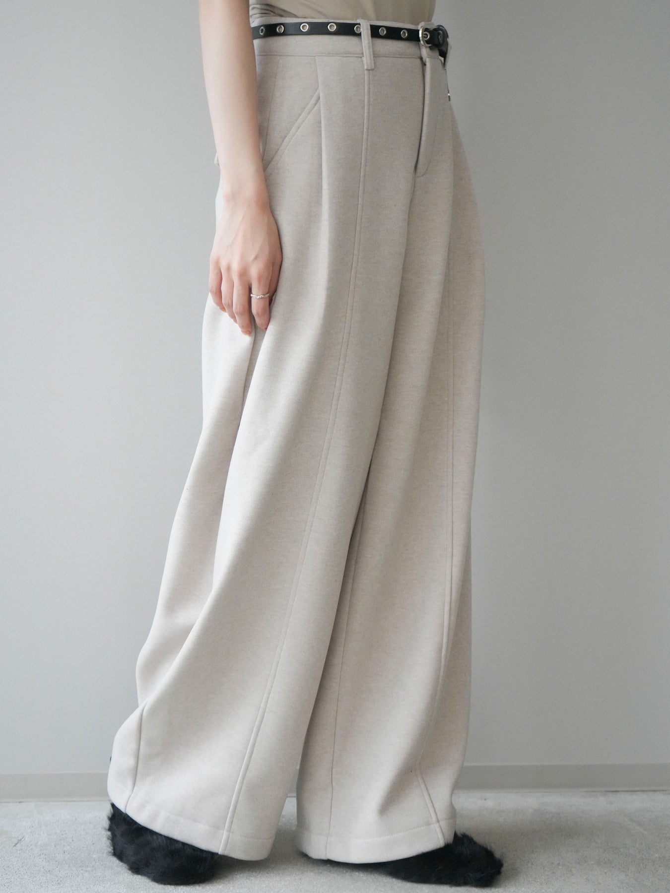 [予約]ベルト付き裏起毛ワイドパンツ/ecru
